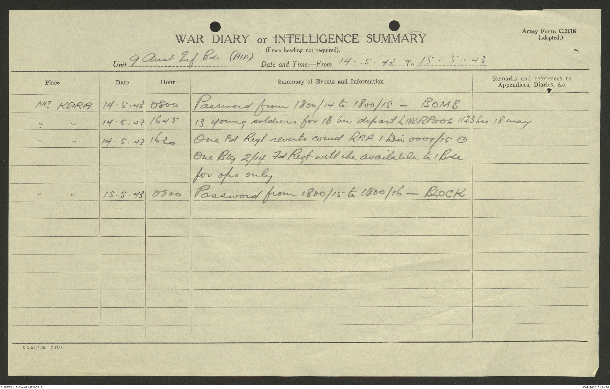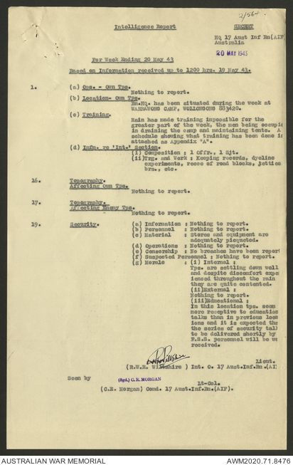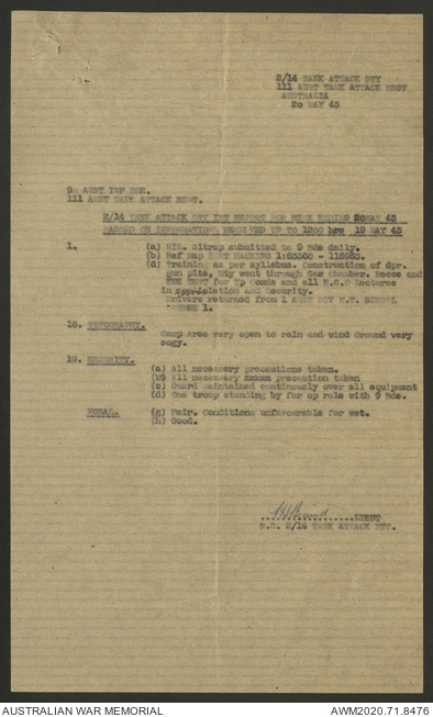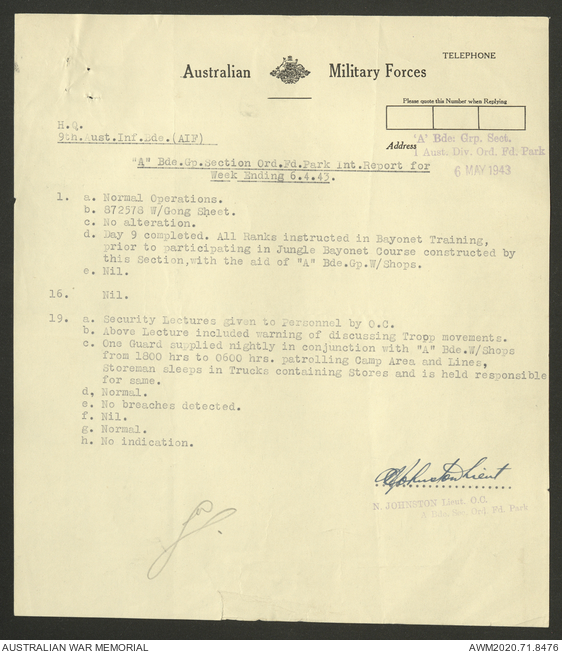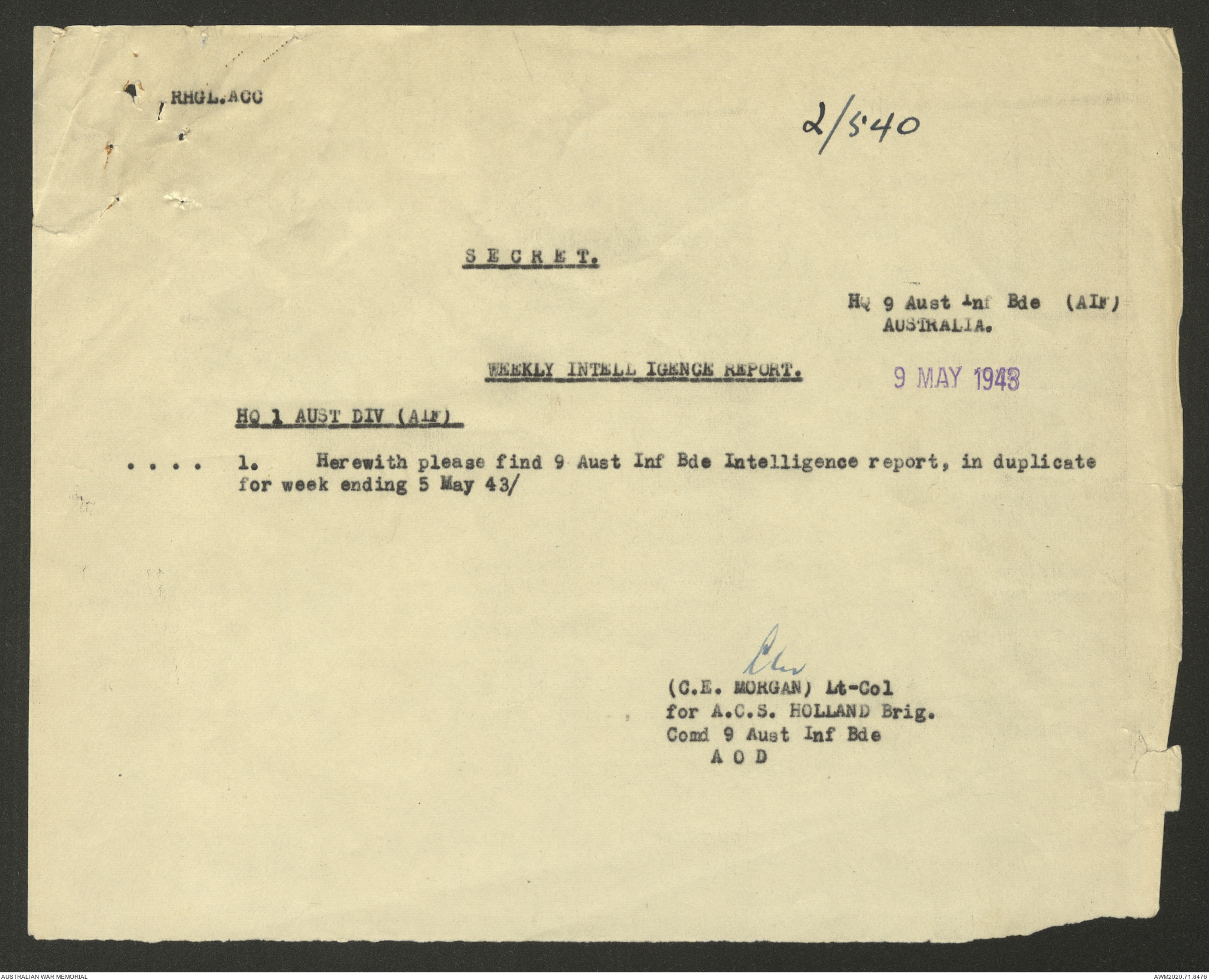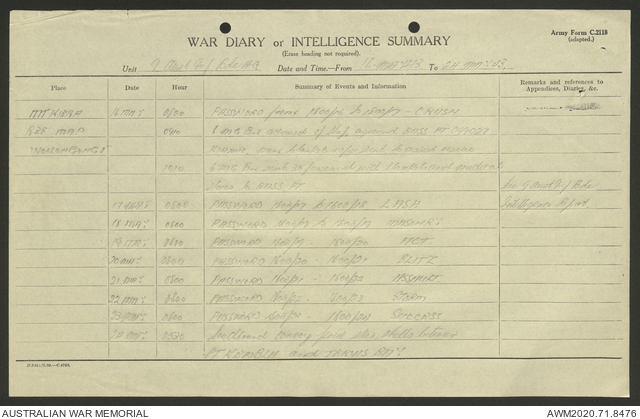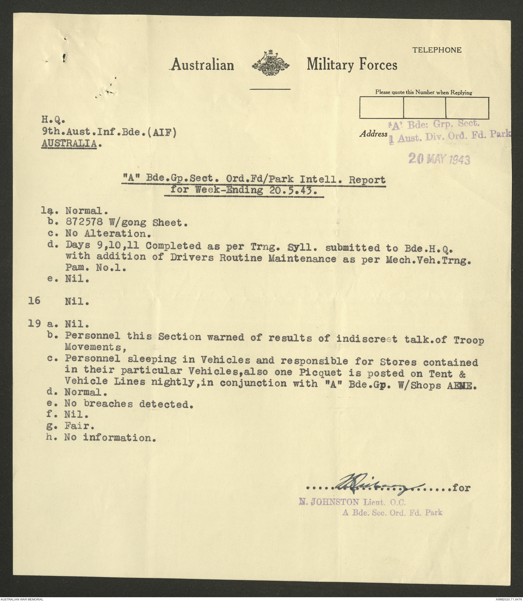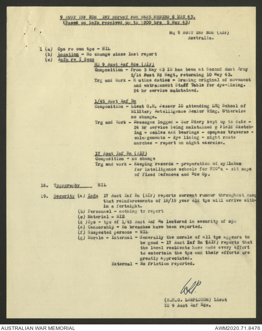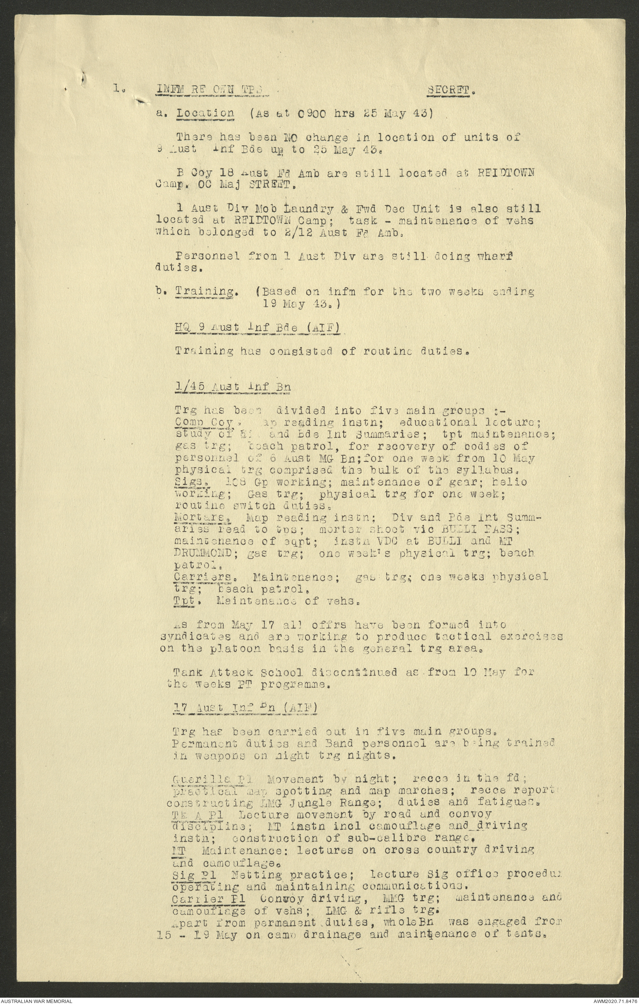 AWM52 8/2/9/22 - [Unit War Diaries, 1939-45 War] HQ 9 Australian Infantry Brigade AIF, May 1943