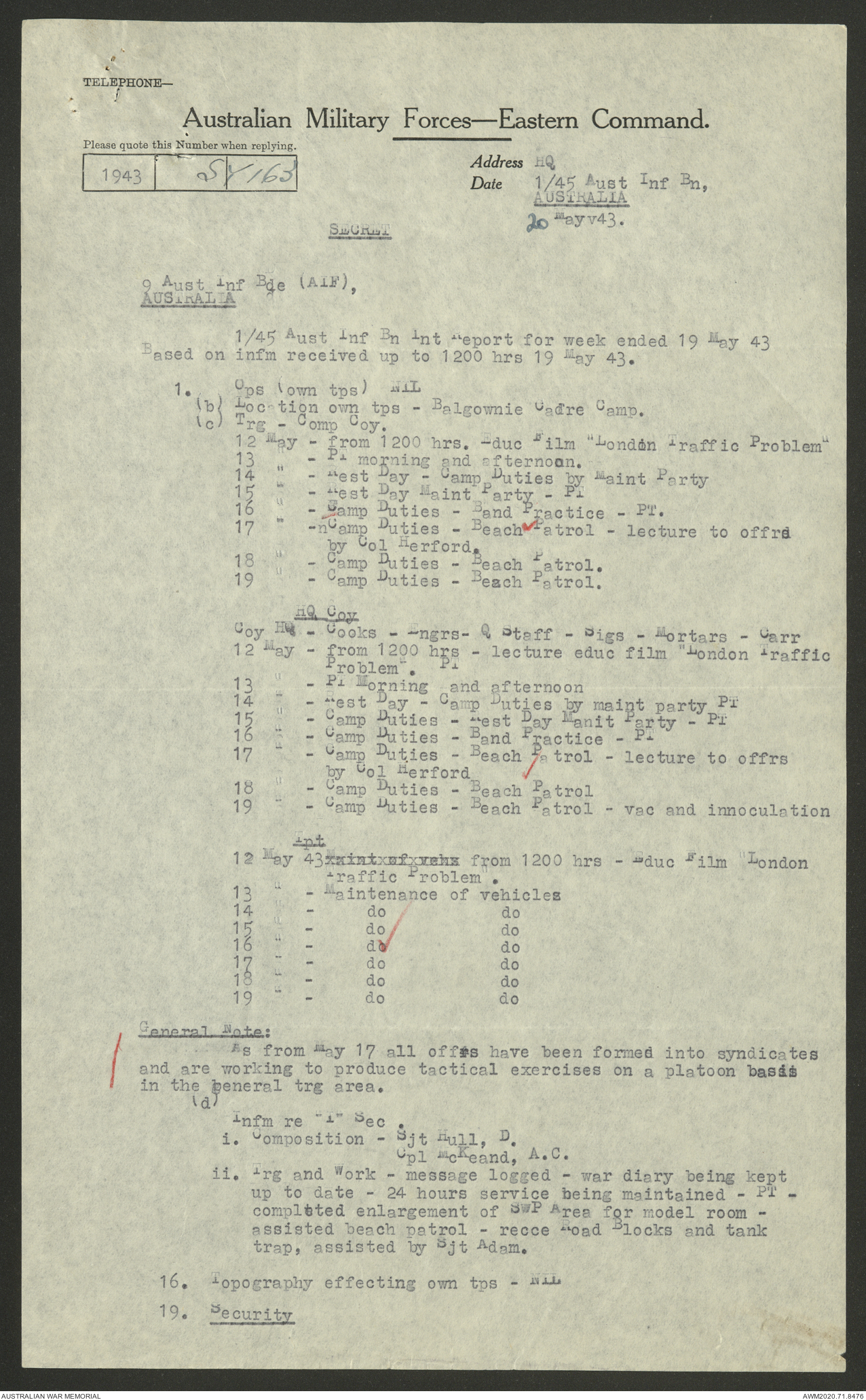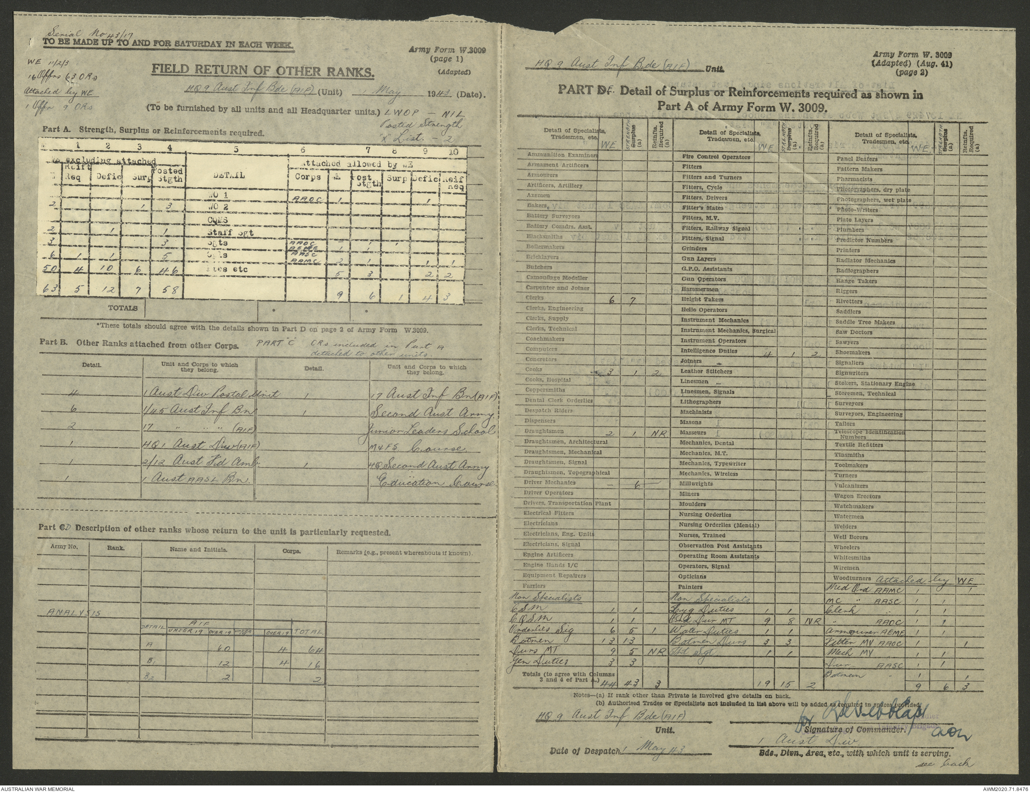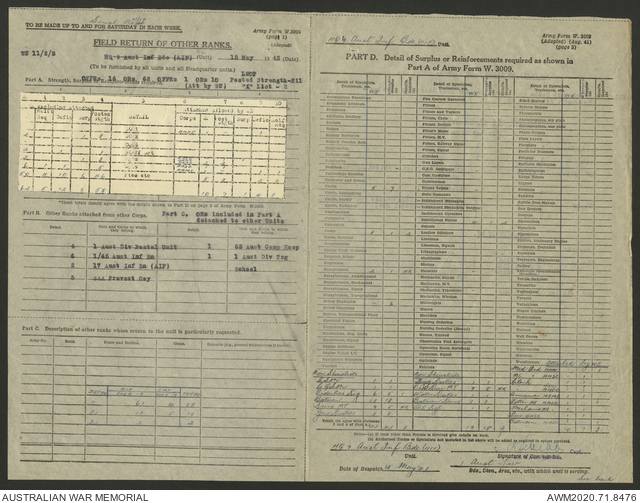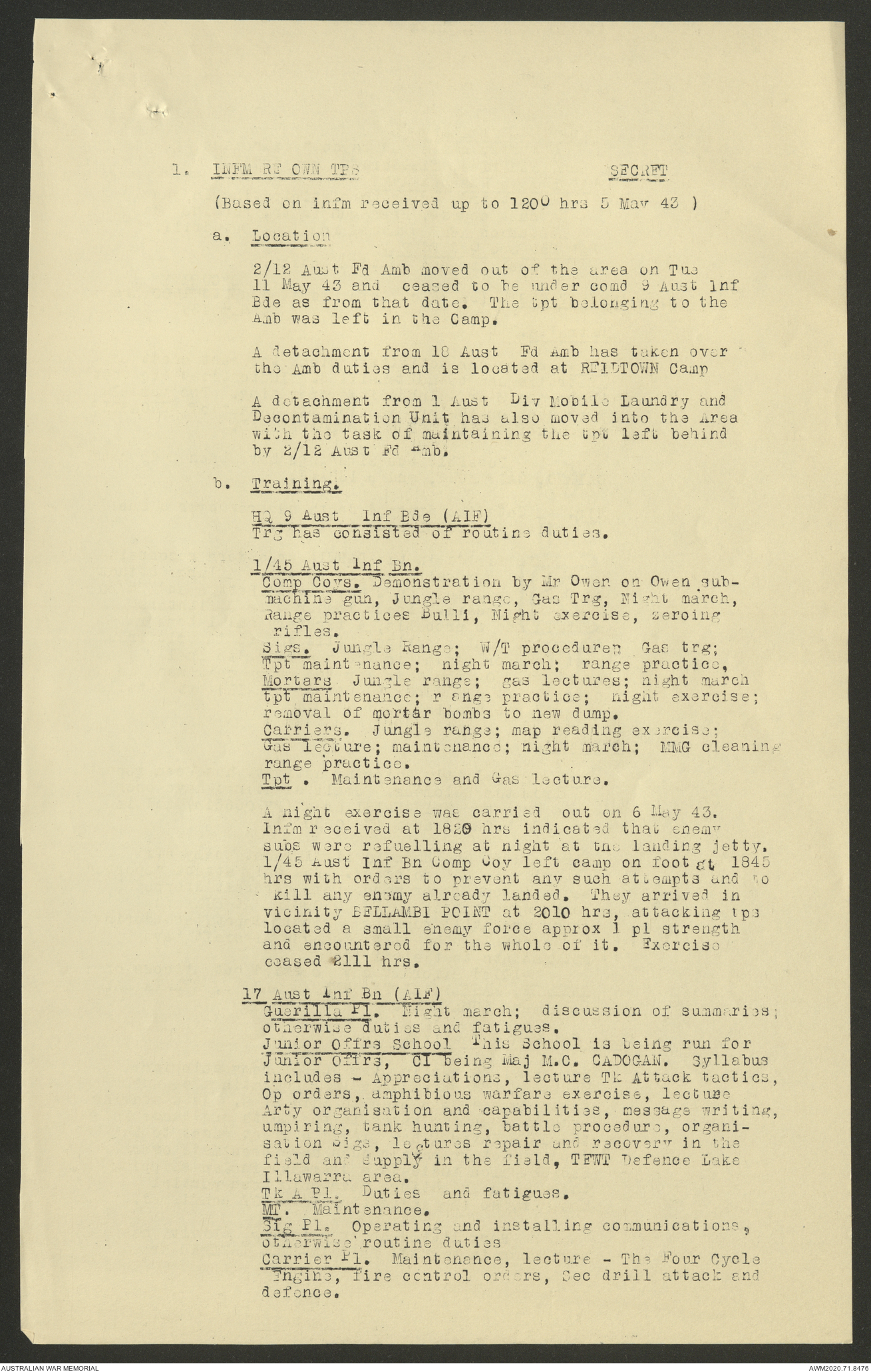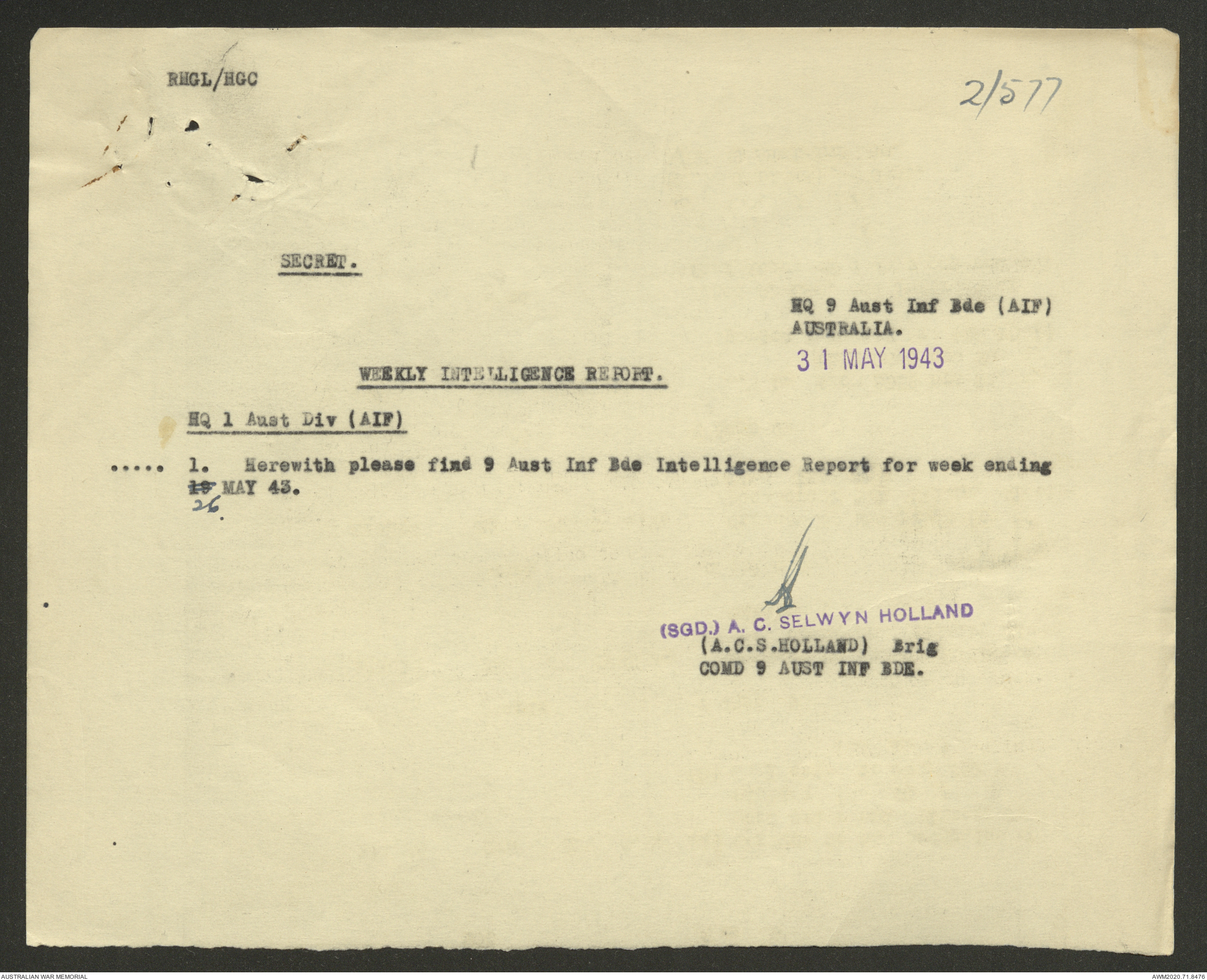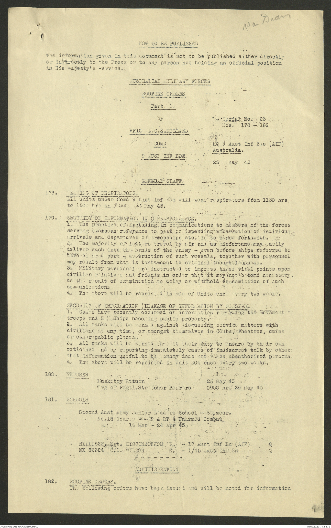 AWM52 8/2/9/22 - [Unit War Diaries, 1939-45 War] HQ 9 Australian Infantry Brigade AIF, May 1943
