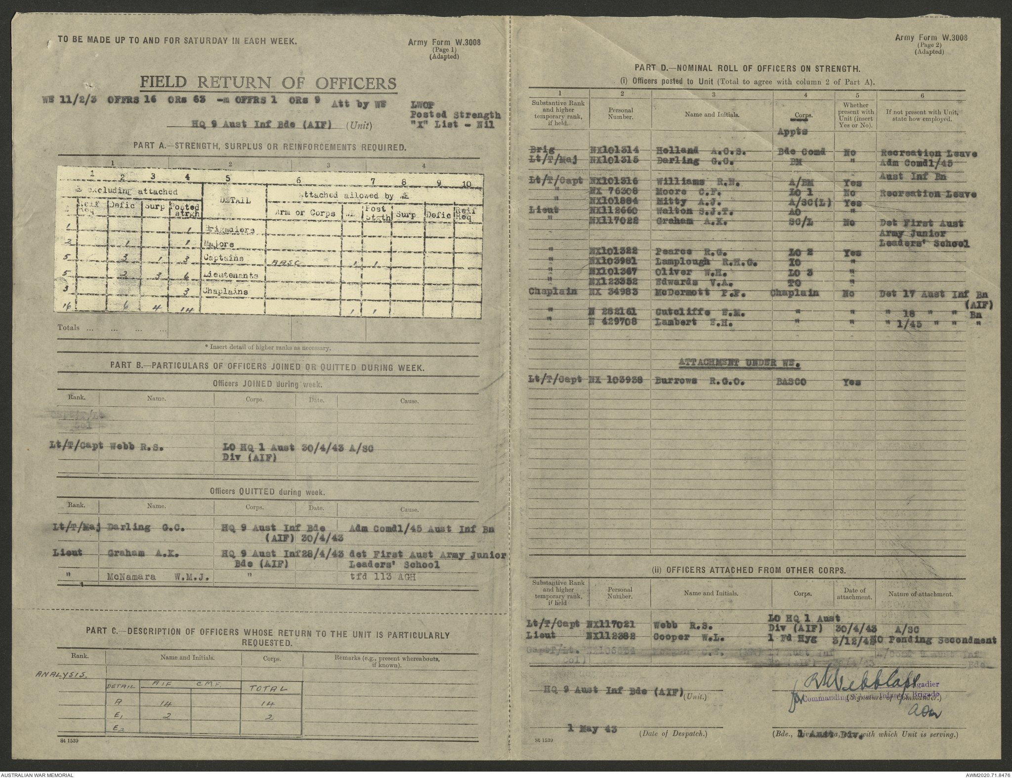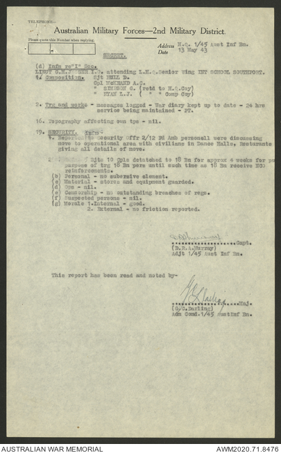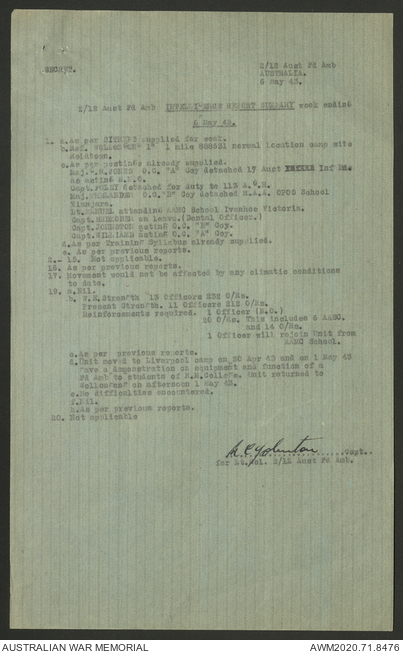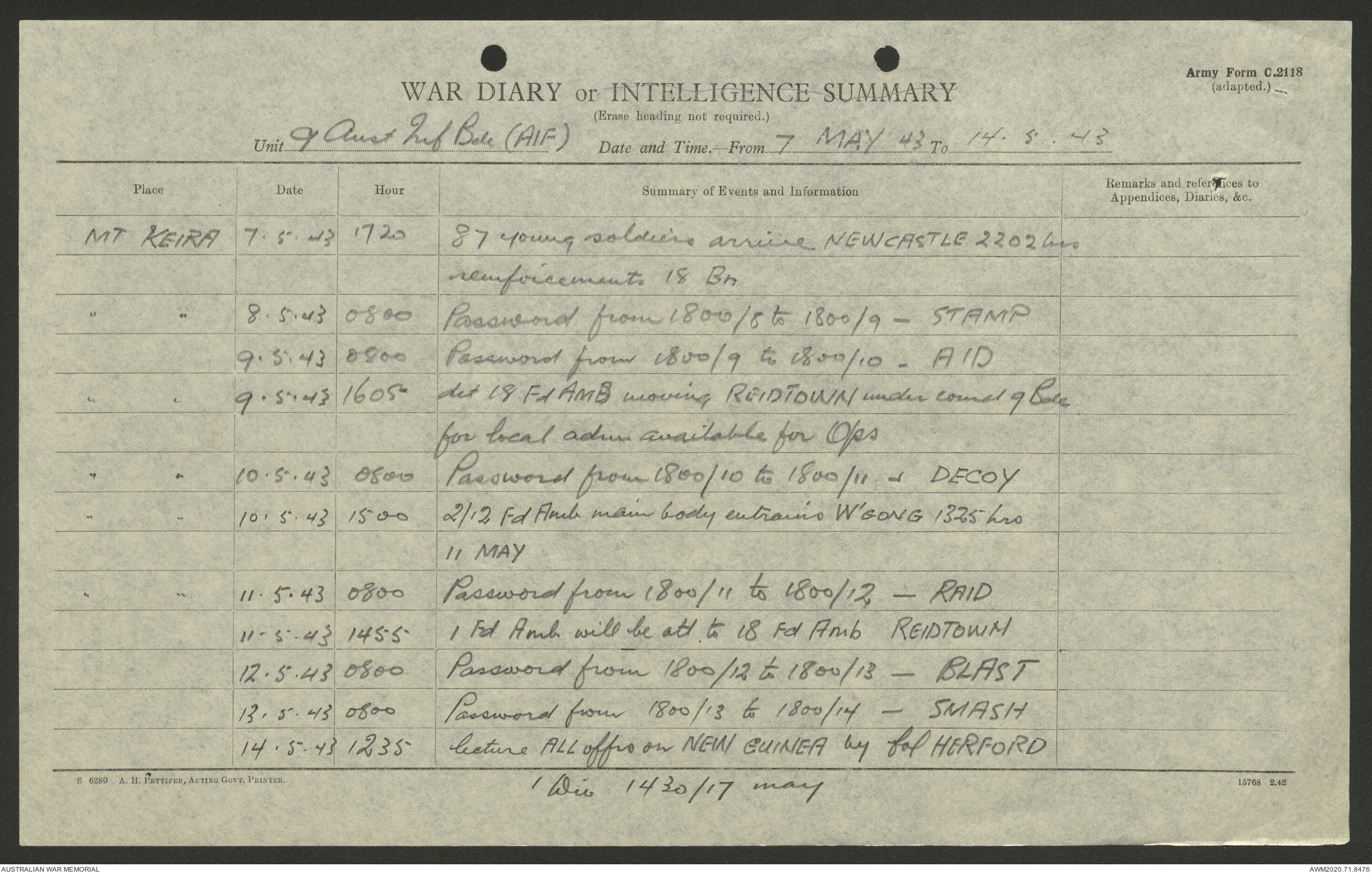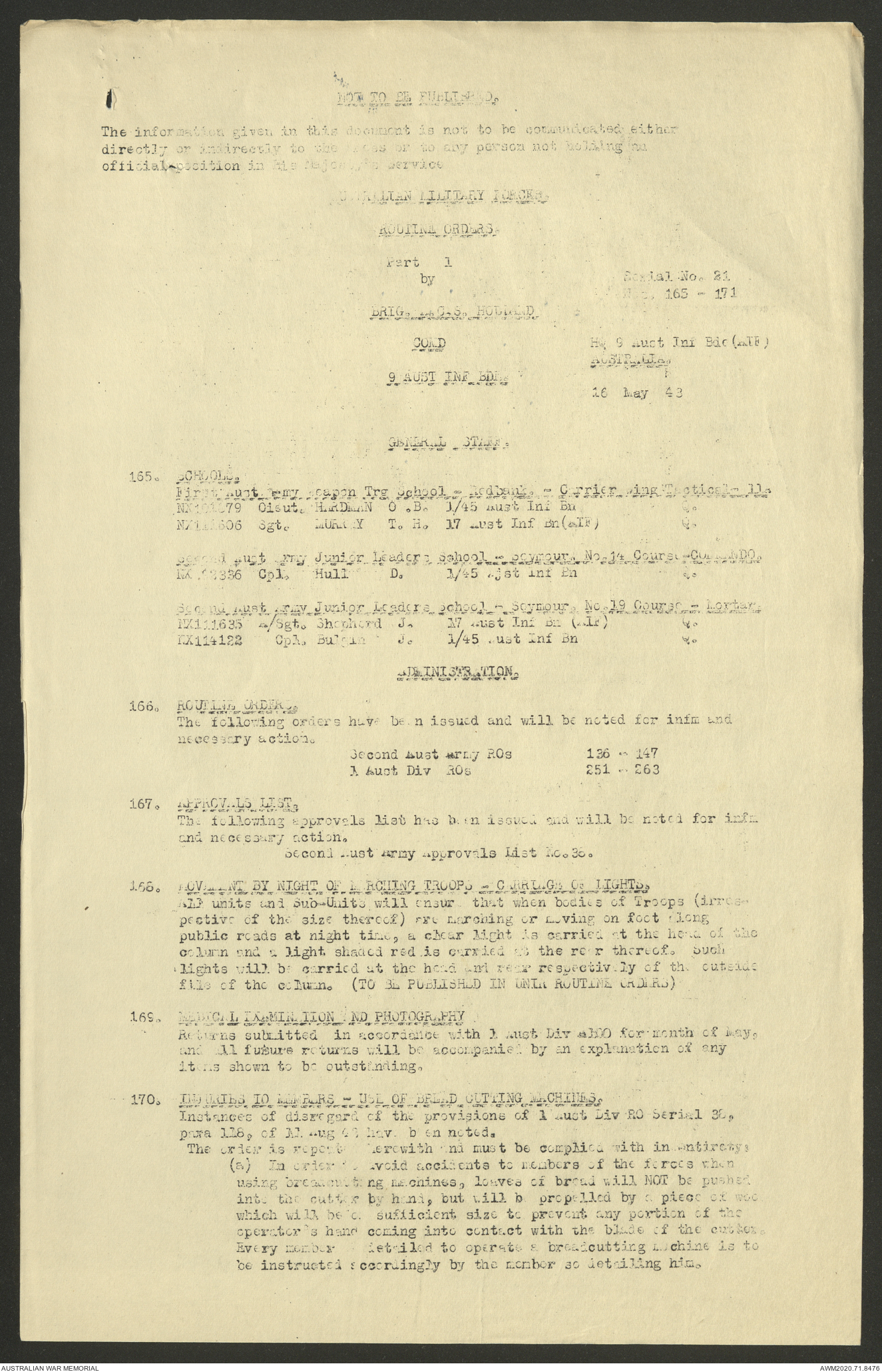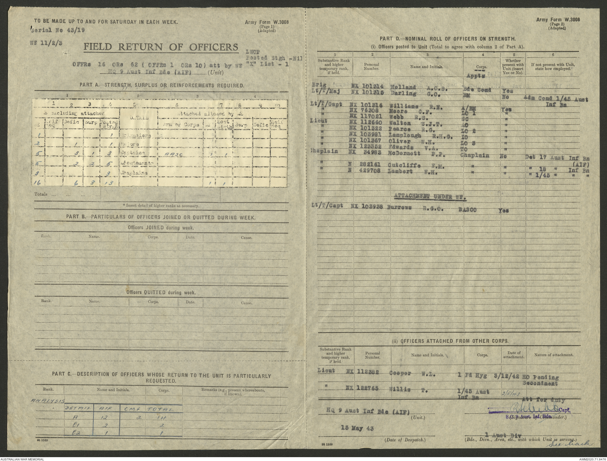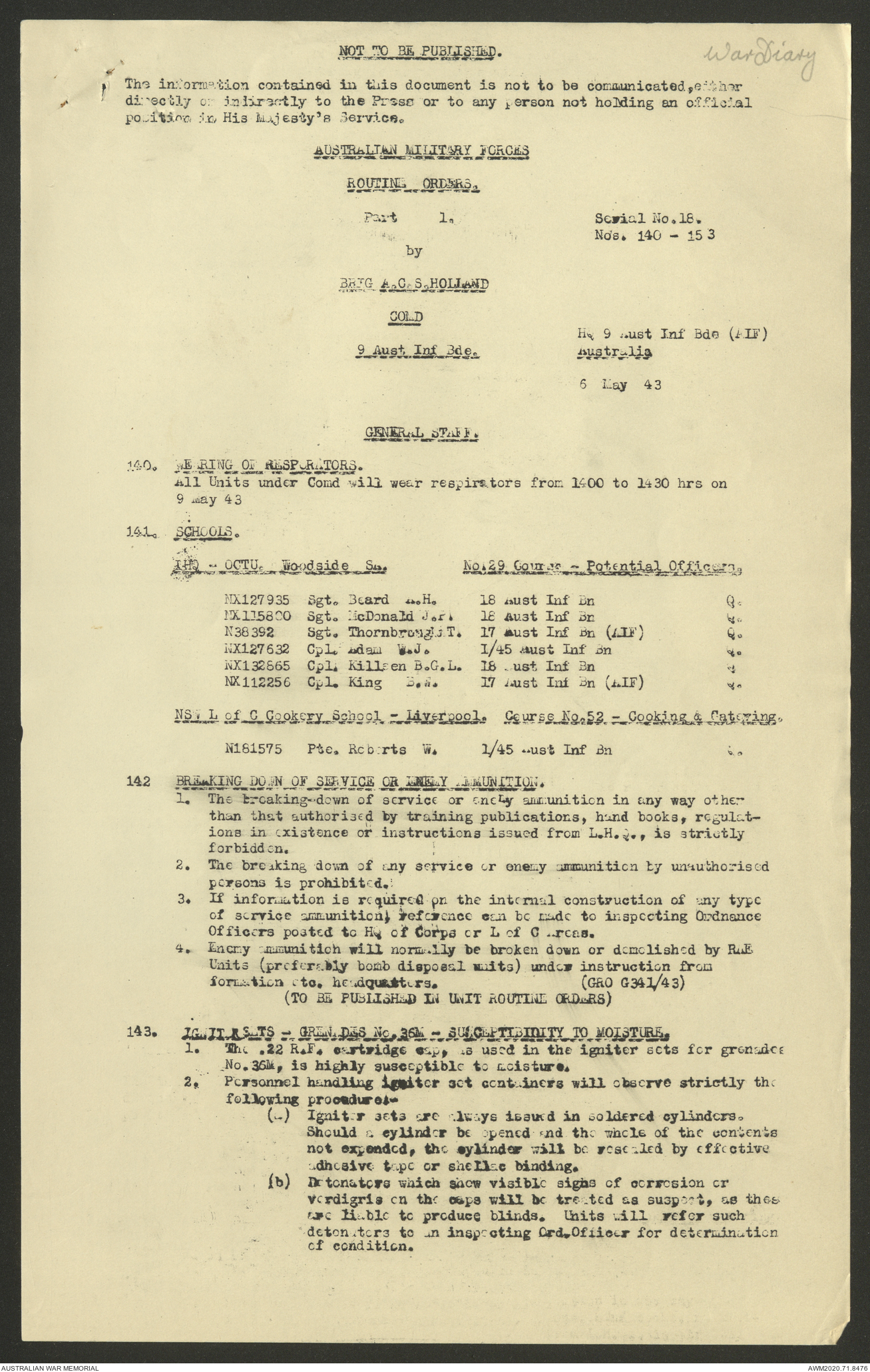 AWM52 8/2/9/22 - [Unit War Diaries, 1939-45 War] HQ 9 Australian Infantry Brigade AIF, May 1943