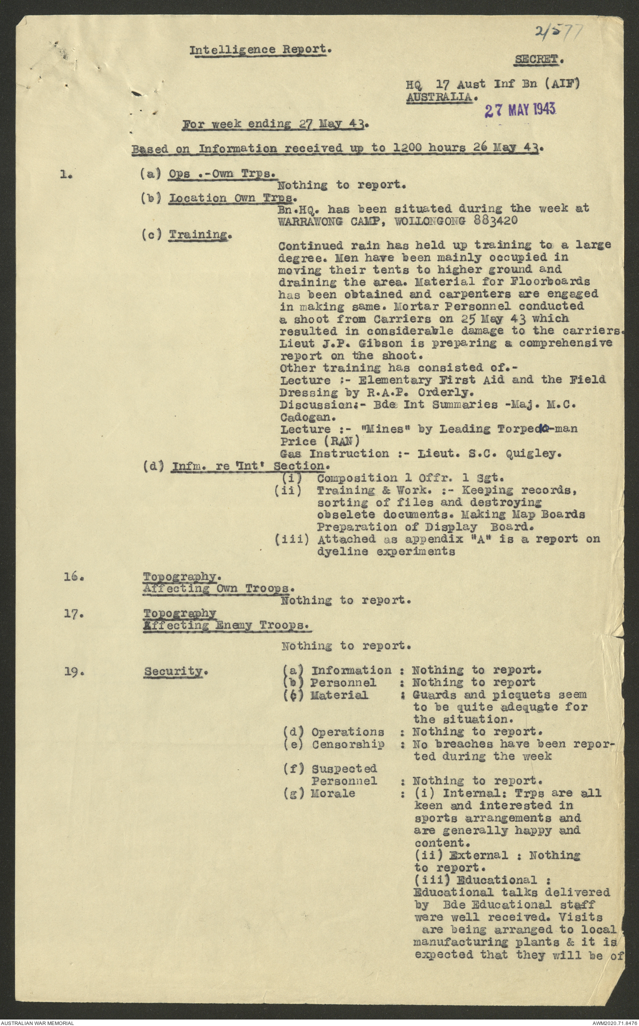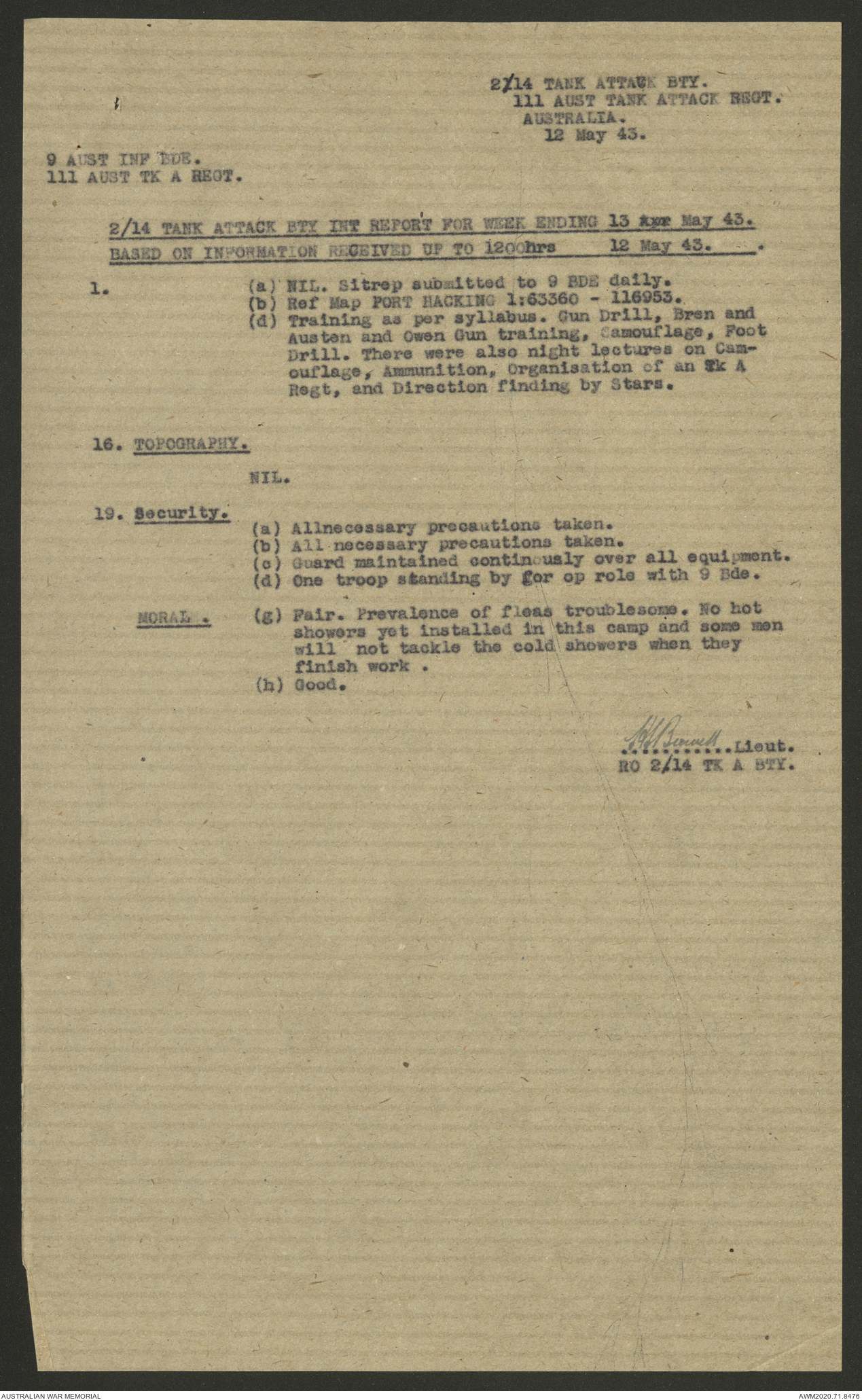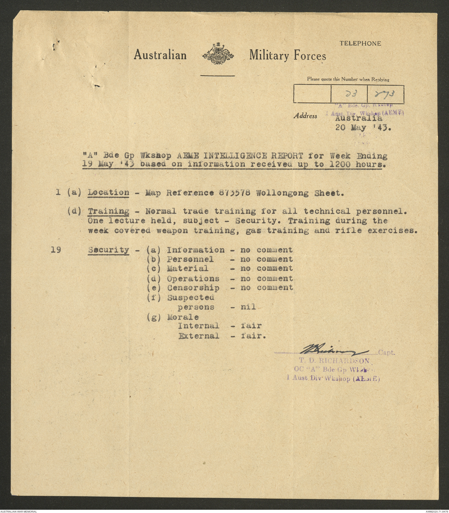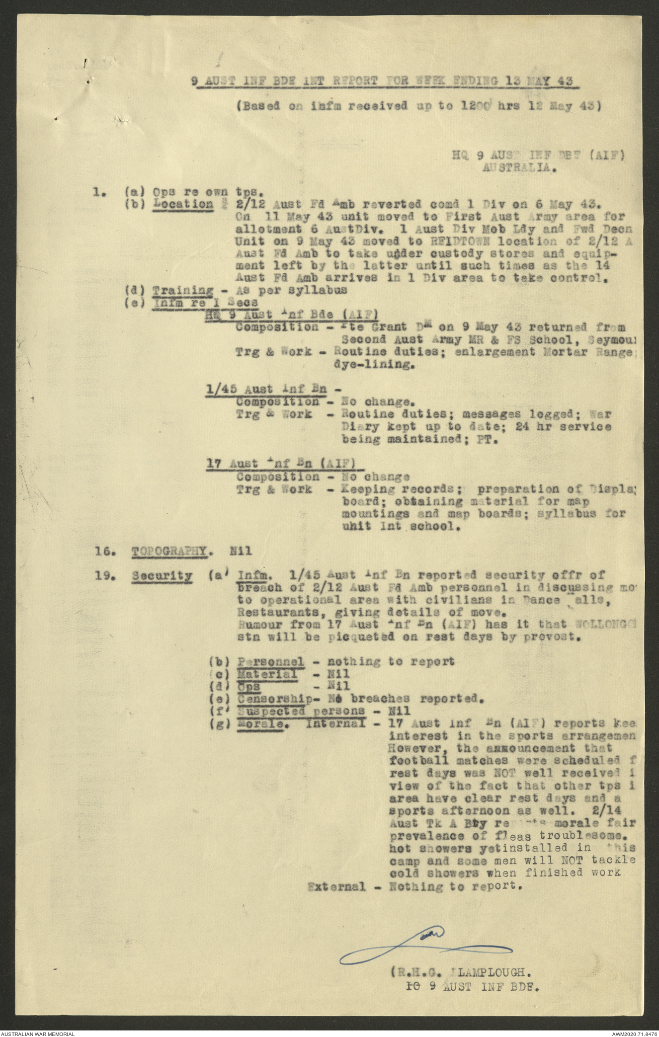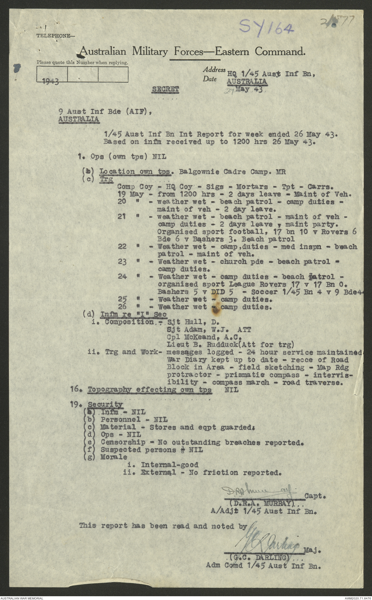 AWM52 8/2/9/22 - [Unit War Diaries, 1939-45 War] HQ 9 Australian Infantry Brigade AIF, May 1943