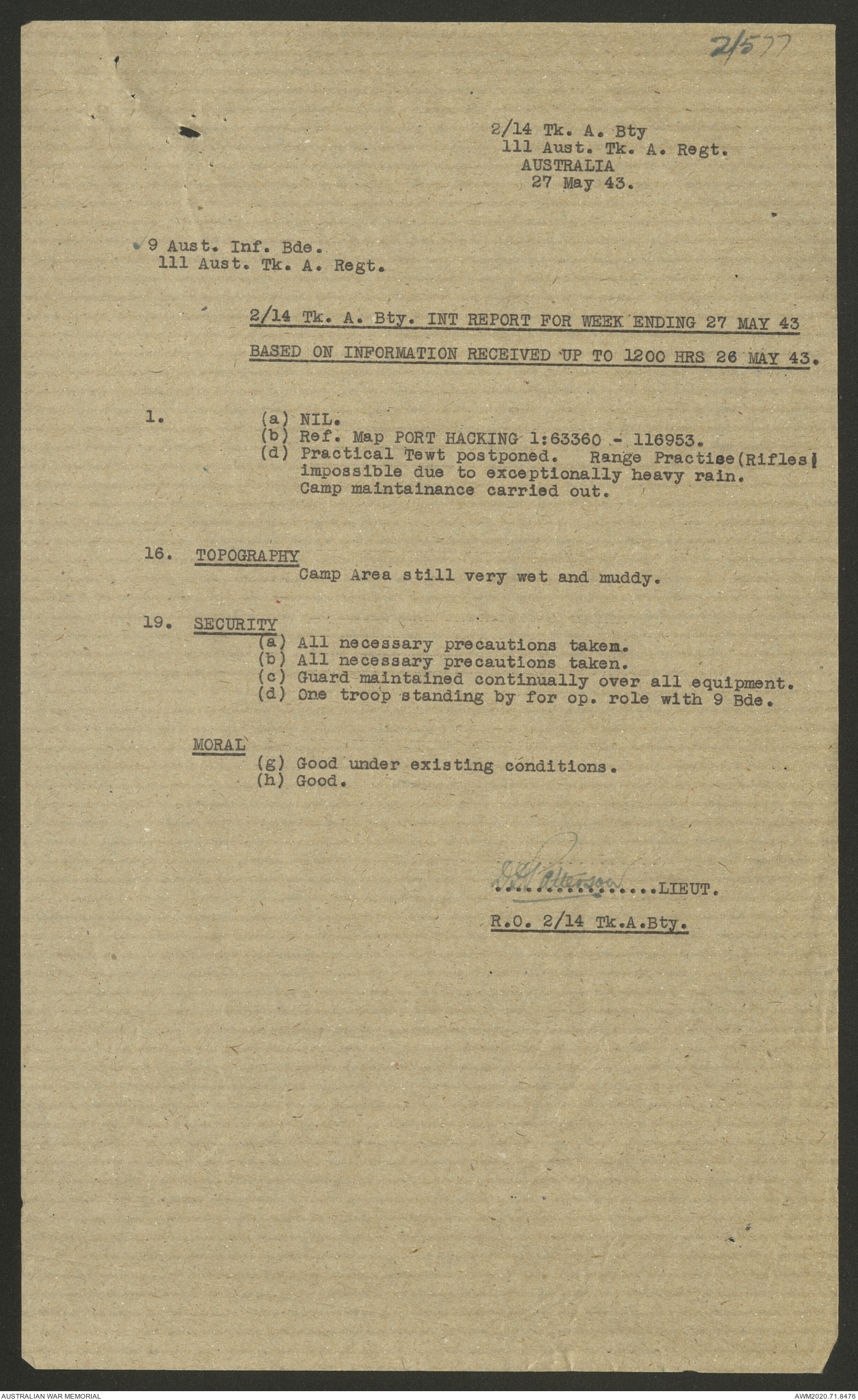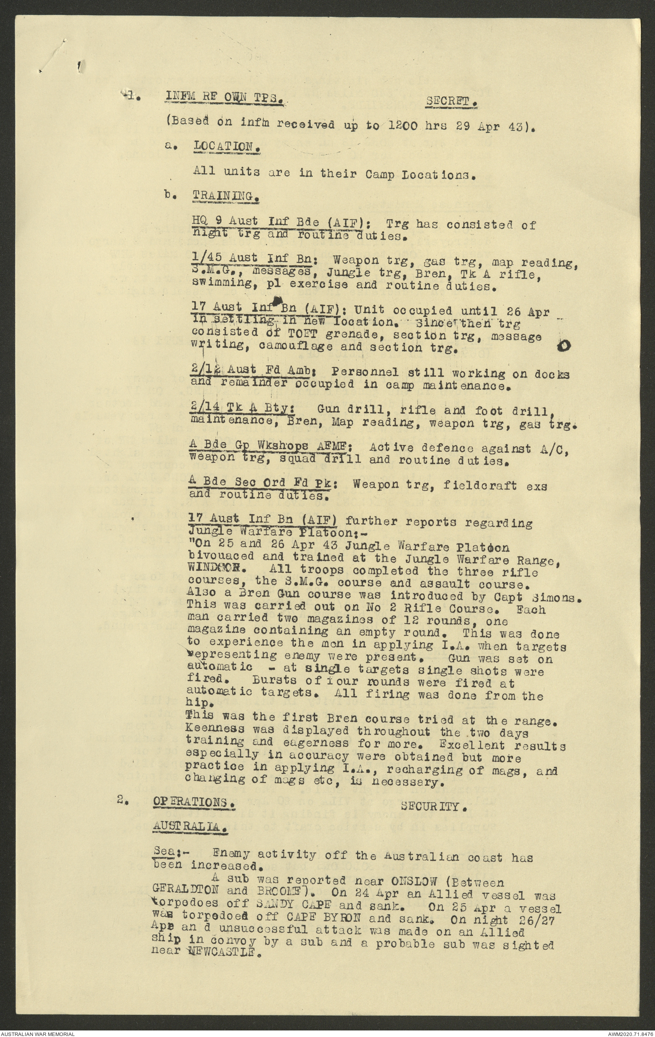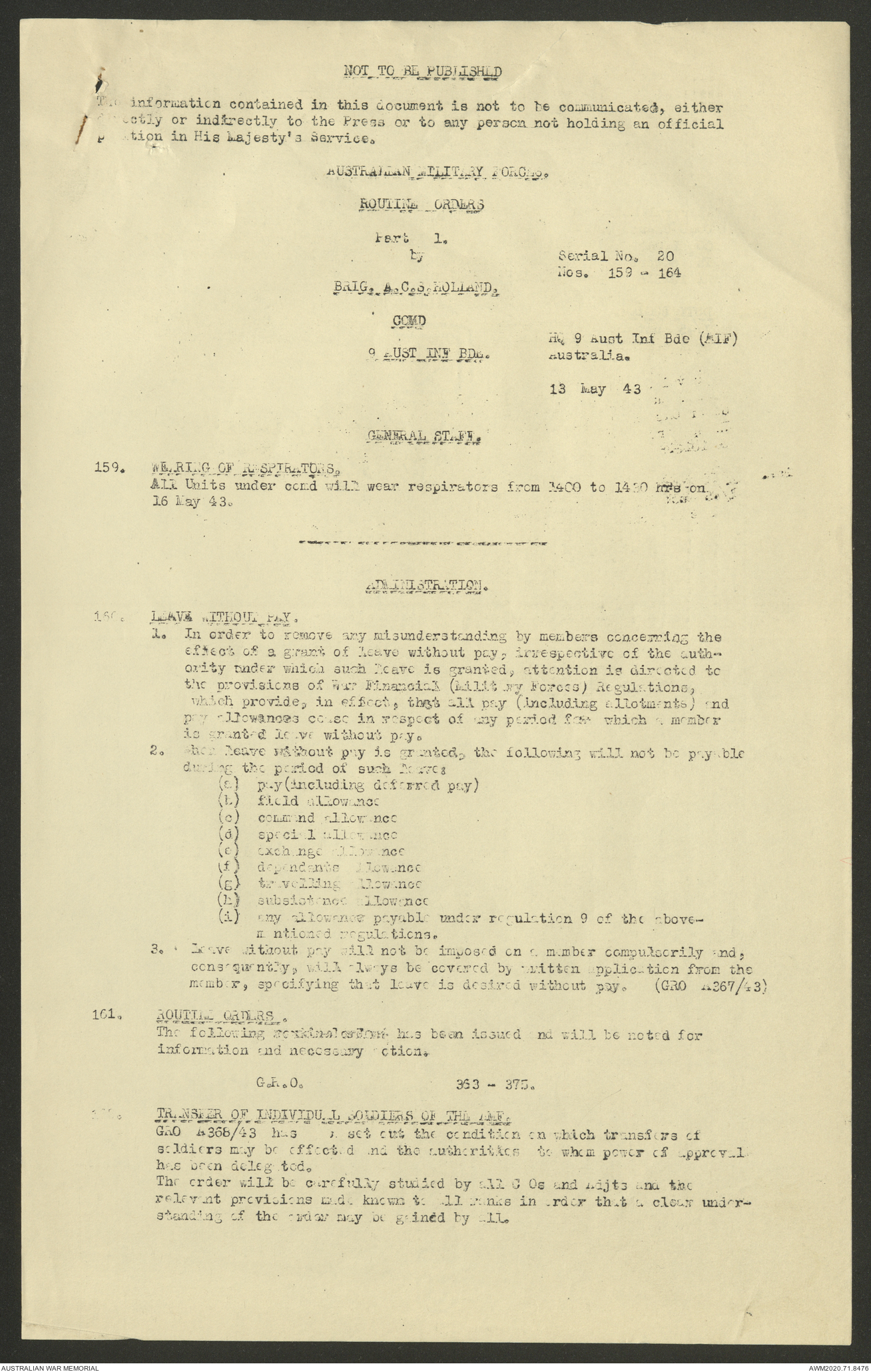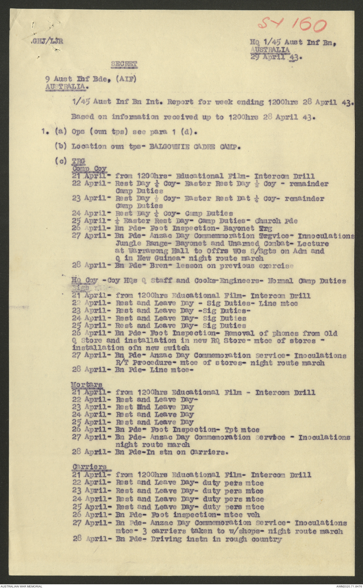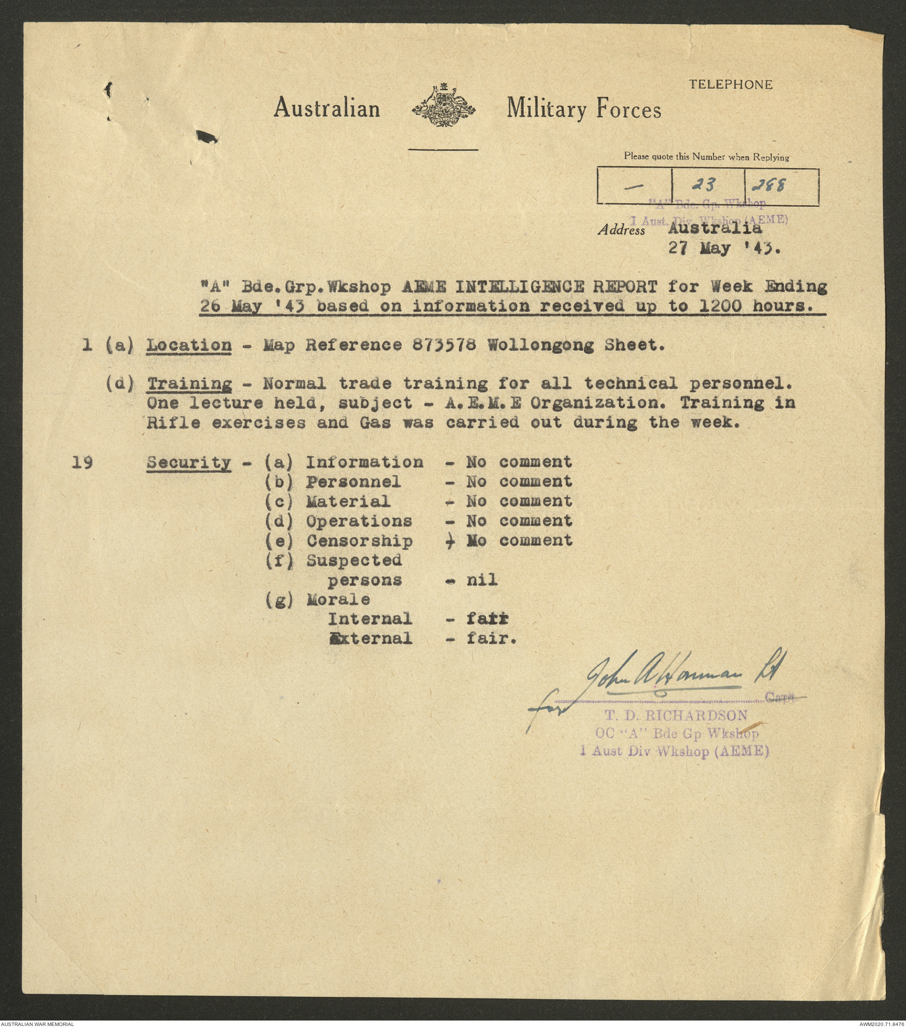 AWM52 8/2/9/22 - [Unit War Diaries, 1939-45 War] HQ 9 Australian Infantry Brigade AIF, May 1943