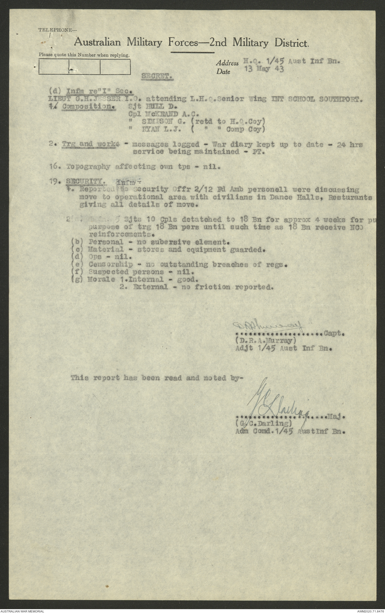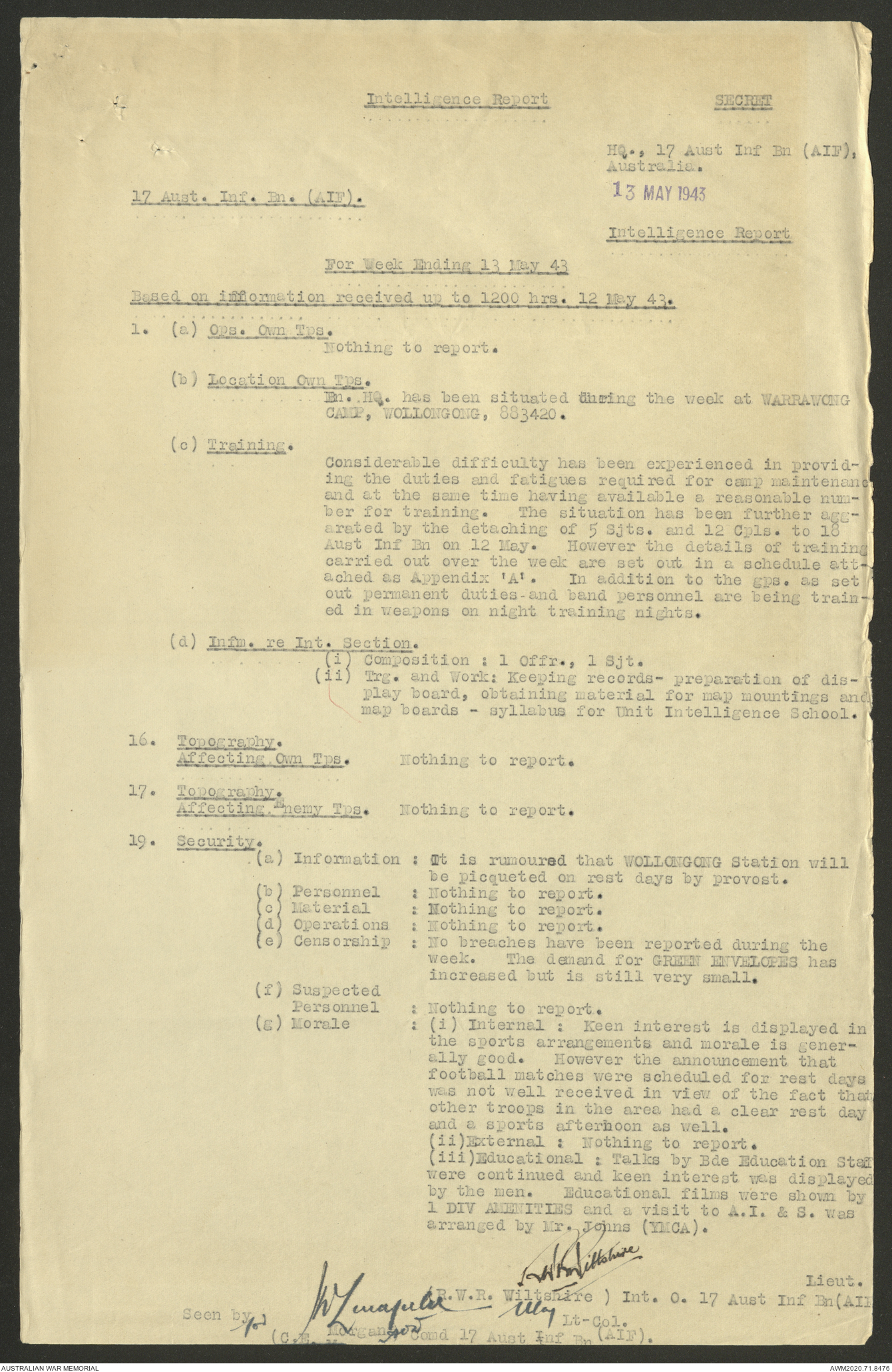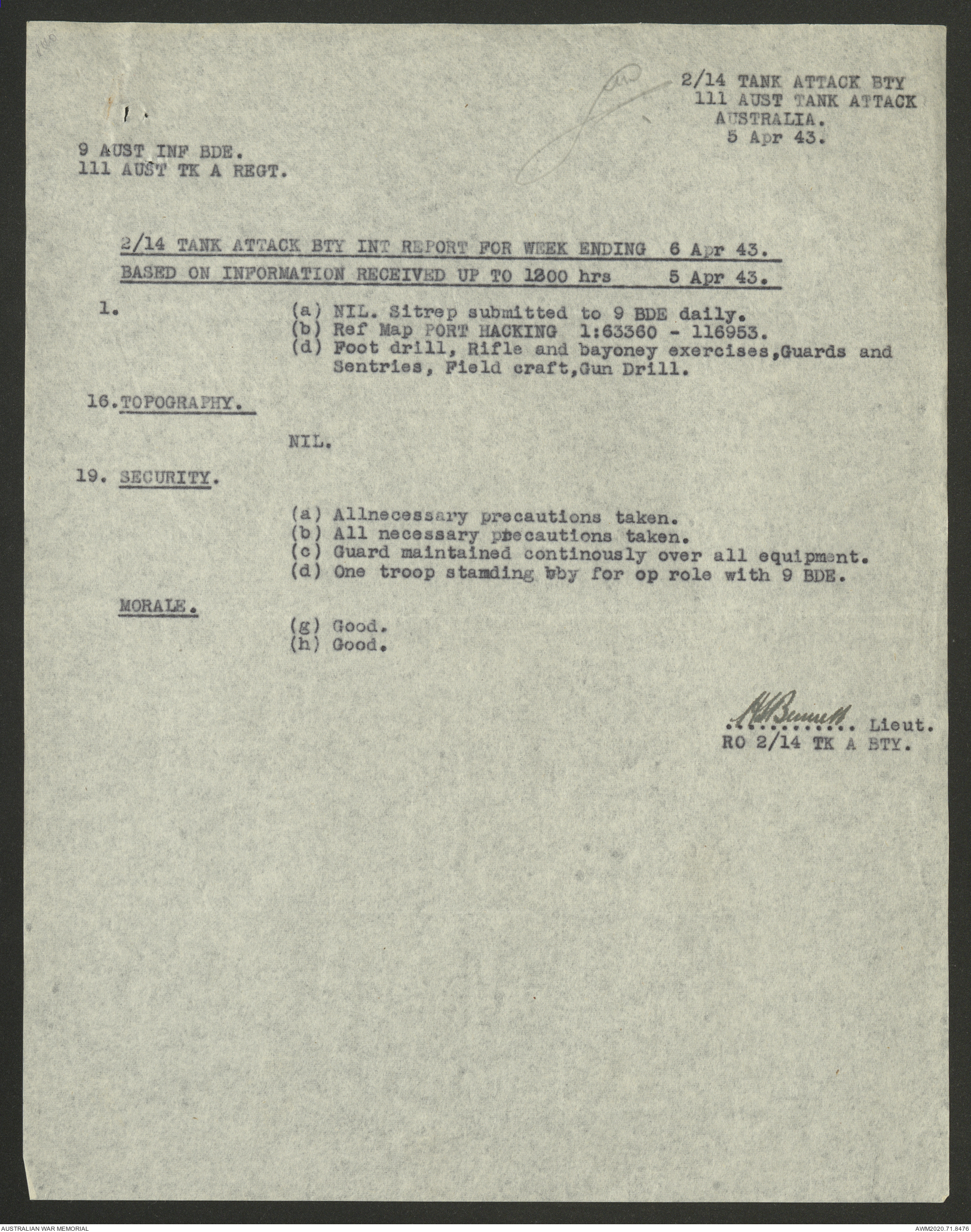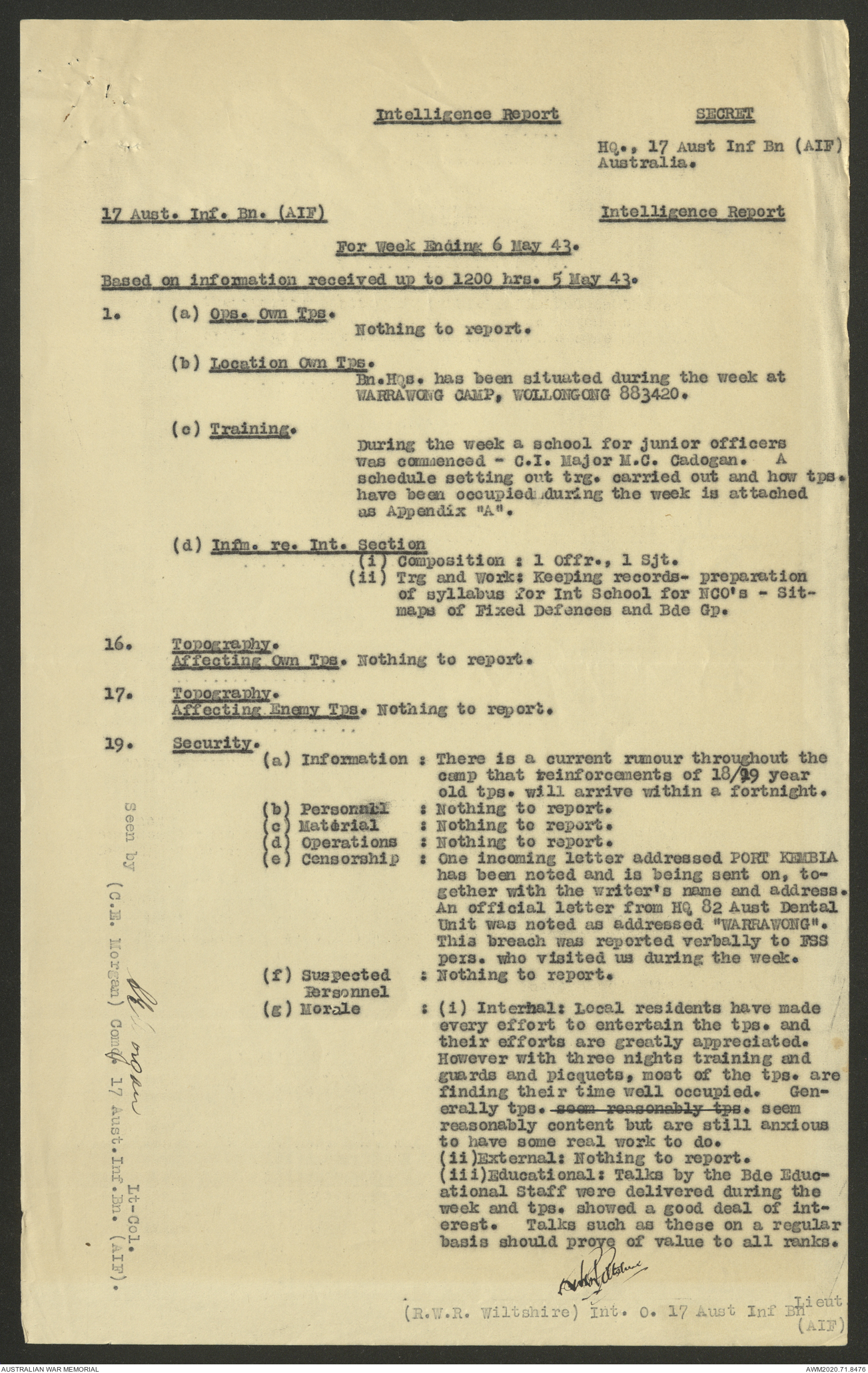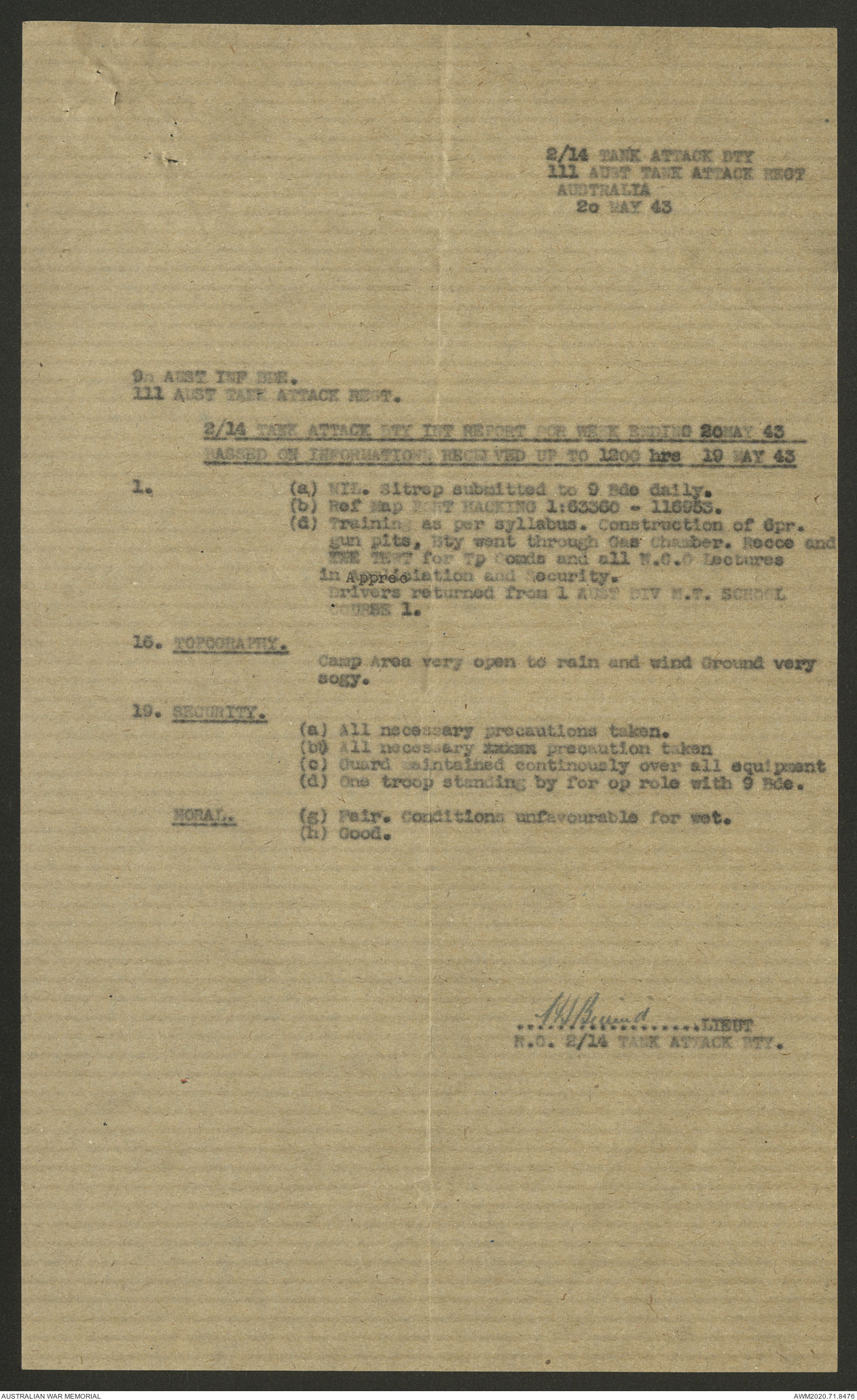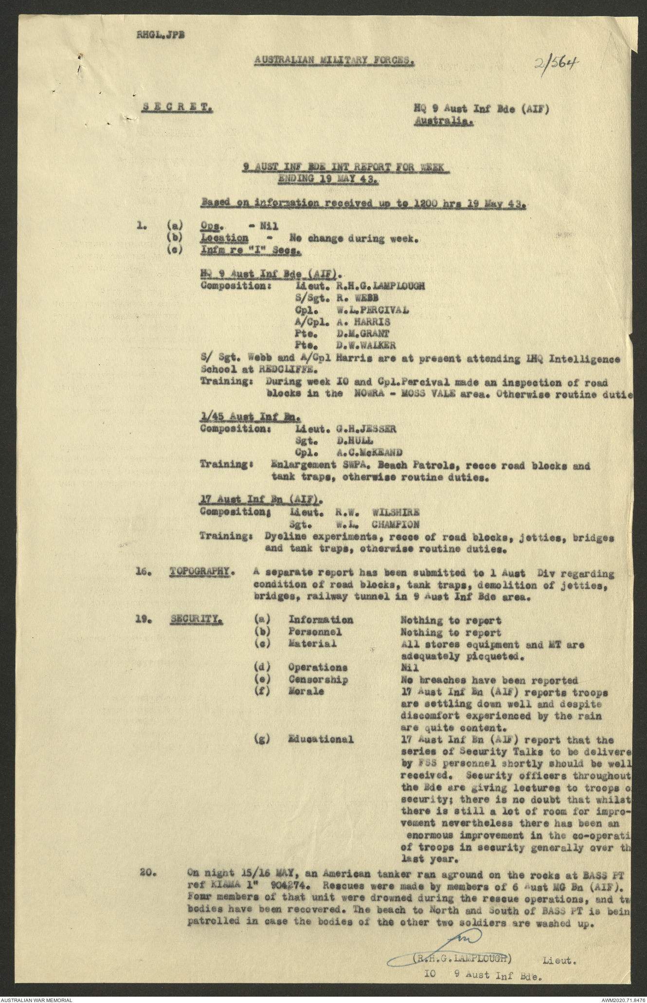 AWM52 8/2/9/22 - [Unit War Diaries, 1939-45 War] HQ 9 Australian Infantry Brigade AIF, May 1943