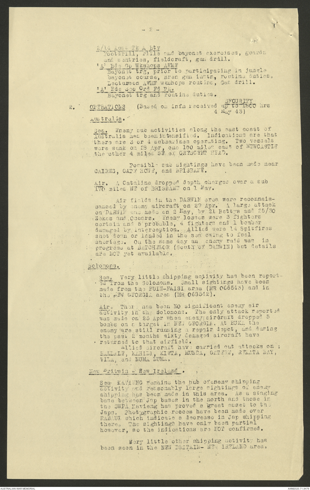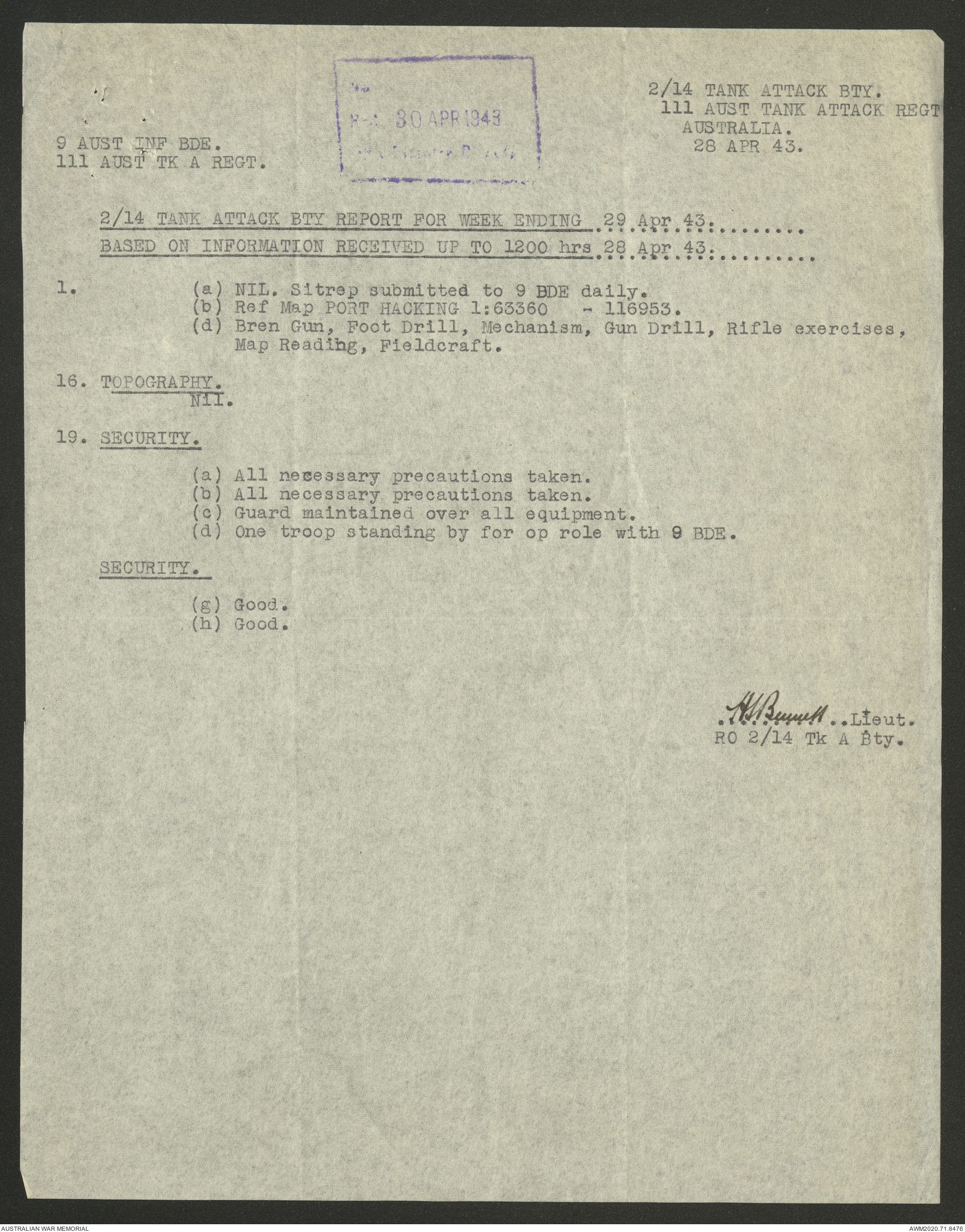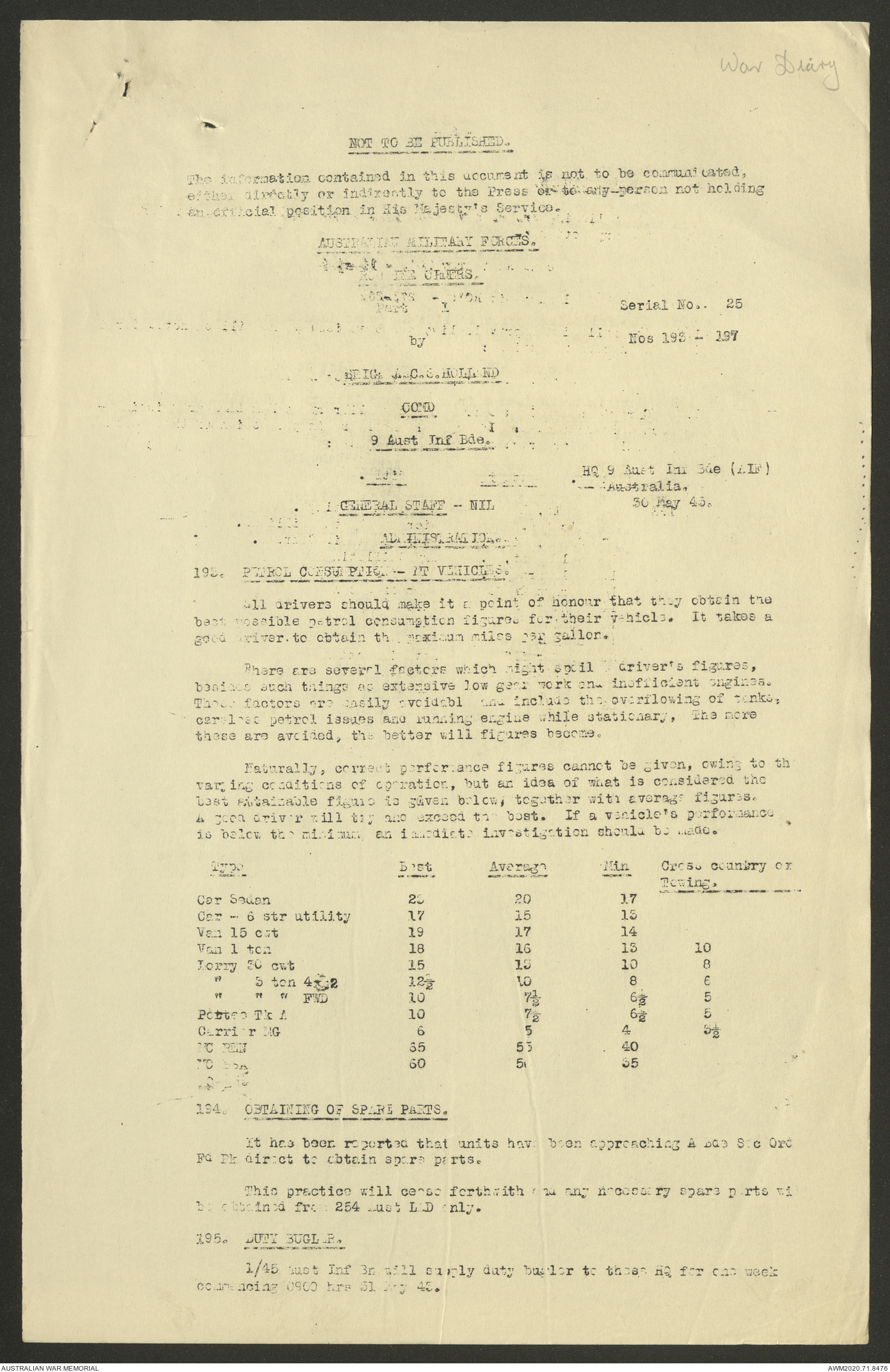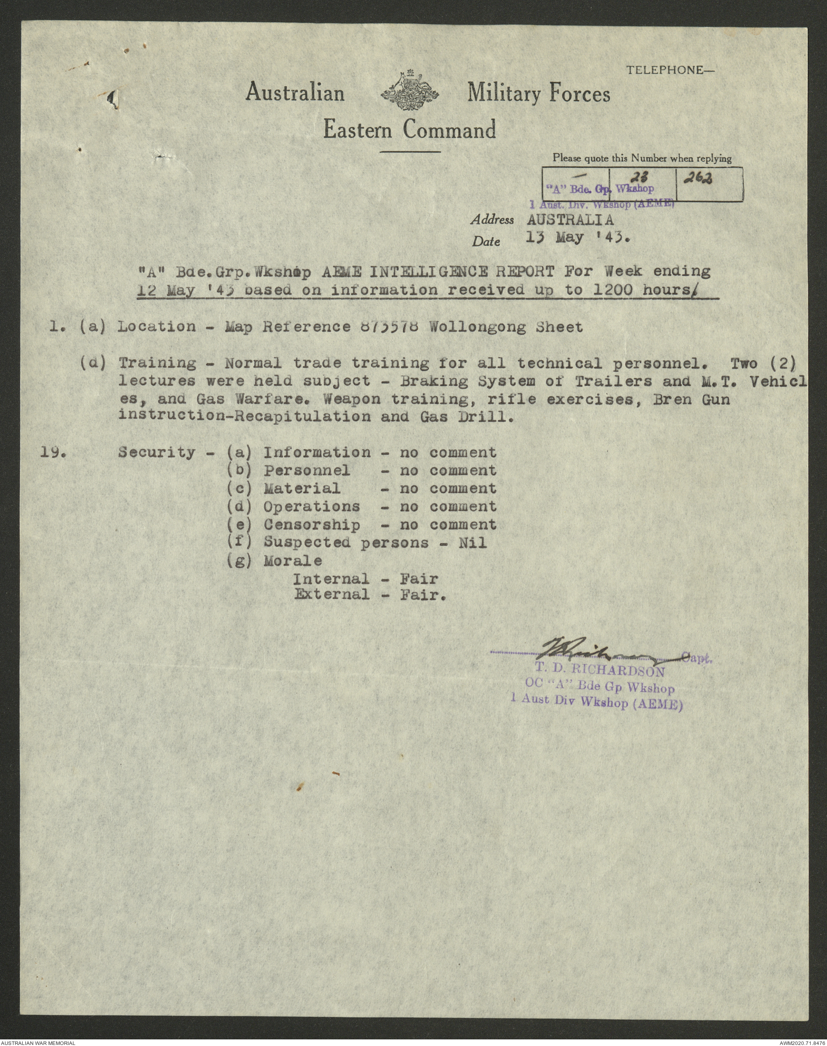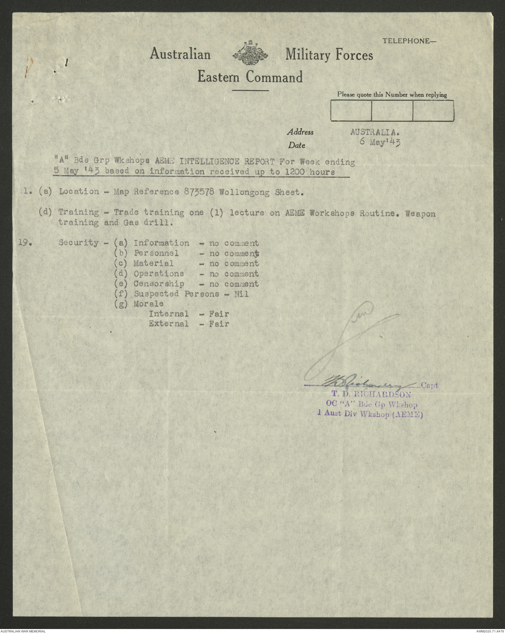 AWM52 8/2/9/22 - [Unit War Diaries, 1939-45 War] HQ 9 Australian Infantry Brigade AIF, May 1943