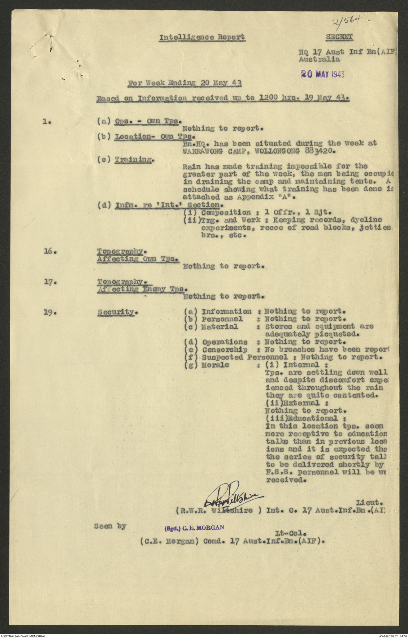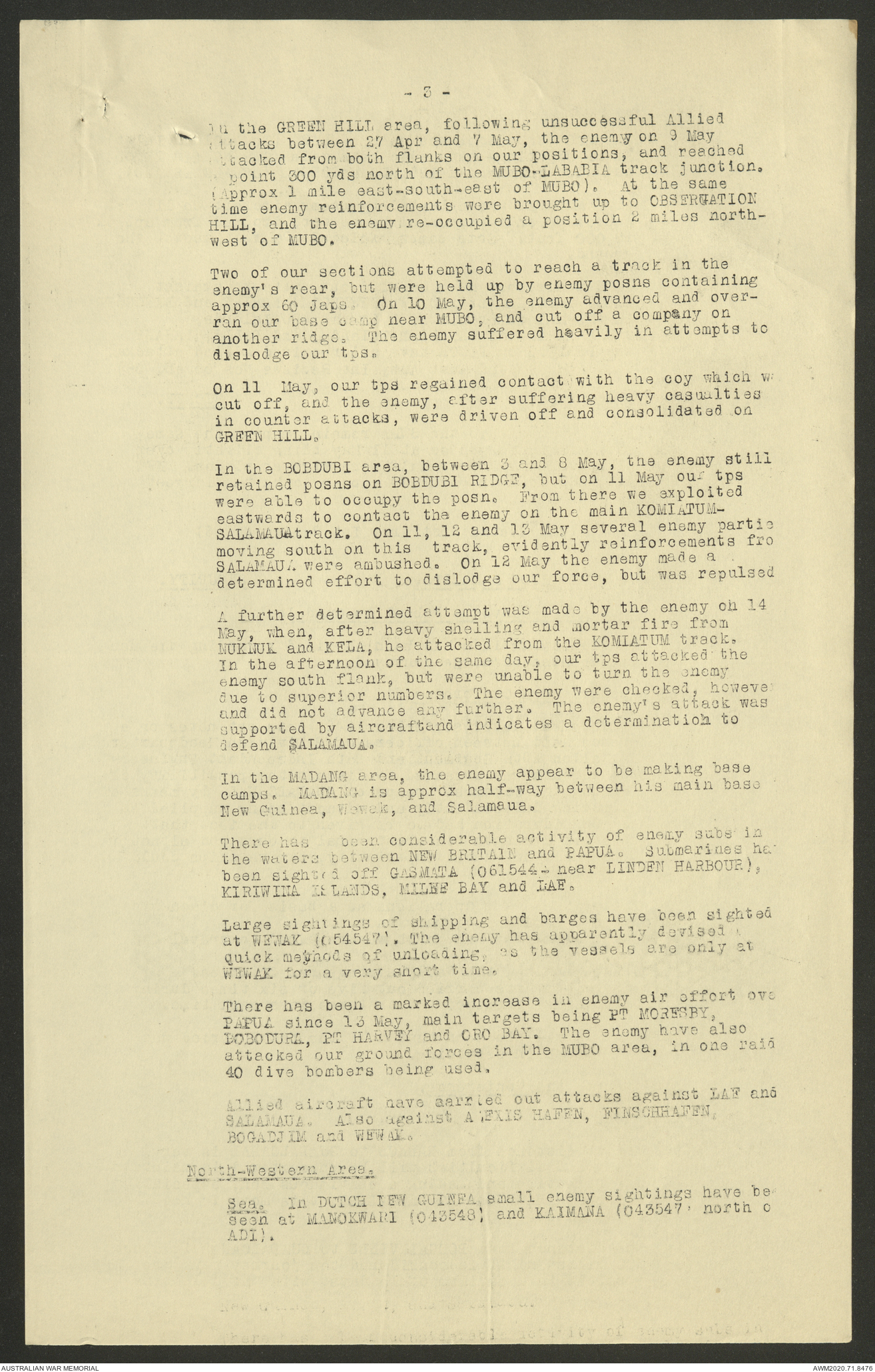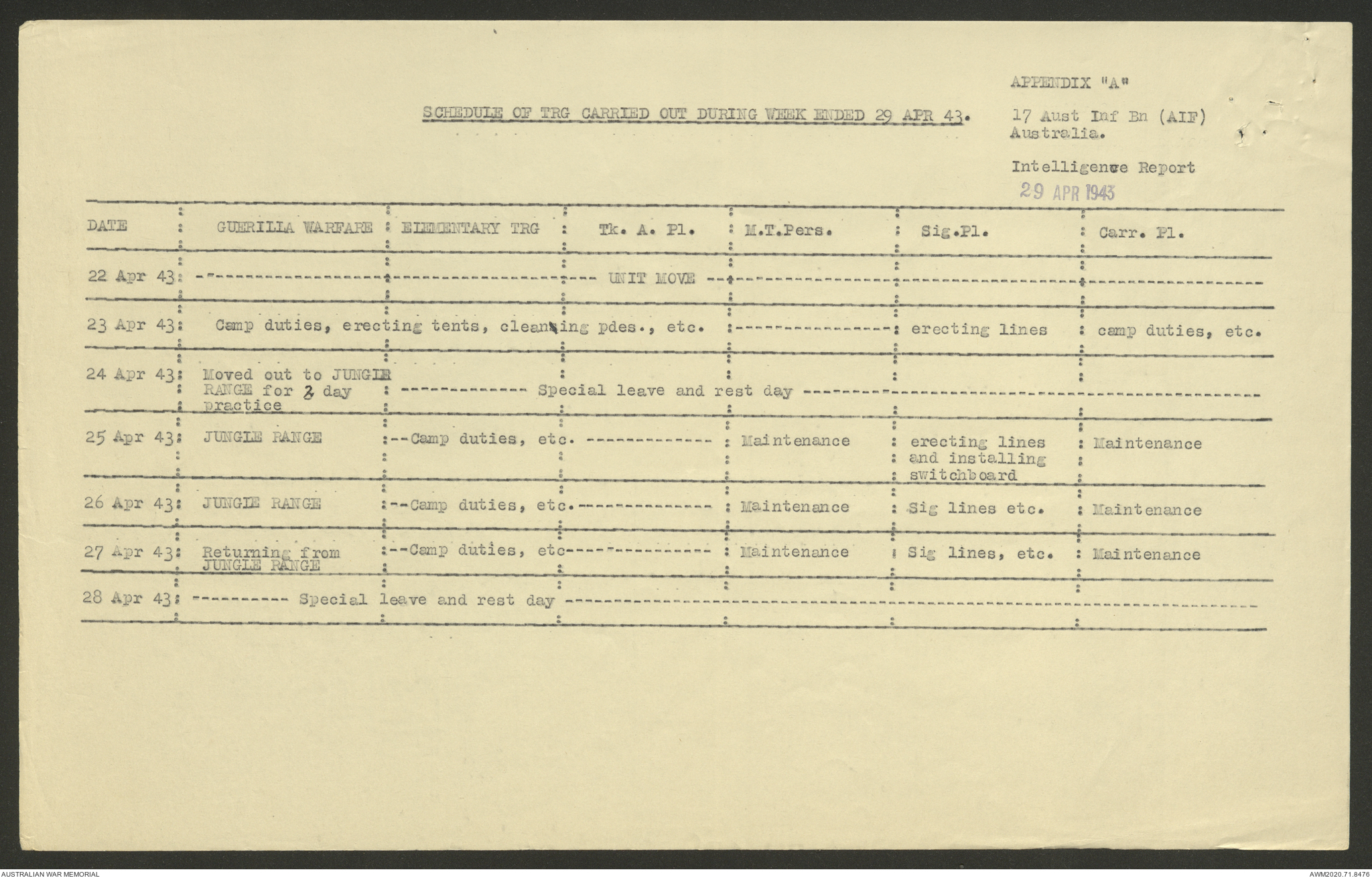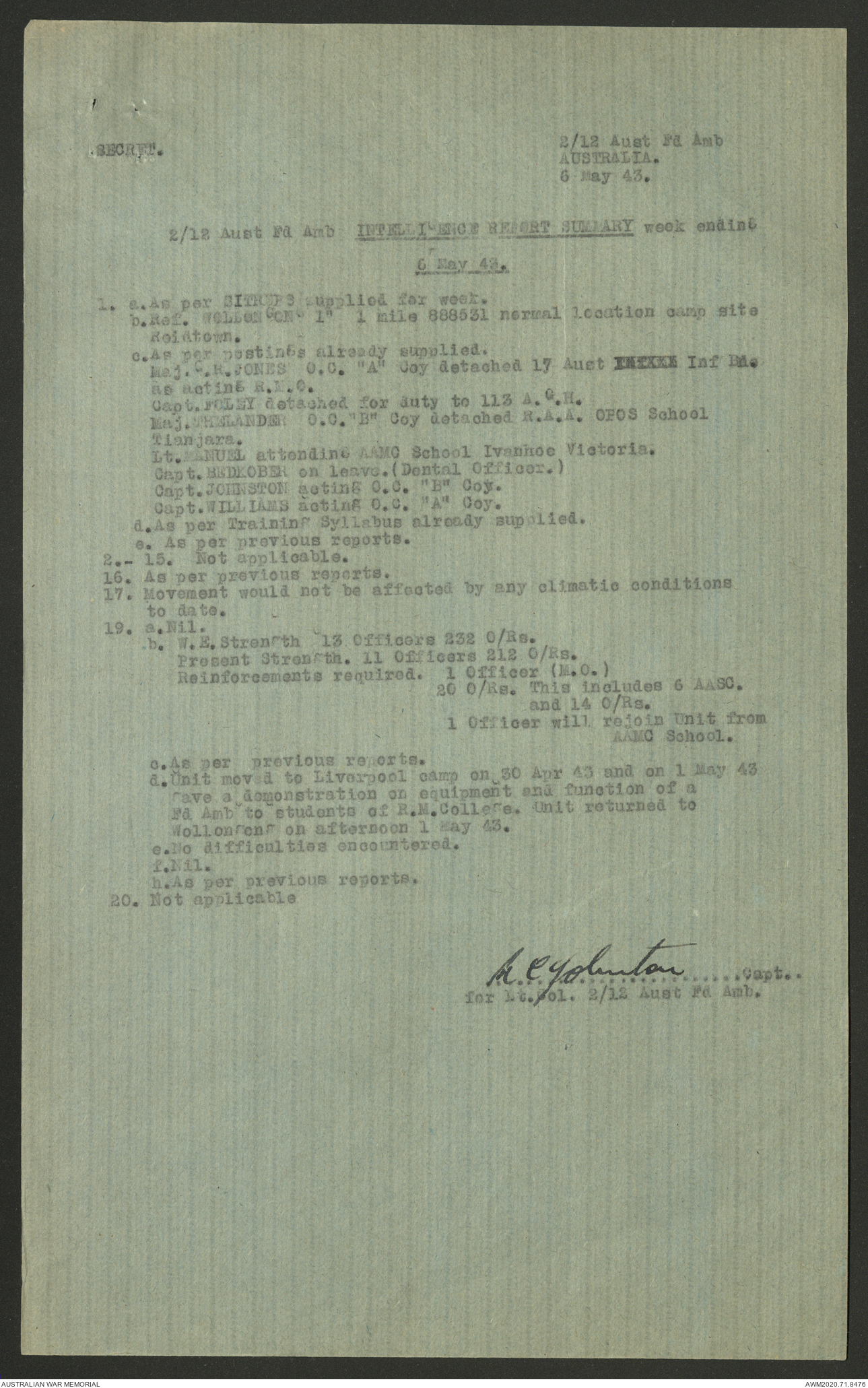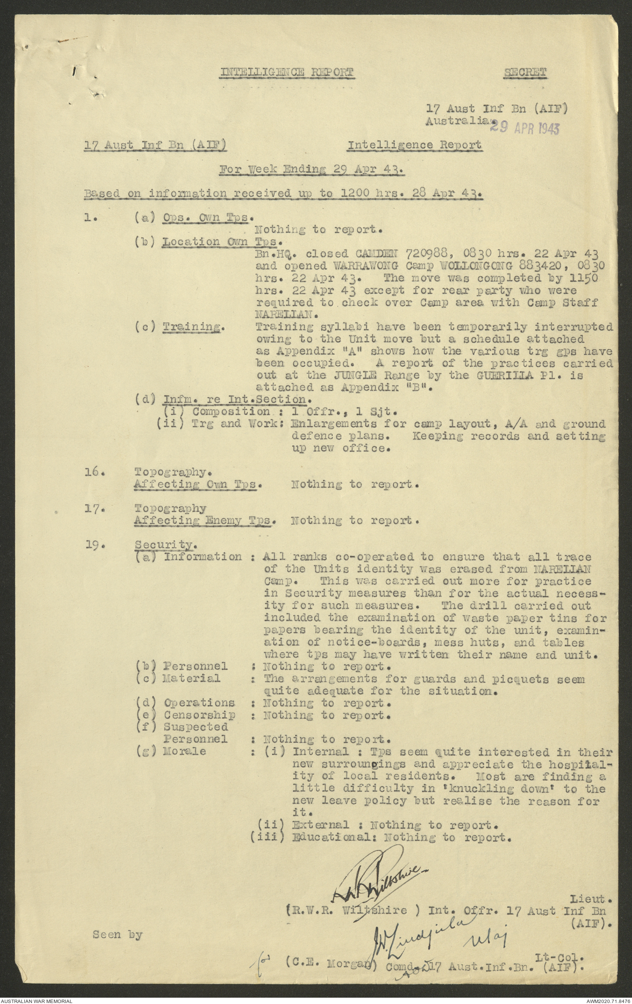 AWM52 8/2/9/22 - [Unit War Diaries, 1939-45 War] HQ 9 Australian Infantry Brigade AIF, May 1943