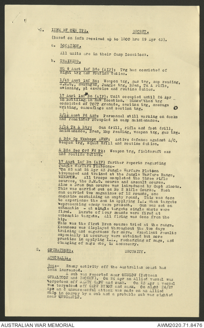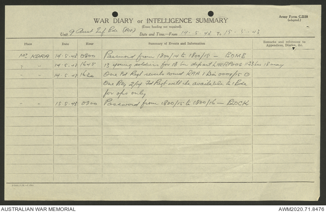 2nd AIF (Australian Imperial Force) and CMF (Citizen Military Forces) unit war diaries, 1939-45 War