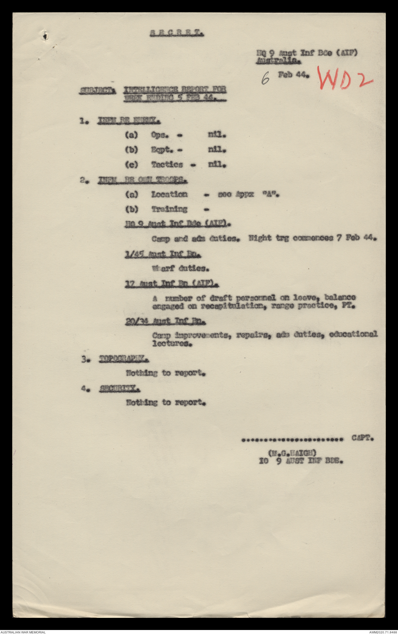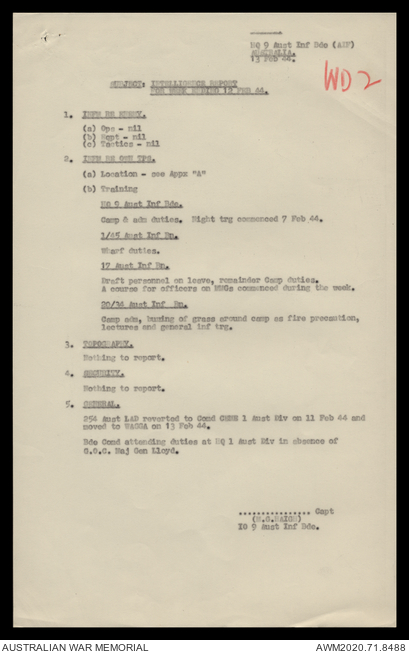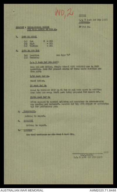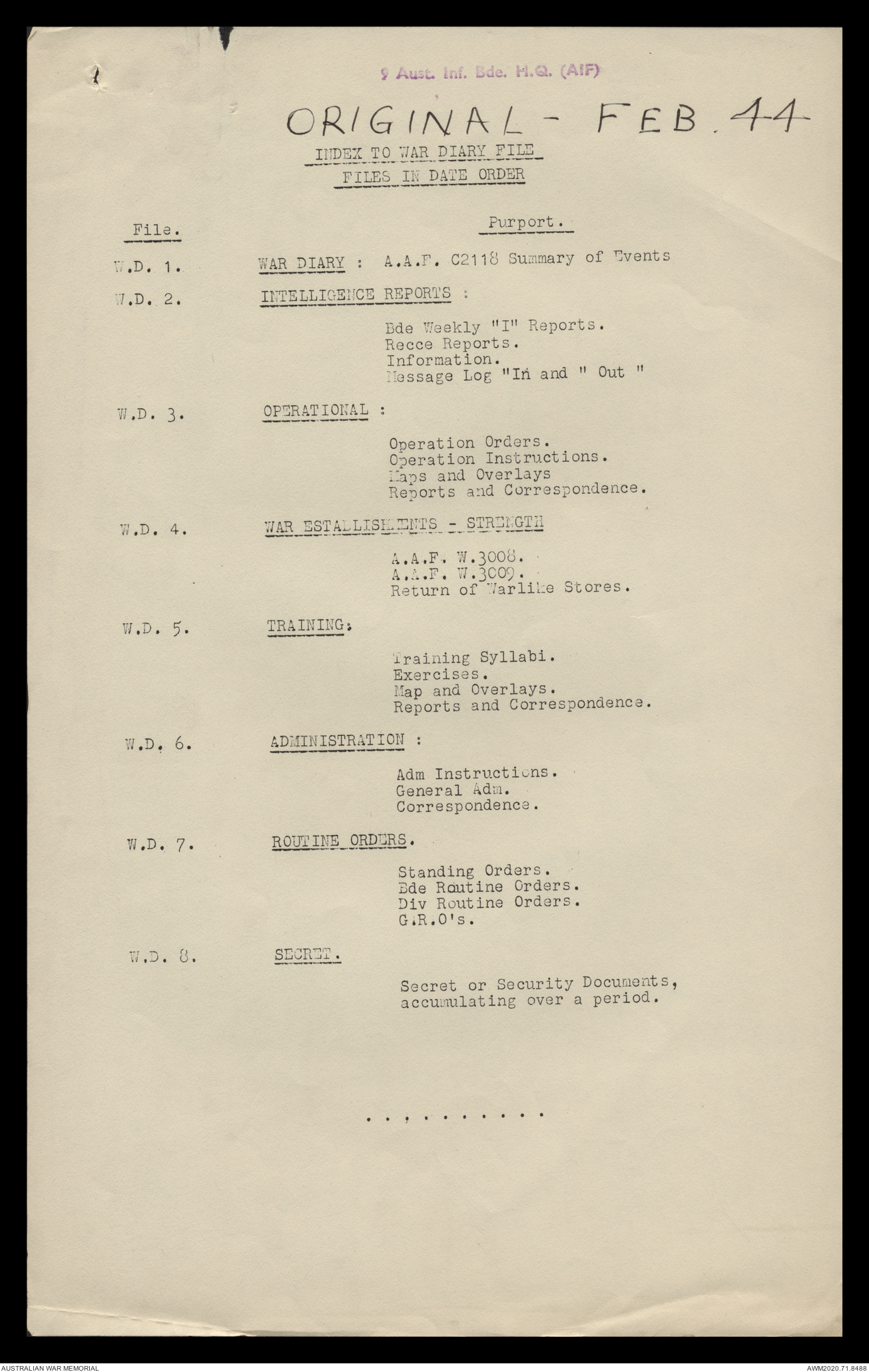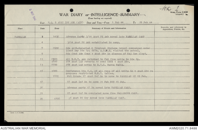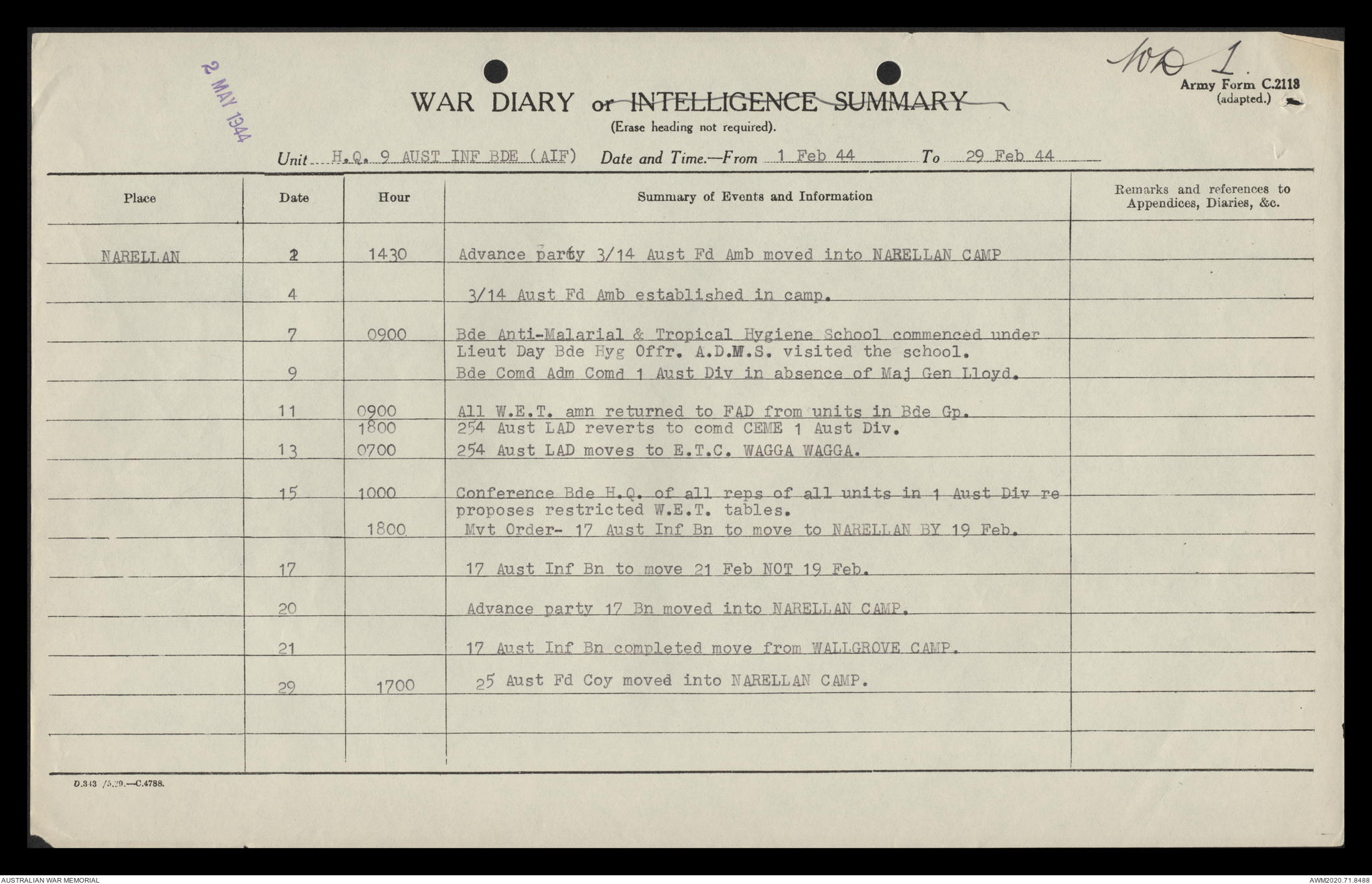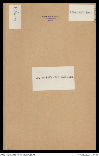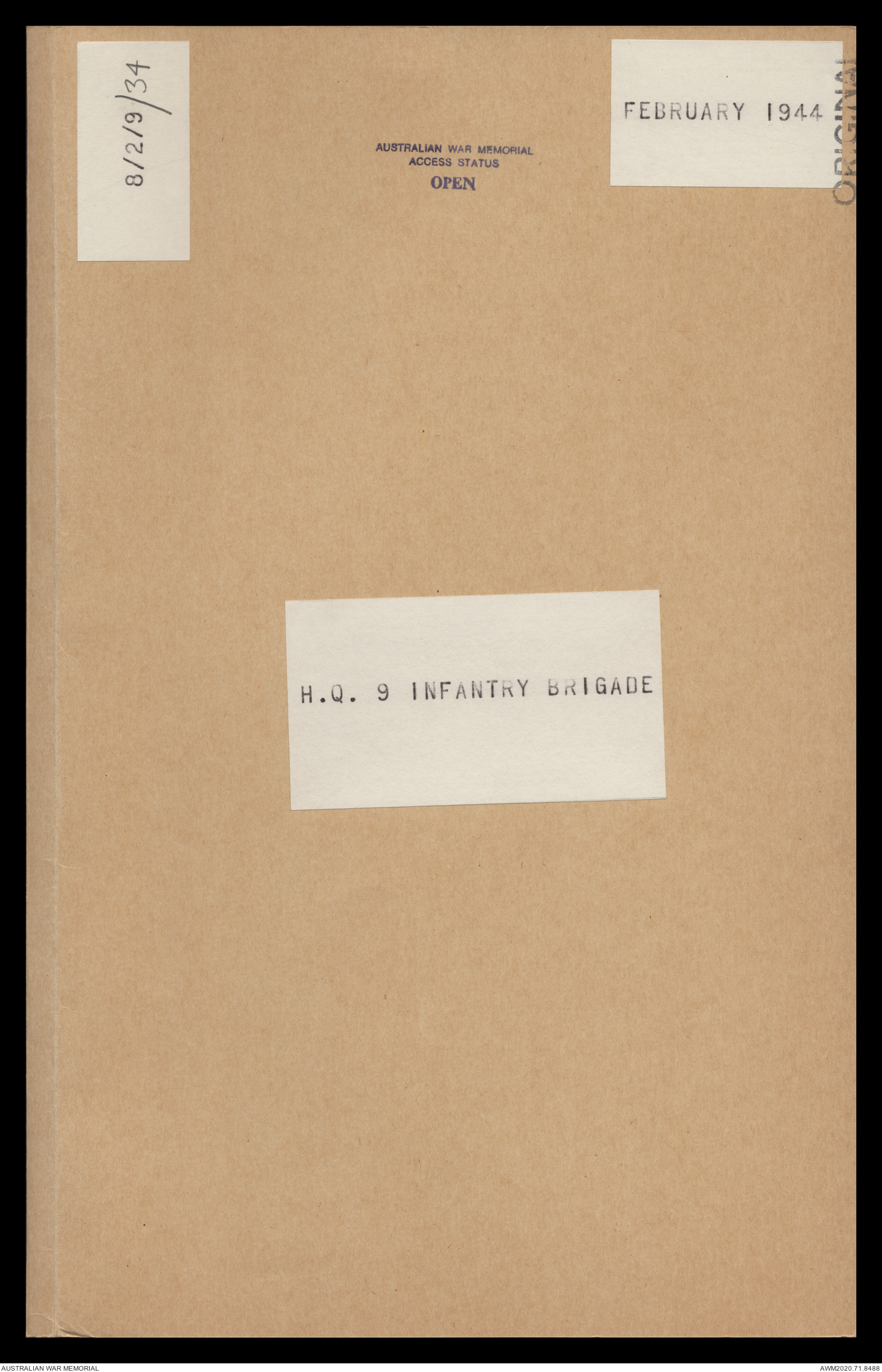 AWM52 8/2/9/34 - [Unit War Diaries, 1939-45 War] HQ 9 Australian Infantry Brigade AIF, February 1944