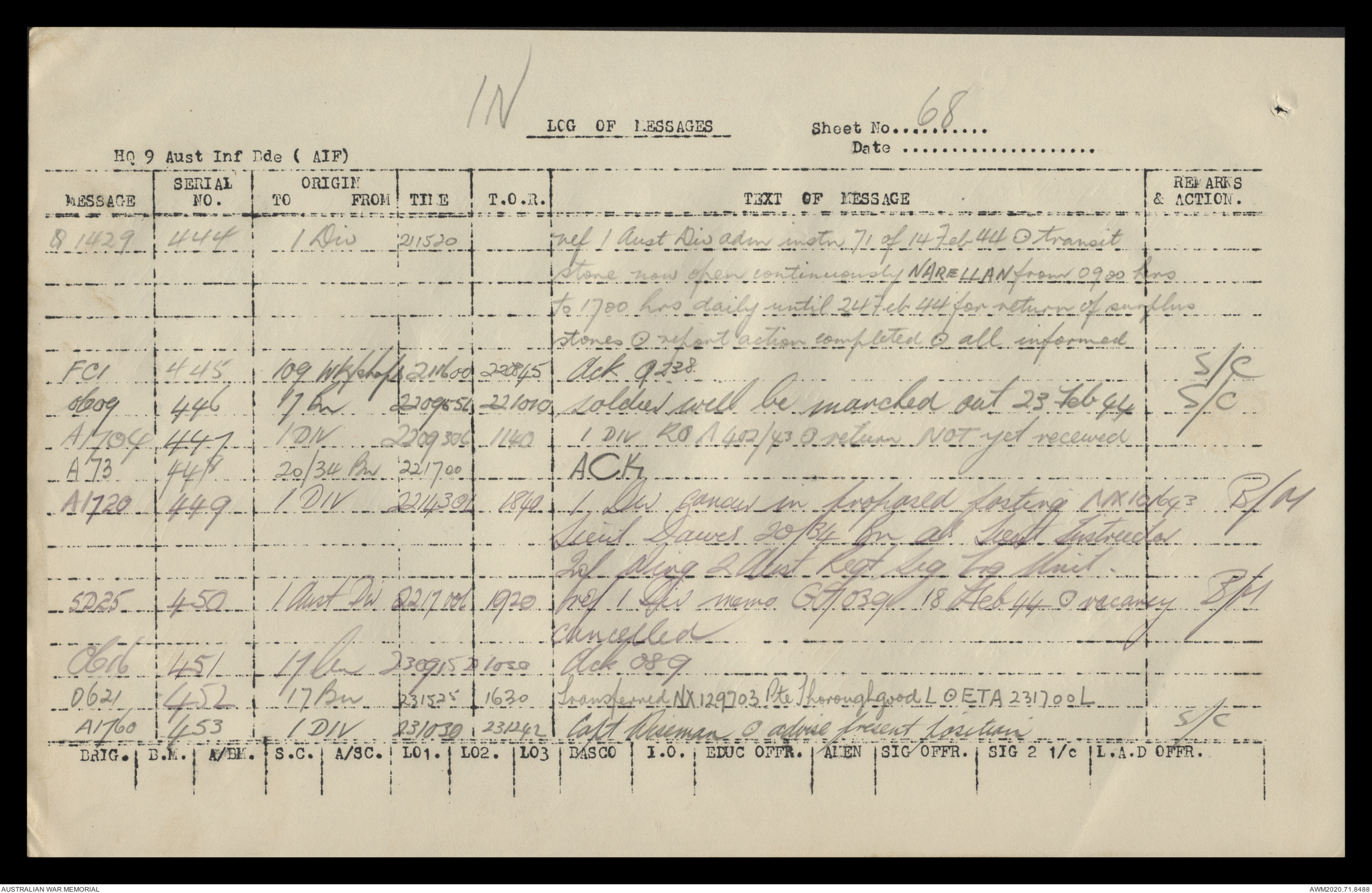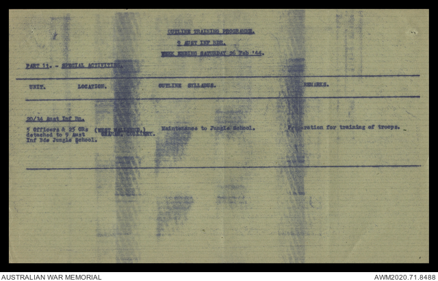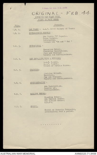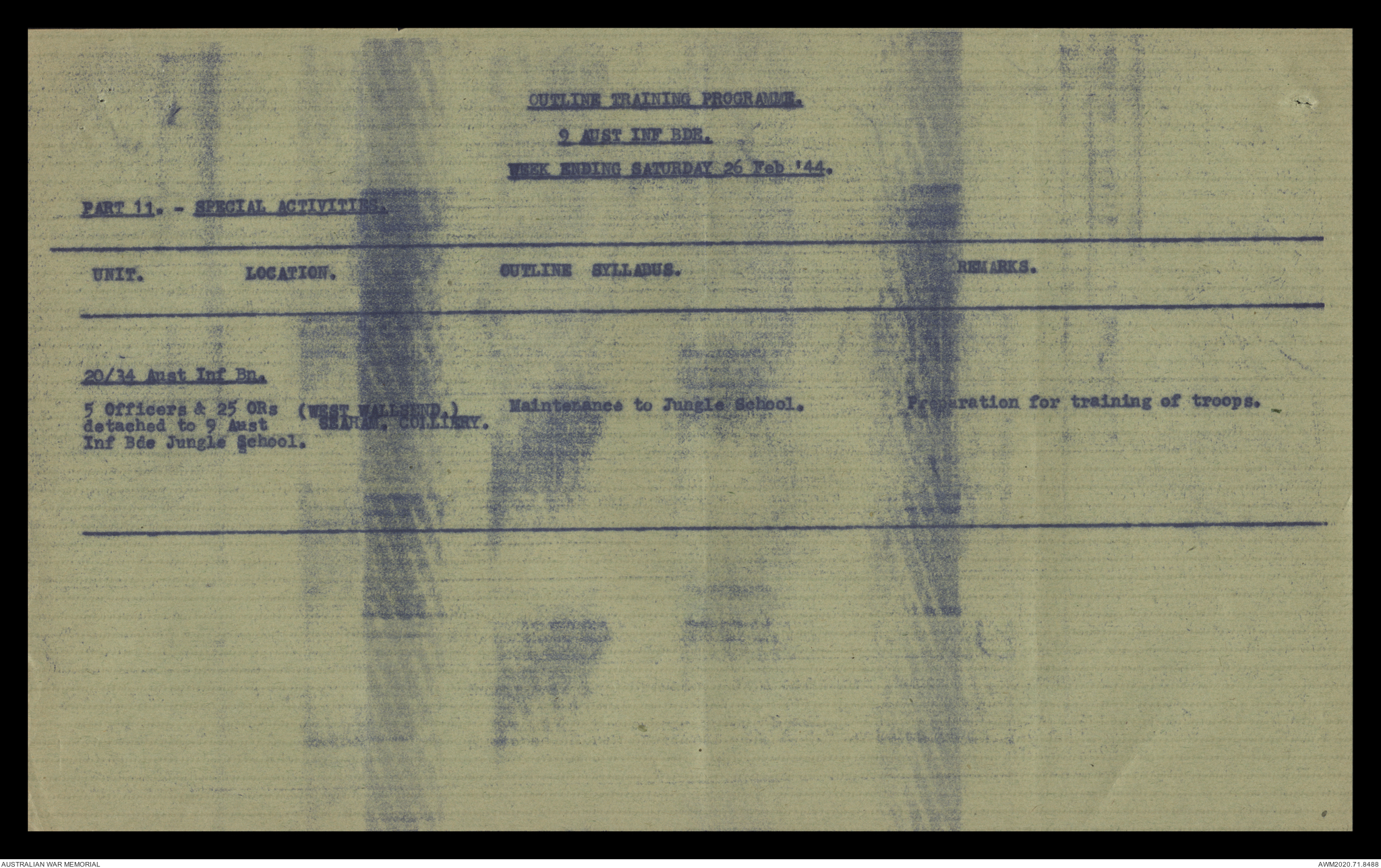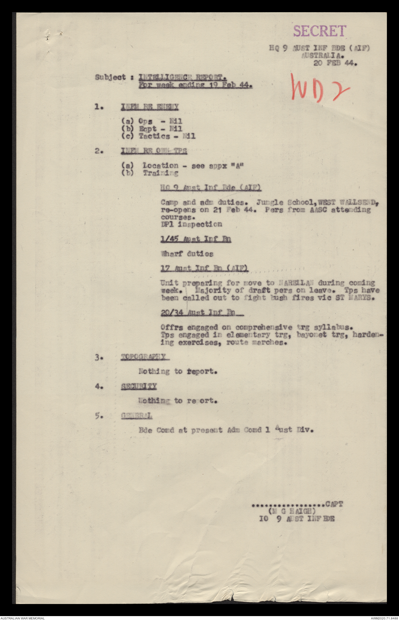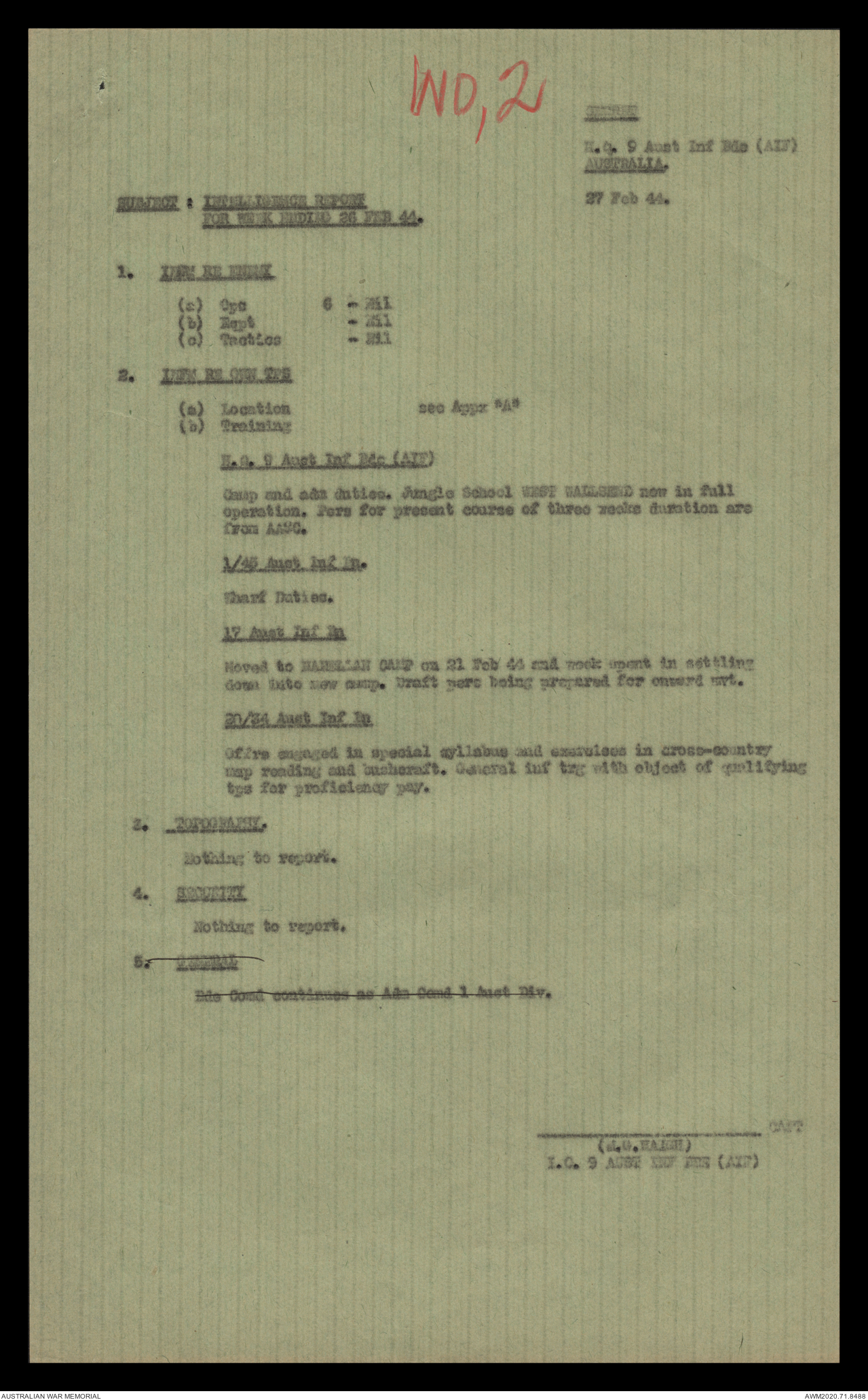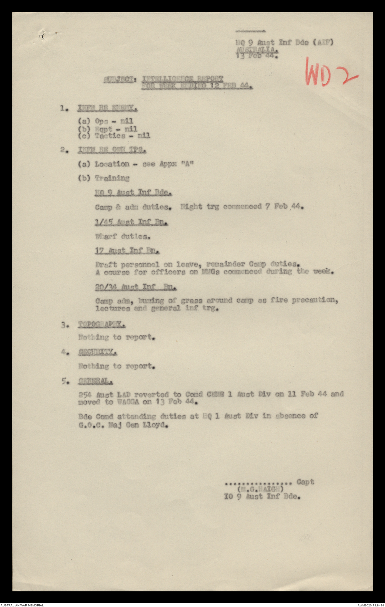 AWM52 8/2/9/34 - [Unit War Diaries, 1939-45 War] HQ 9 Australian Infantry Brigade AIF, February 1944