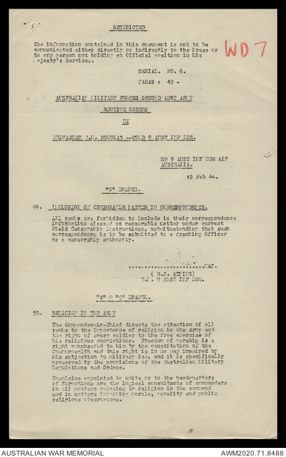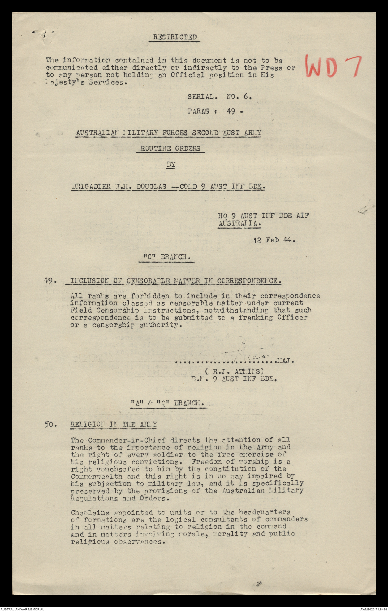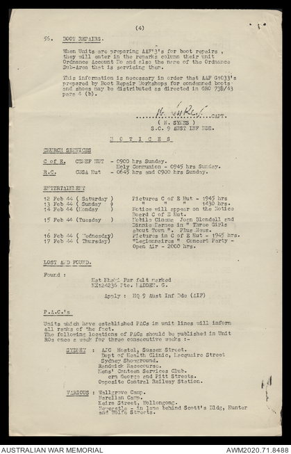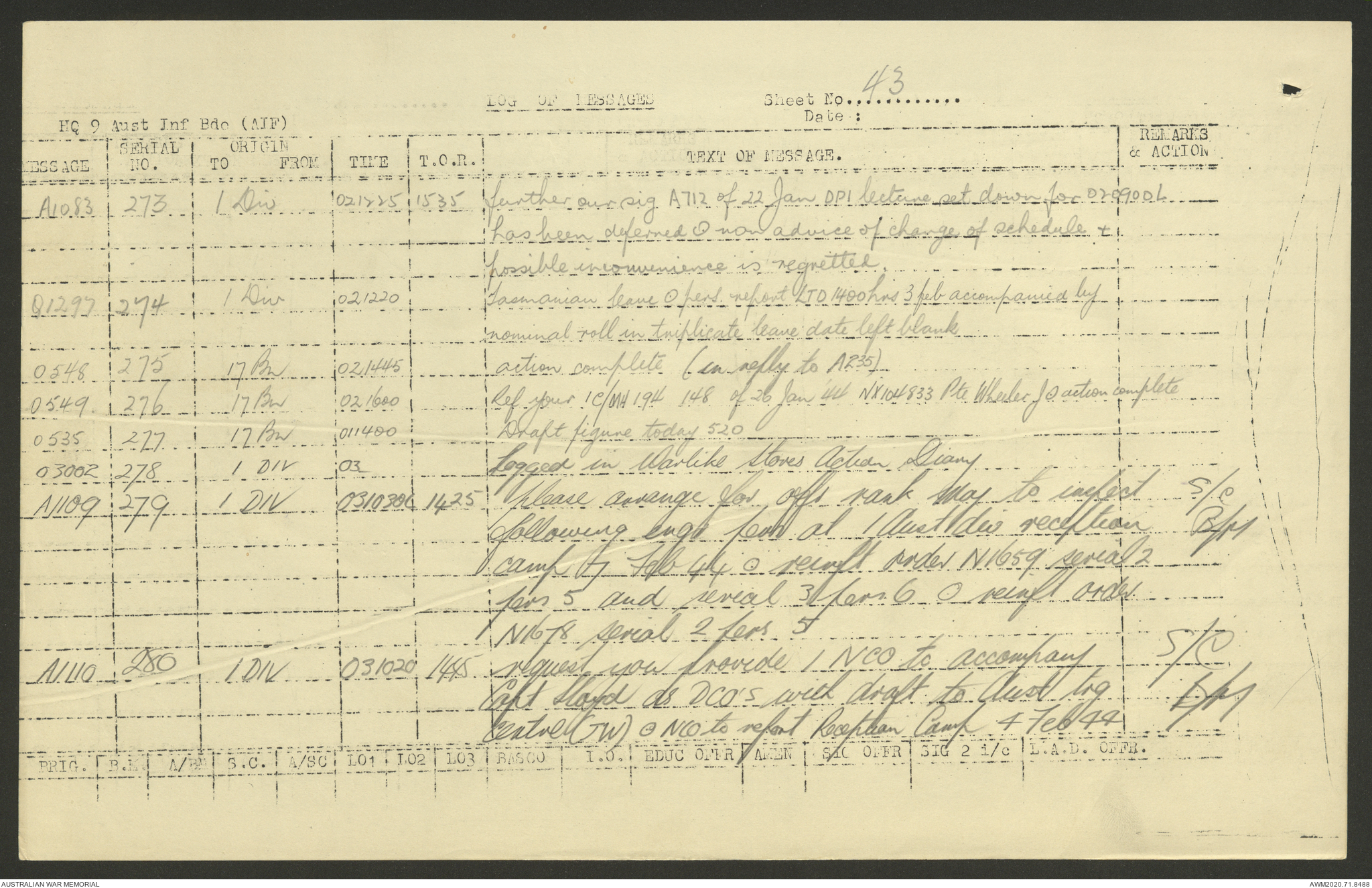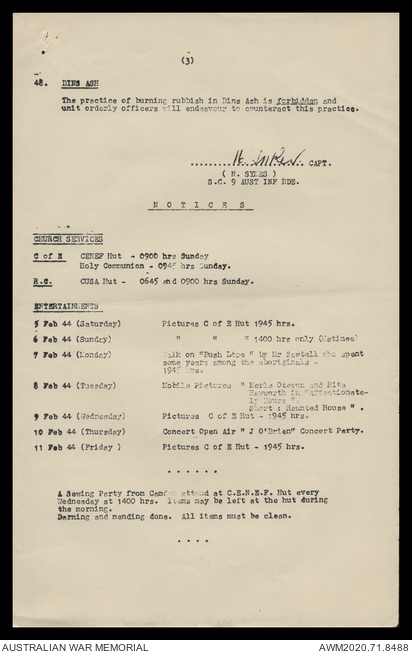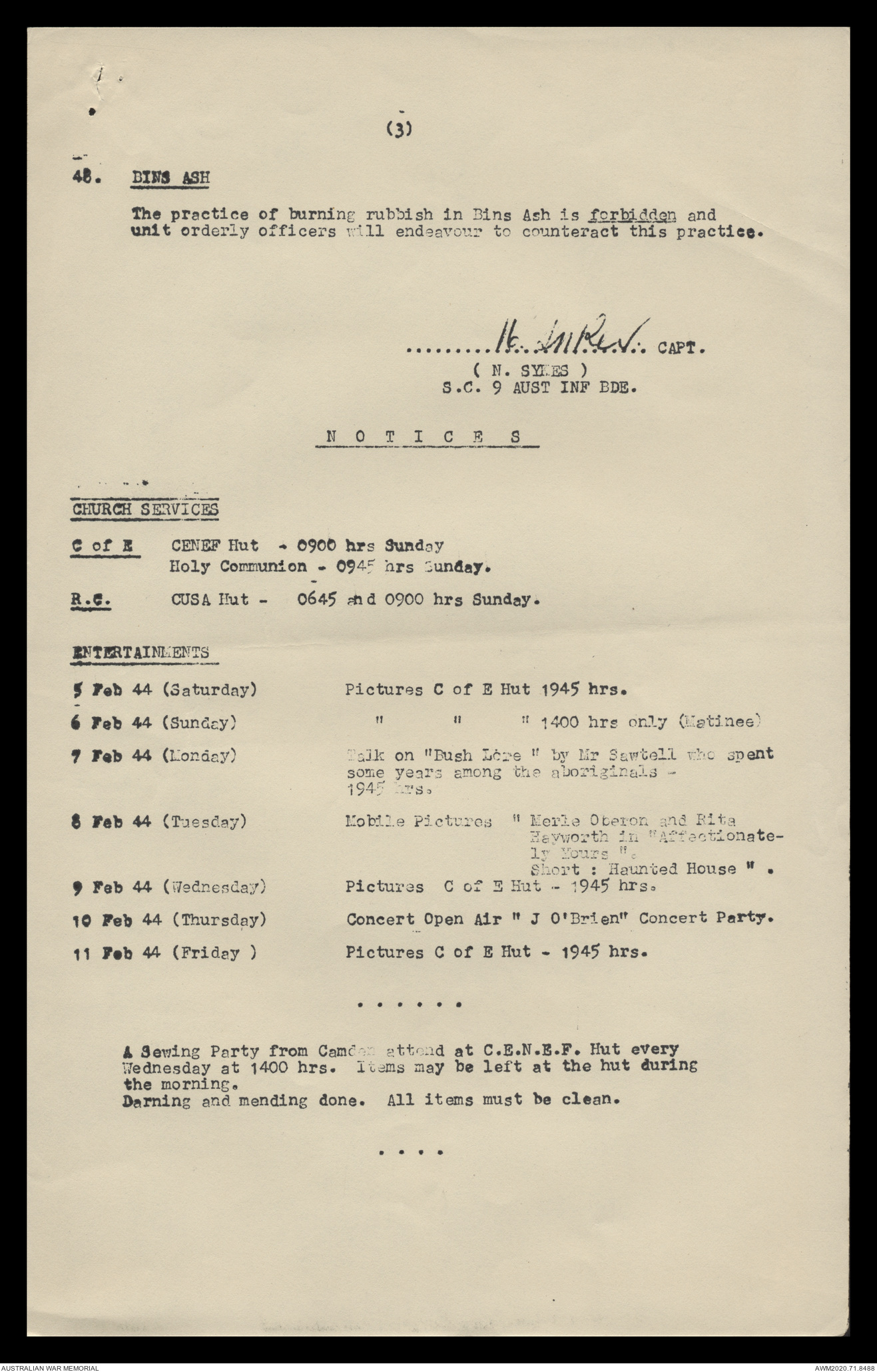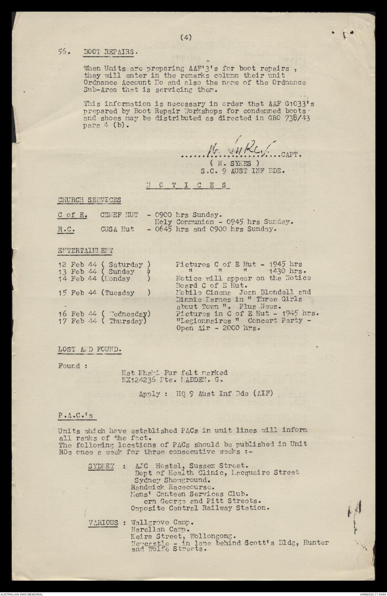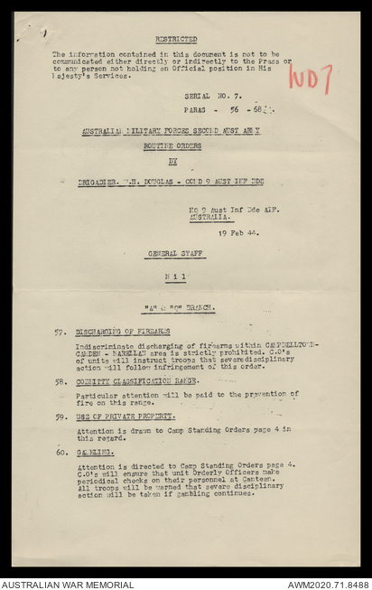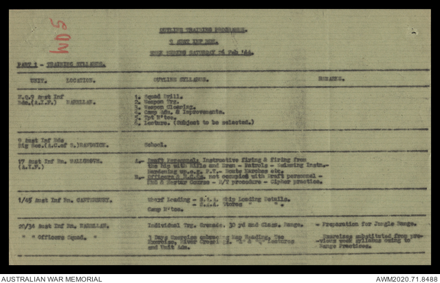 AWM52 8/2/9/34 - [Unit War Diaries, 1939-45 War] HQ 9 Australian Infantry Brigade AIF, February 1944