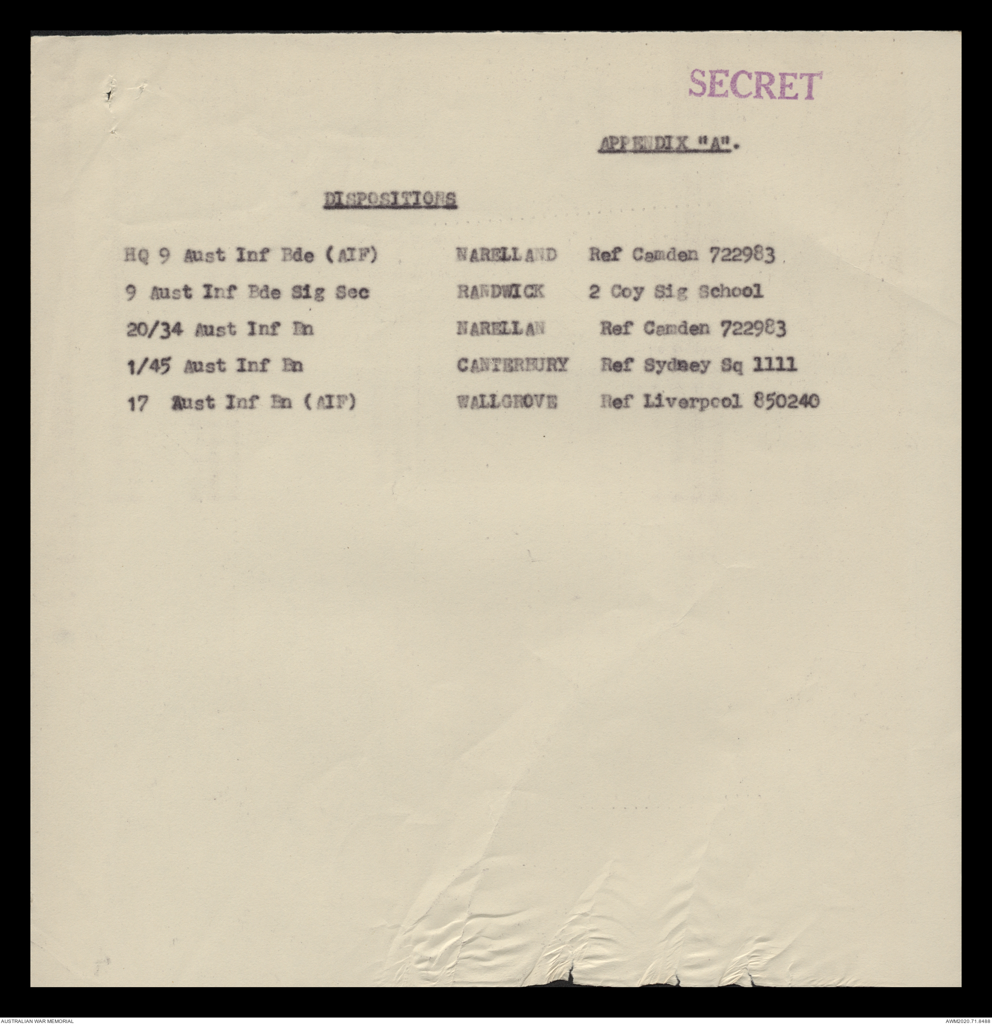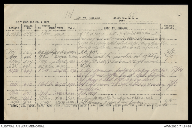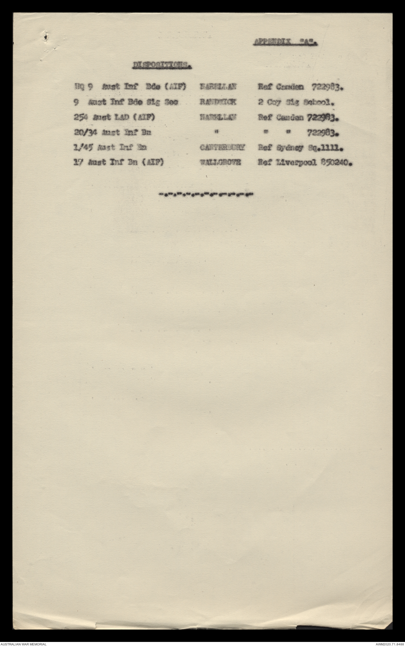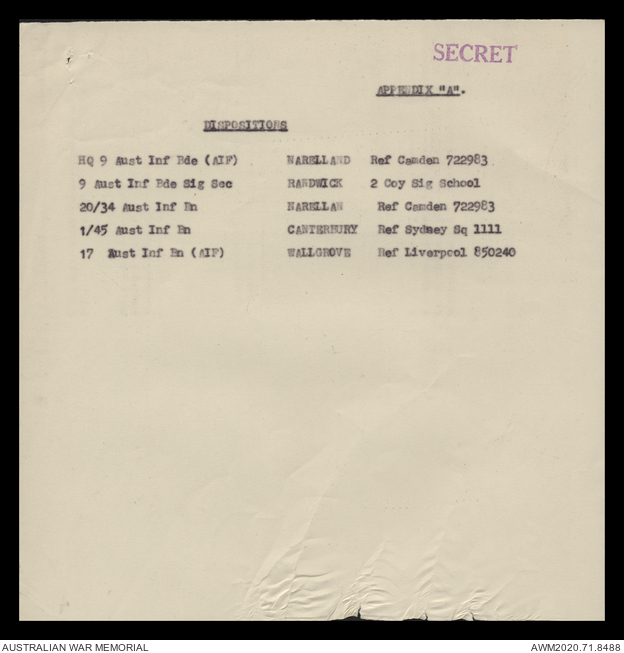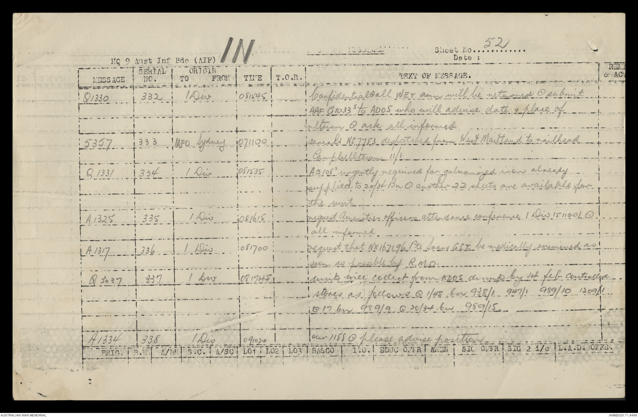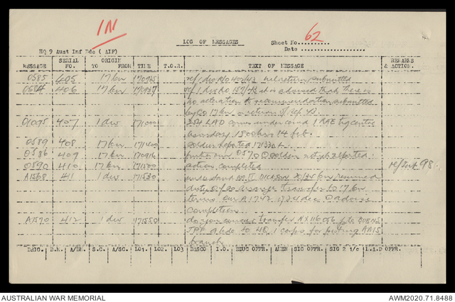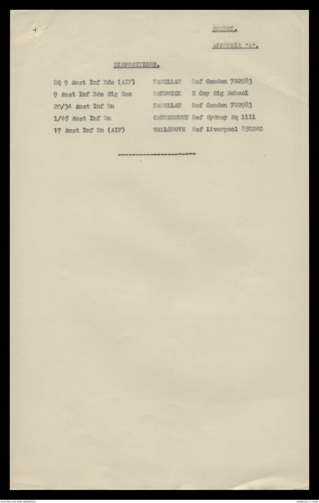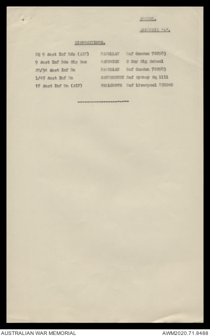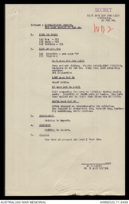 - AWM52 8/2/9 - Headquarters, 9 Infantry Brigade