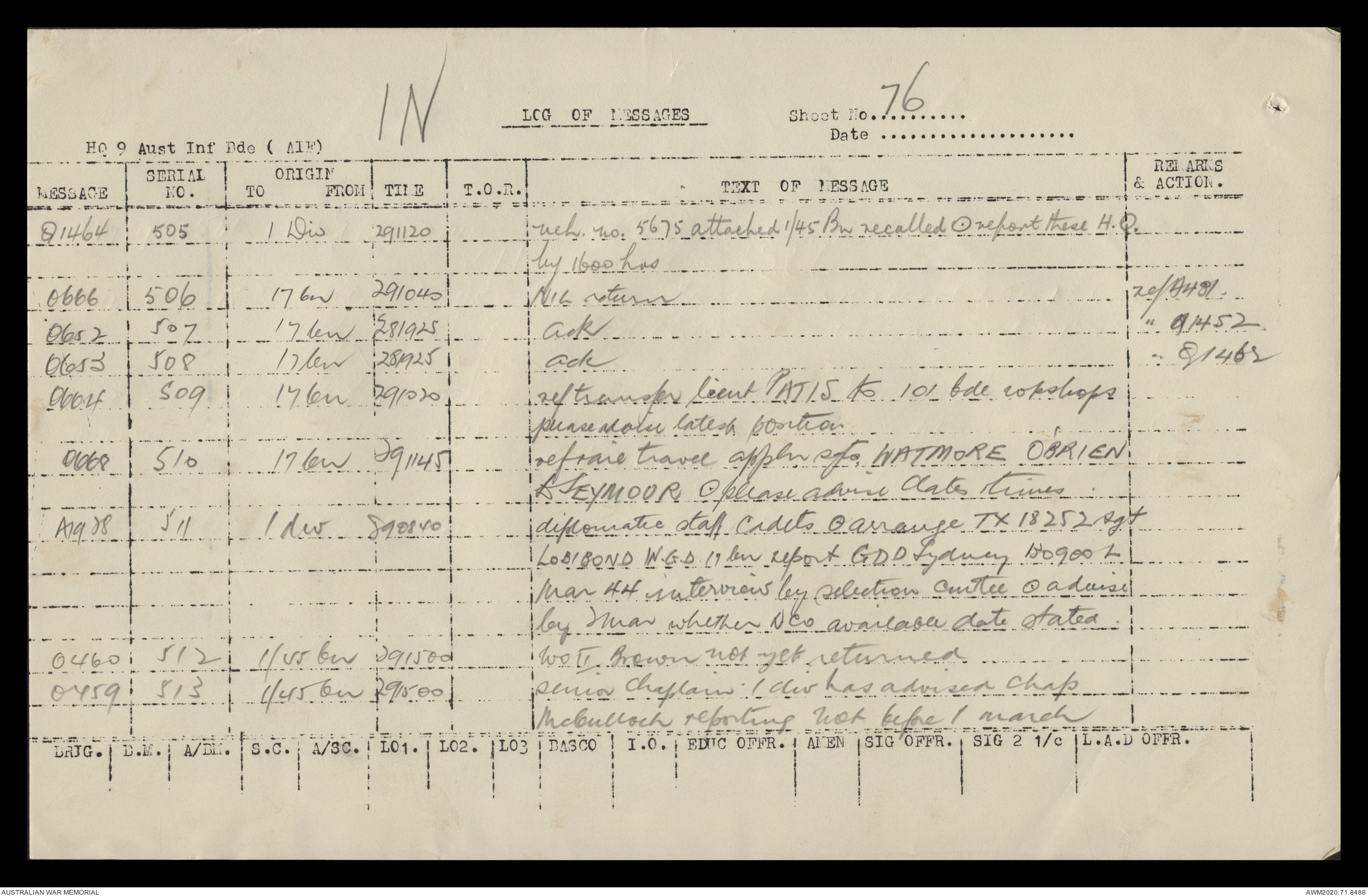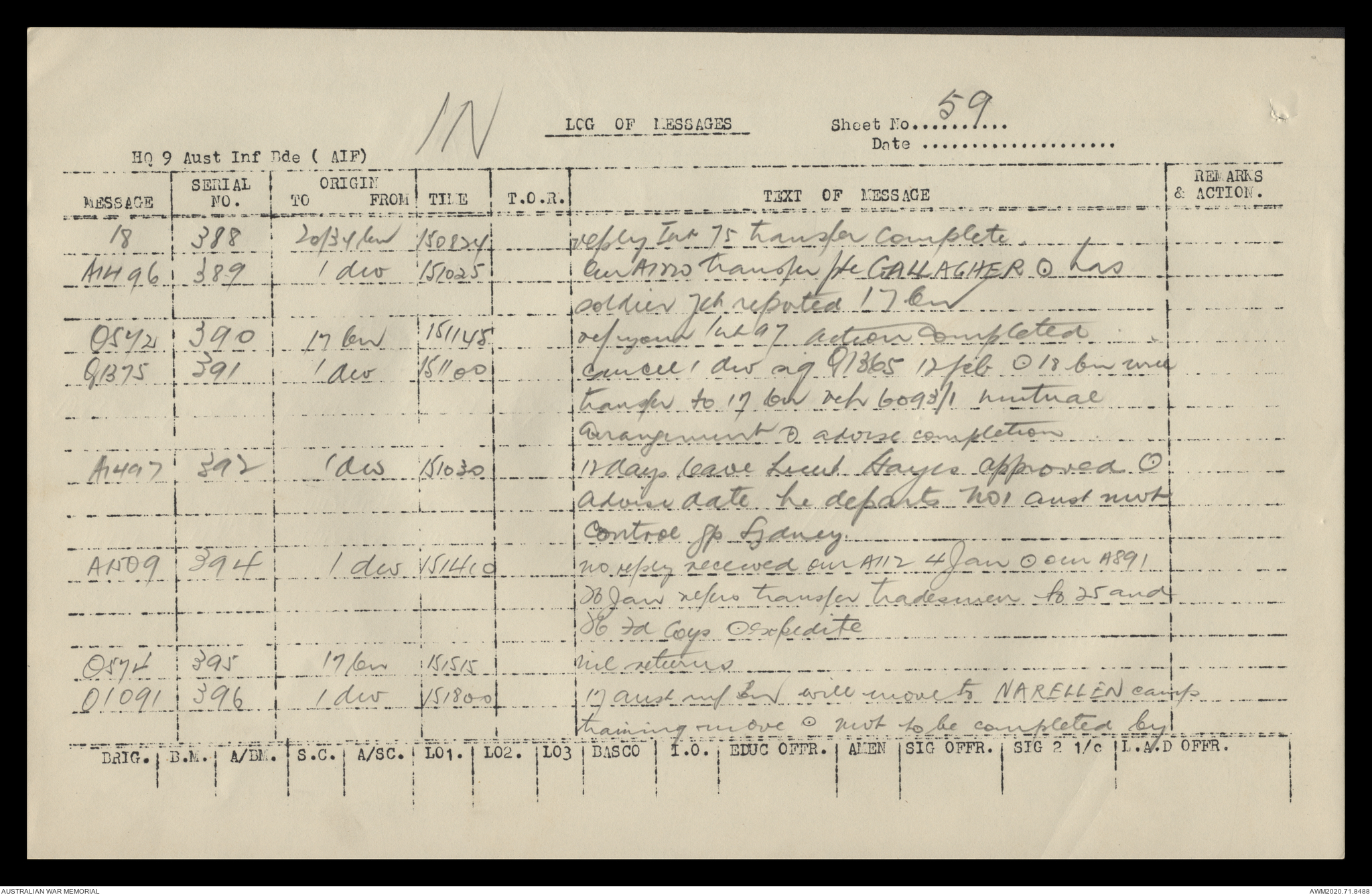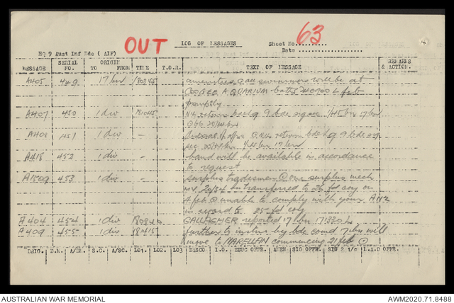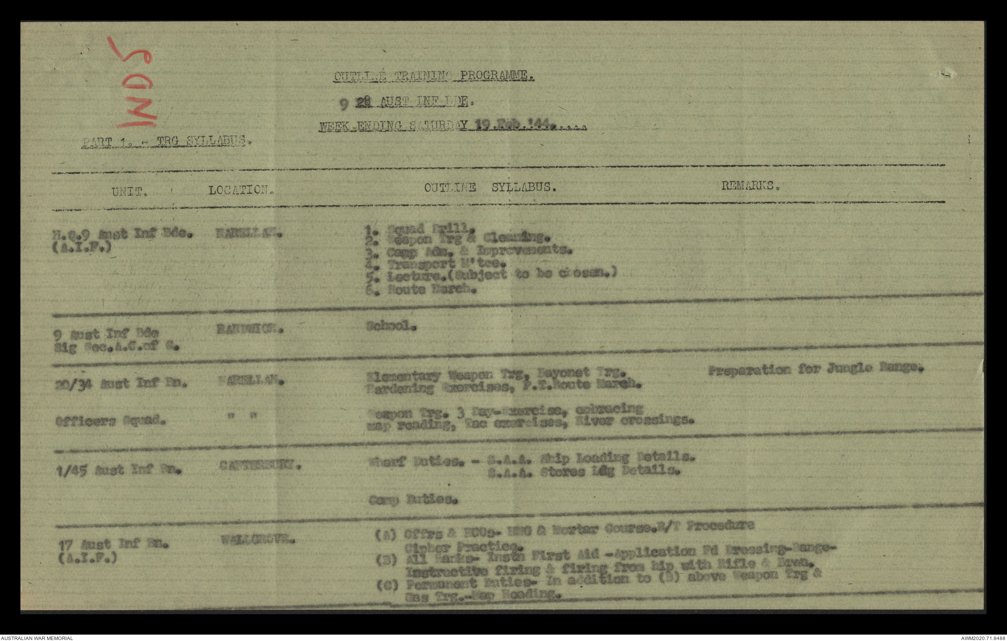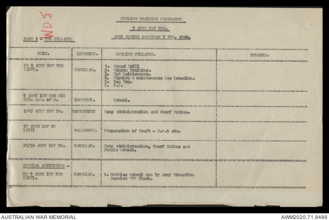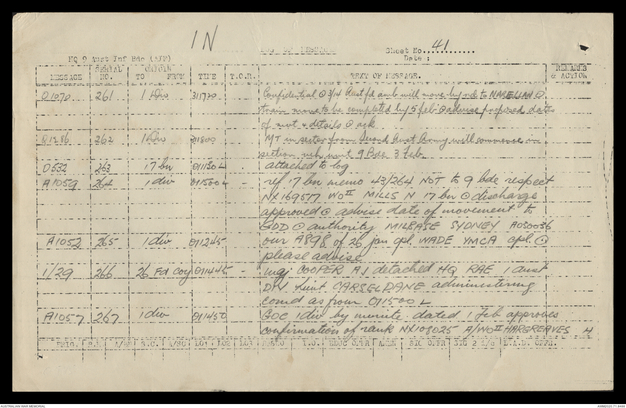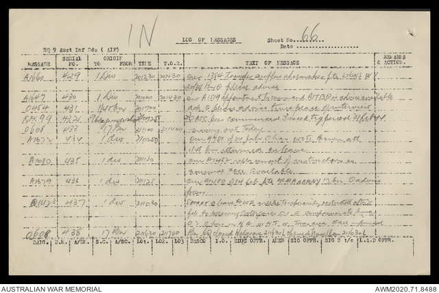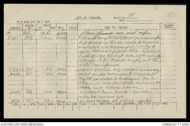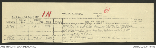 - AWM52 8/2/9 - Headquarters, 9 Infantry Brigade