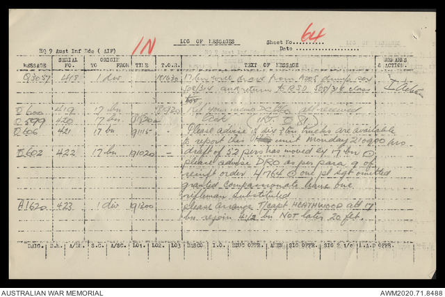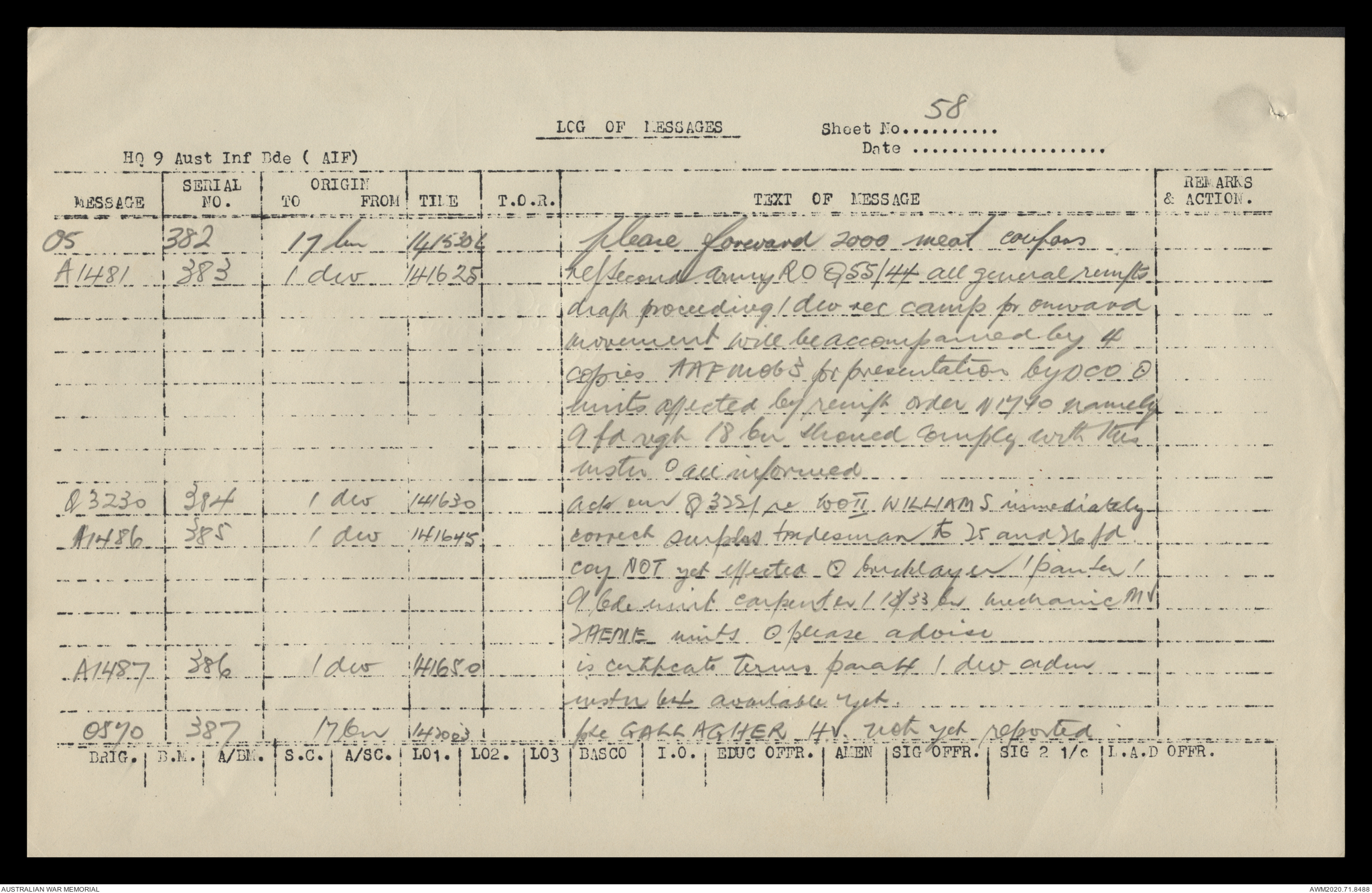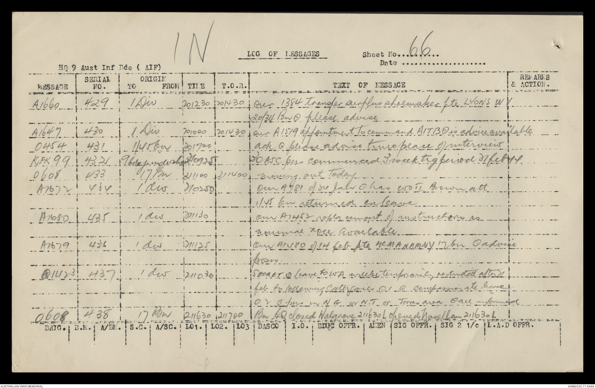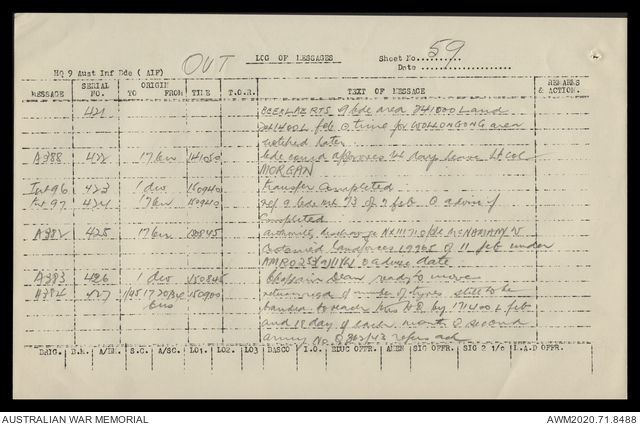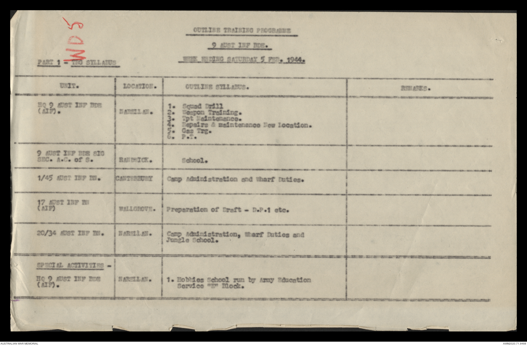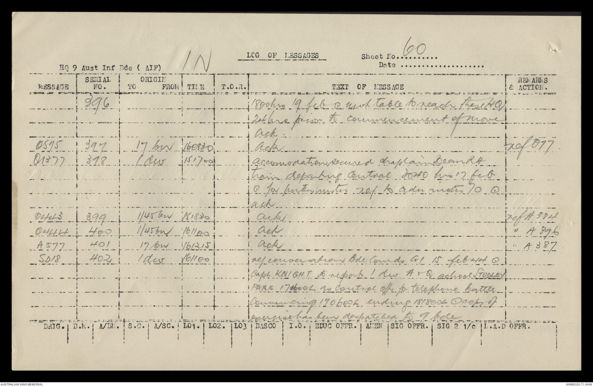 - AWM52 8/2/9 - Headquarters, 9 Infantry Brigade