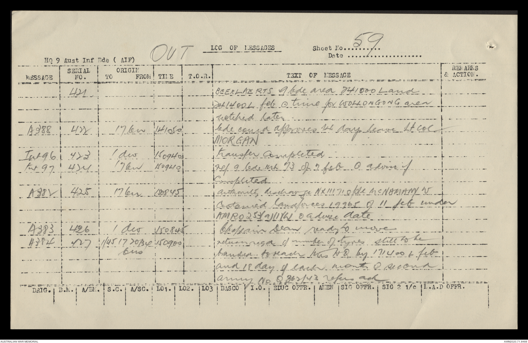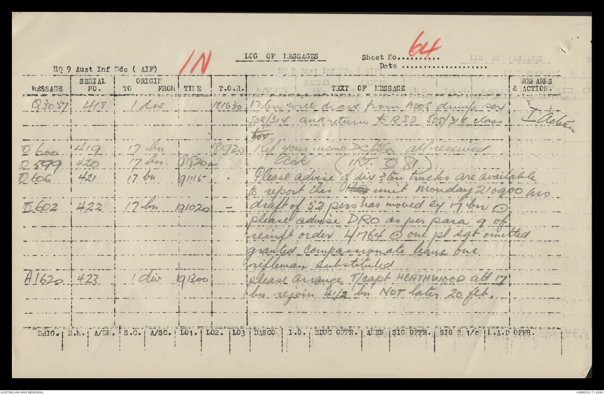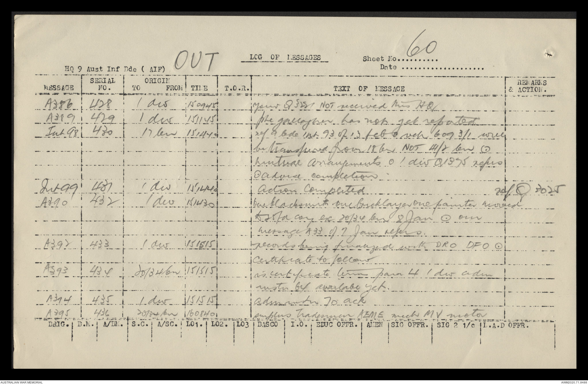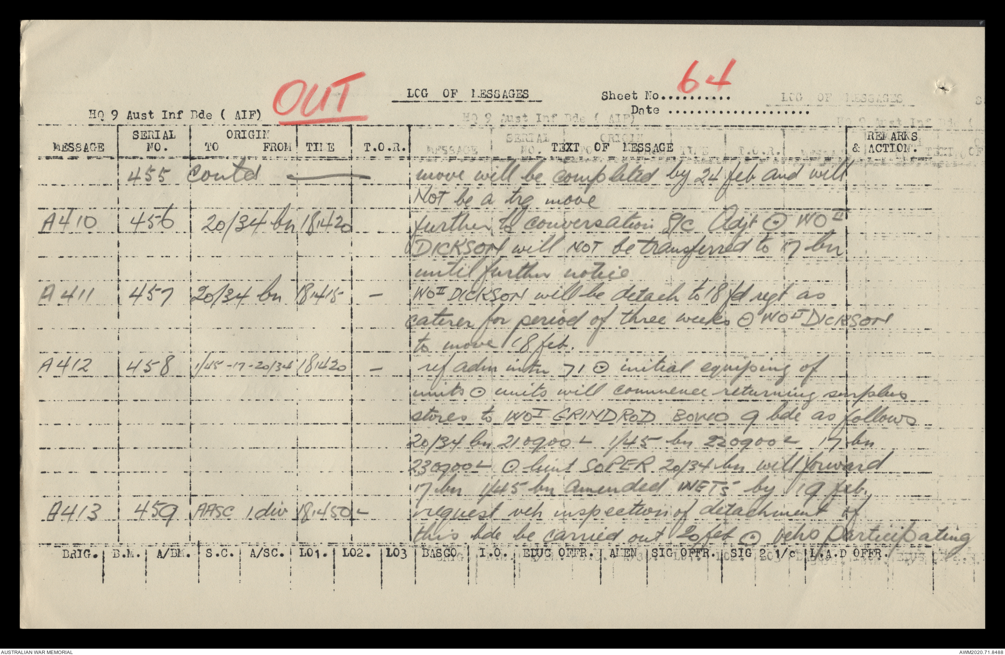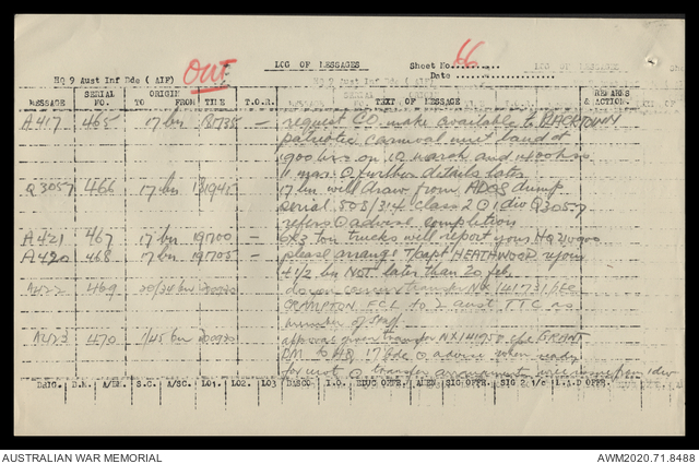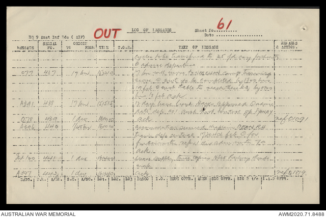 - AWM52 8/2/9 - Headquarters, 9 Infantry Brigade
