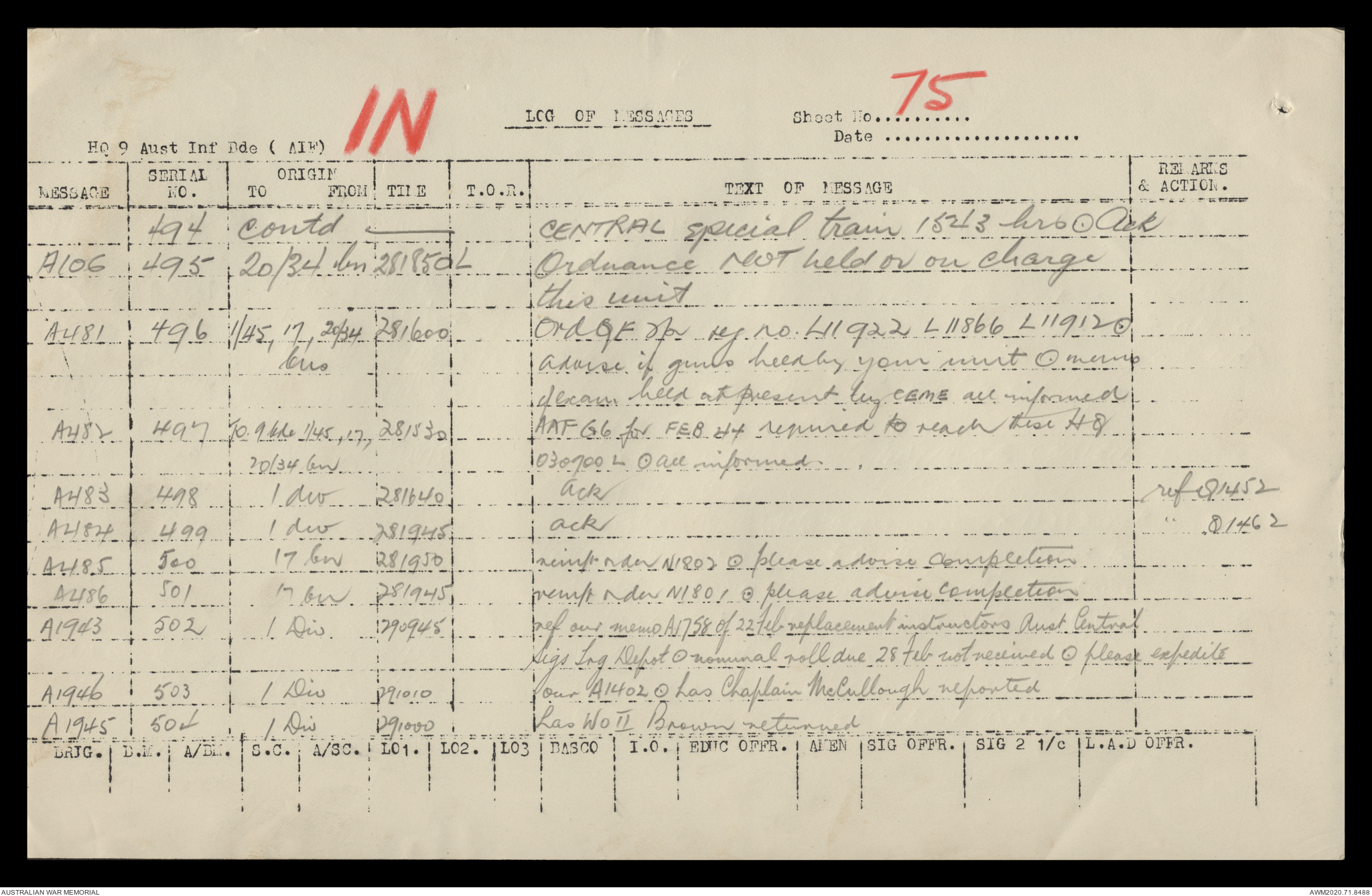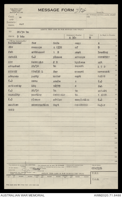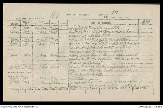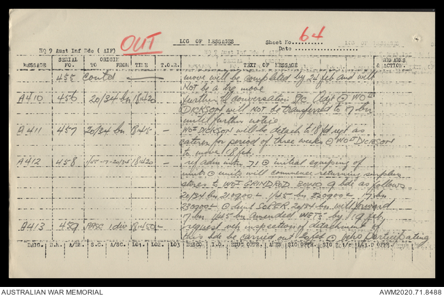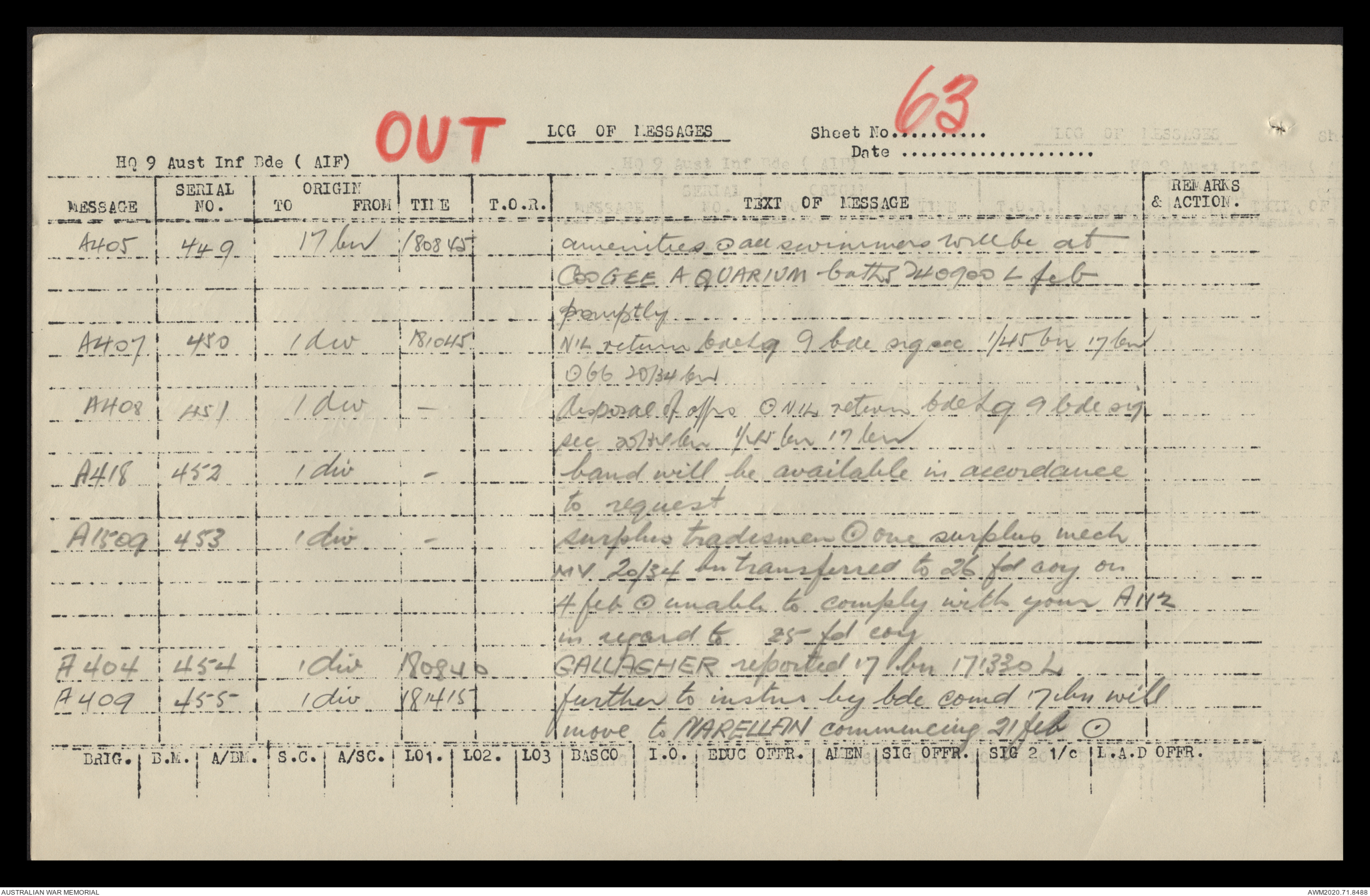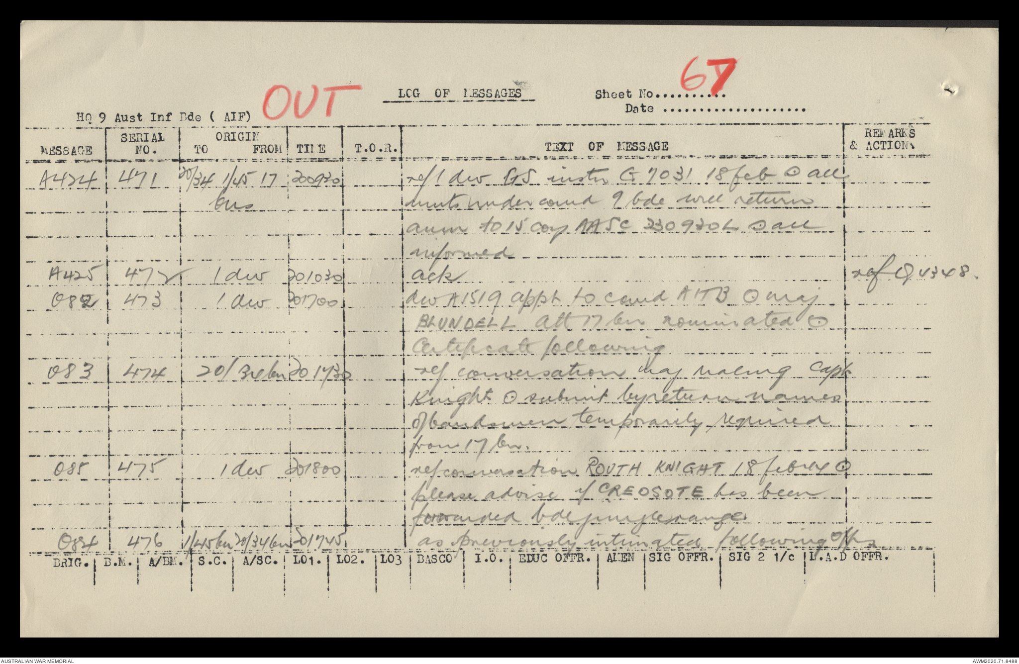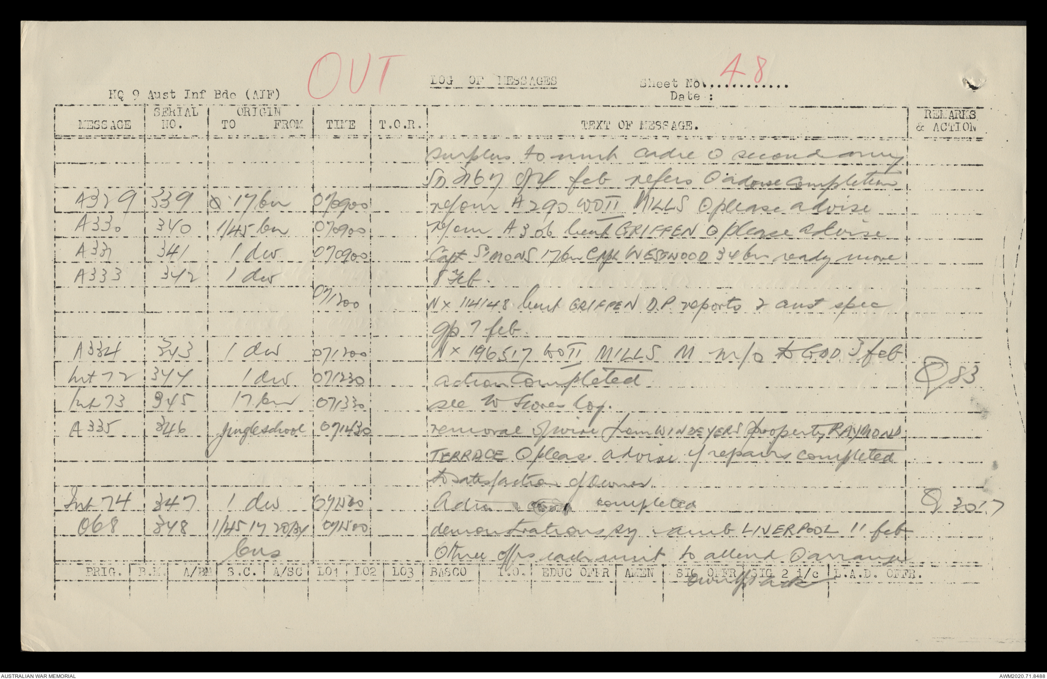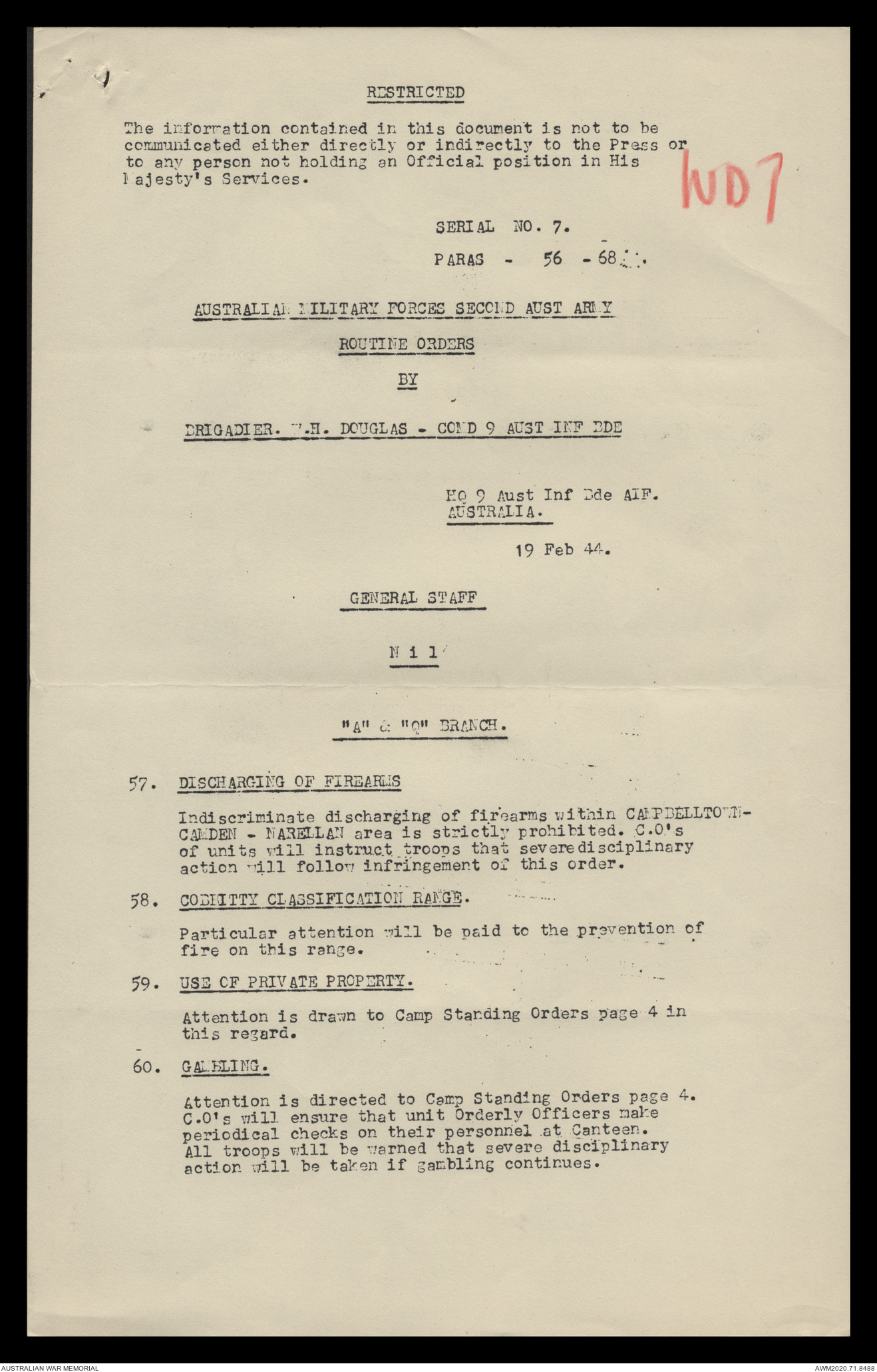 - AWM52 8/2/9 - Headquarters, 9 Infantry Brigade
