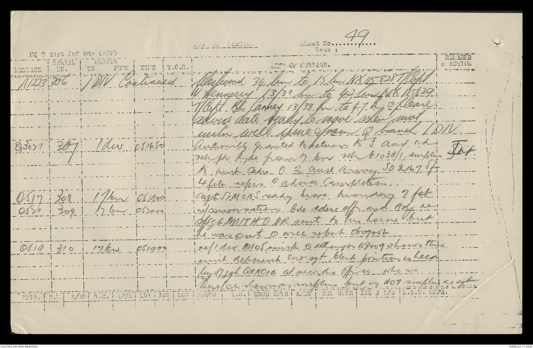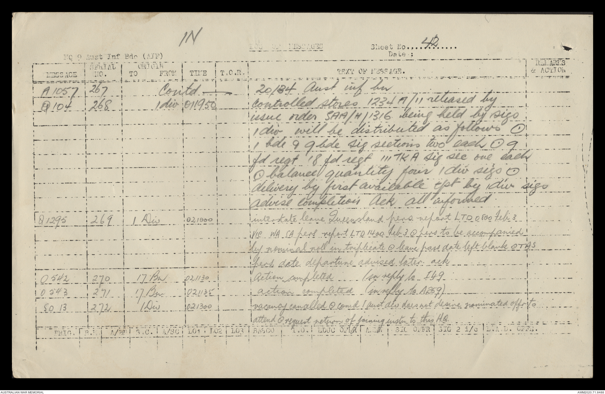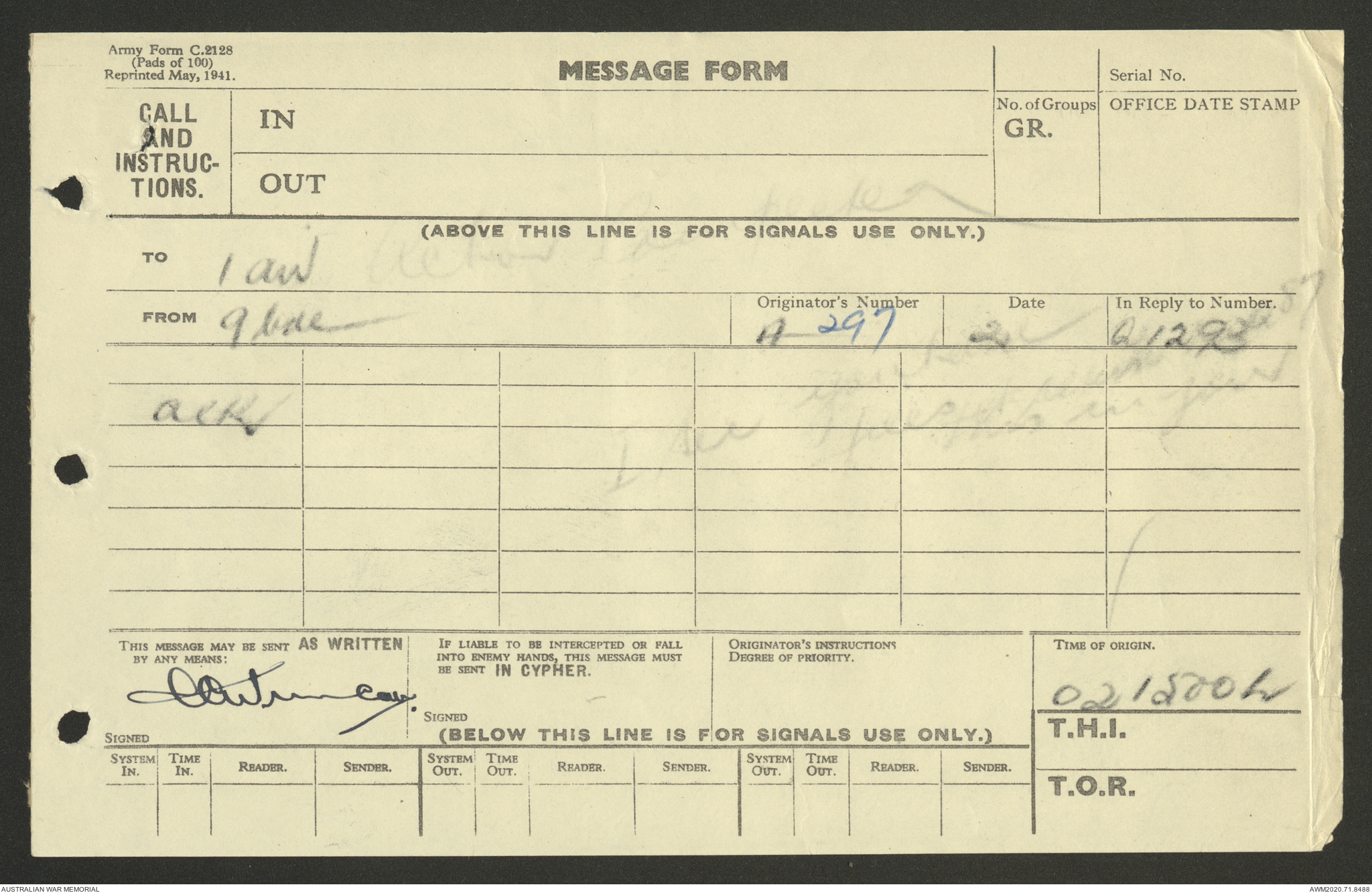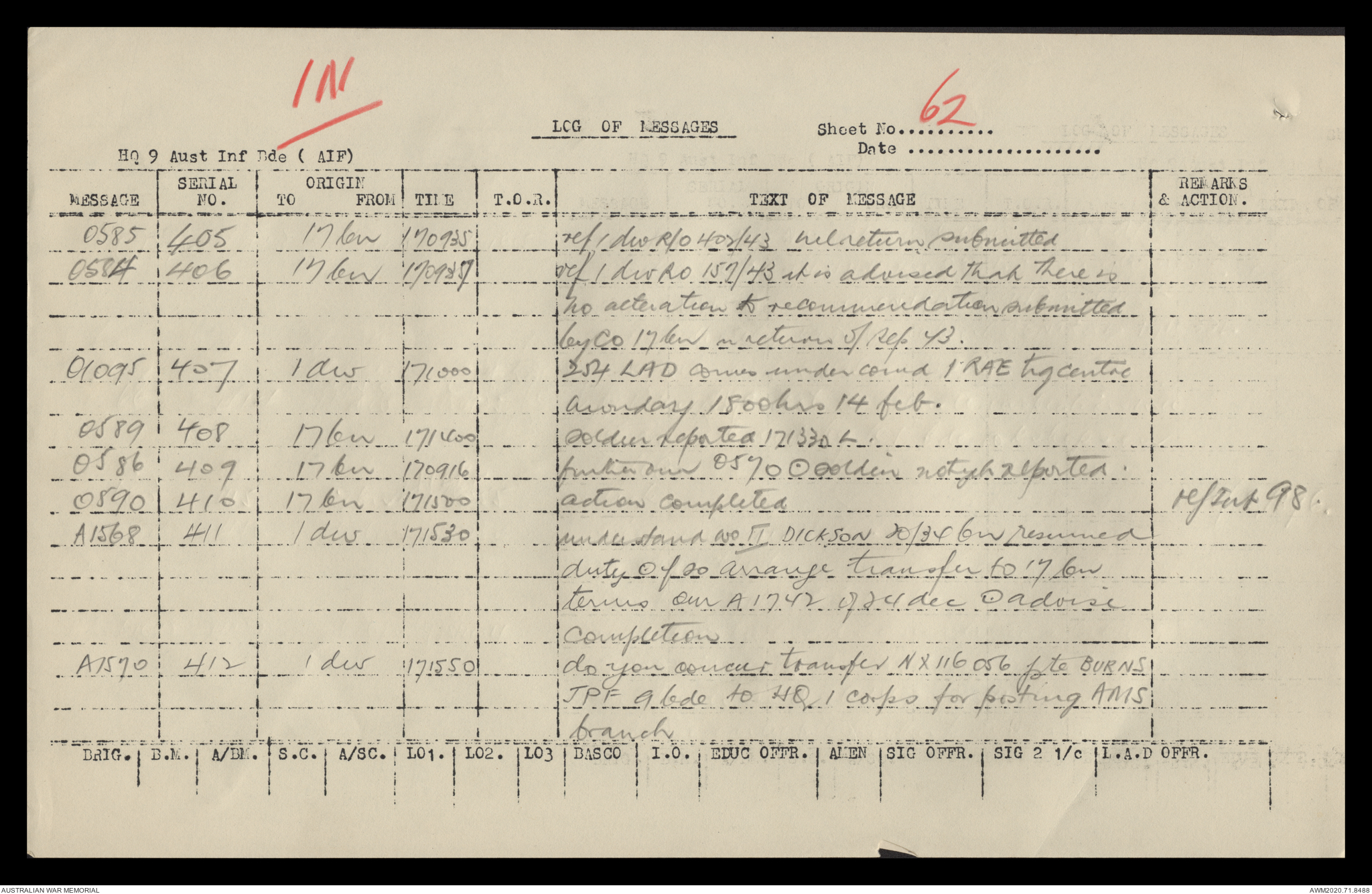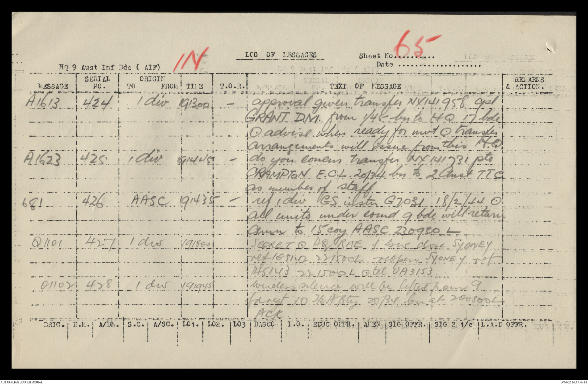 - AWM52 8/2/9 - Headquarters, 9 Infantry Brigade
