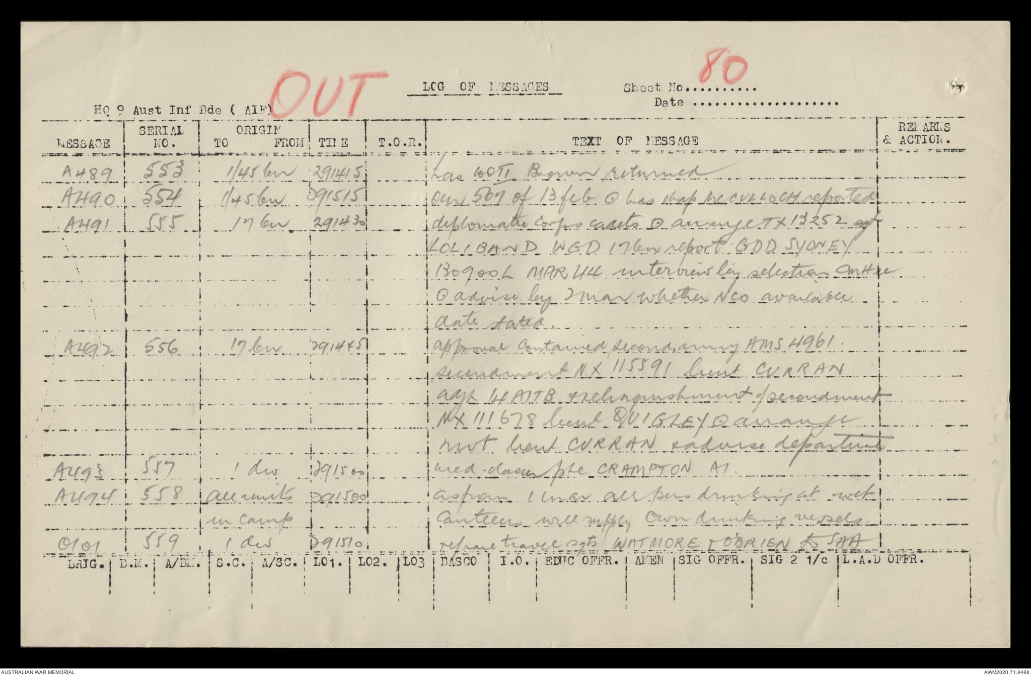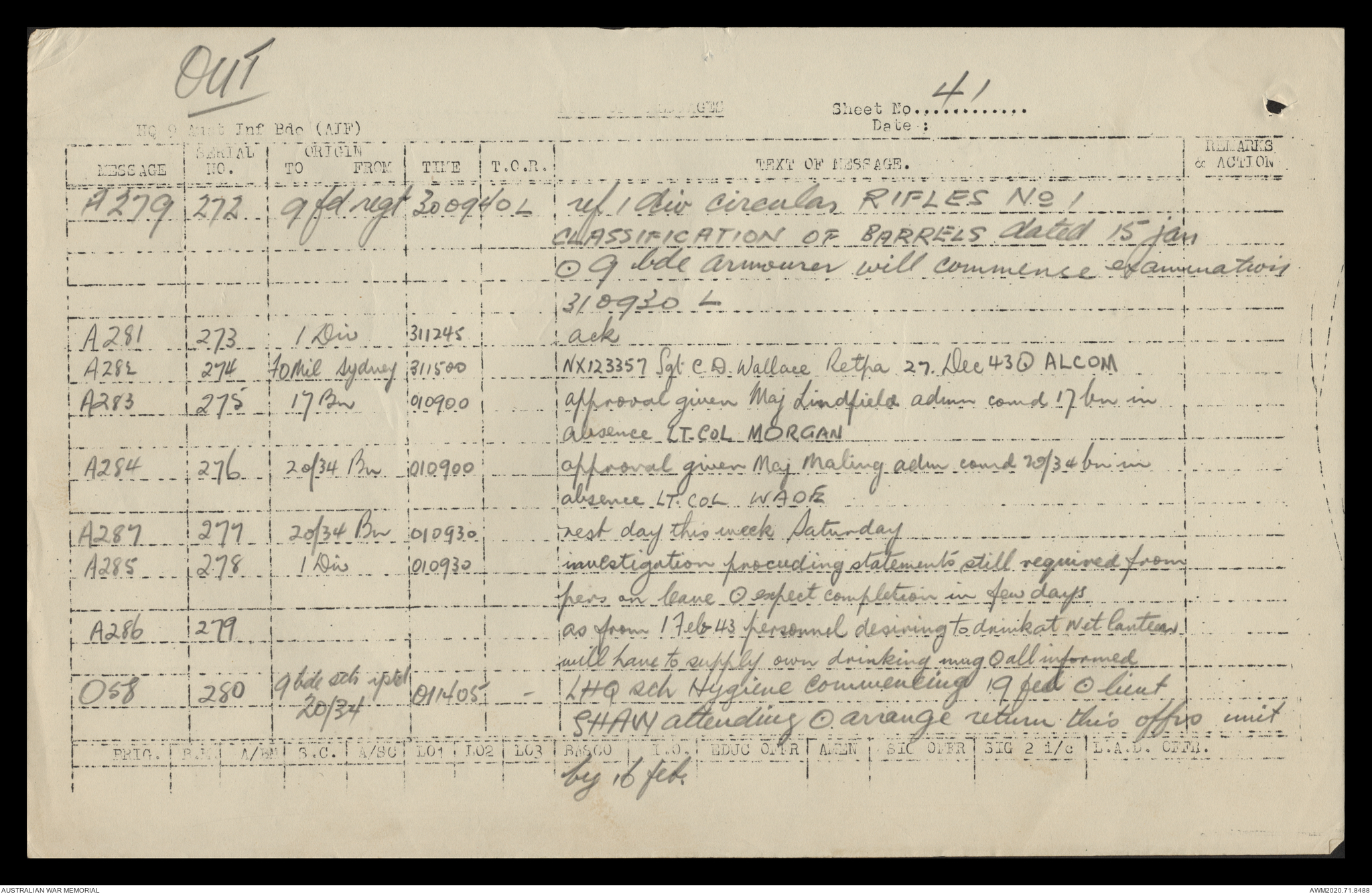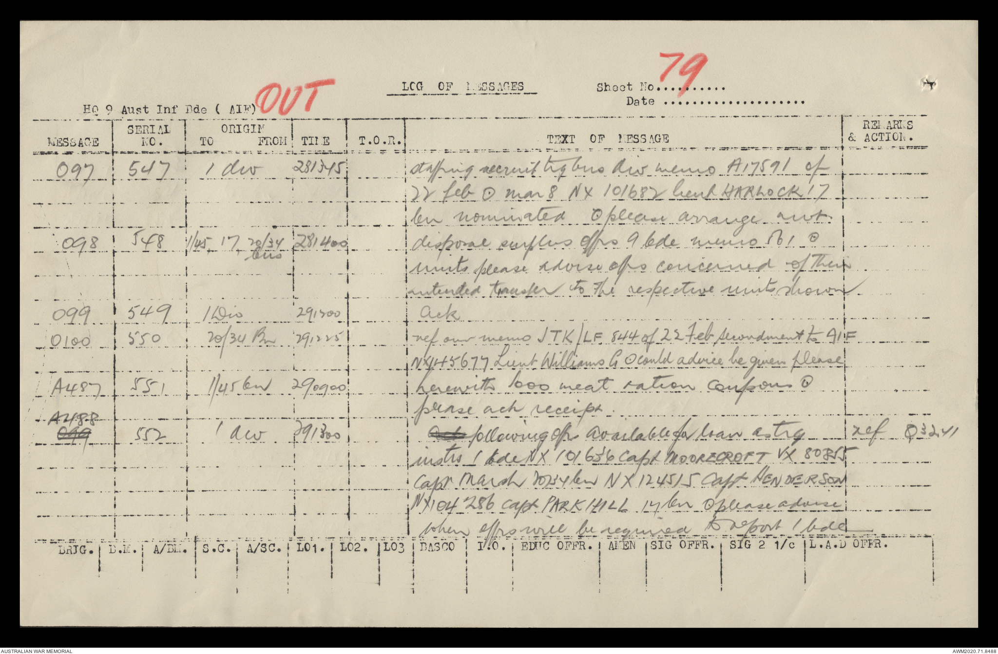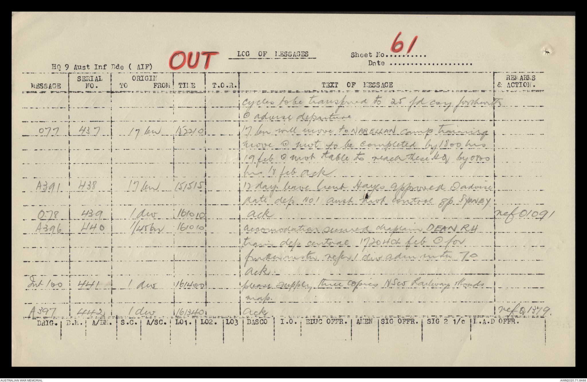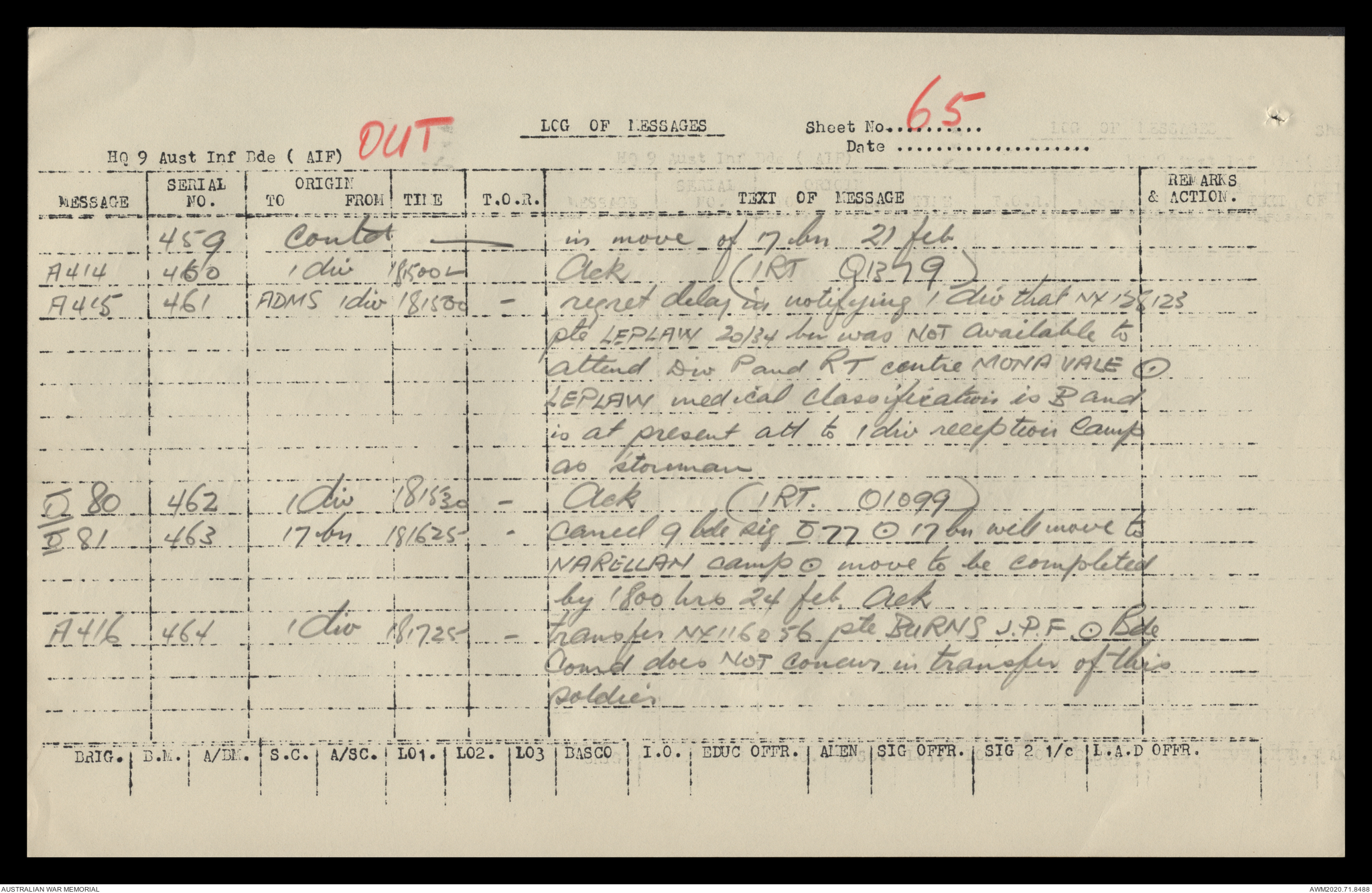 - AWM52 8/2/9 - Headquarters, 9 Infantry Brigade