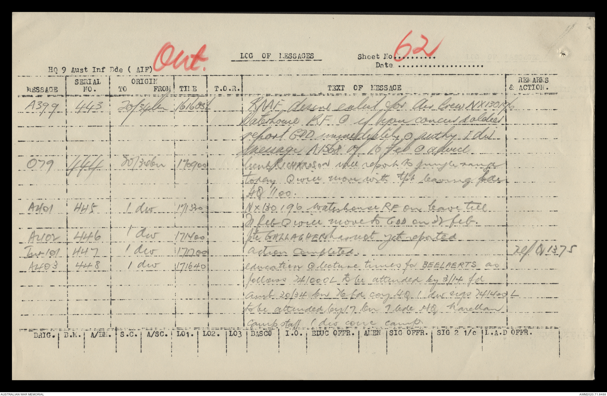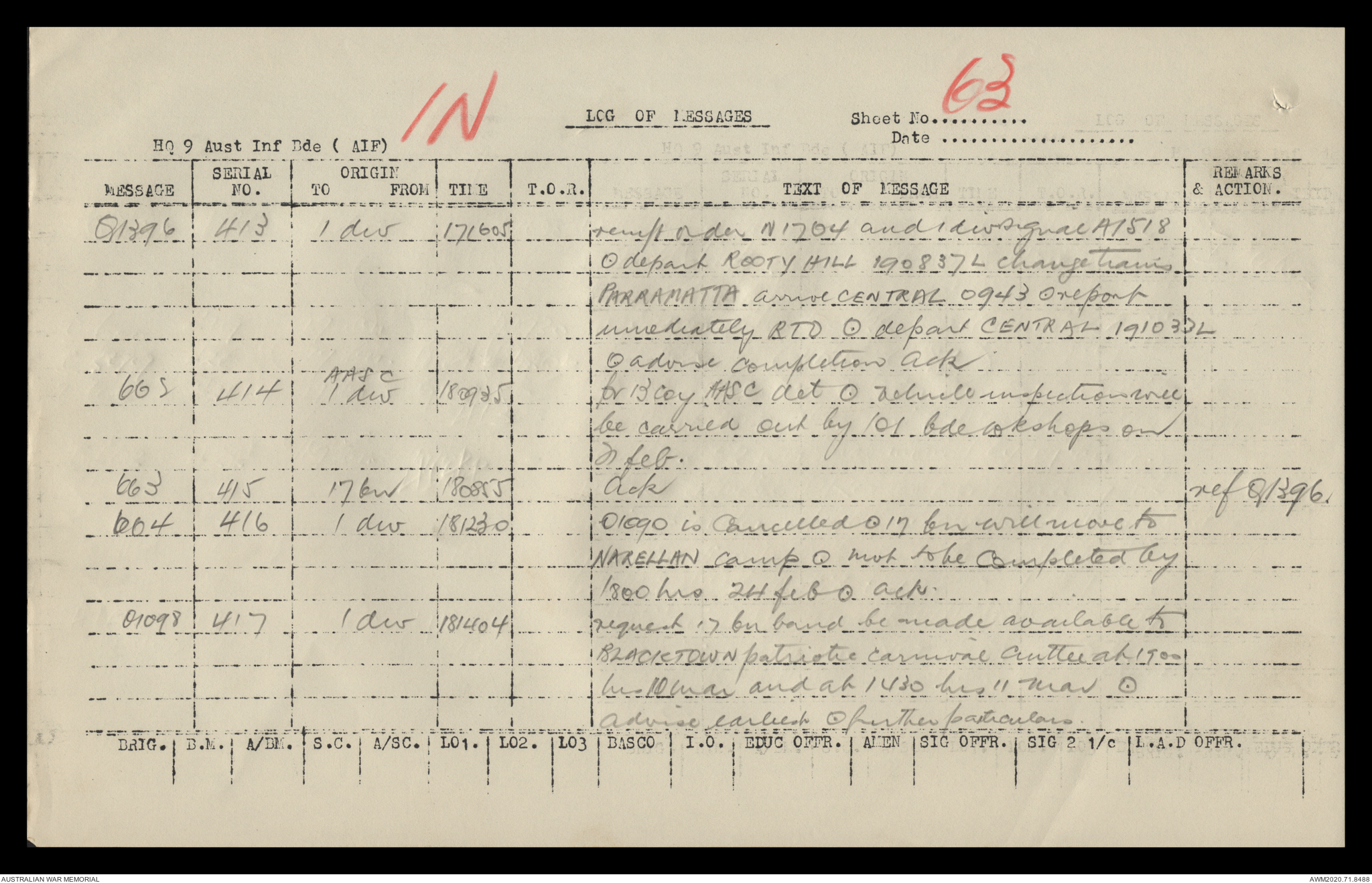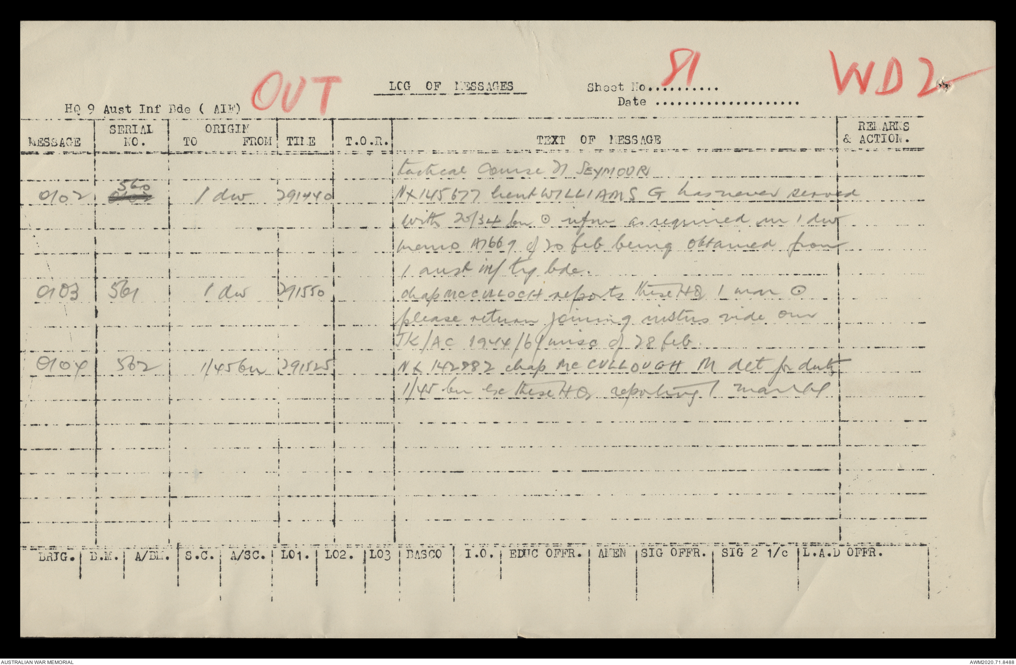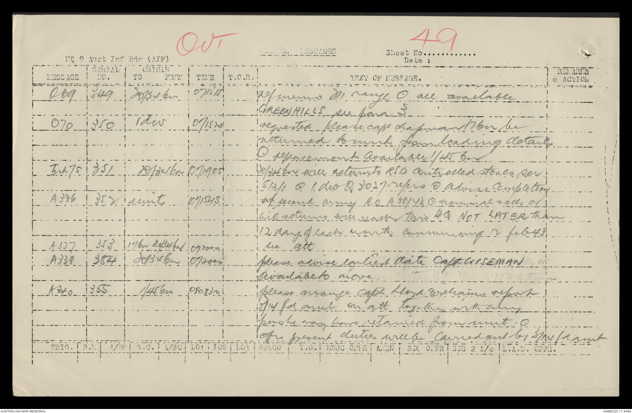 - AWM52 8/2/9 - Headquarters, 9 Infantry Brigade