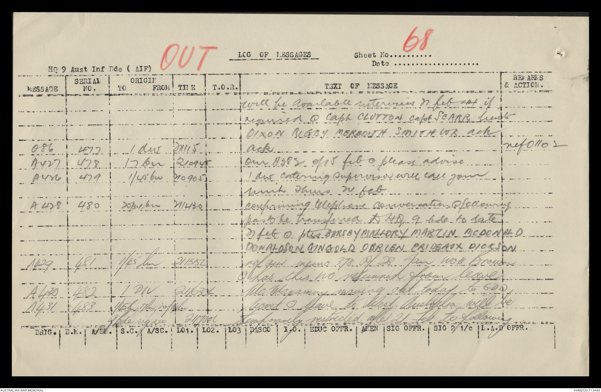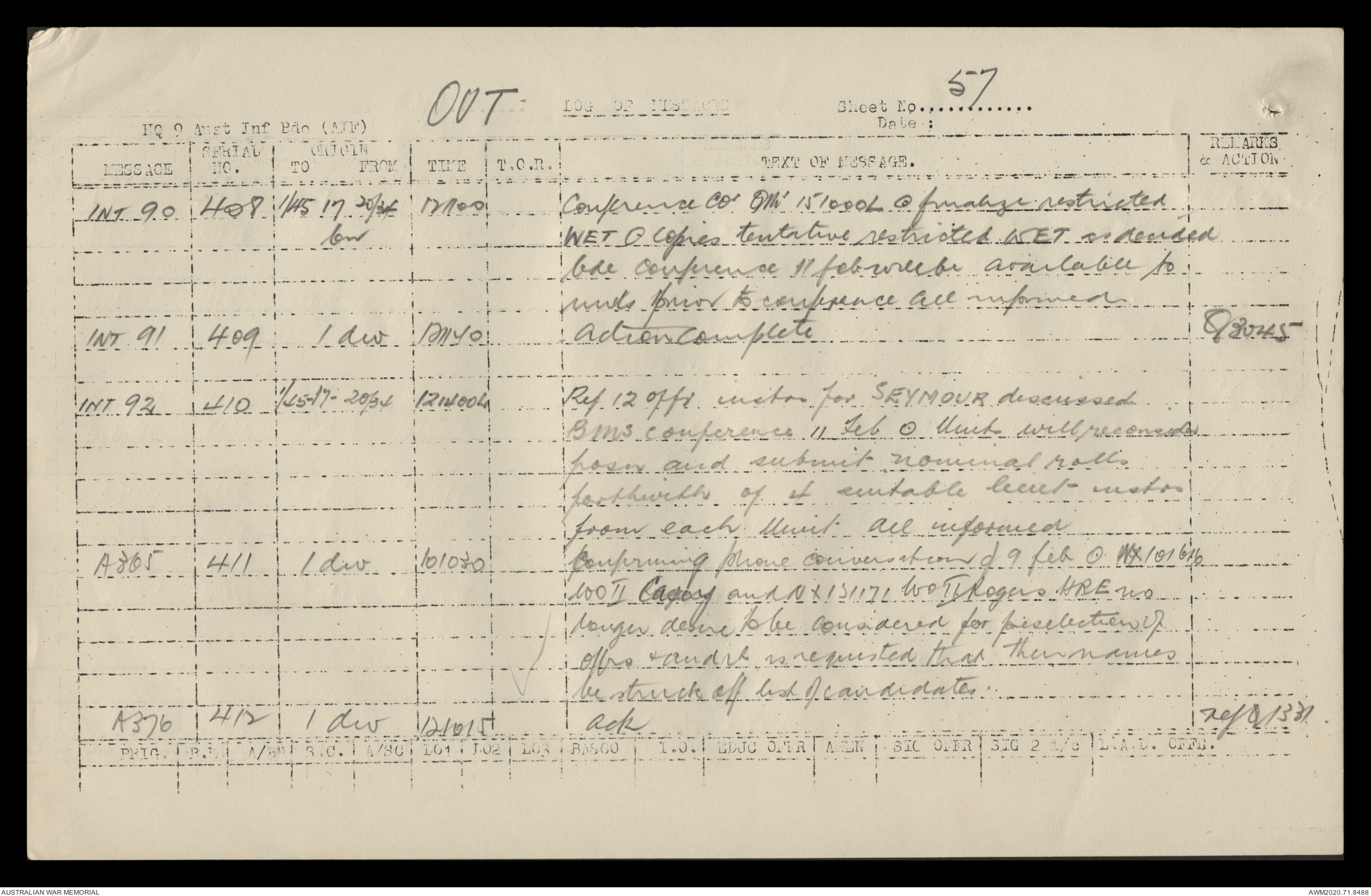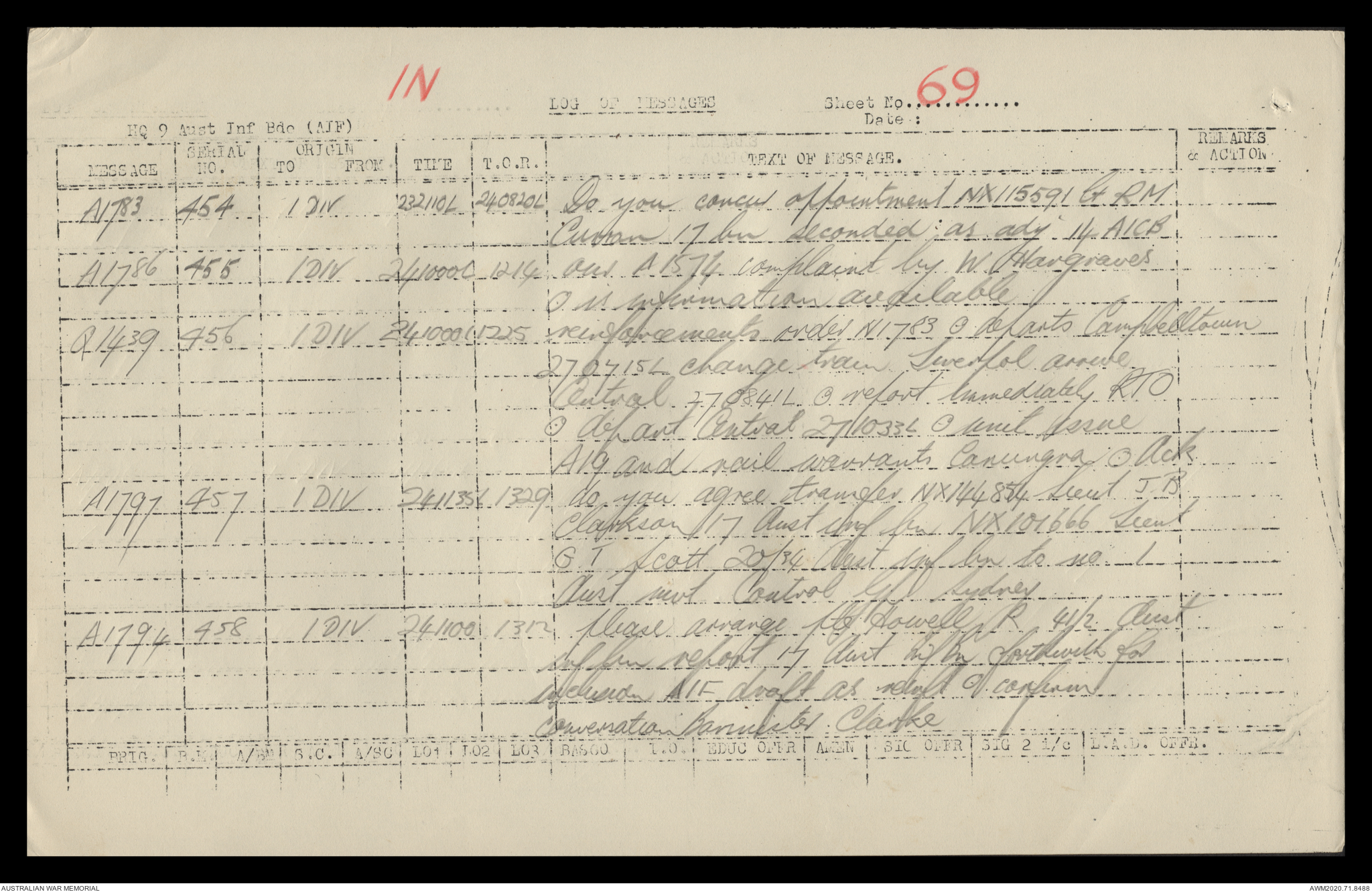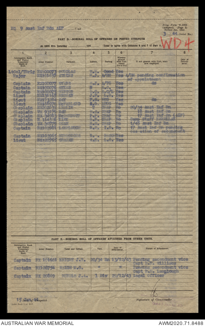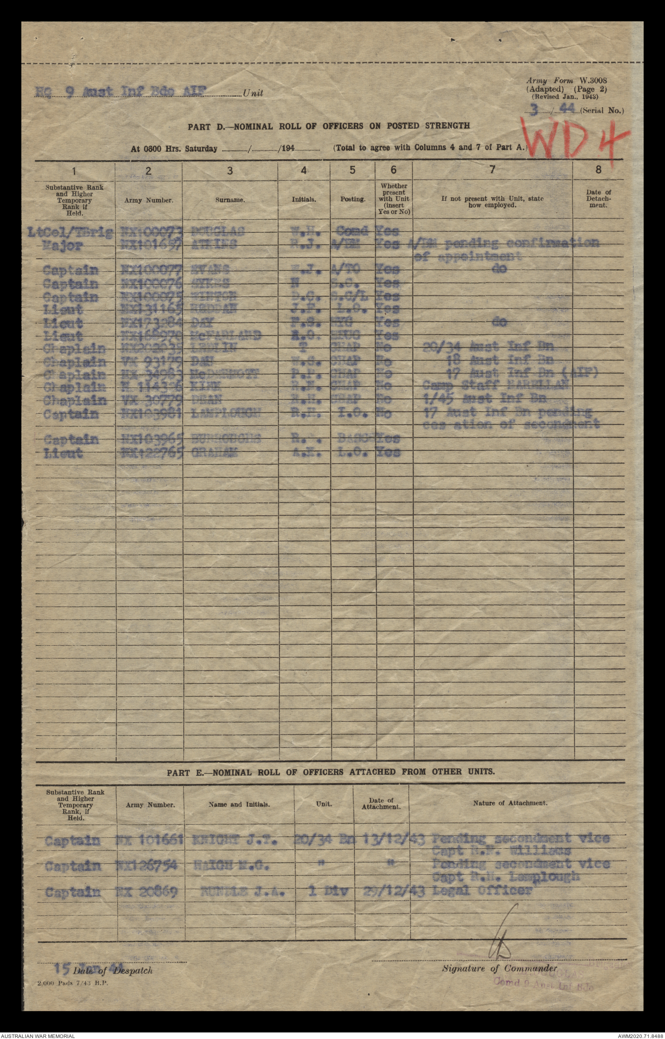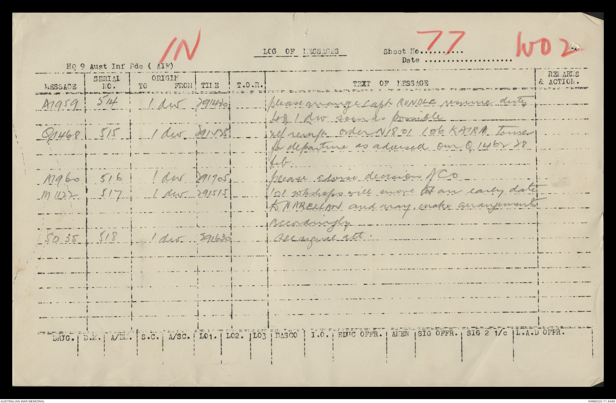- AWM52 8/2/9 - Headquarters, 9 Infantry Brigade