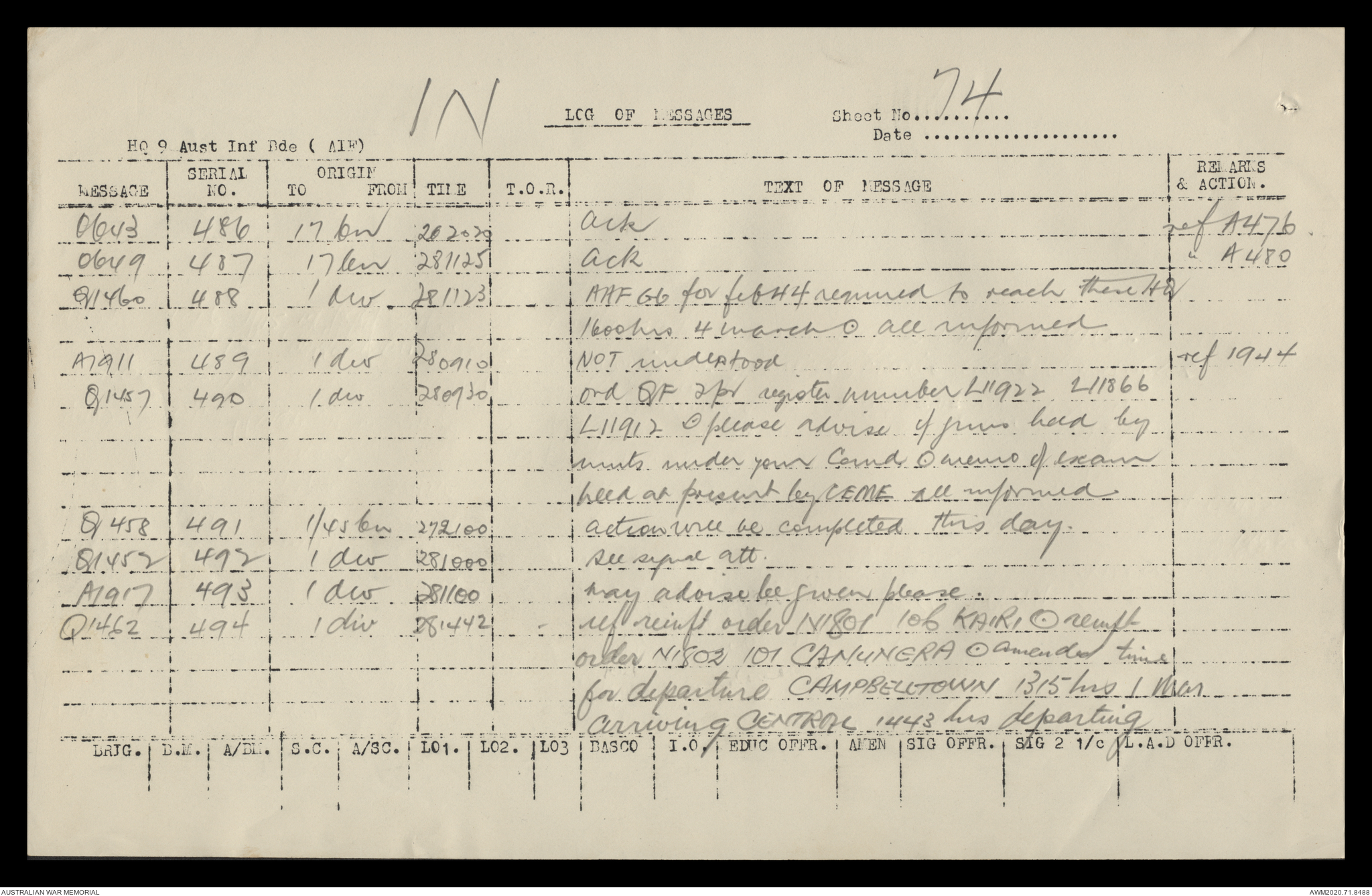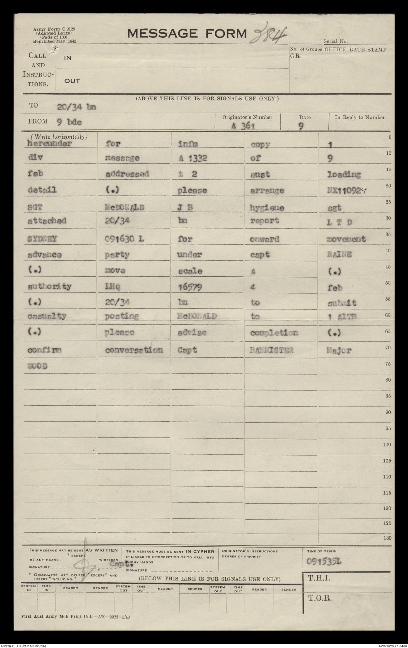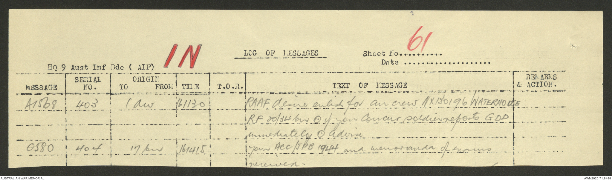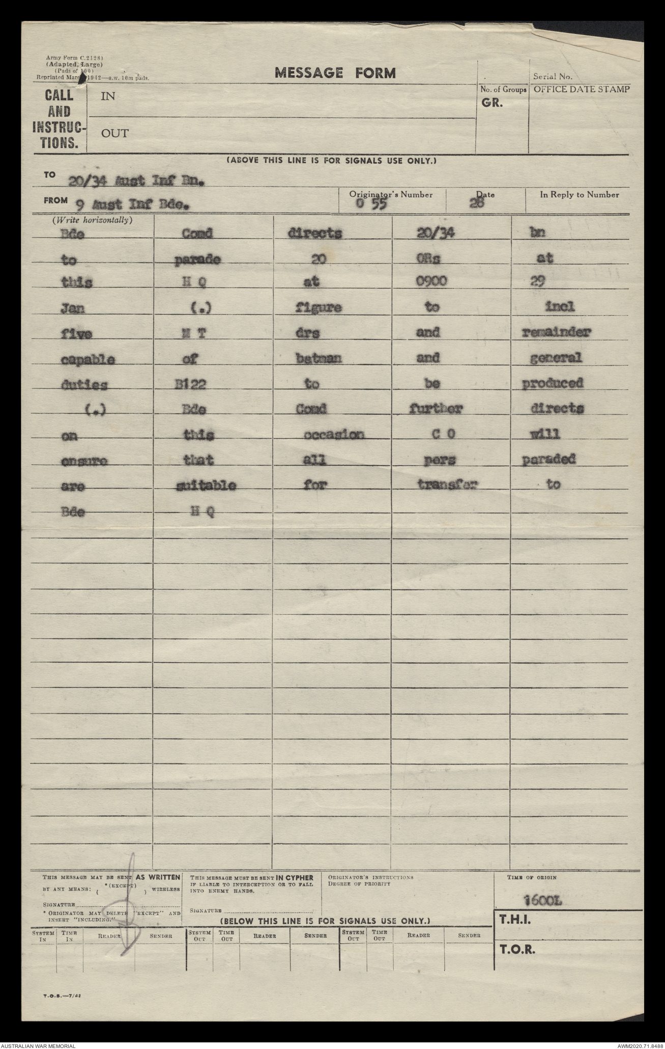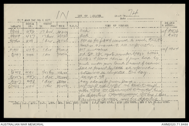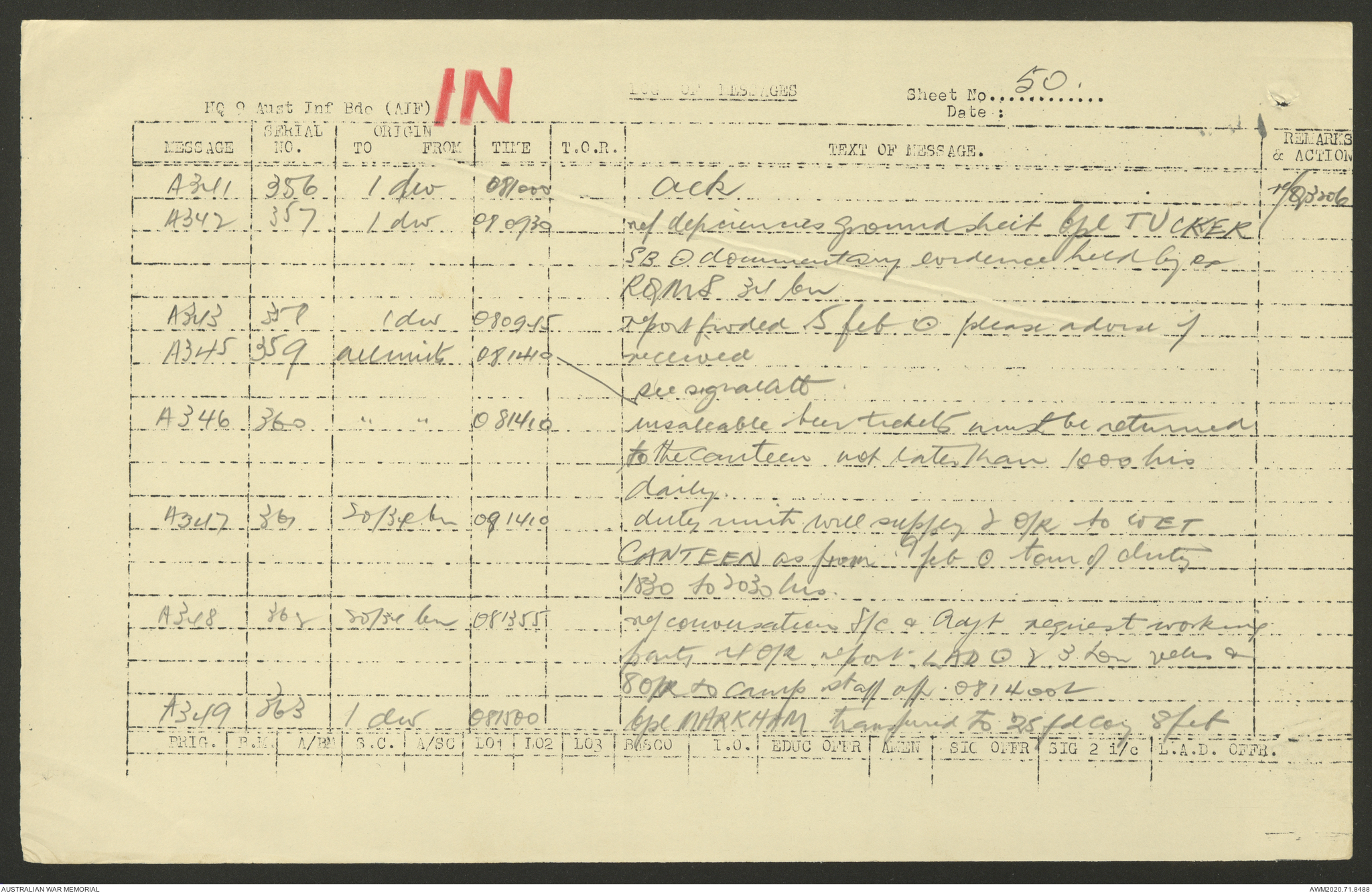 - AWM52 8/2/9 - Headquarters, 9 Infantry Brigade