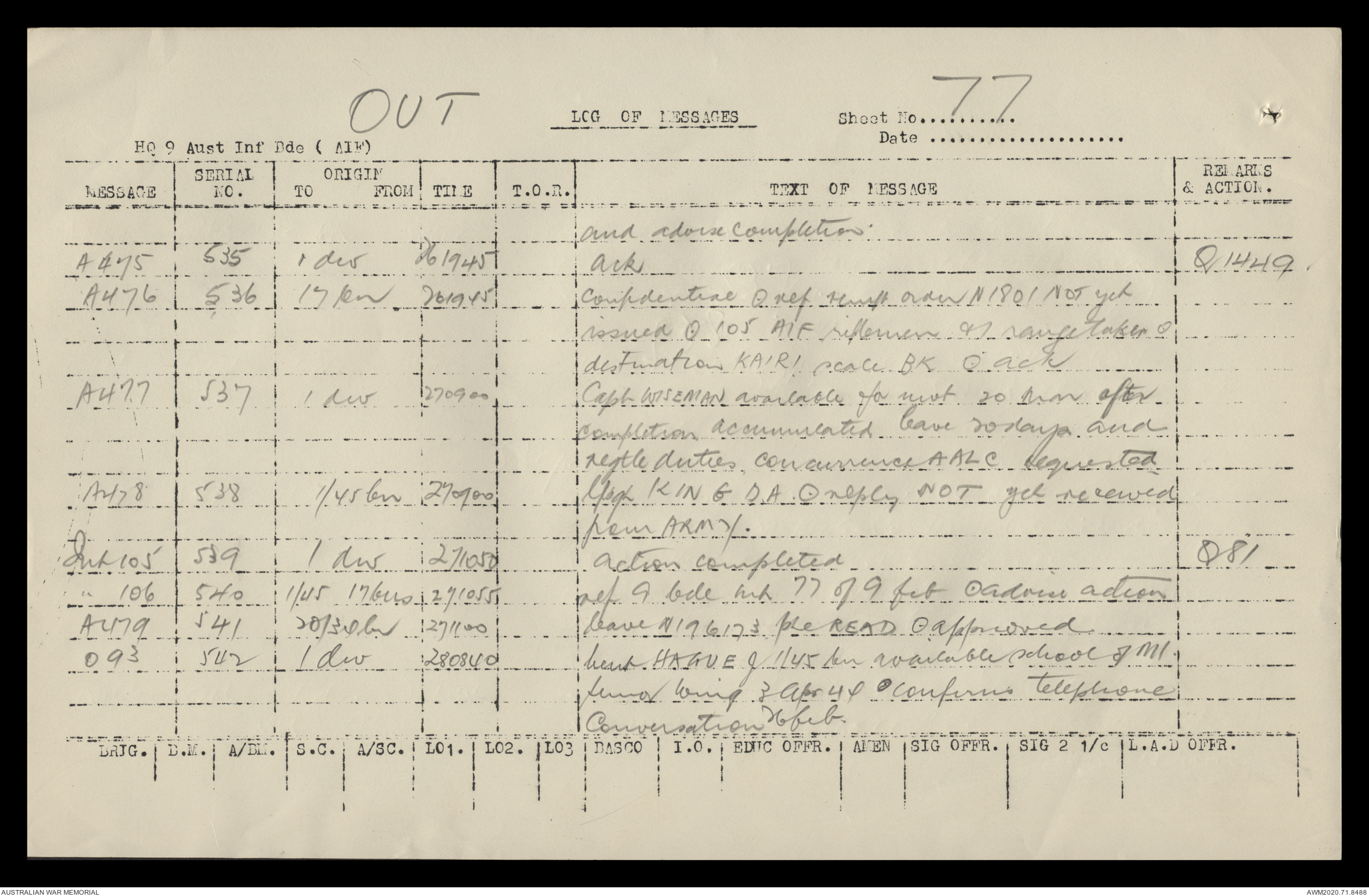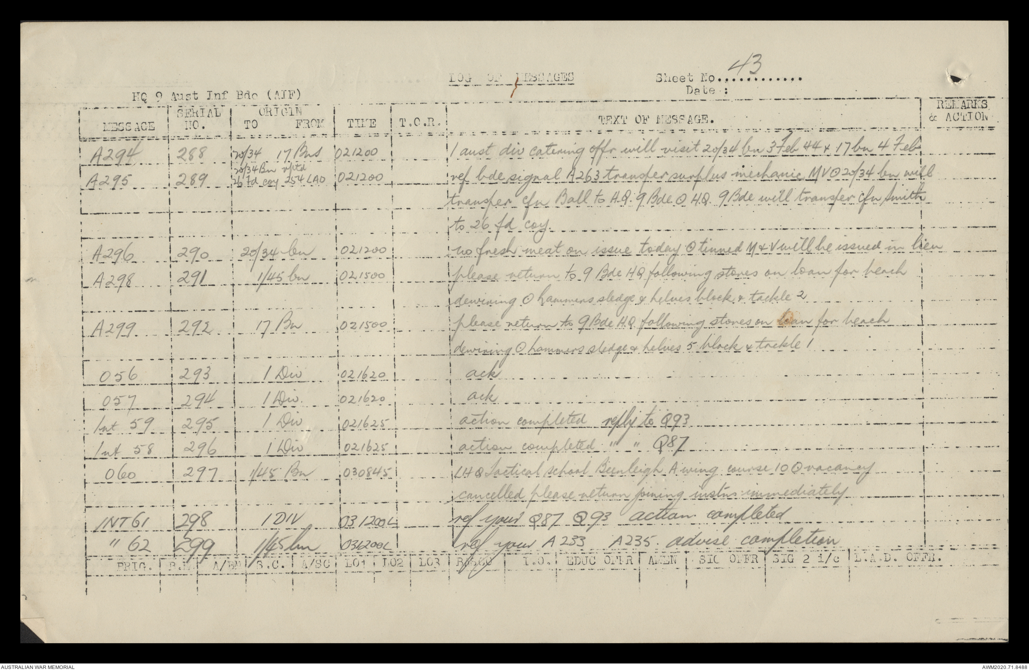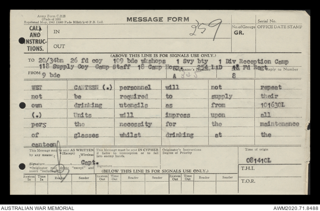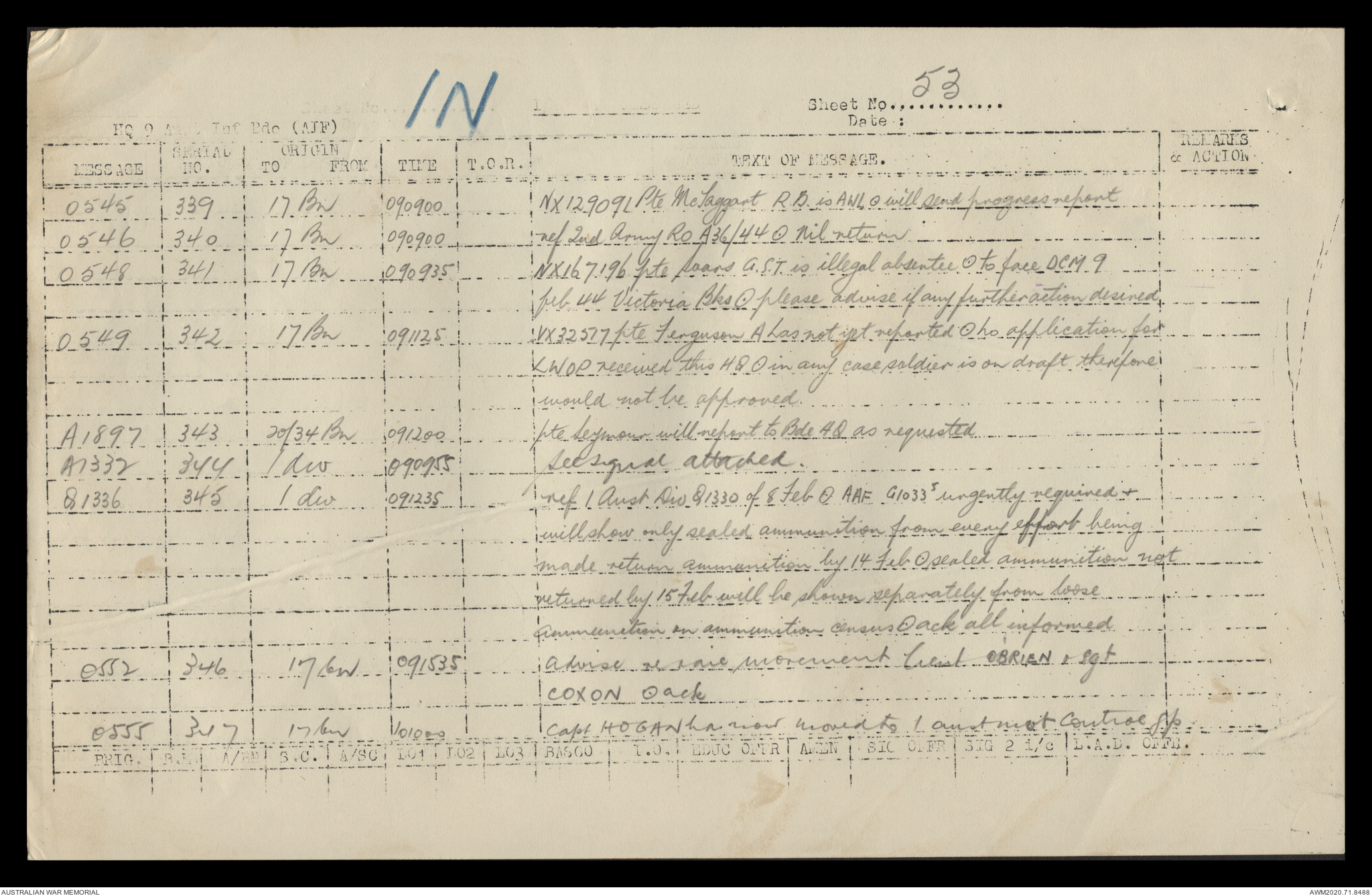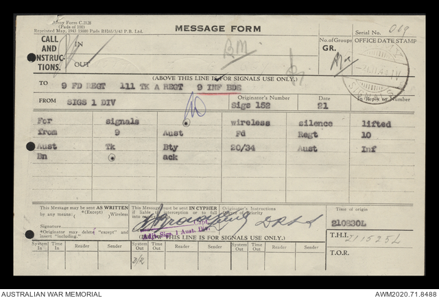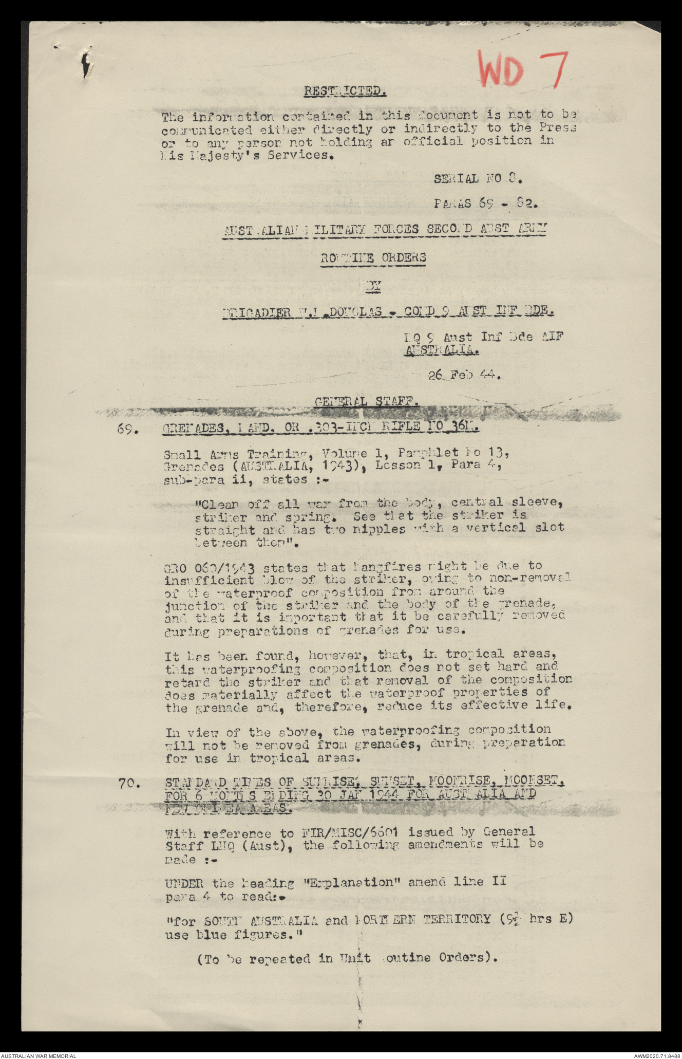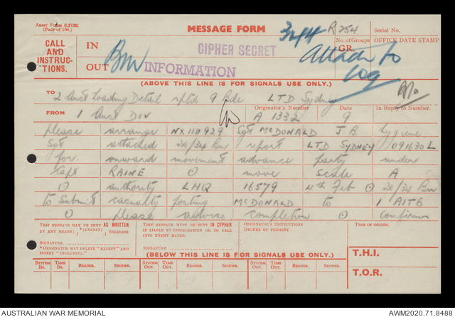 - AWM52 8/2/9 - Headquarters, 9 Infantry Brigade