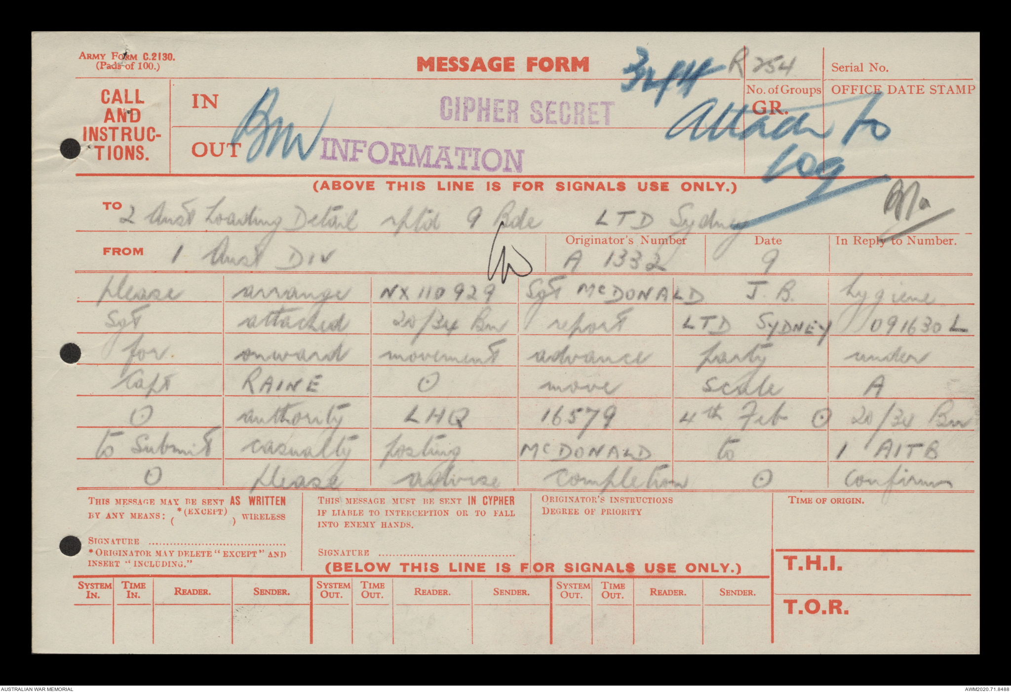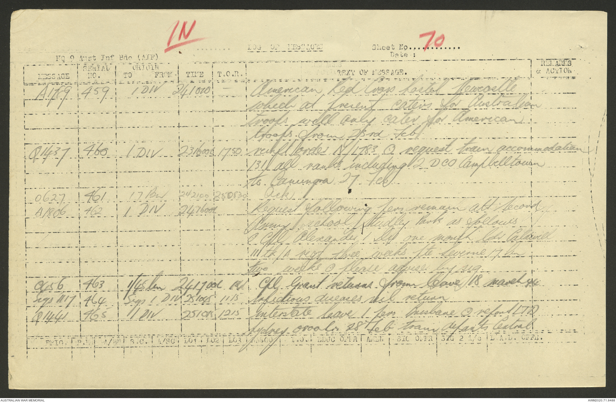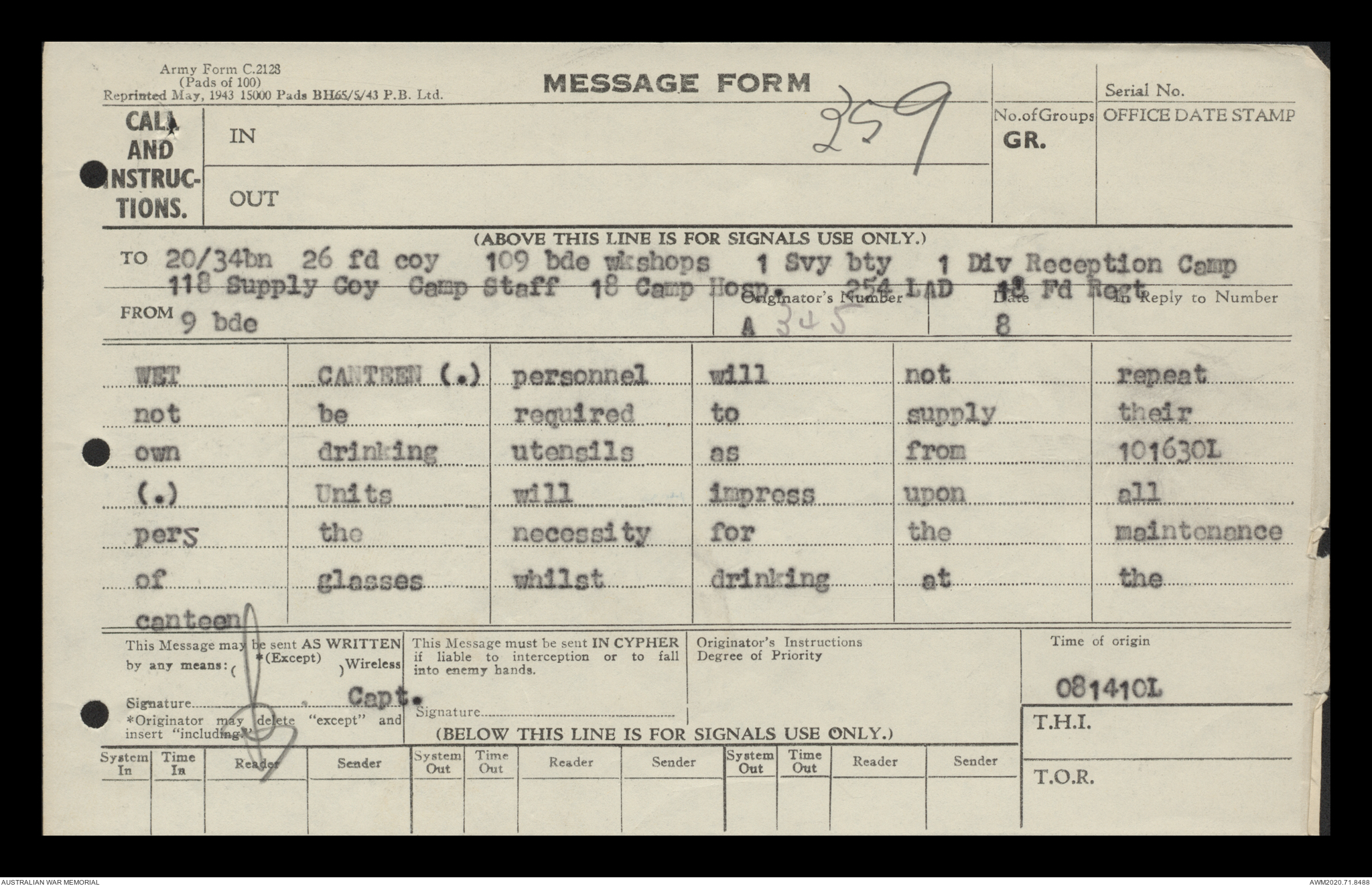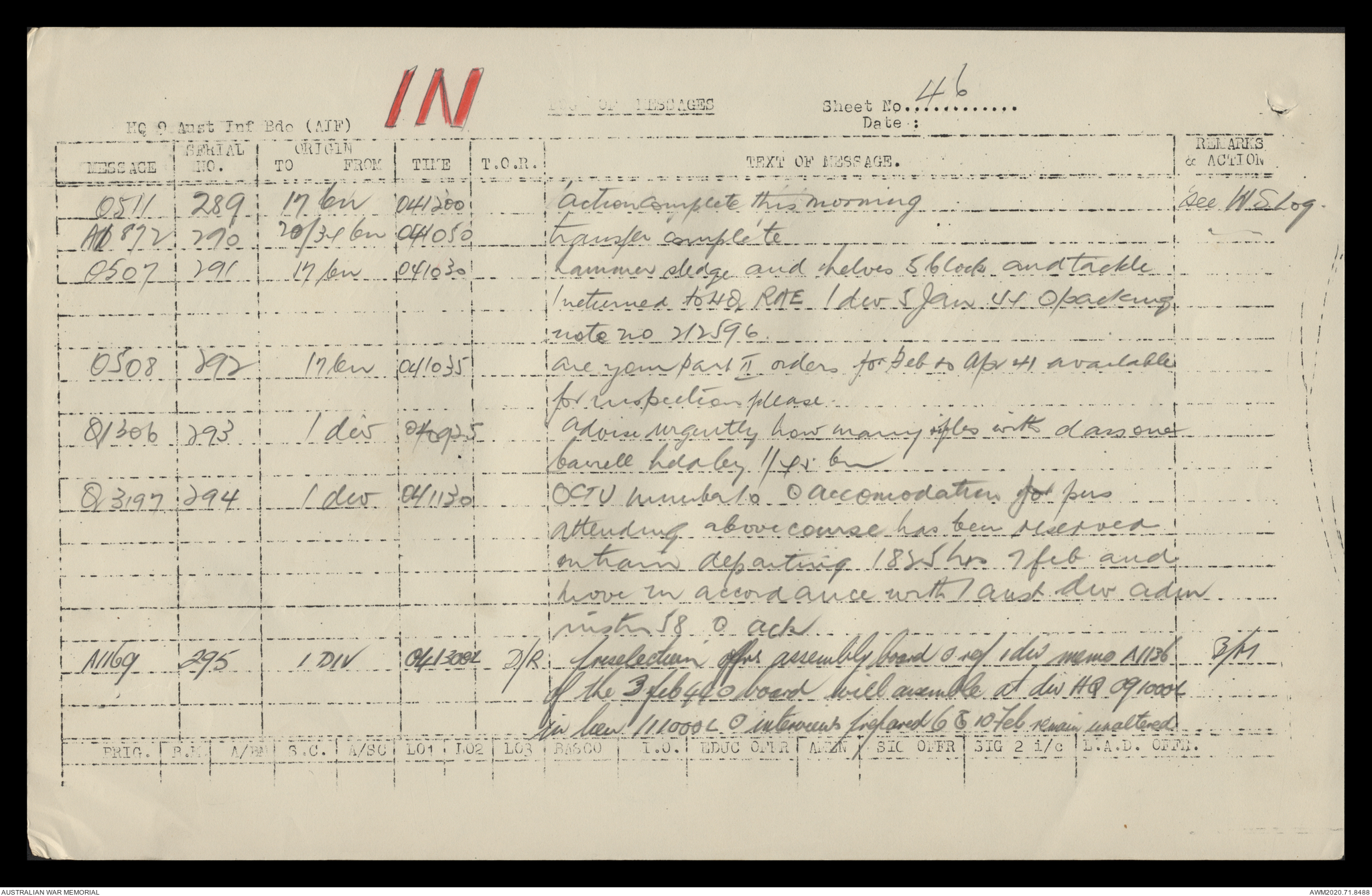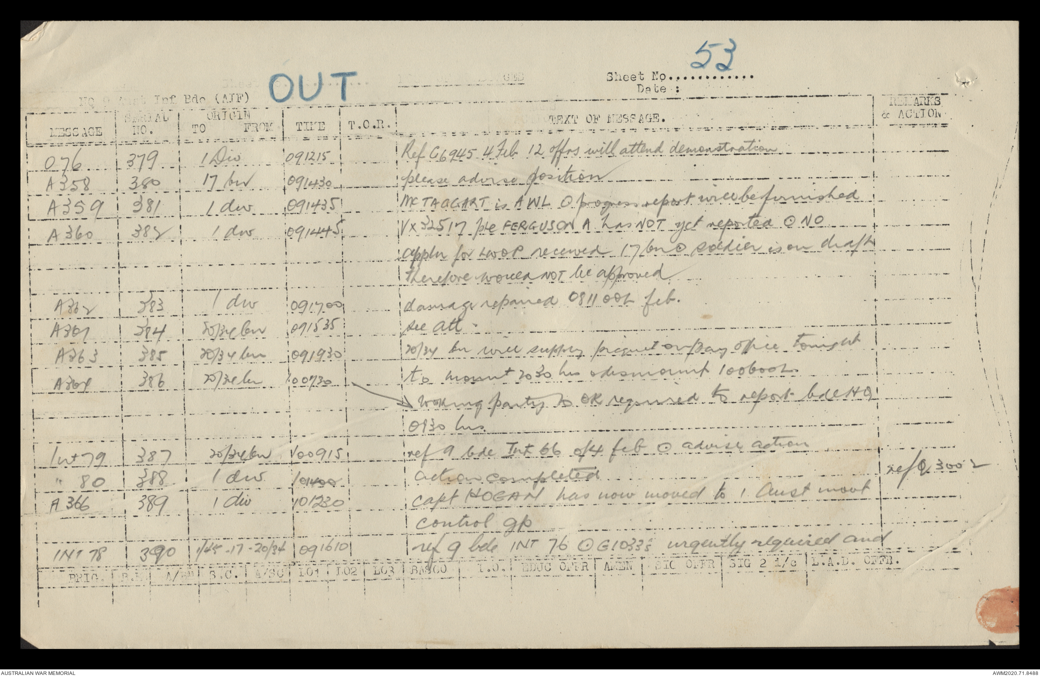 - AWM52 8/2/9 - Headquarters, 9 Infantry Brigade