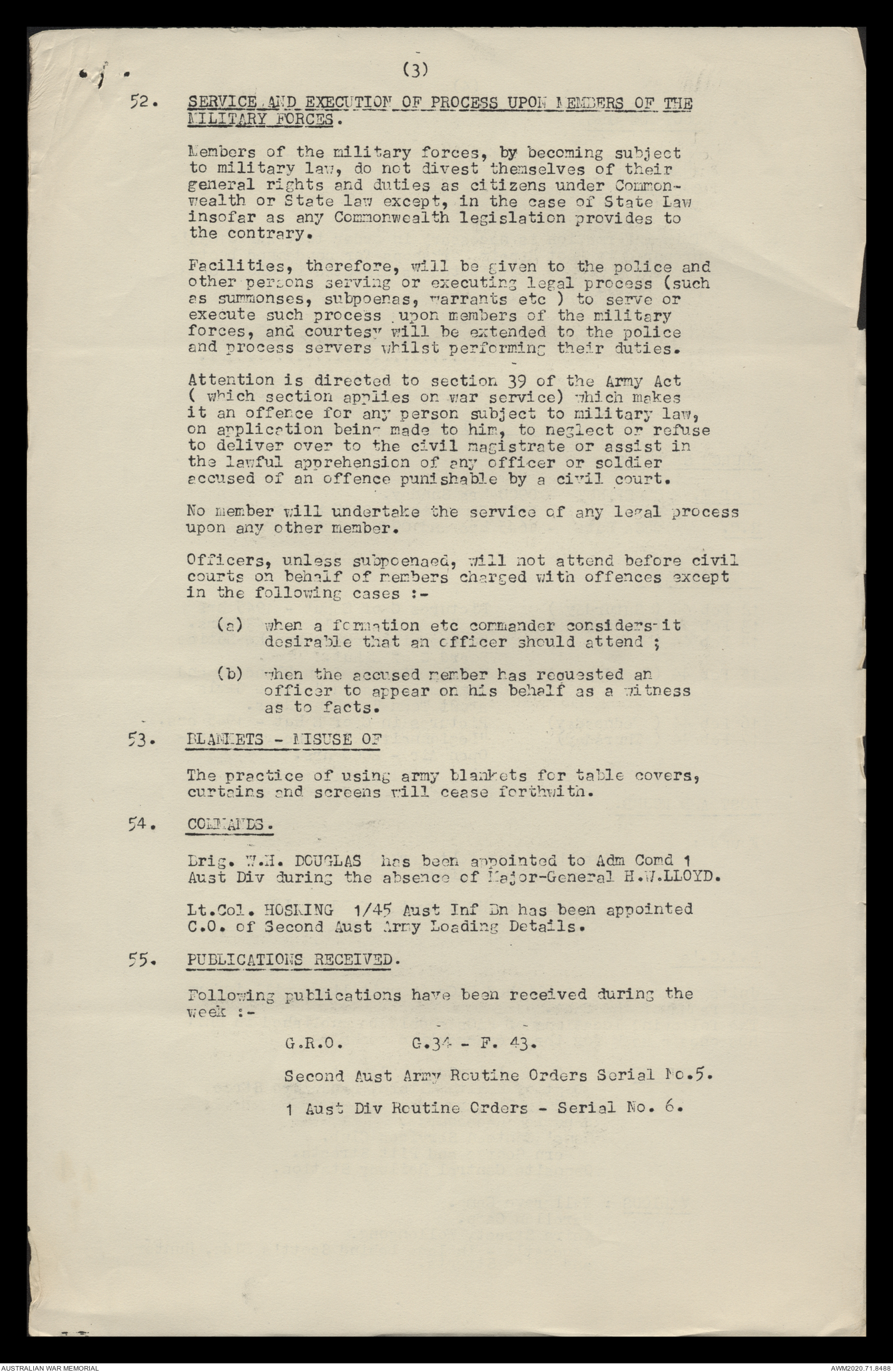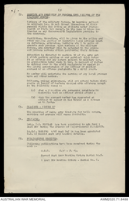 2nd AIF (Australian Imperial Force) and CMF (Citizen Military Forces) unit war diaries, 1939-45 War