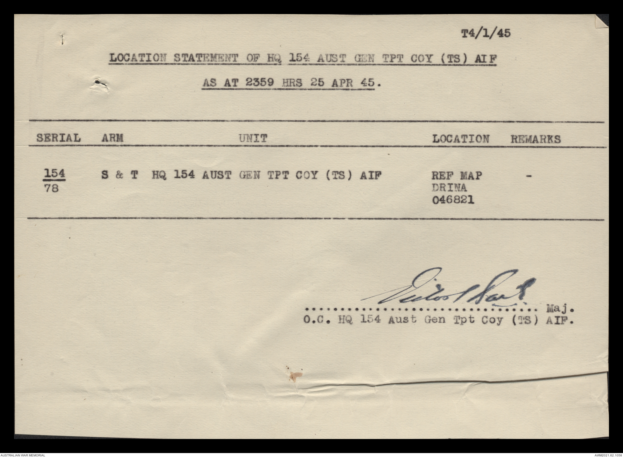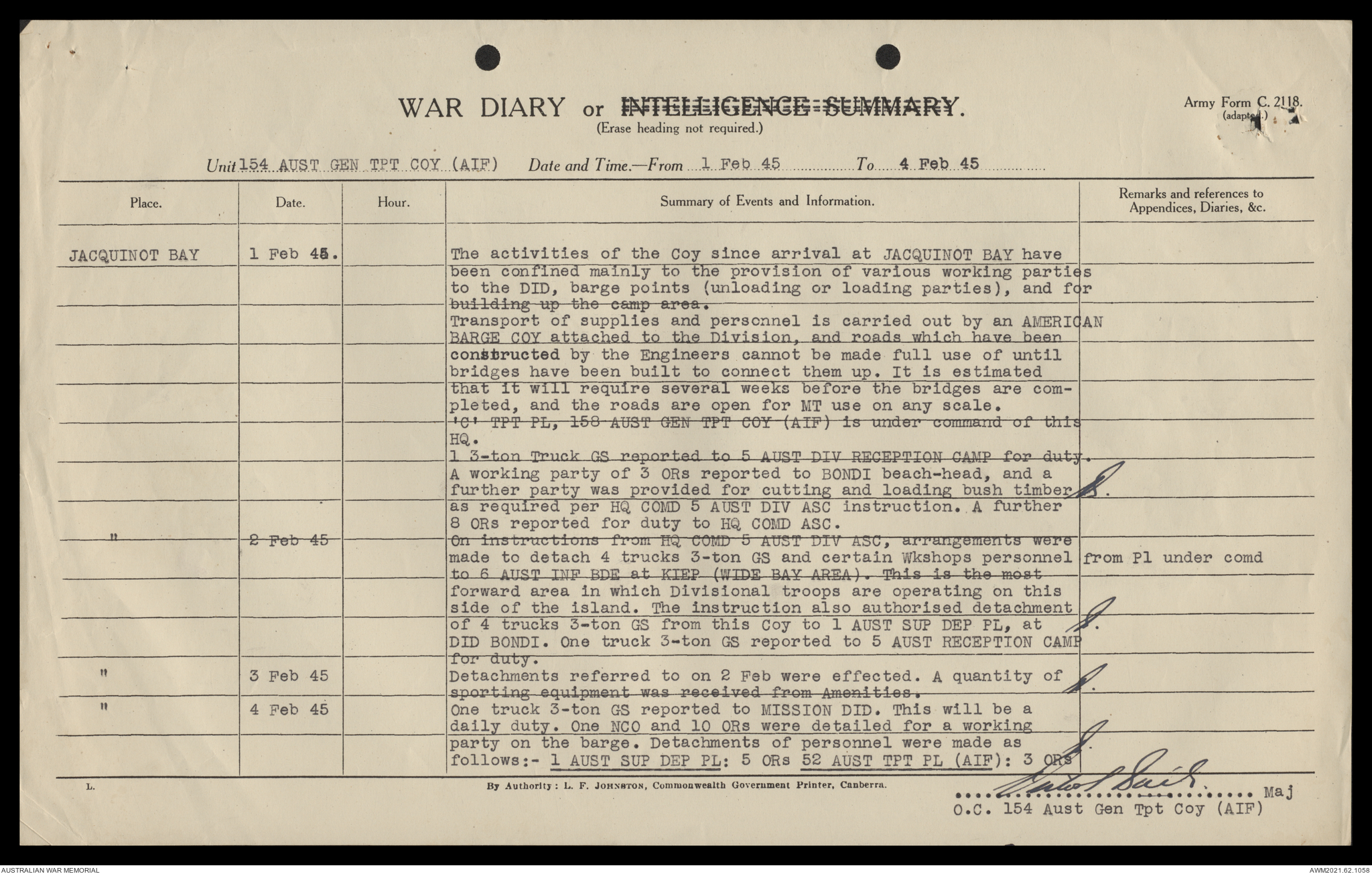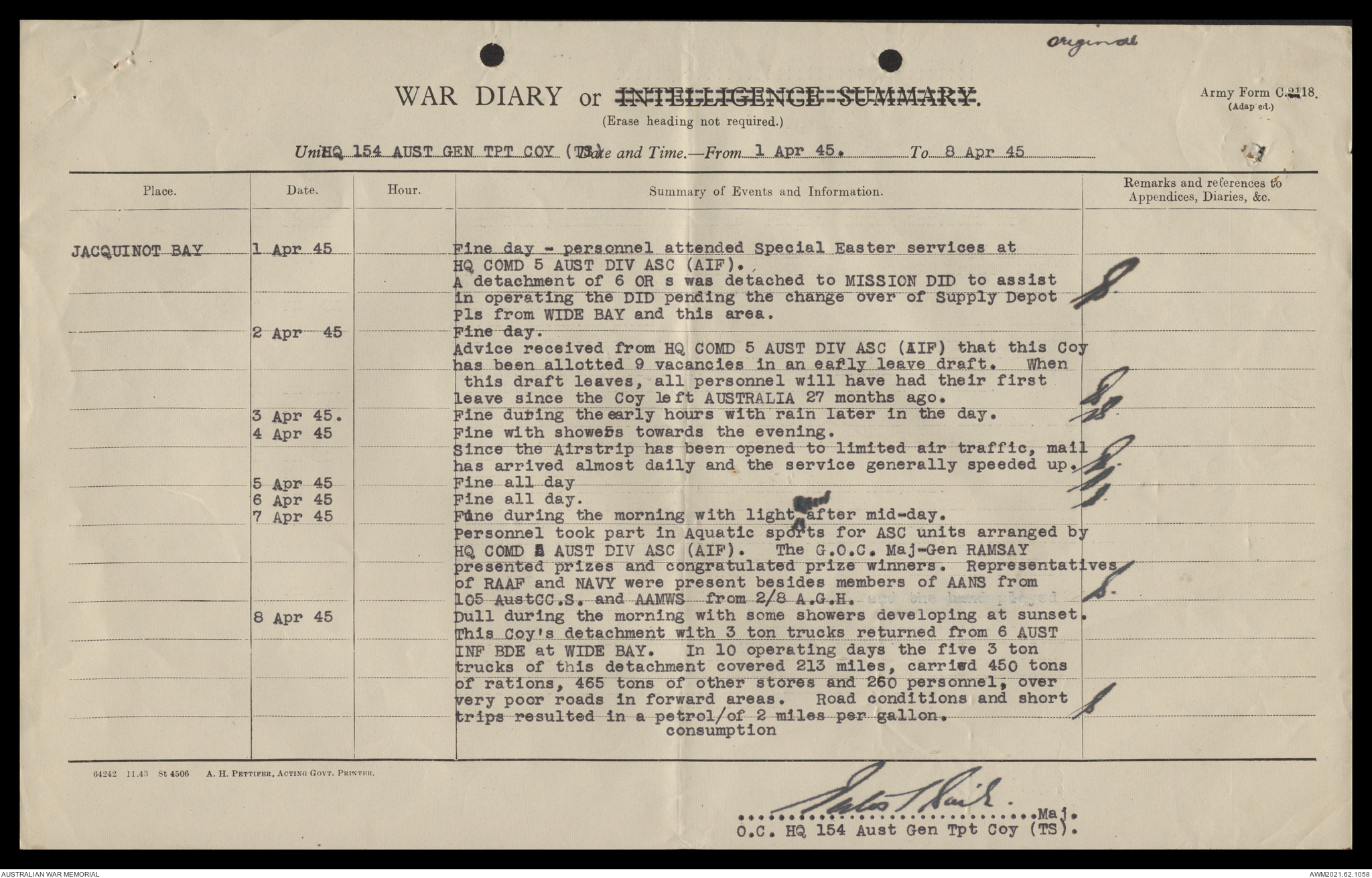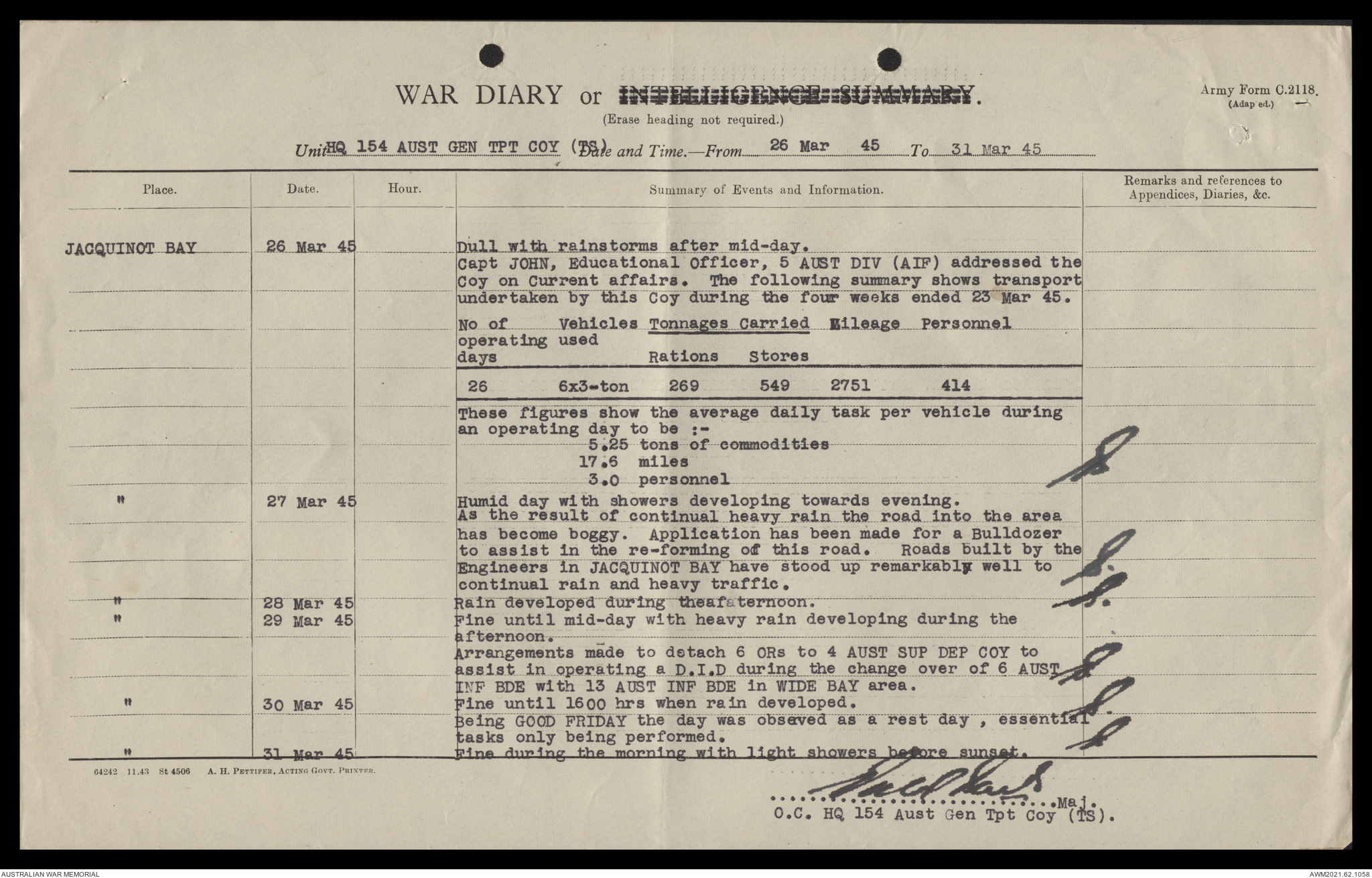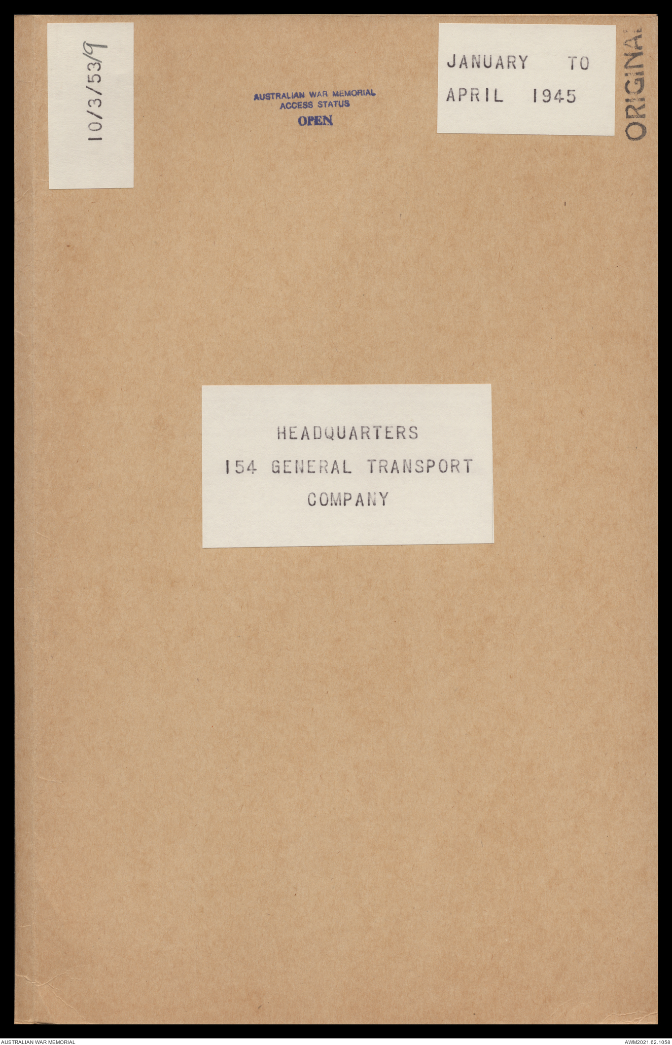 AWM52 10/3/53/9 - [Unit War Diaries, 1939-45 War] 154 General Transport Company, January - April 1945