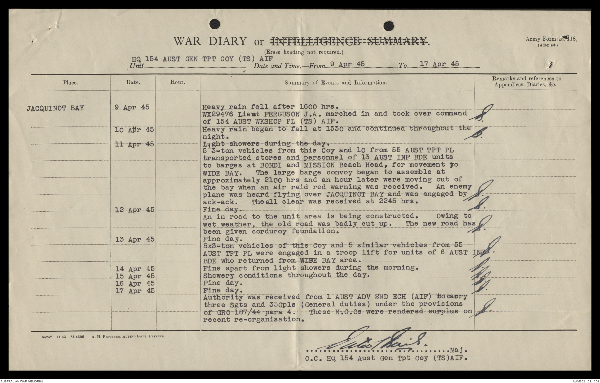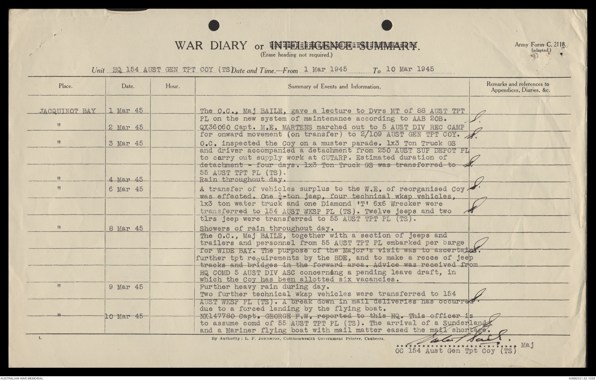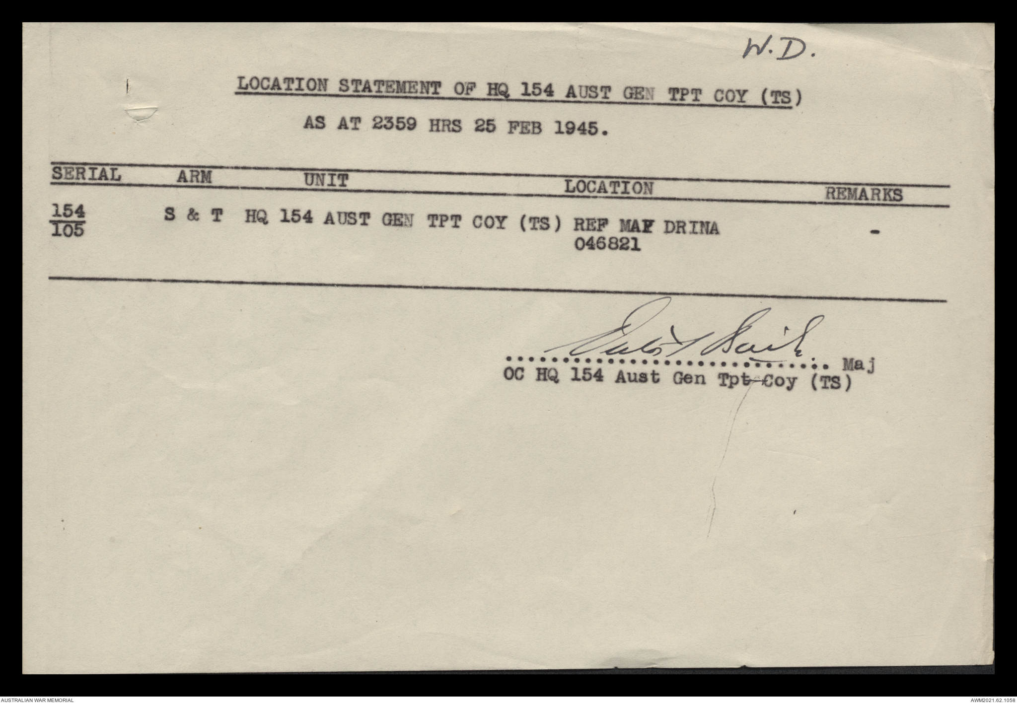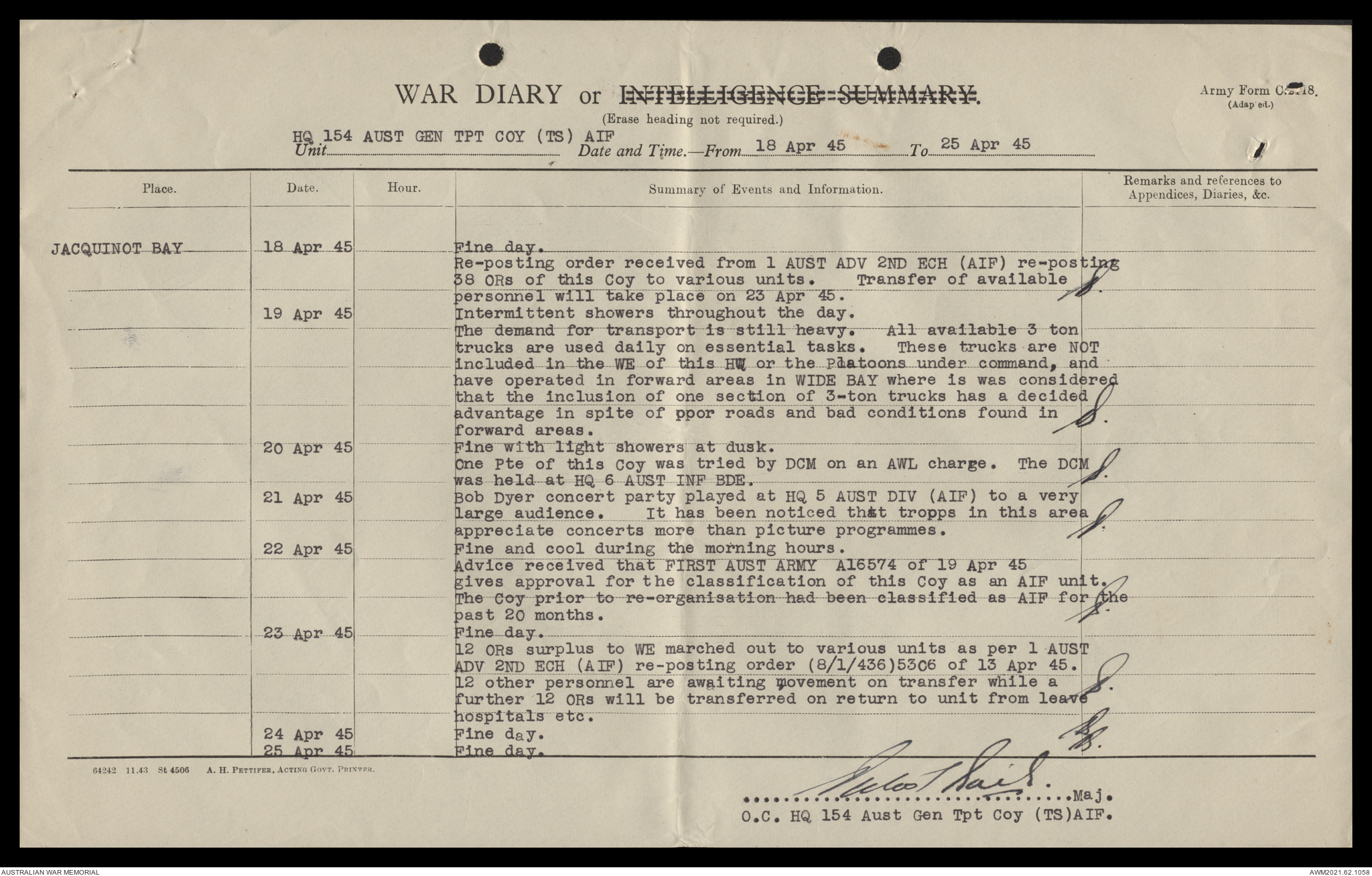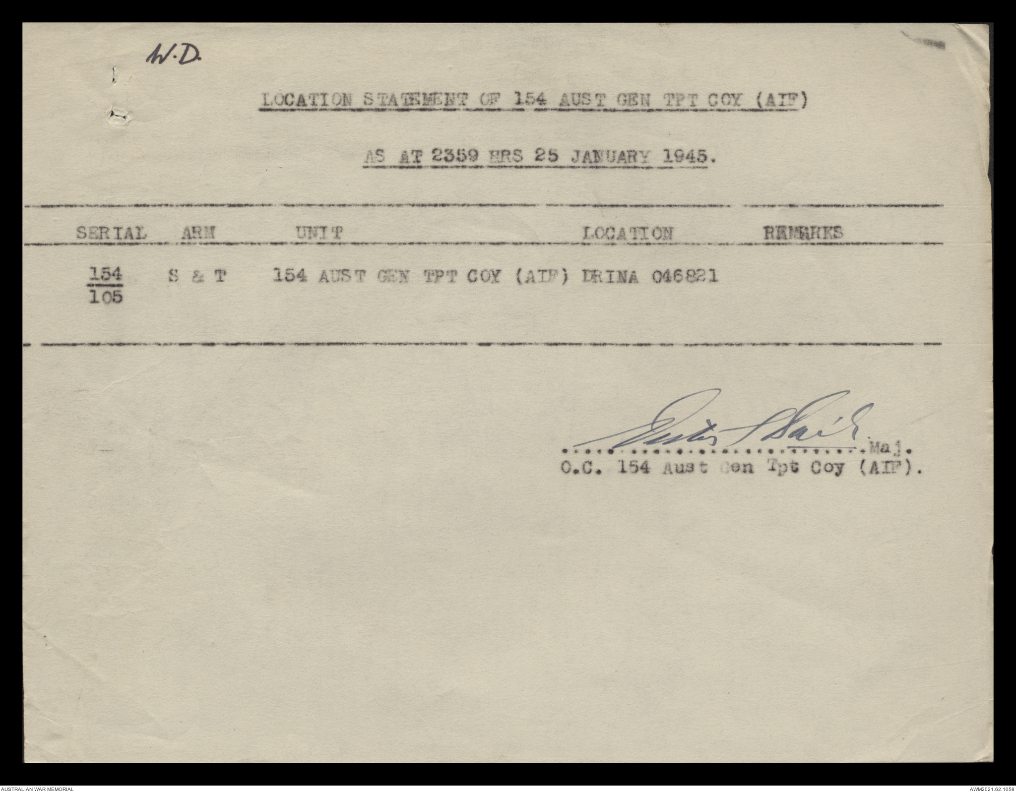 AWM52 10/3/53/9 - [Unit War Diaries, 1939-45 War] 154 General Transport Company, January - April 1945