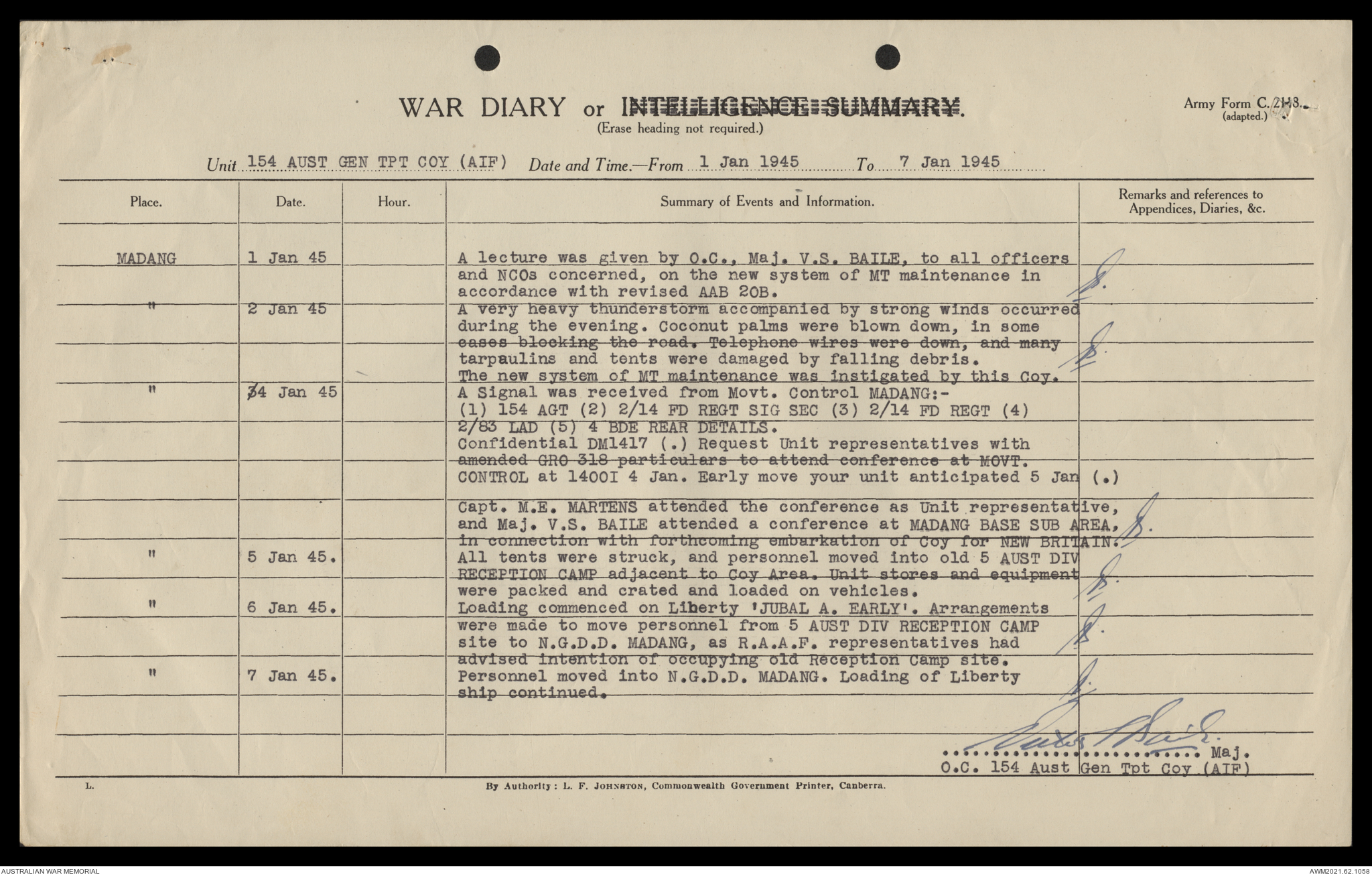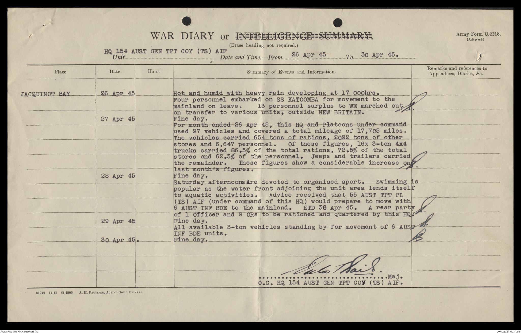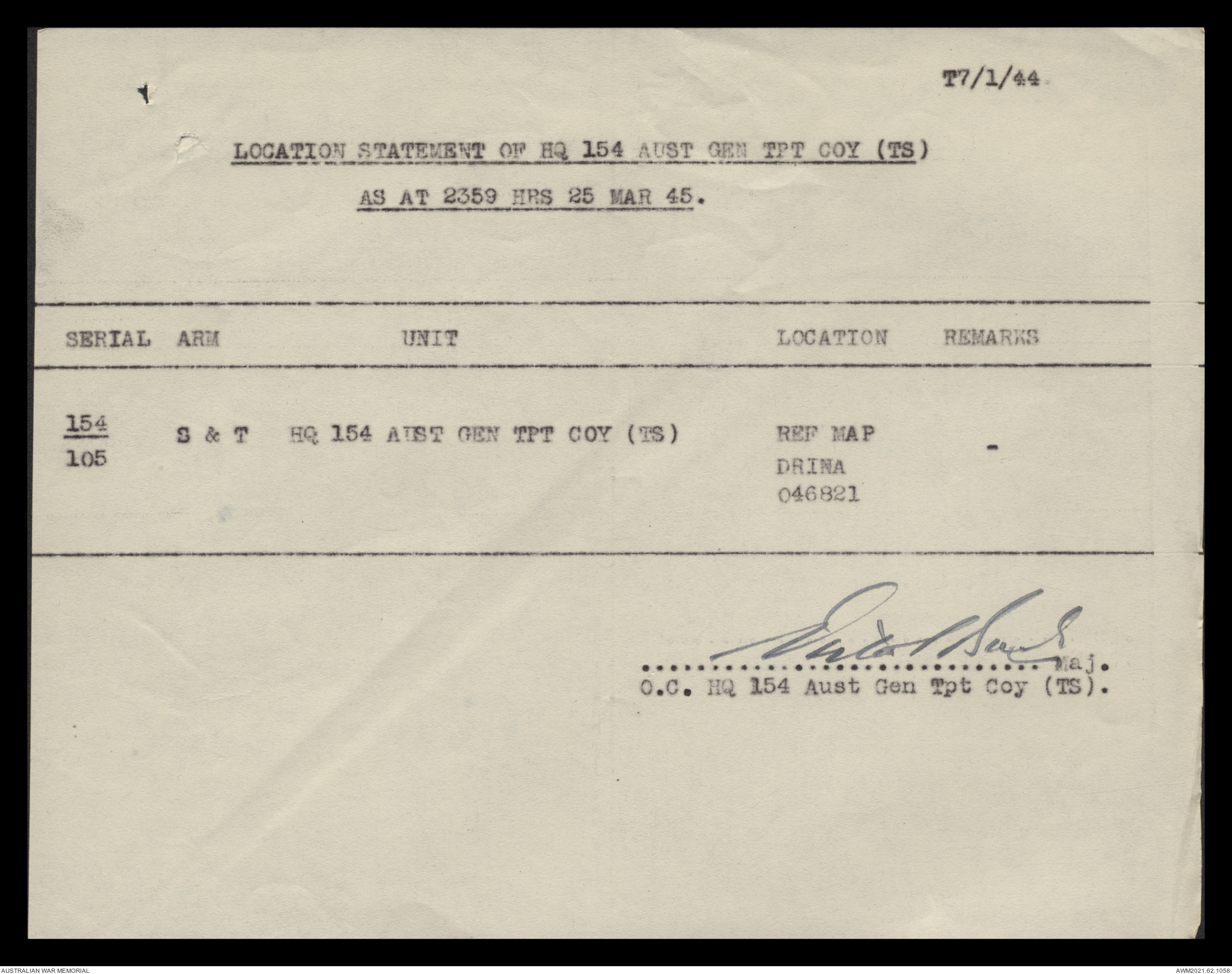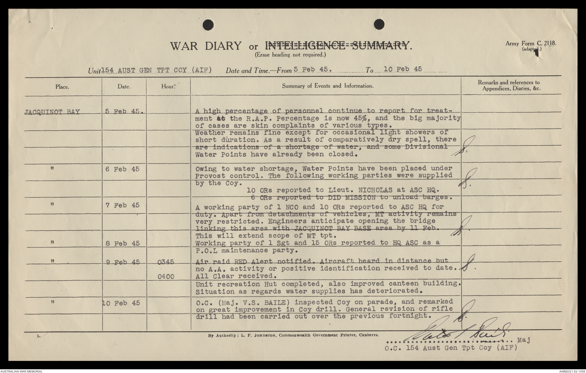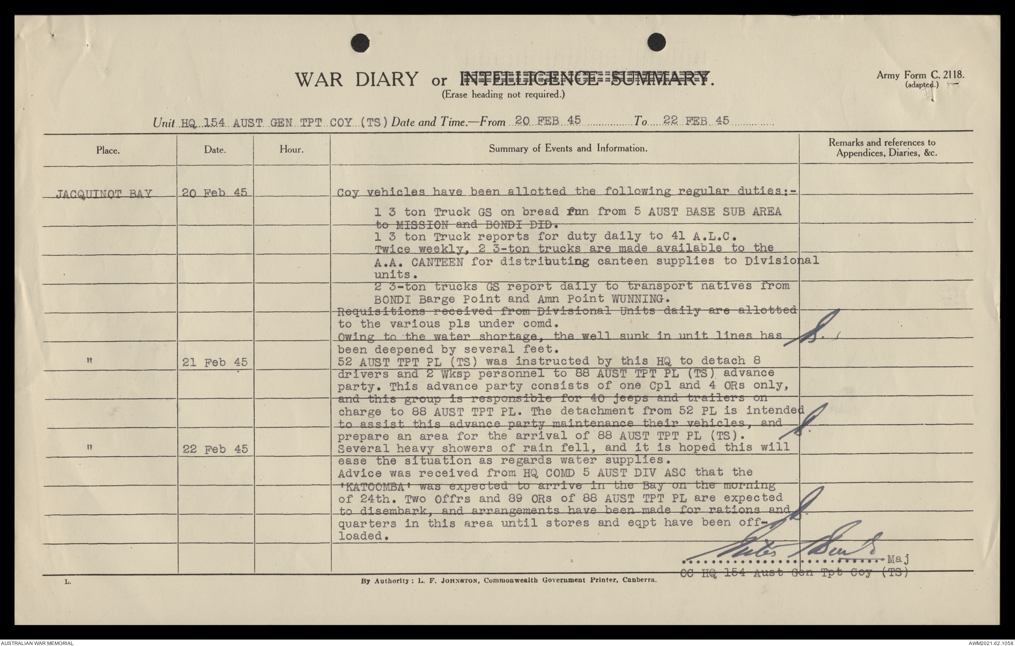 AWM52 10/3/53/9 - [Unit War Diaries, 1939-45 War] 154 General Transport Company, January - April 1945
