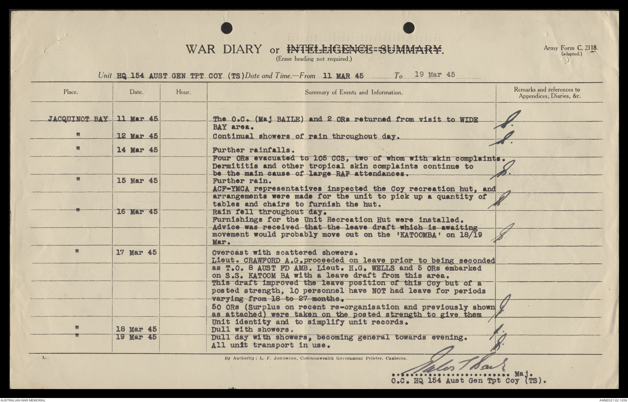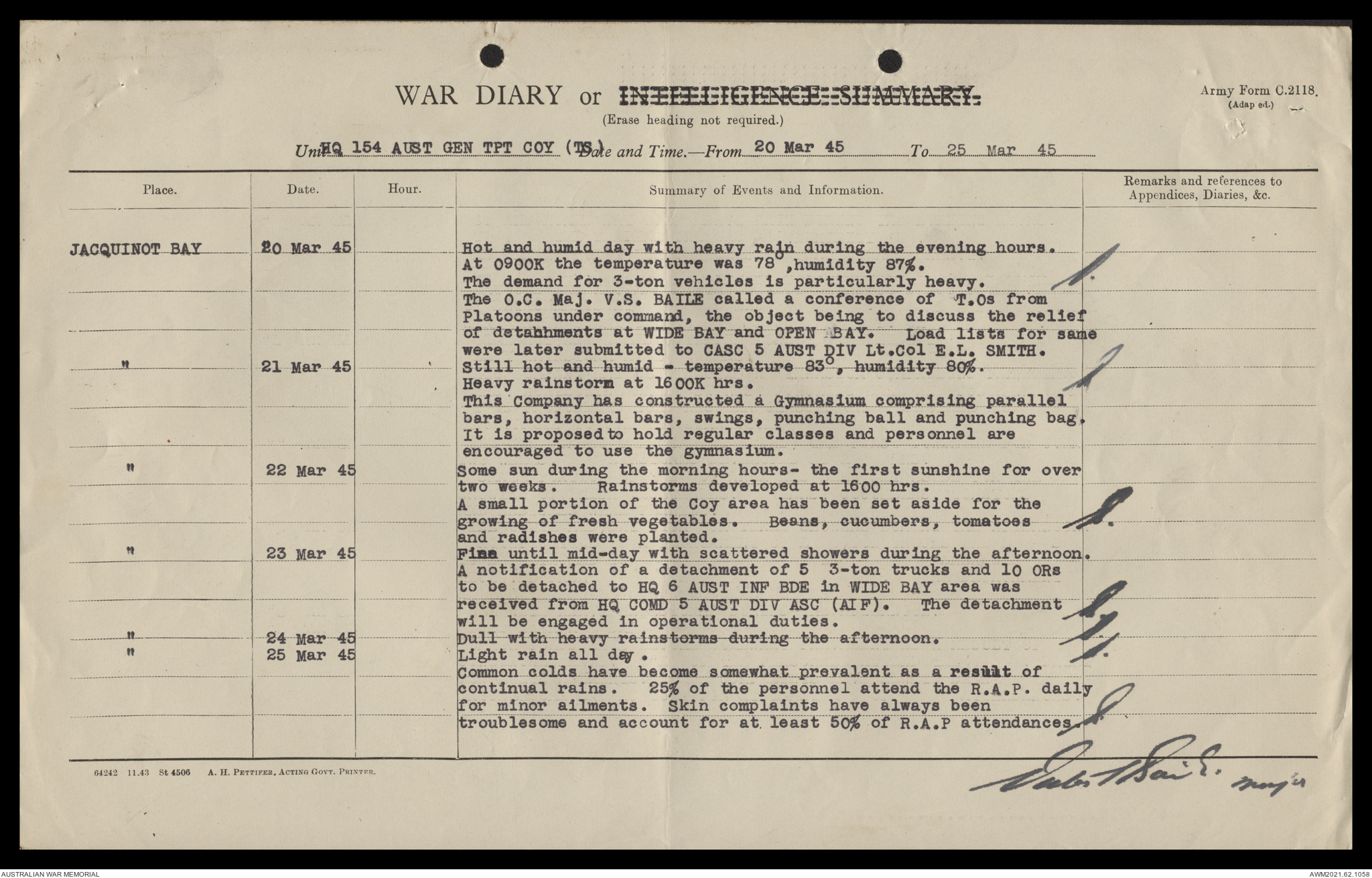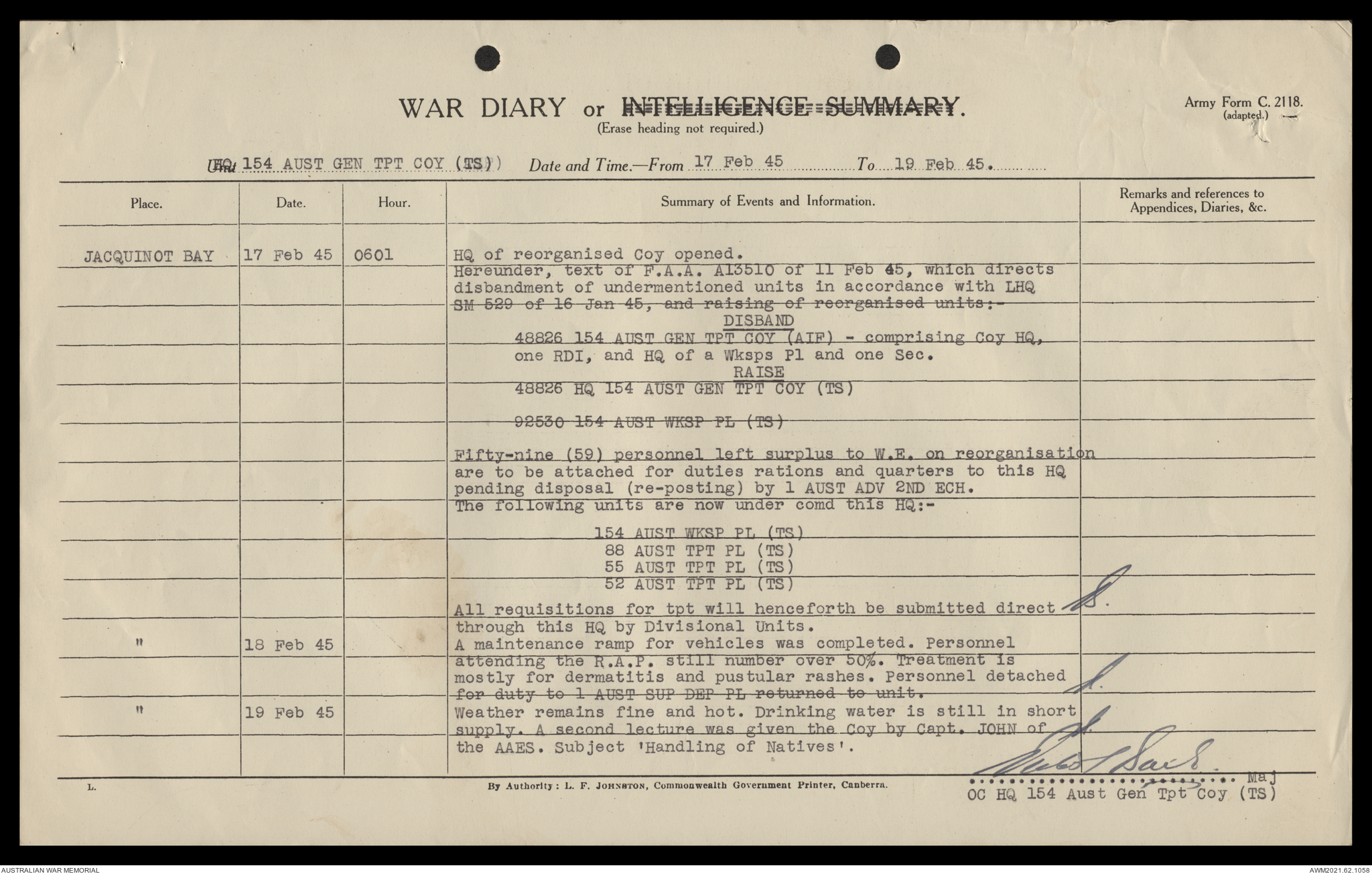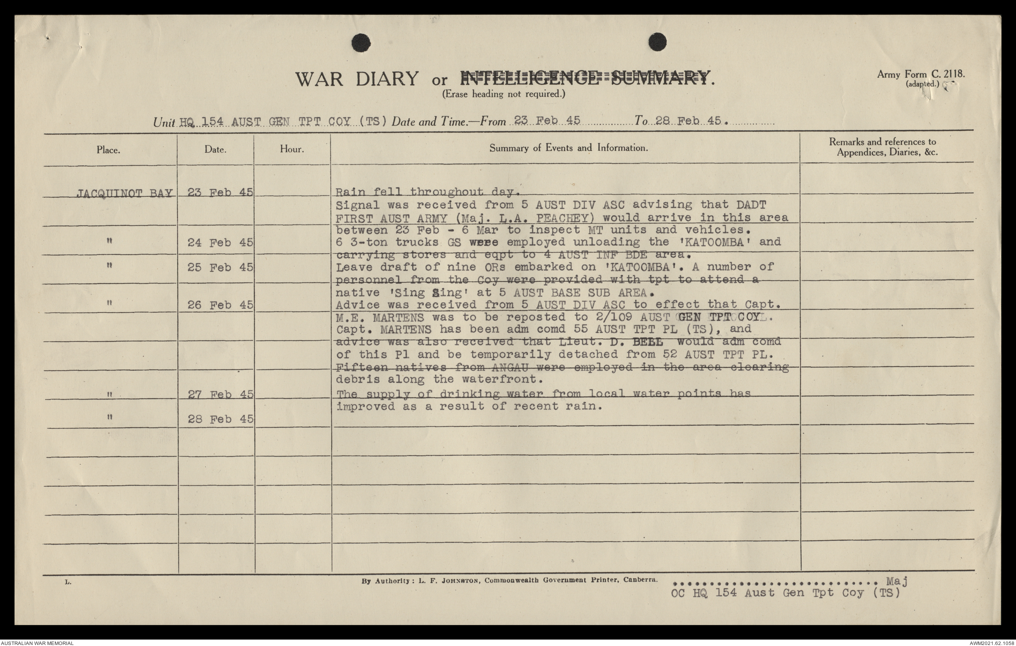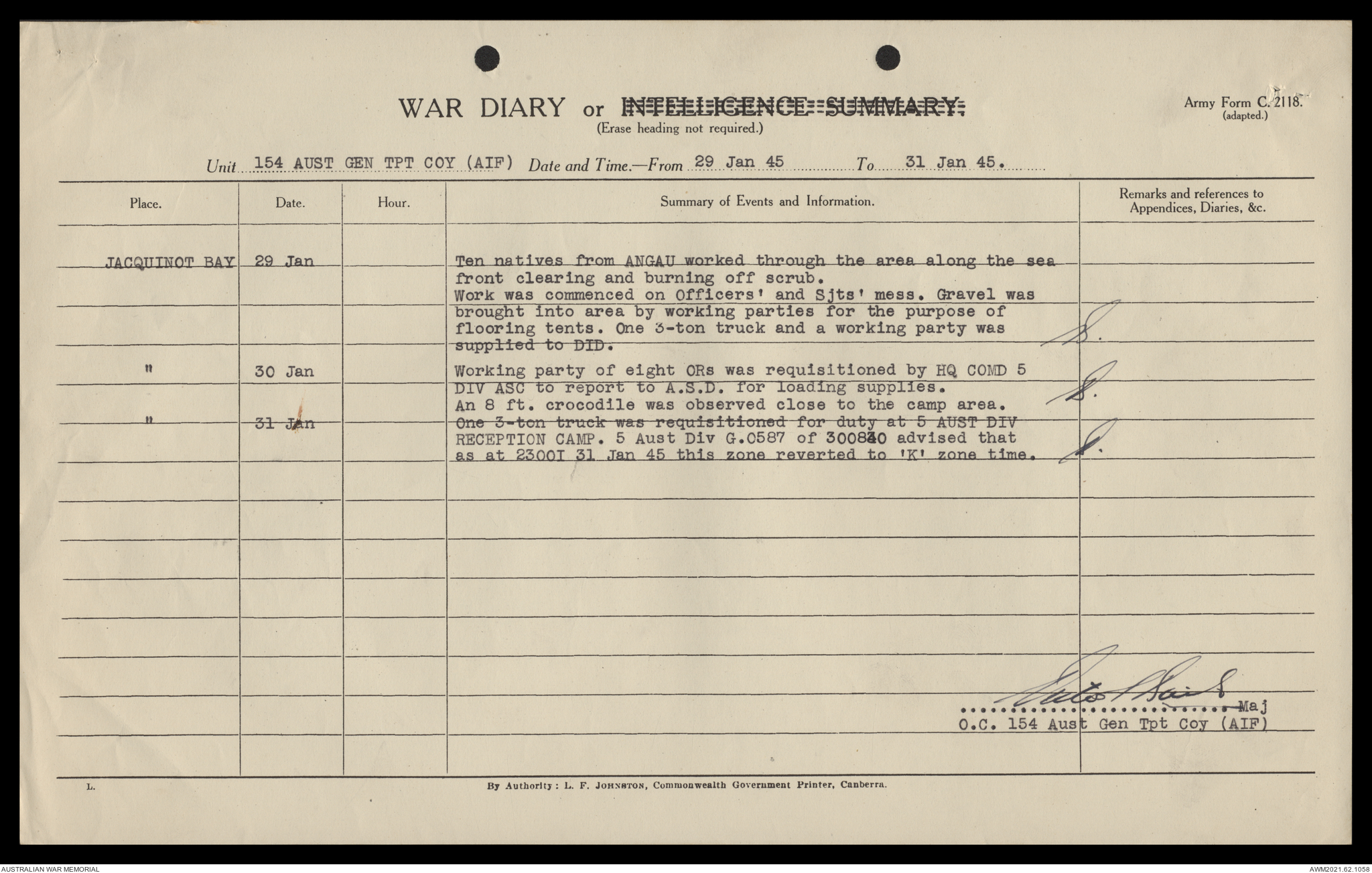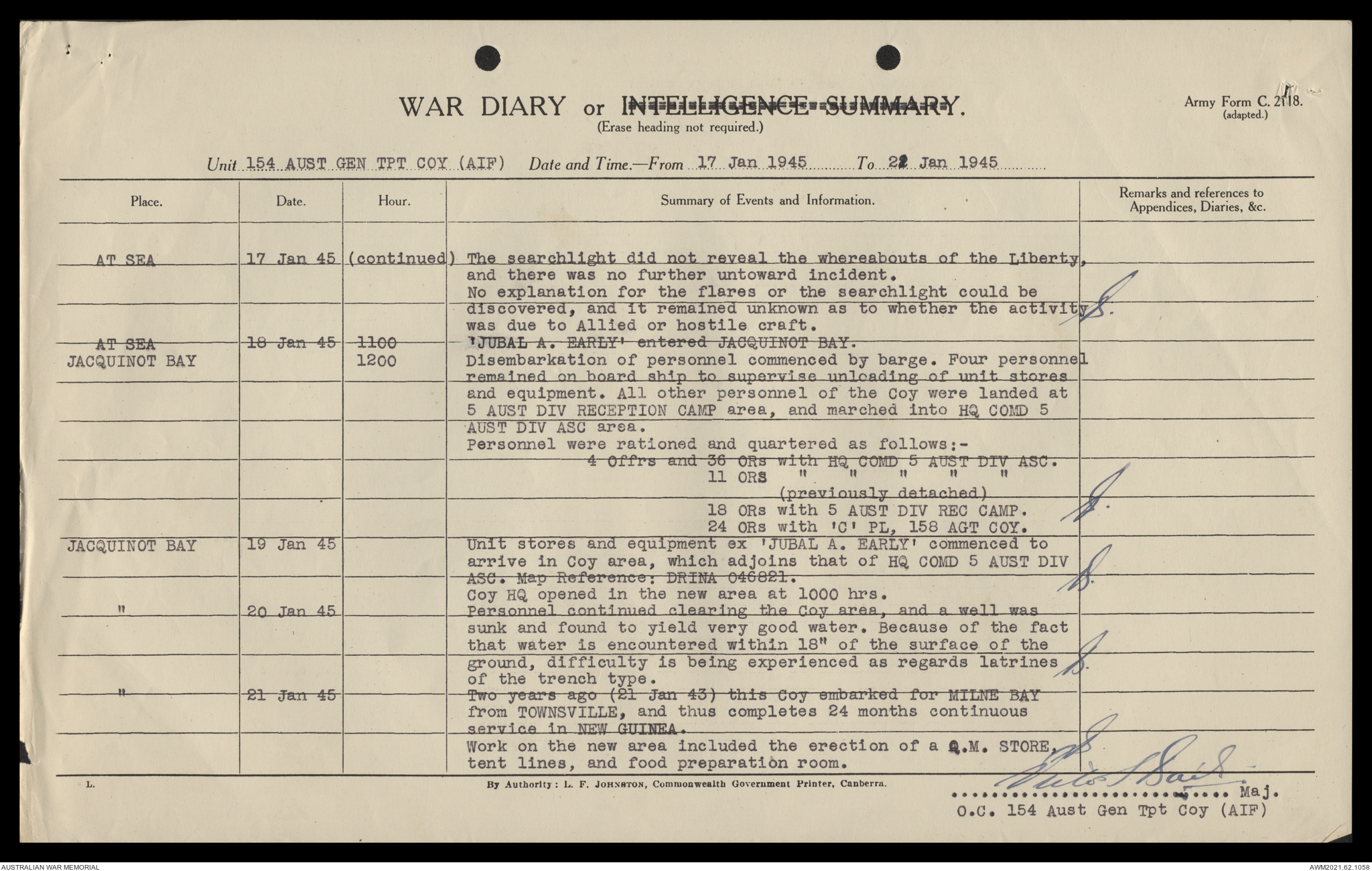 AWM52 10/3/53/9 - [Unit War Diaries, 1939-45 War] 154 General Transport Company, January - April 1945