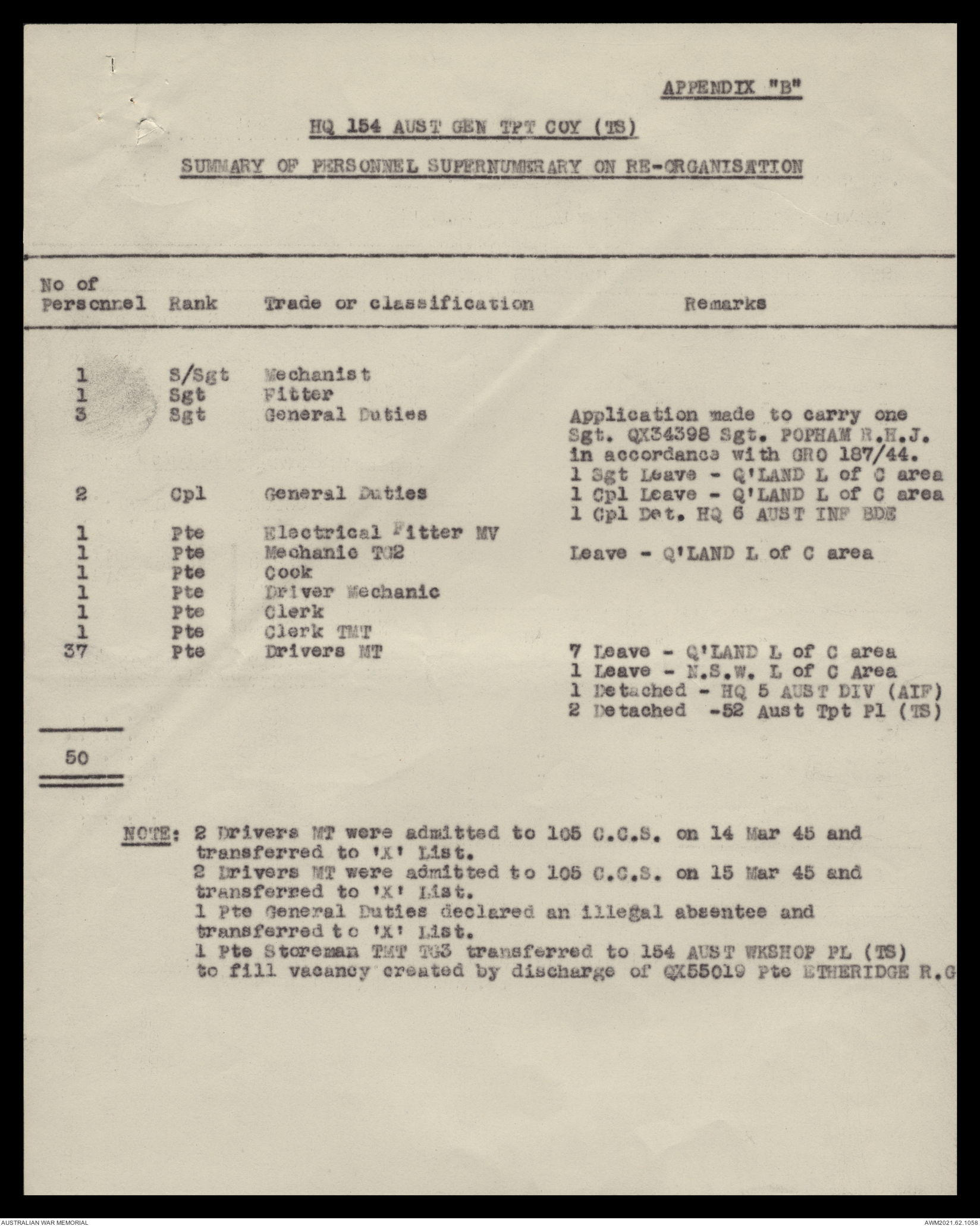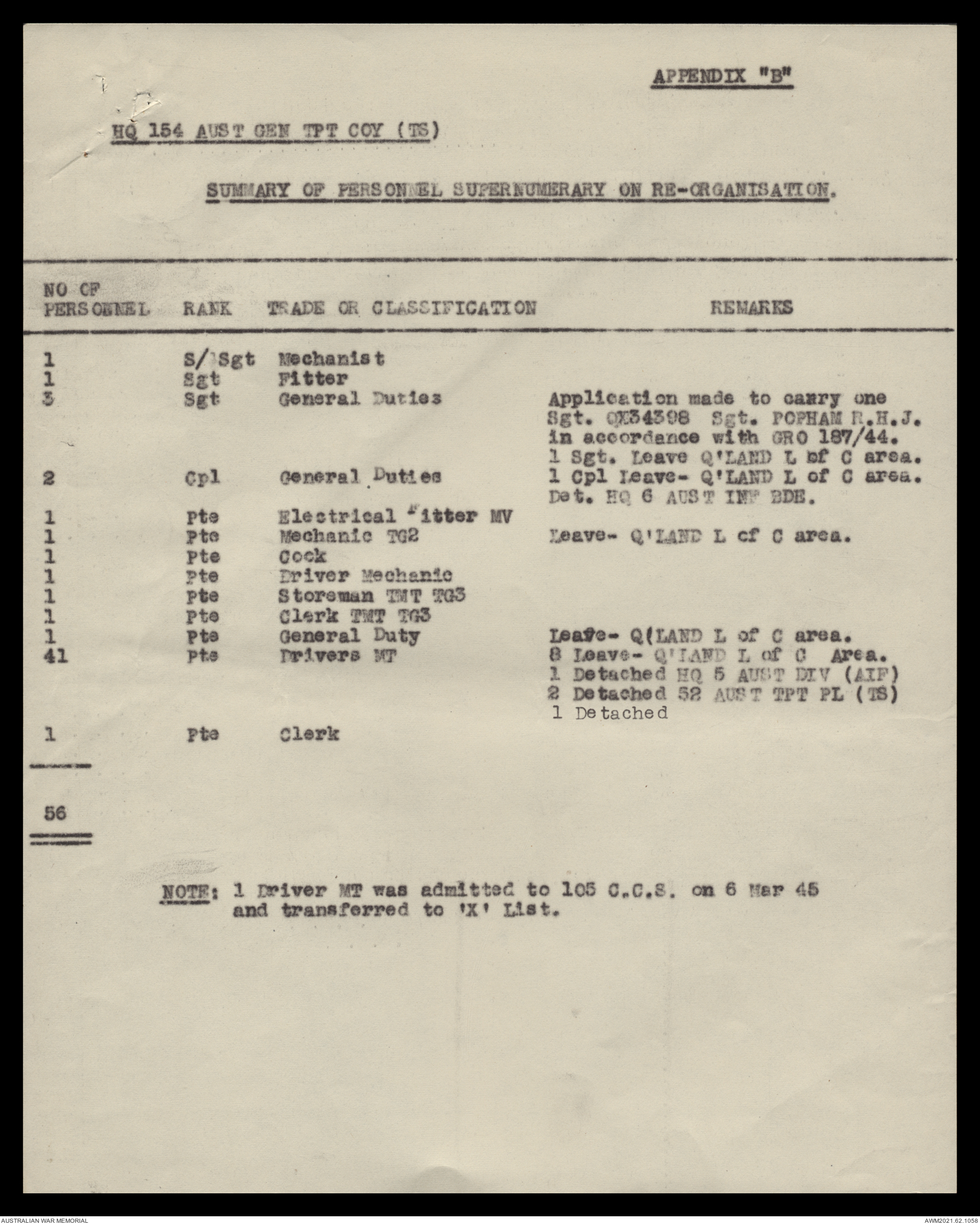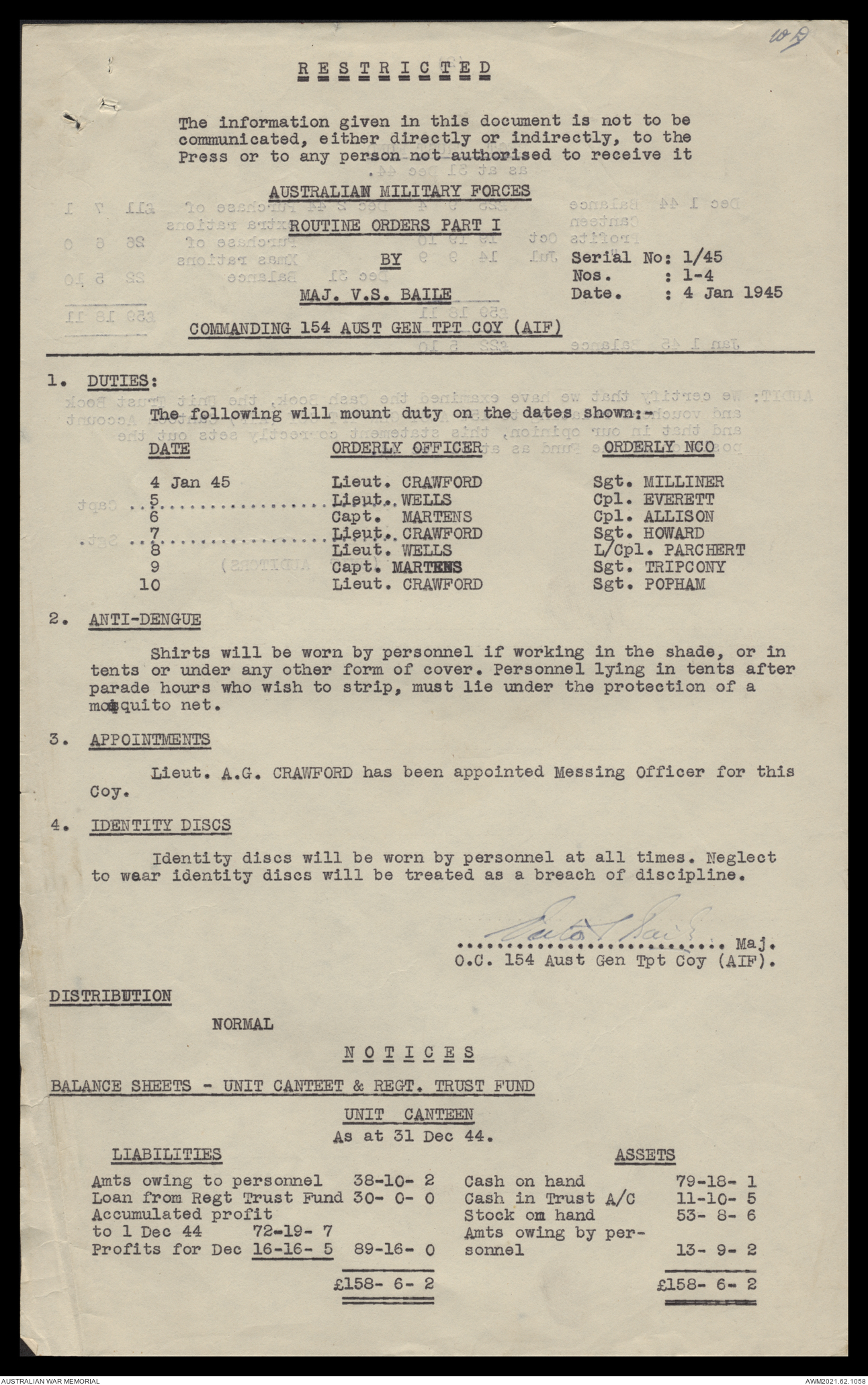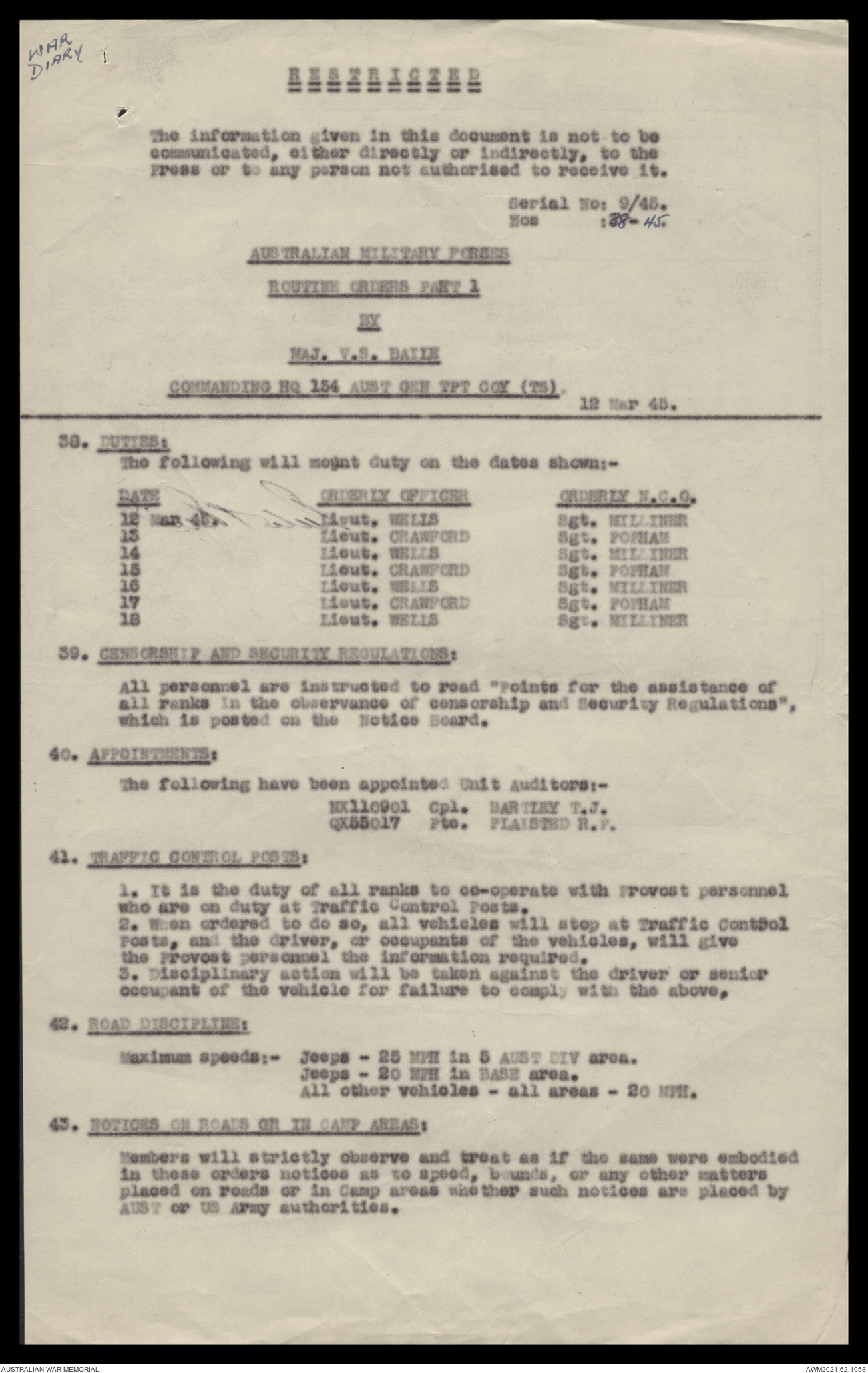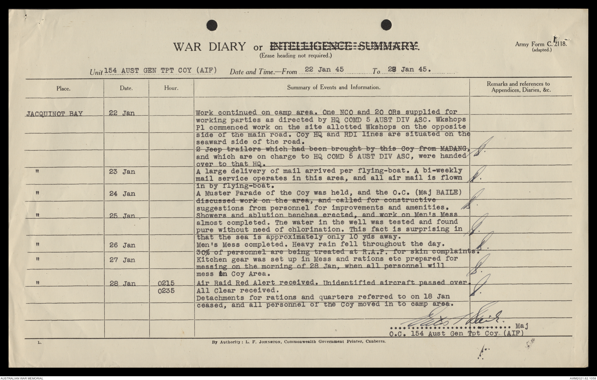 AWM52 10/3/53/9 - [Unit War Diaries, 1939-45 War] 154 General Transport Company, January - April 1945