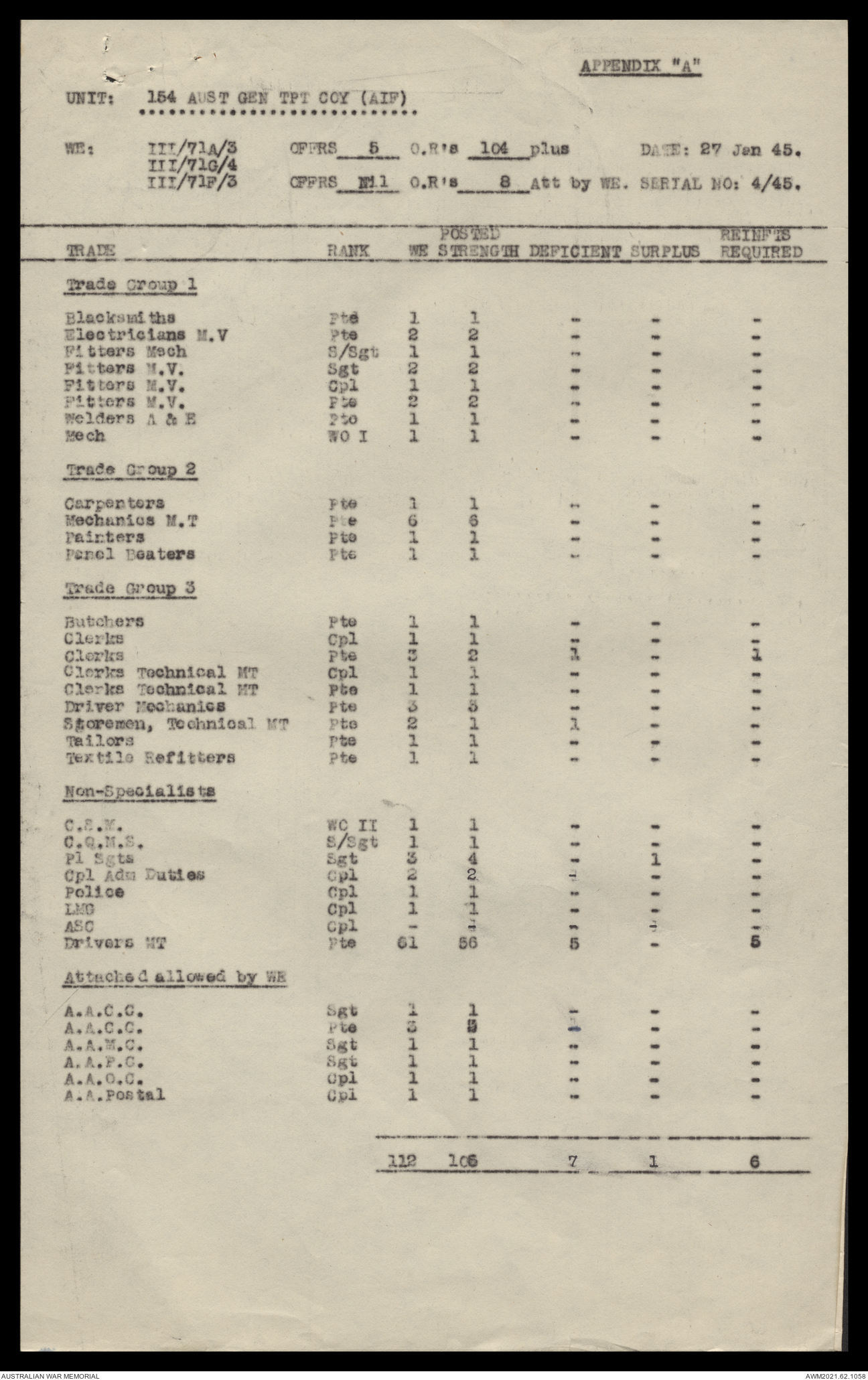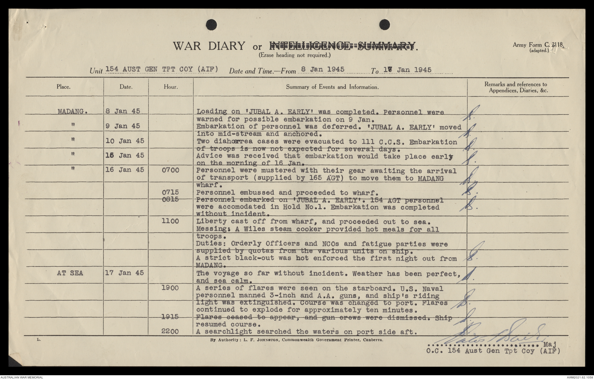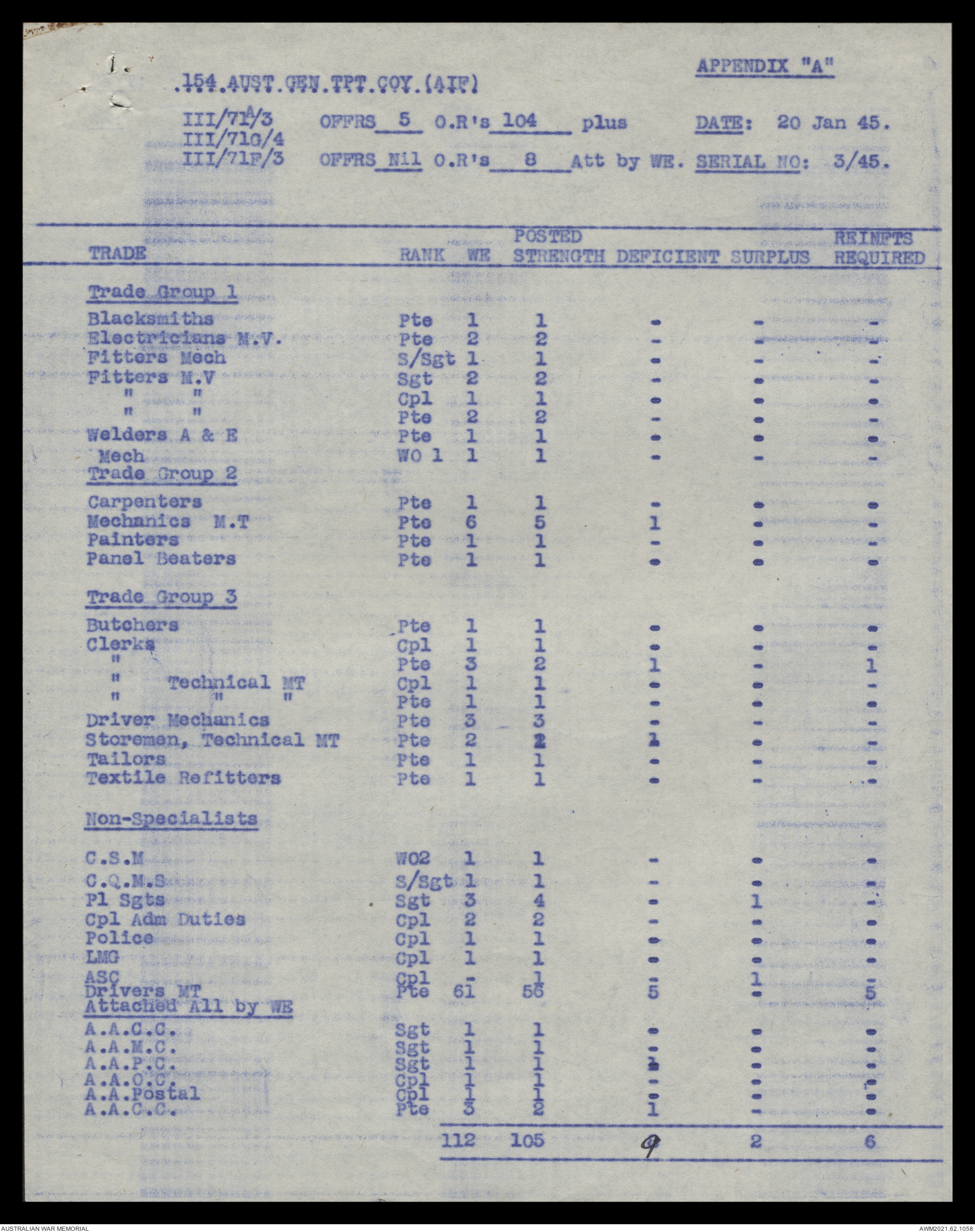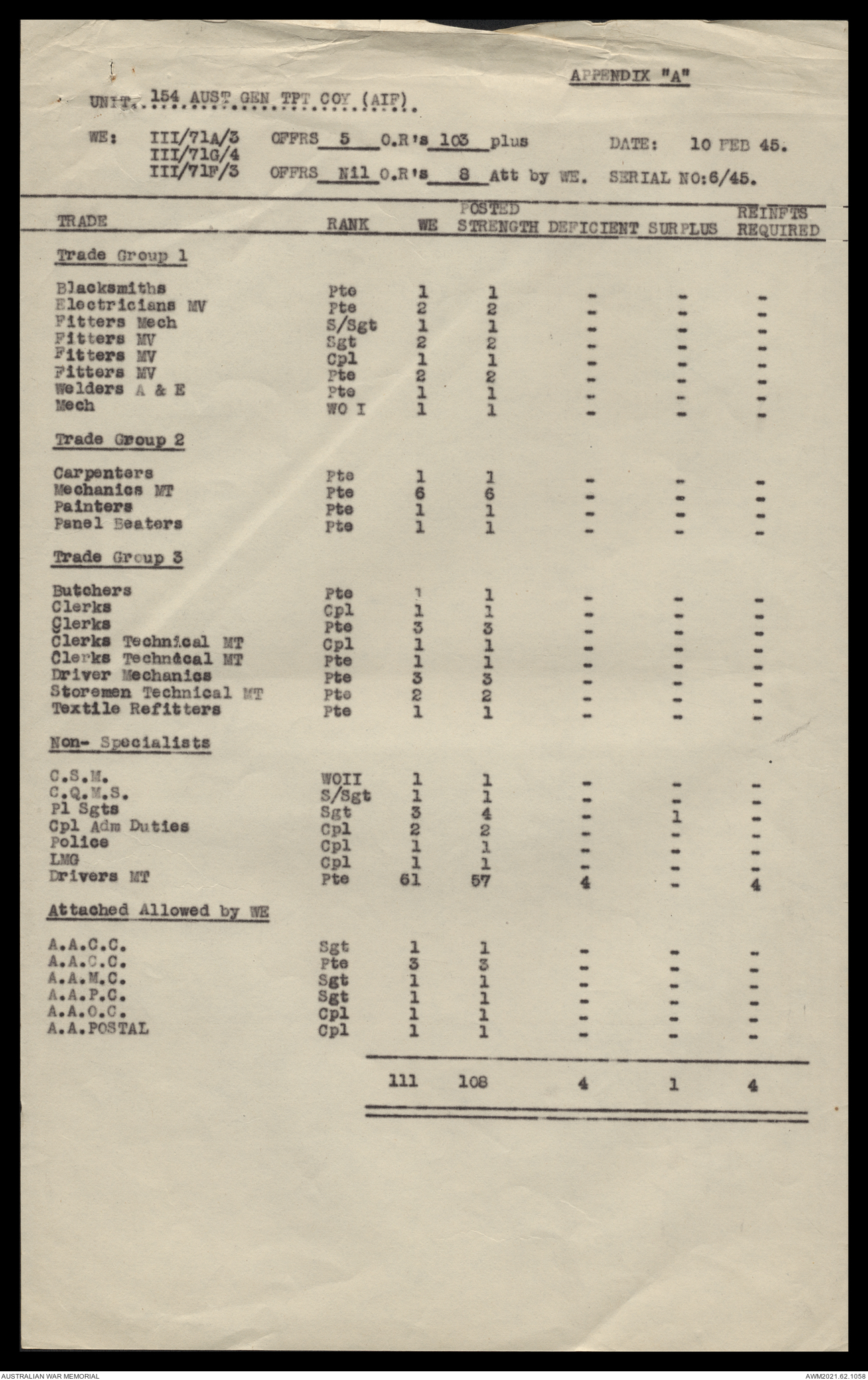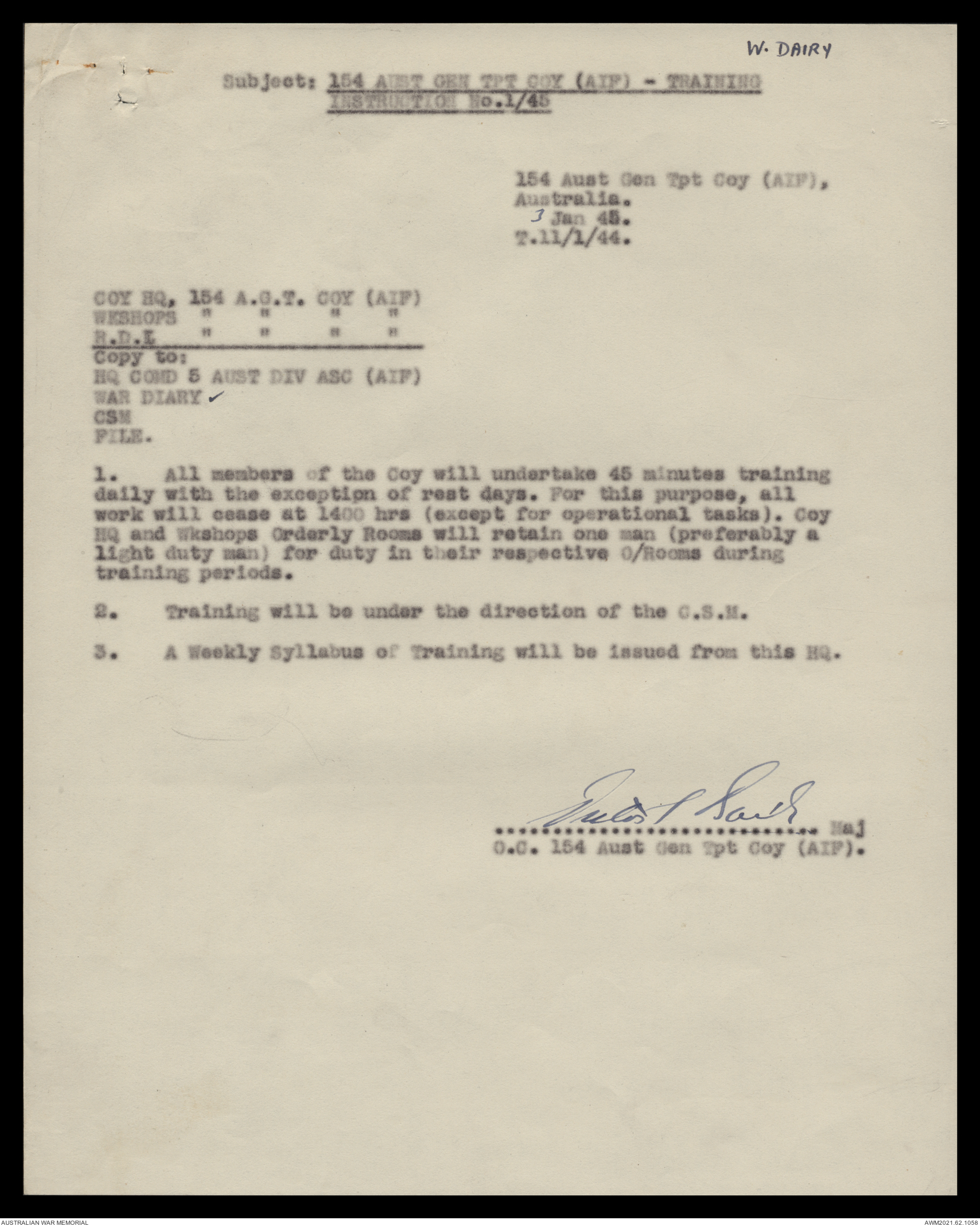 AWM52 10/3/53/9 - [Unit War Diaries, 1939-45 War] 154 General Transport Company, January - April 1945
