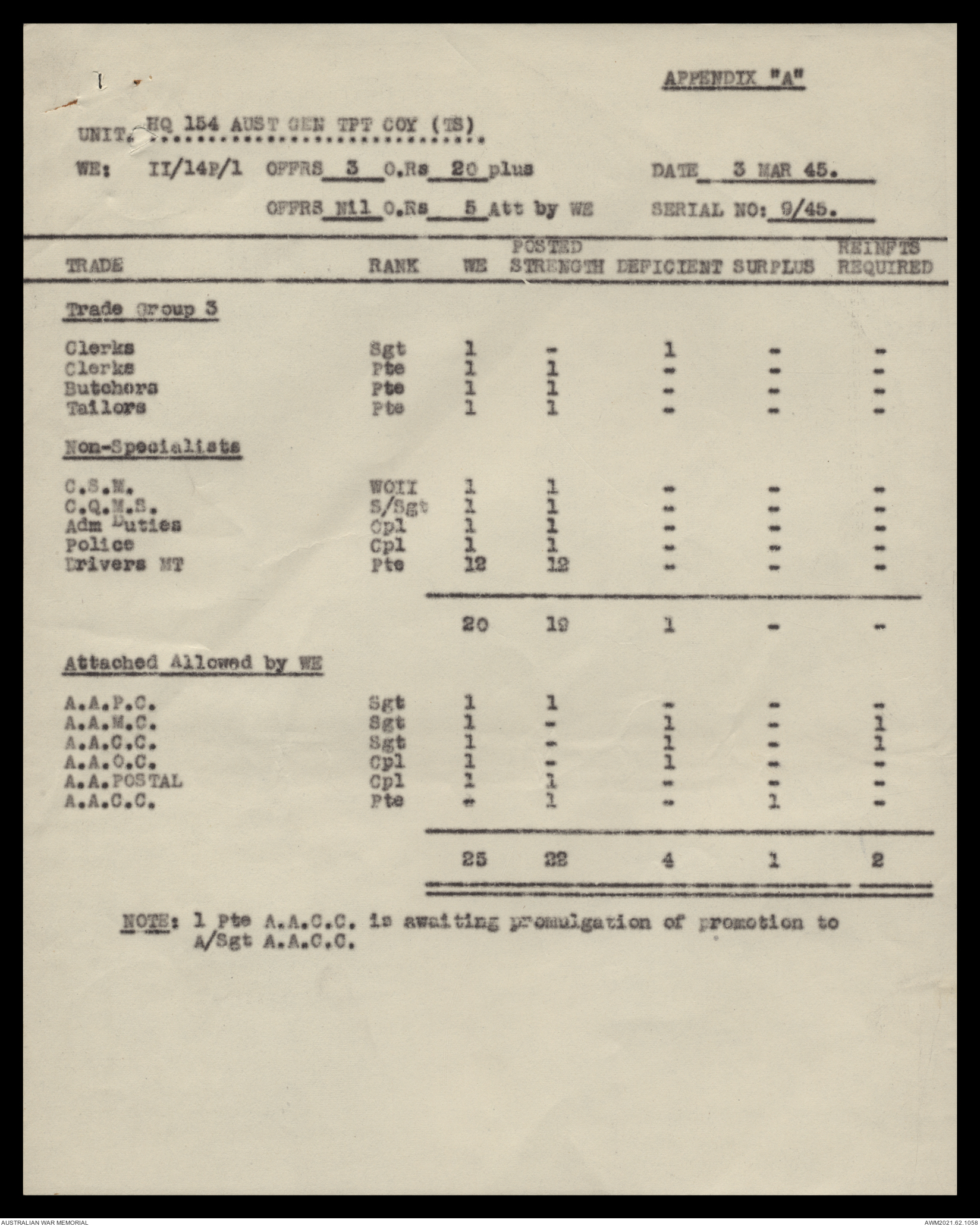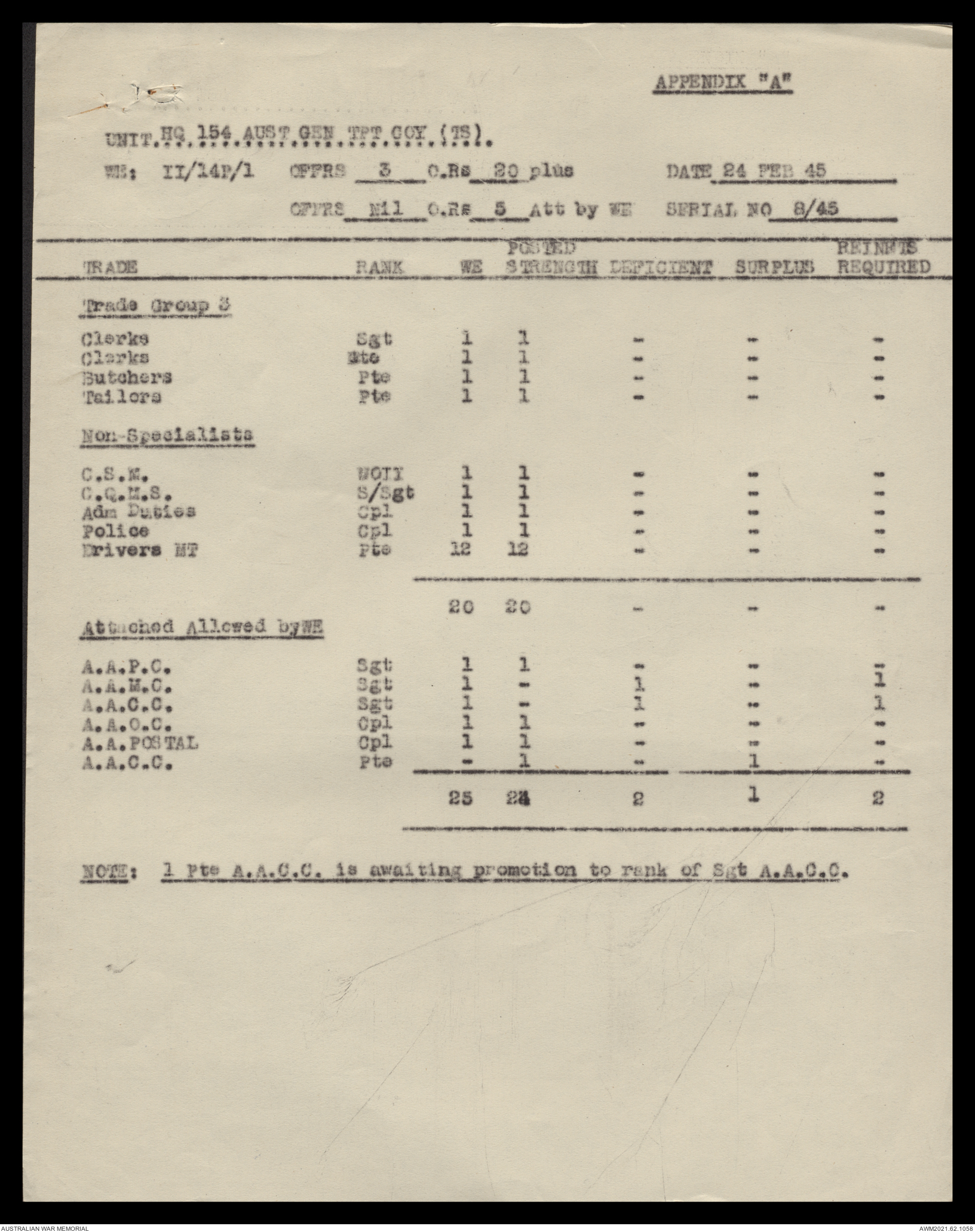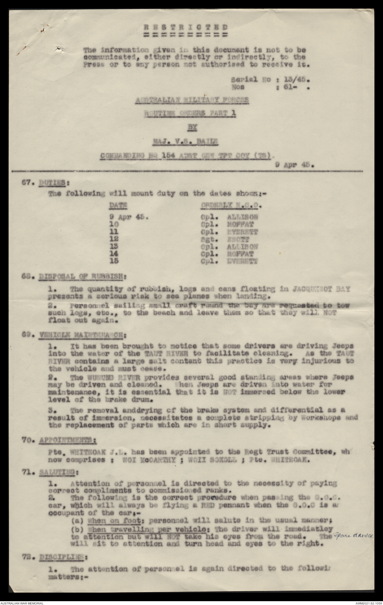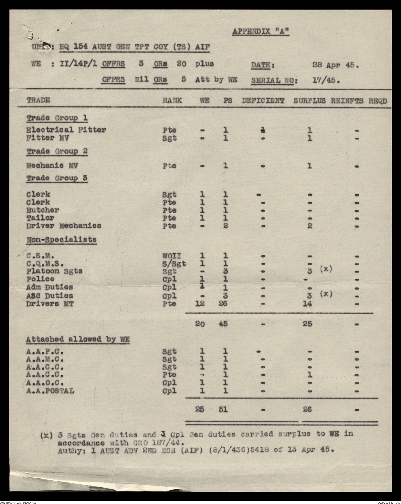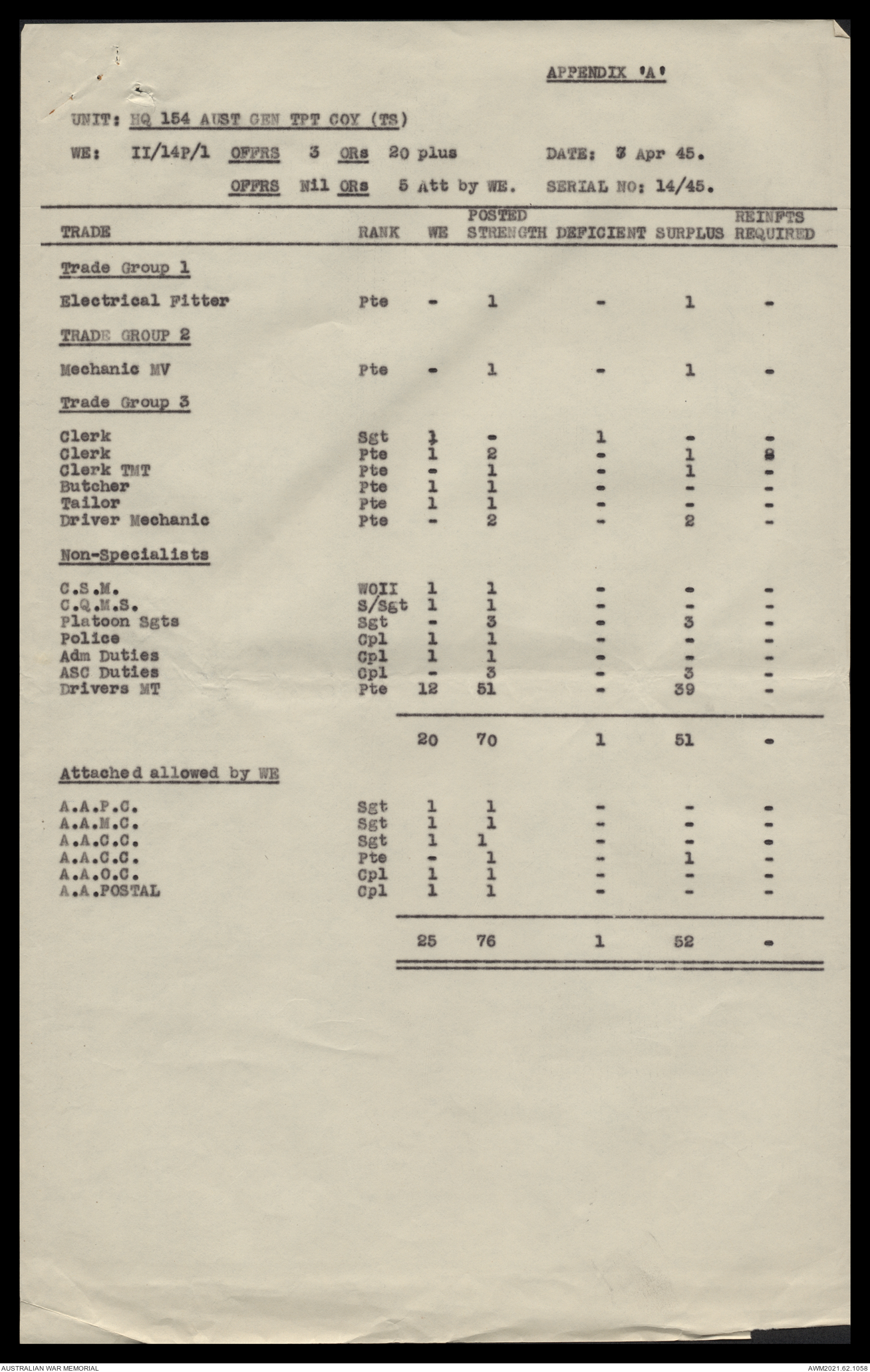 AWM52 10/3/53/9 - [Unit War Diaries, 1939-45 War] 154 General Transport Company, January - April 1945