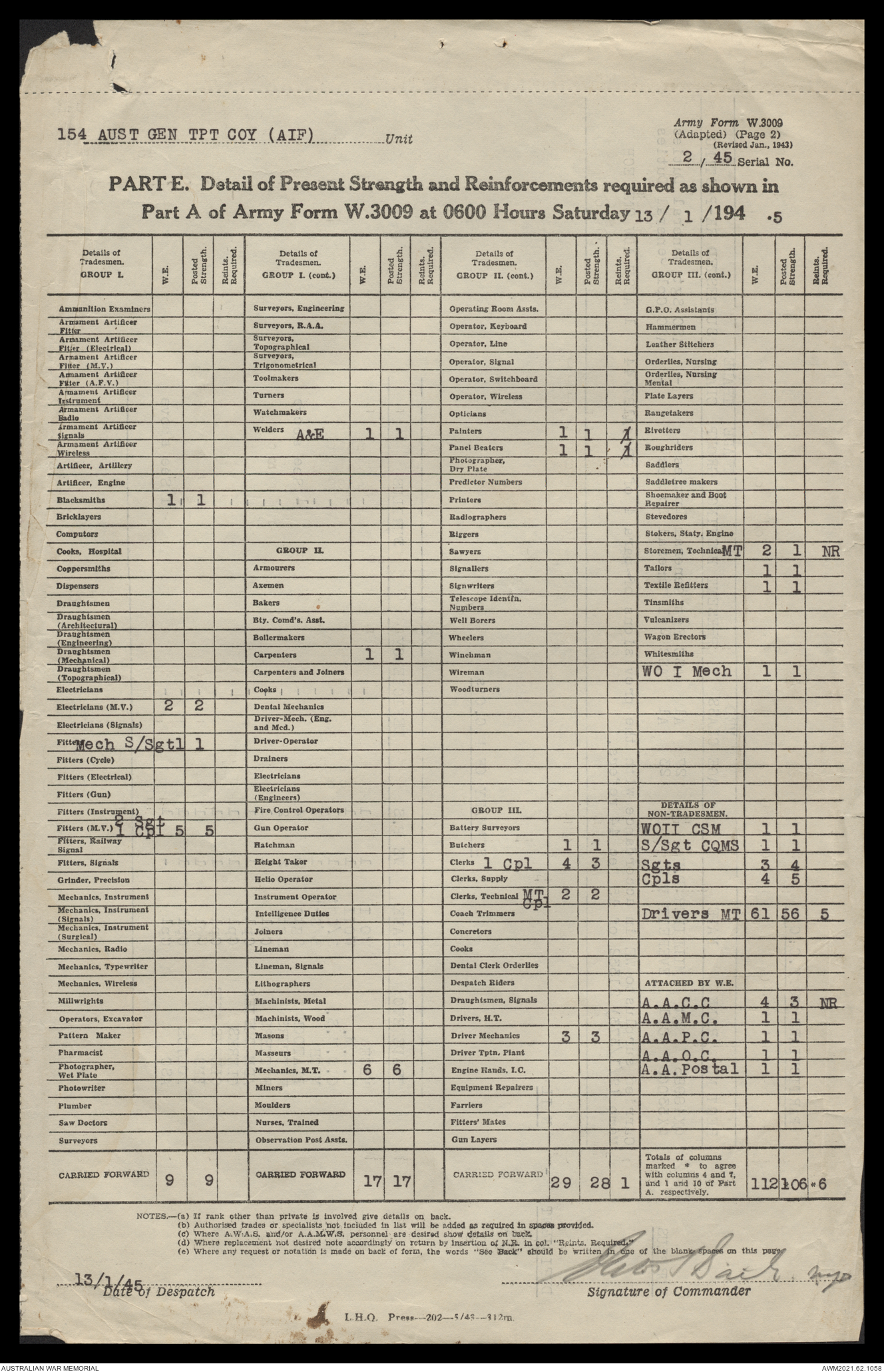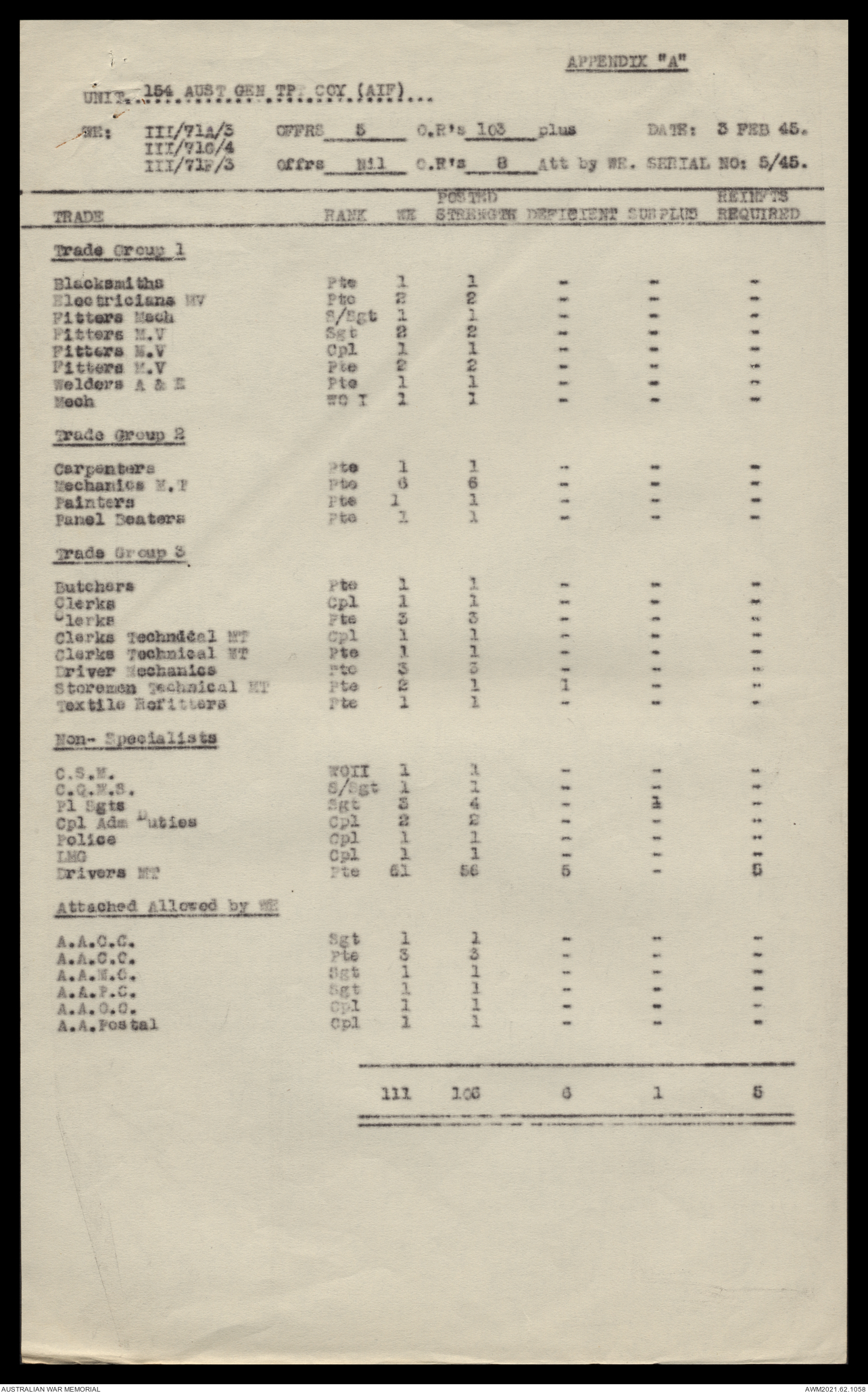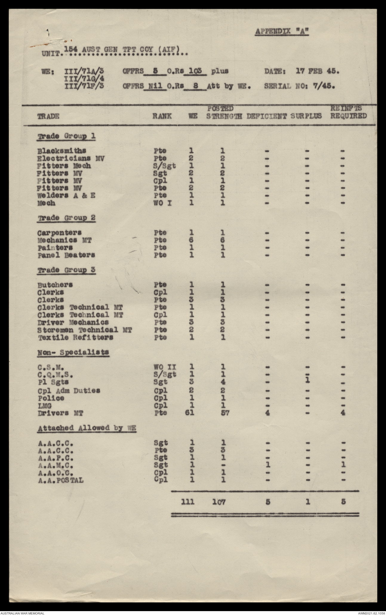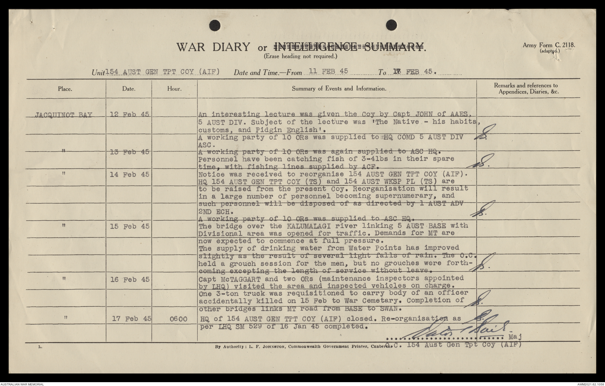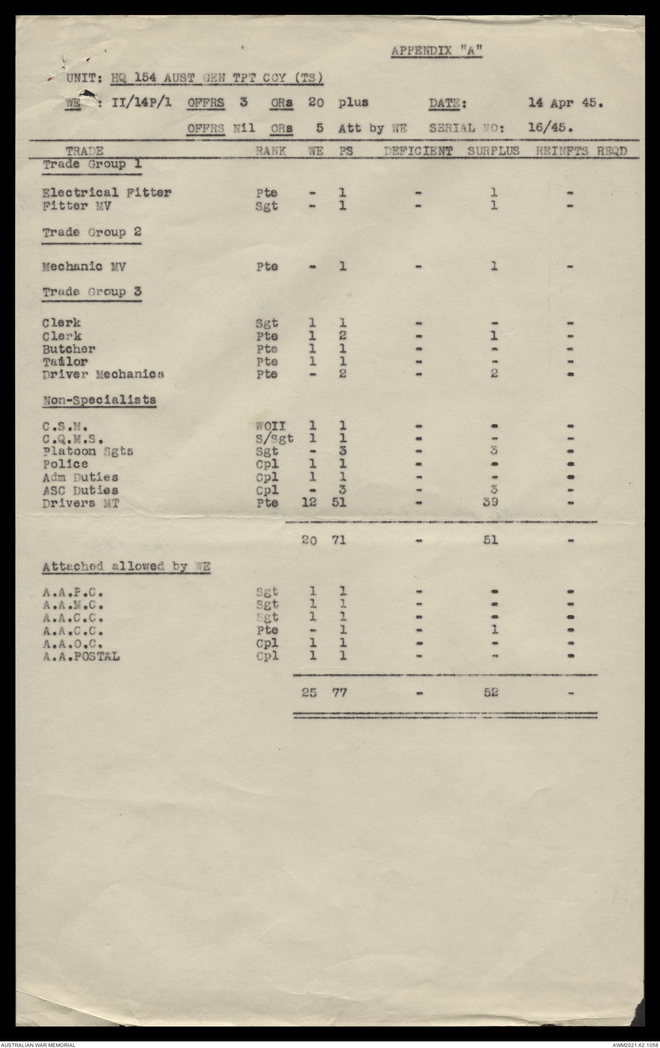 AWM52 10/3/53/9 - [Unit War Diaries, 1939-45 War] 154 General Transport Company, January - April 1945