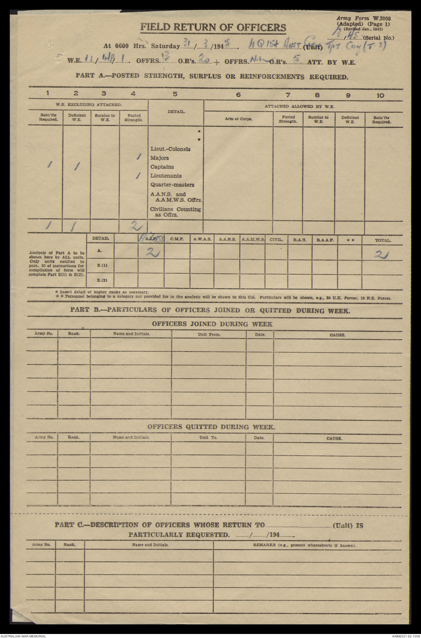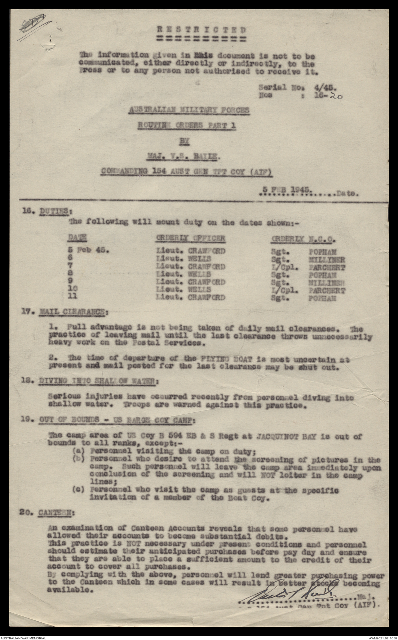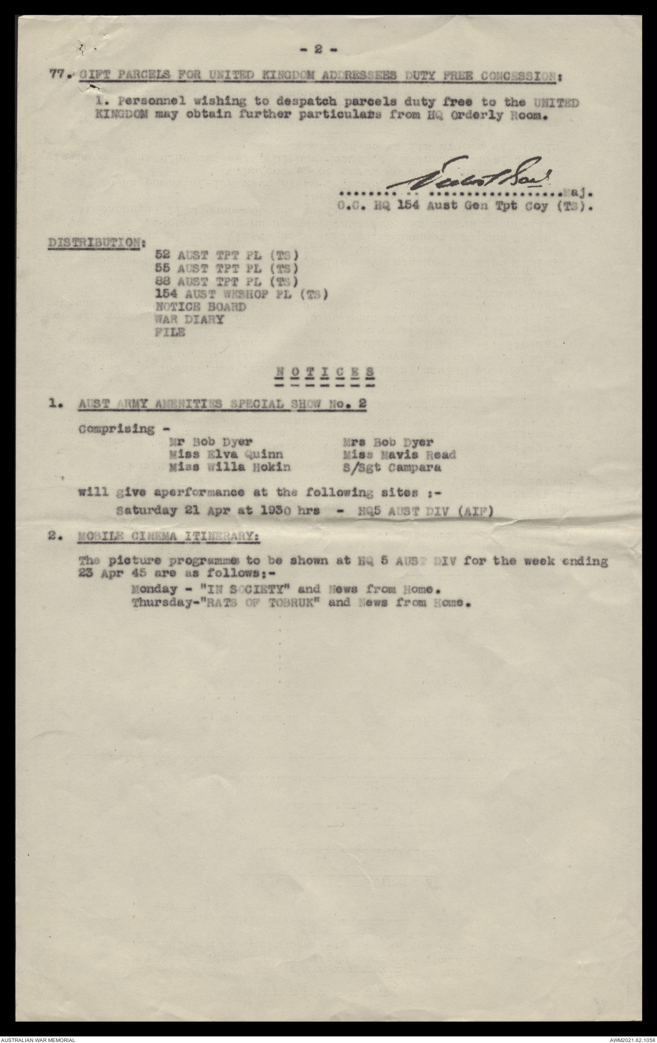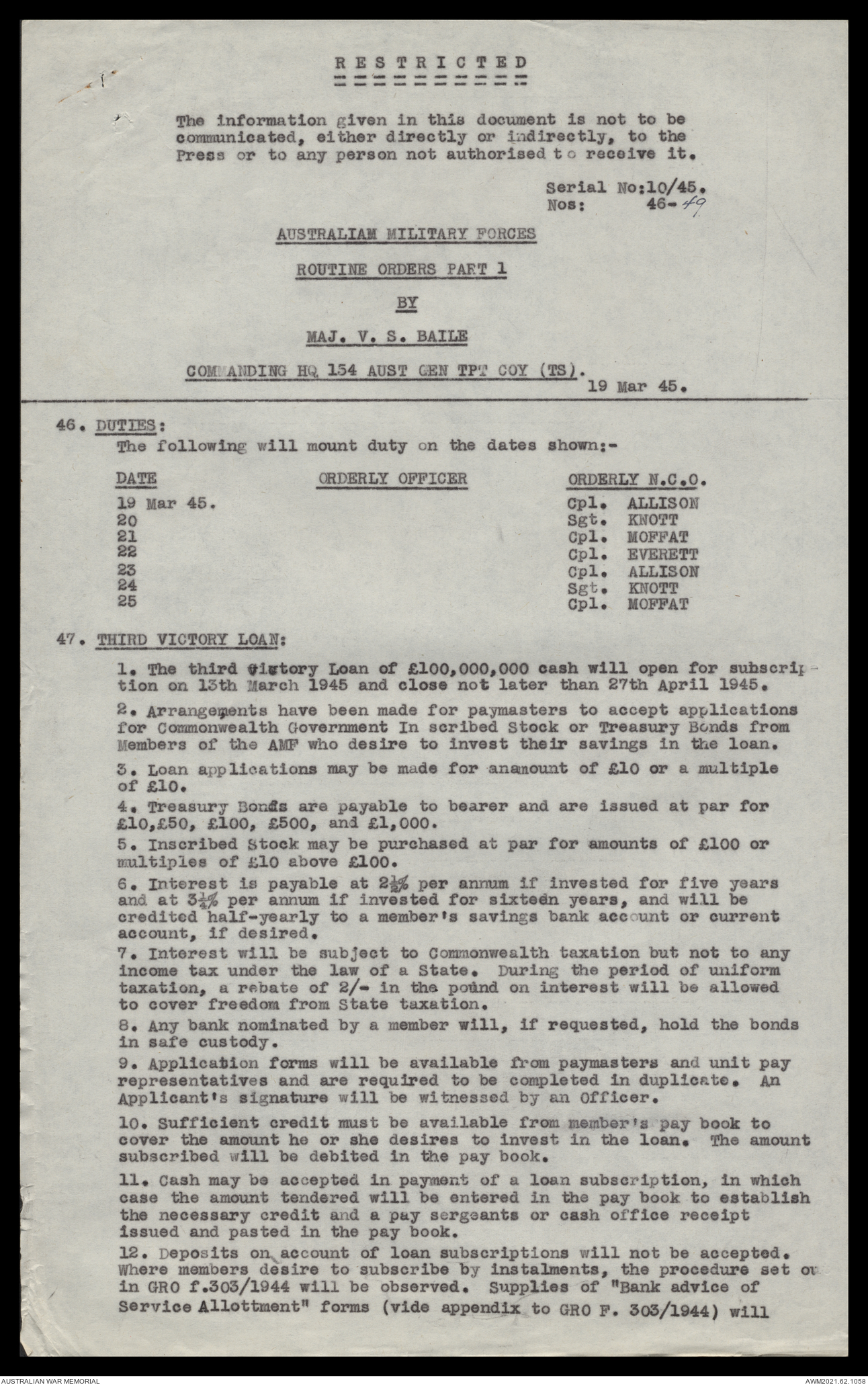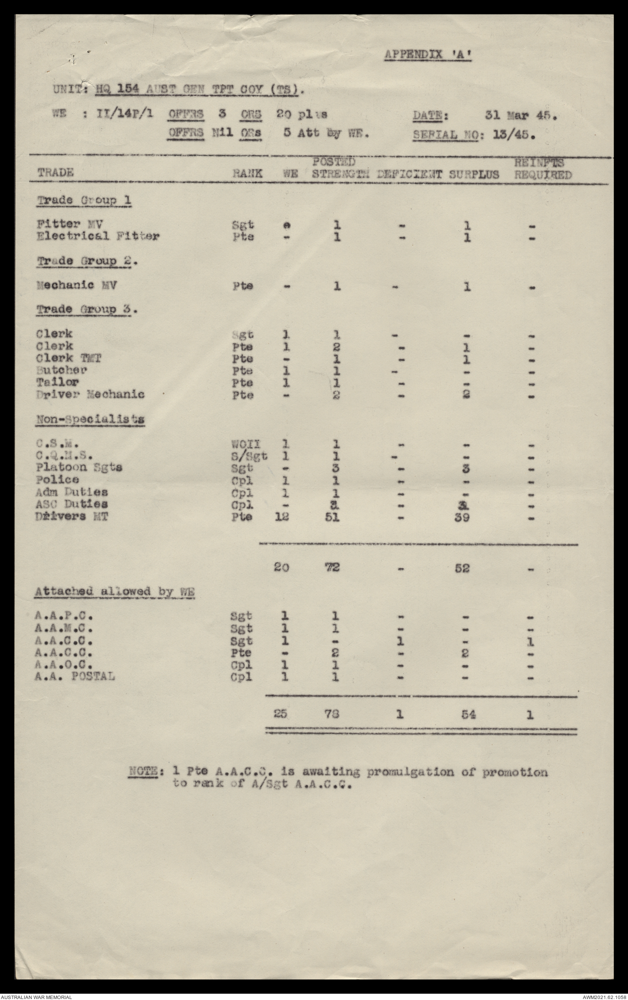 AWM52 10/3/53/9 - [Unit War Diaries, 1939-45 War] 154 General Transport Company, January - April 1945