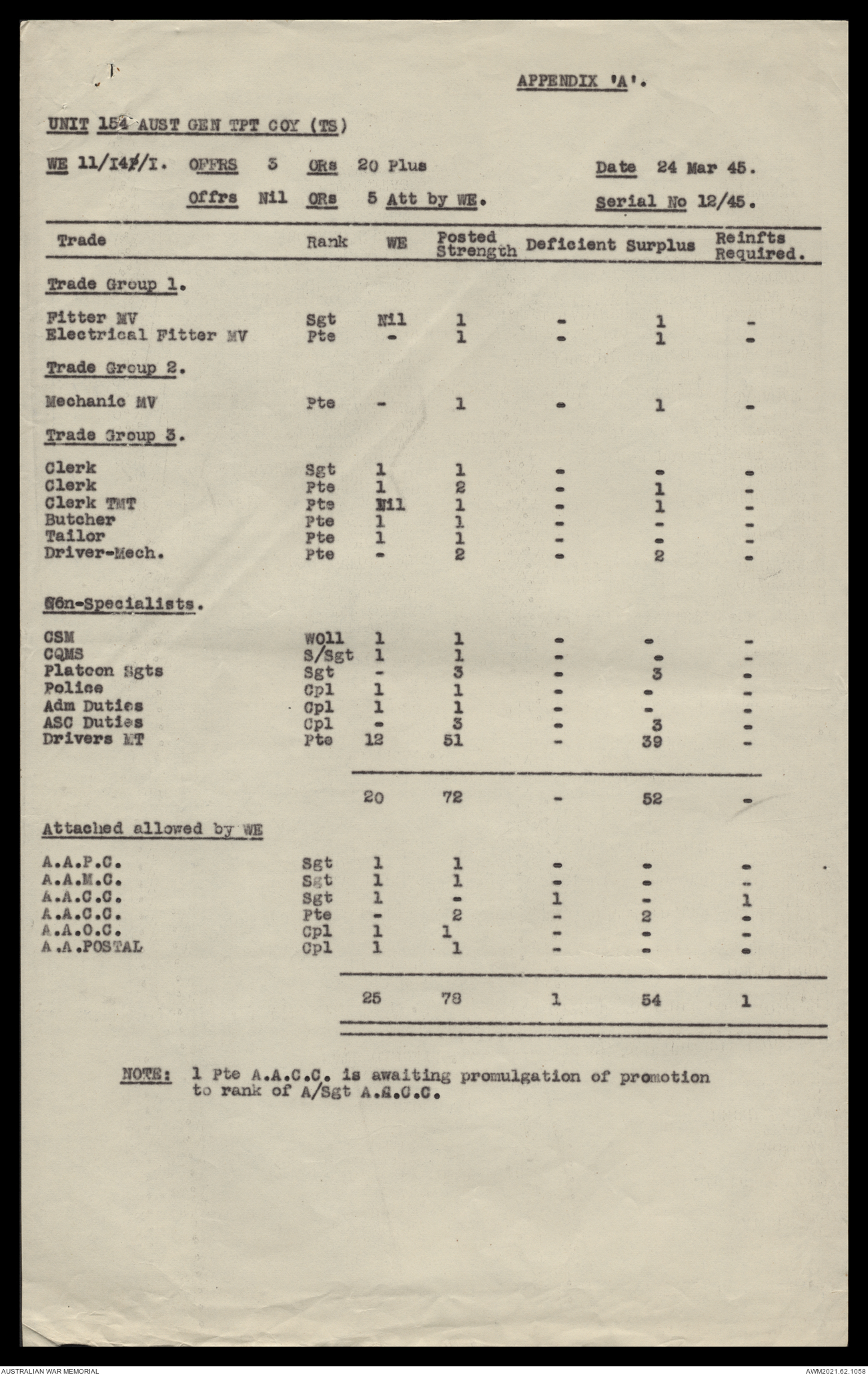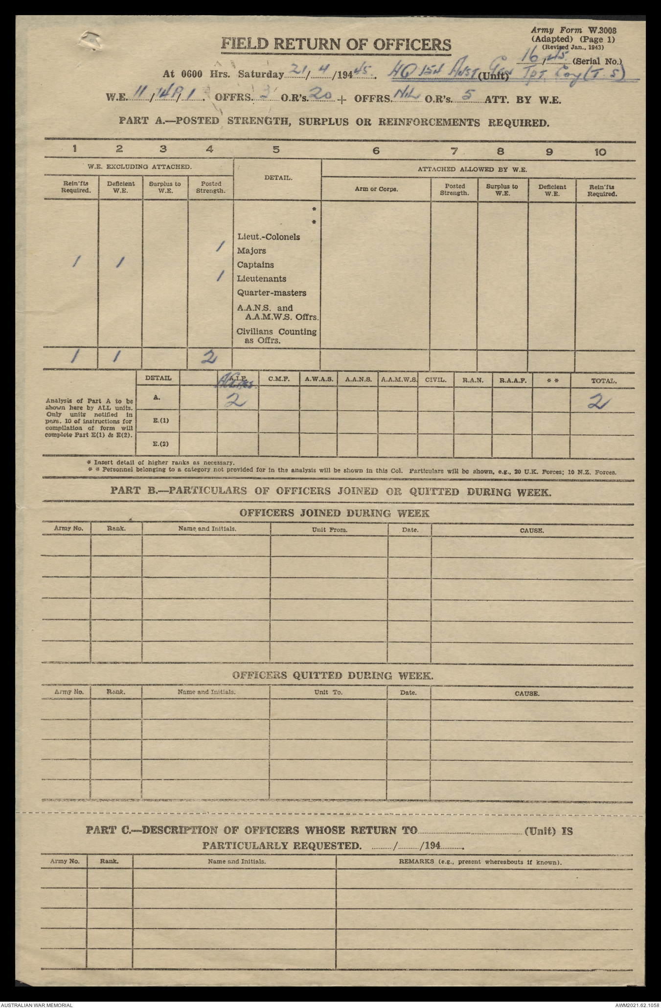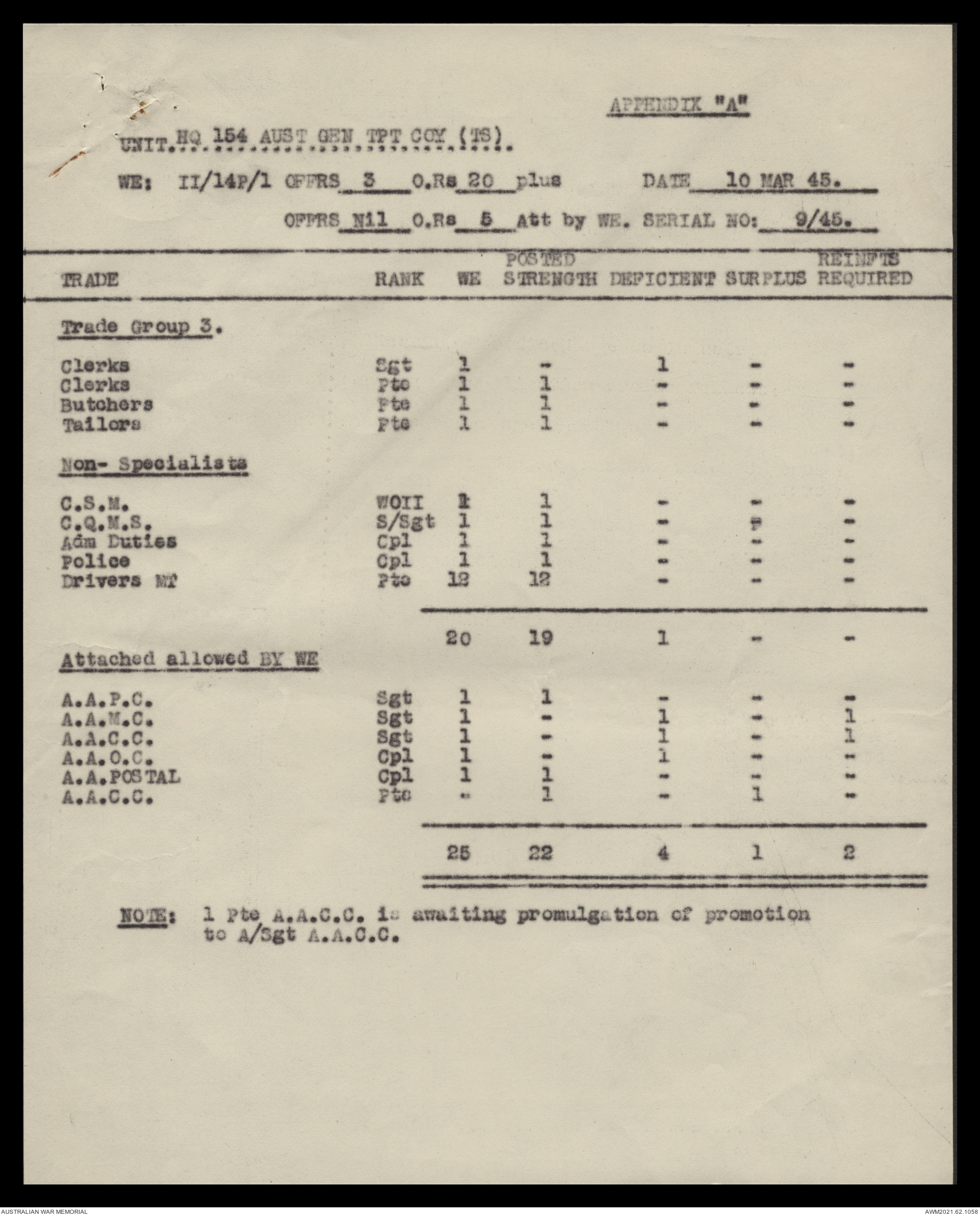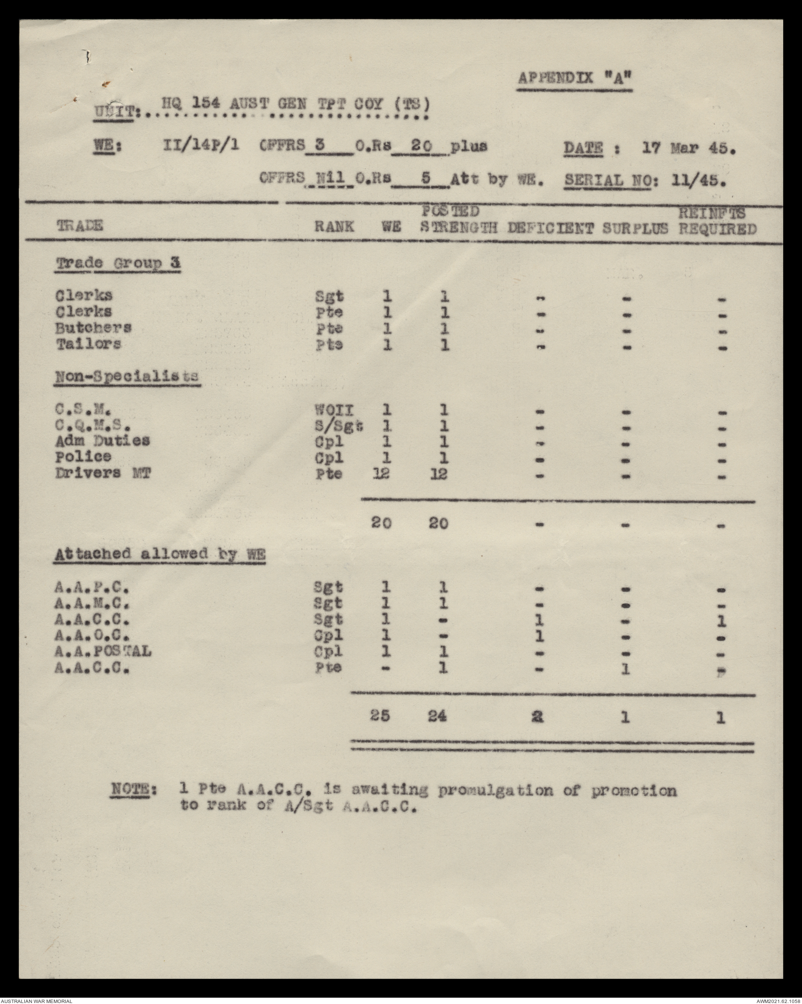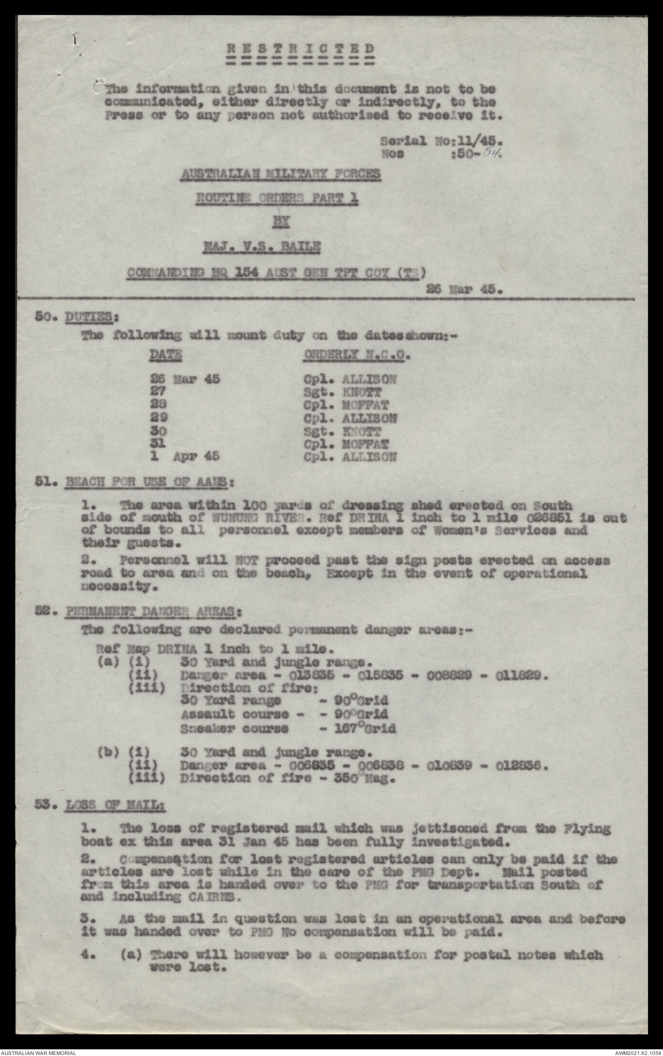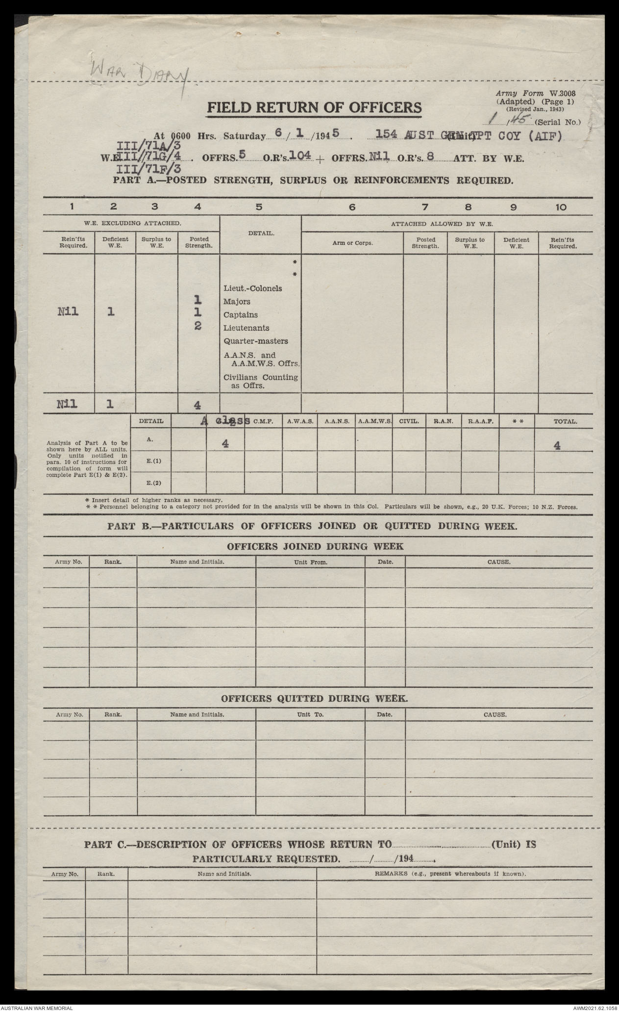 AWM52 10/3/53/9 - [Unit War Diaries, 1939-45 War] 154 General Transport Company, January - April 1945