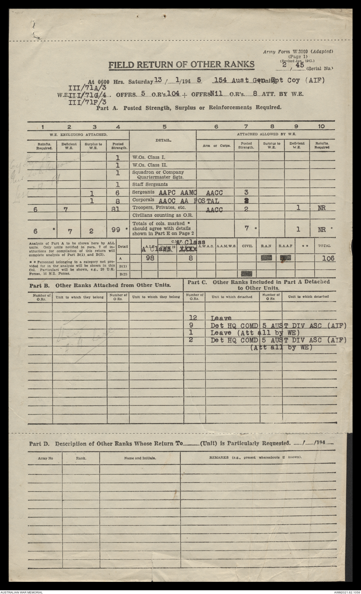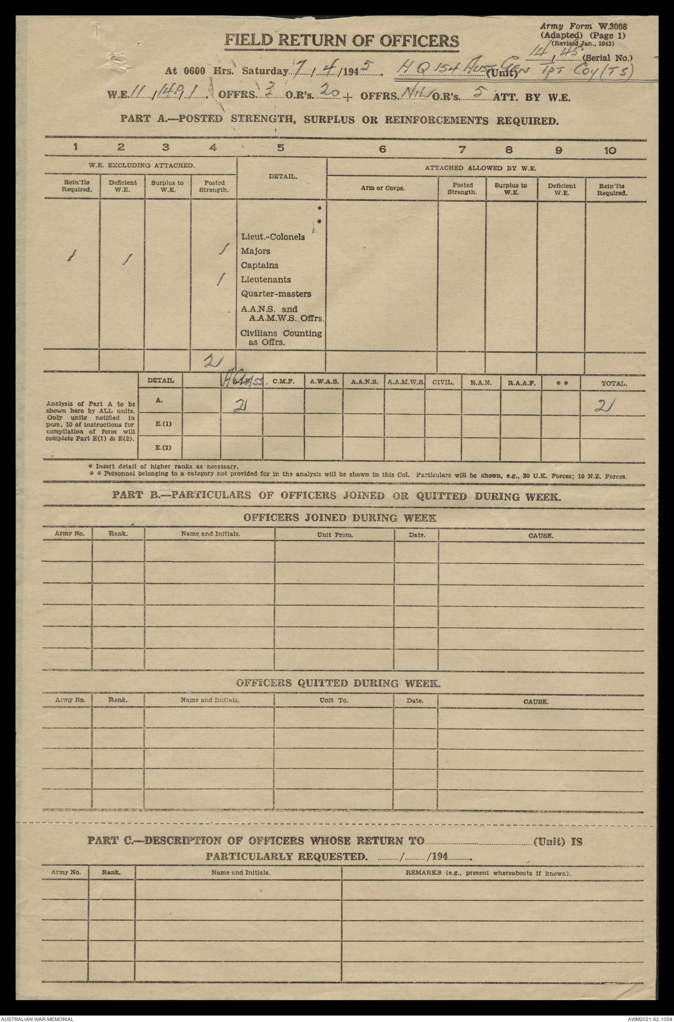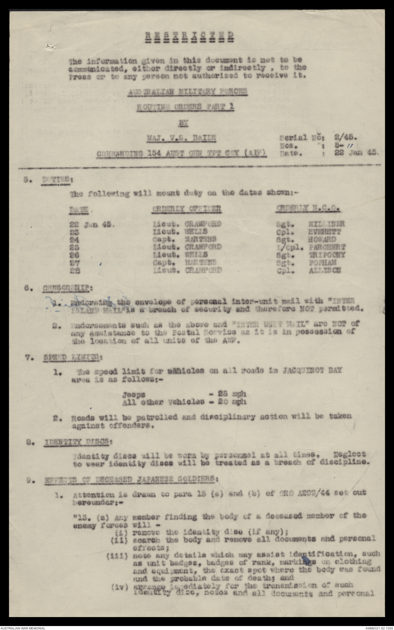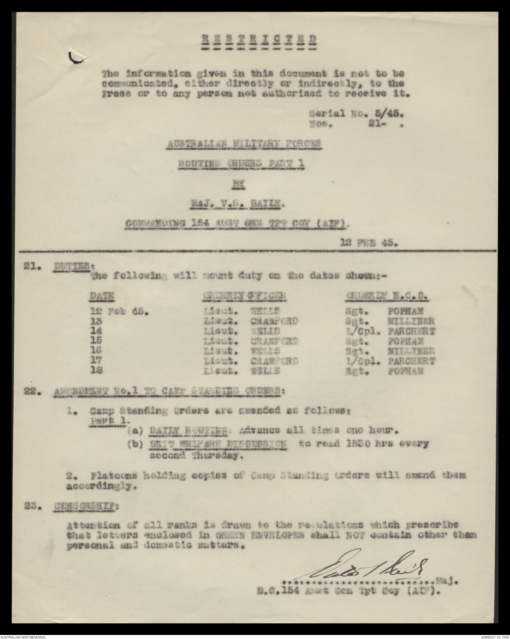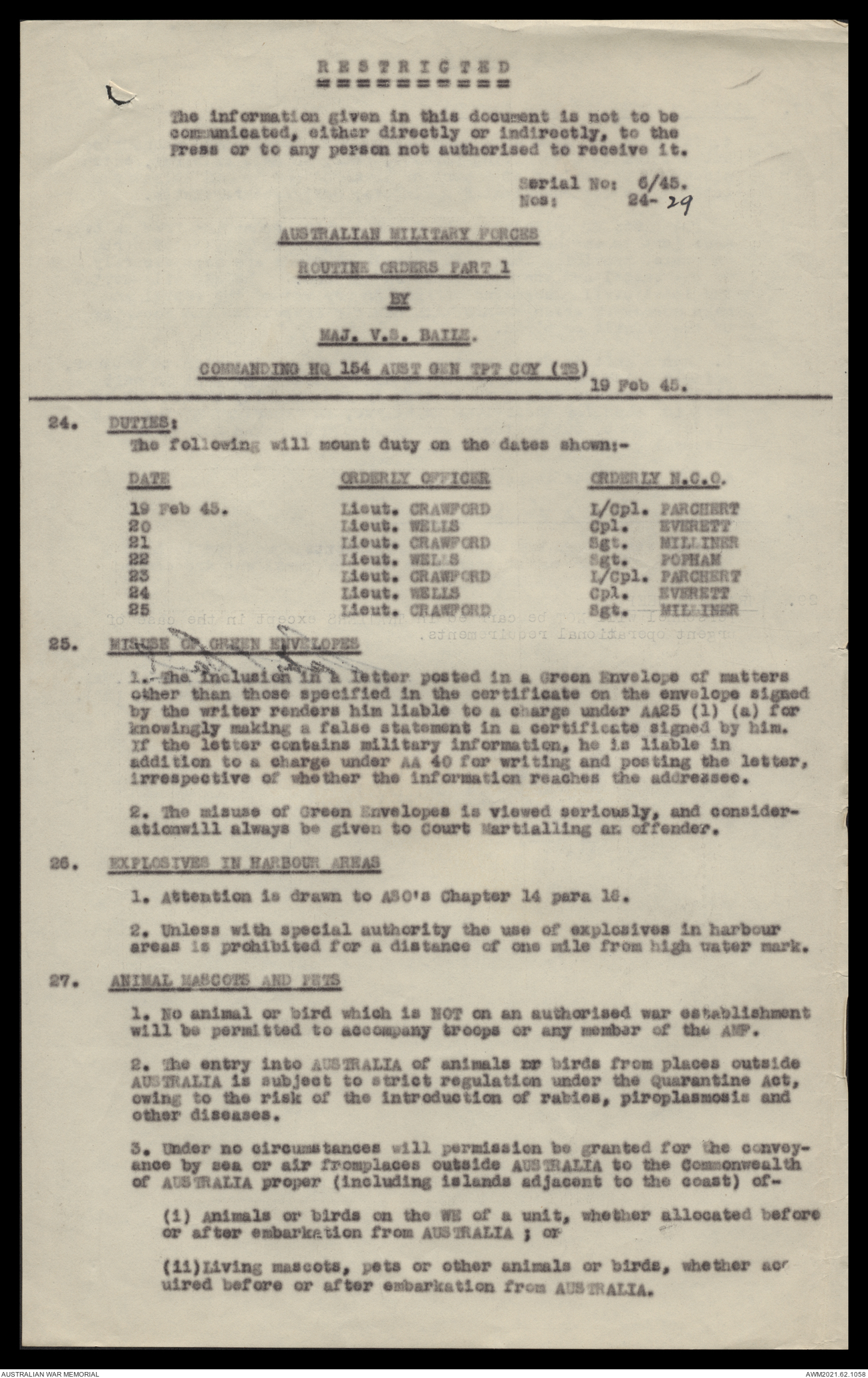 AWM52 10/3/53/9 - [Unit War Diaries, 1939-45 War] 154 General Transport Company, January - April 1945