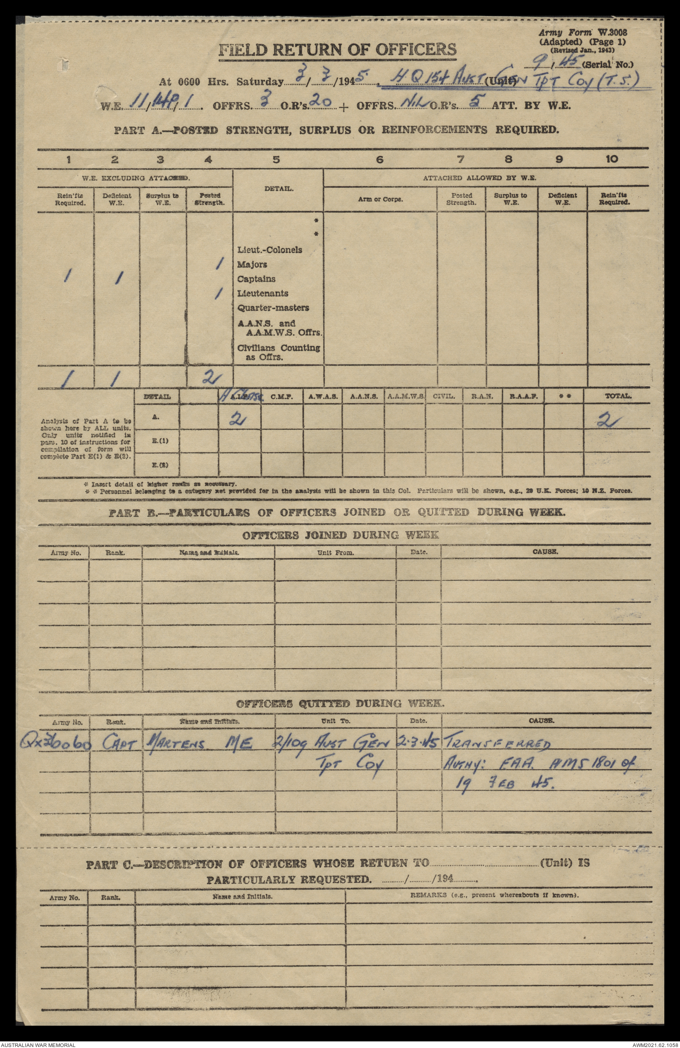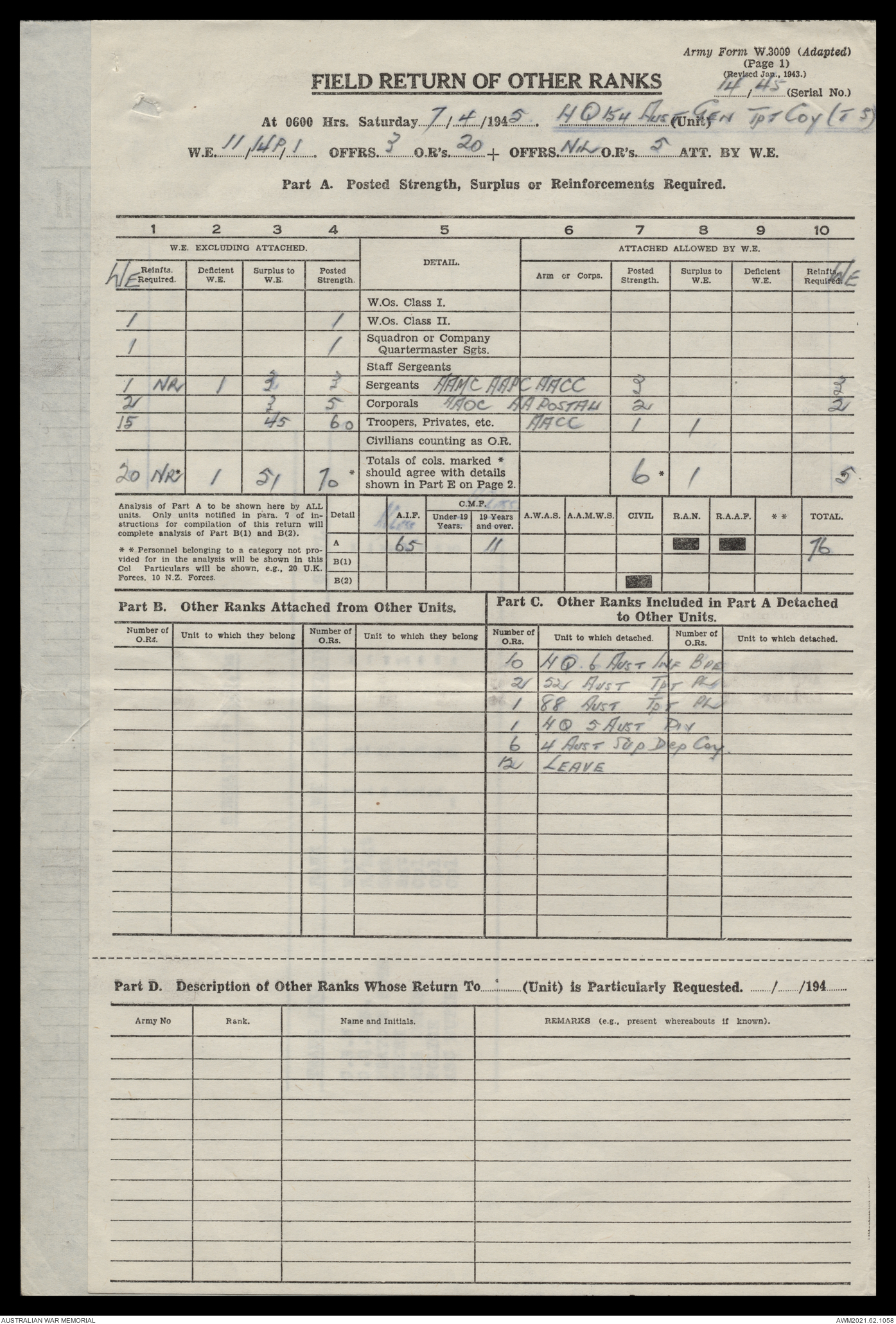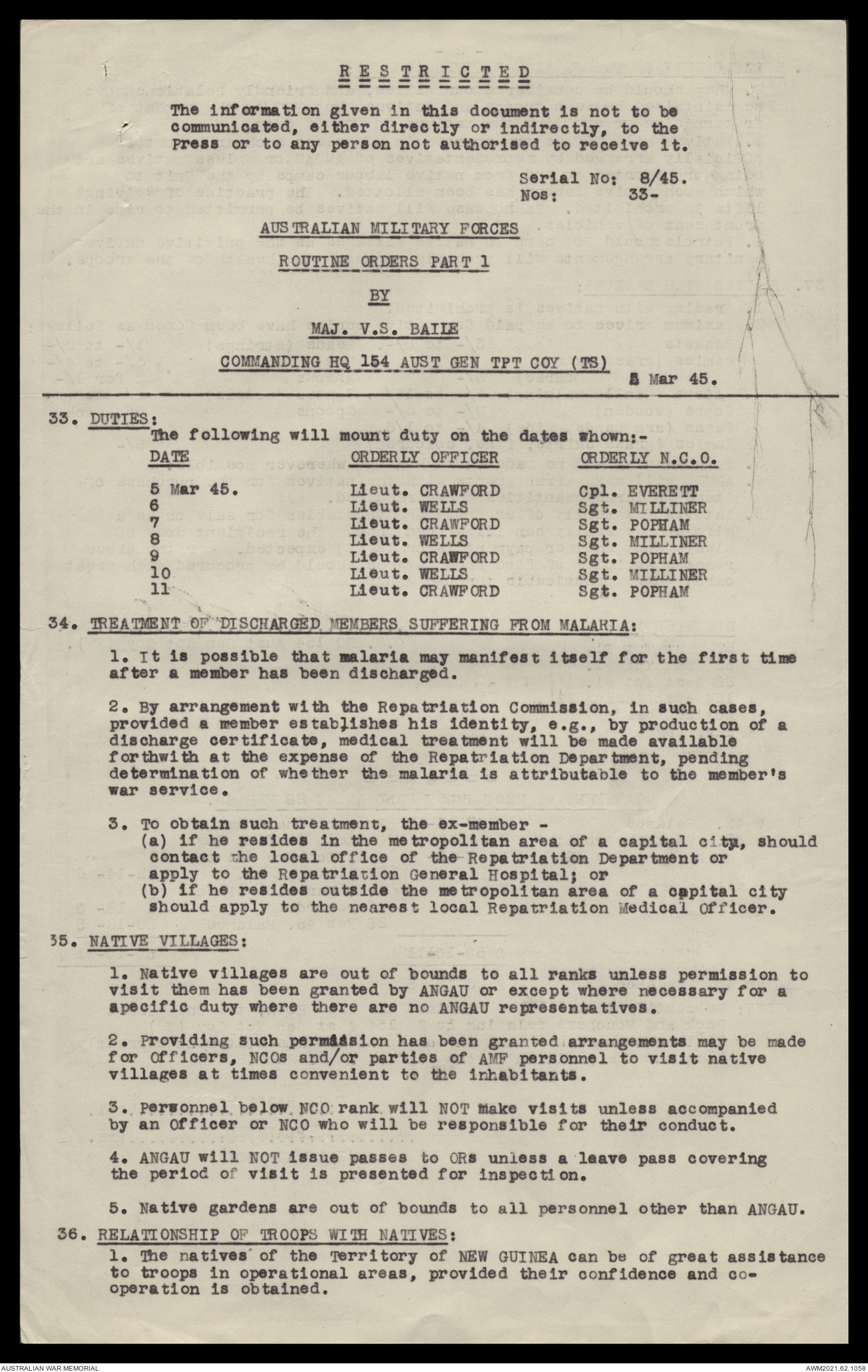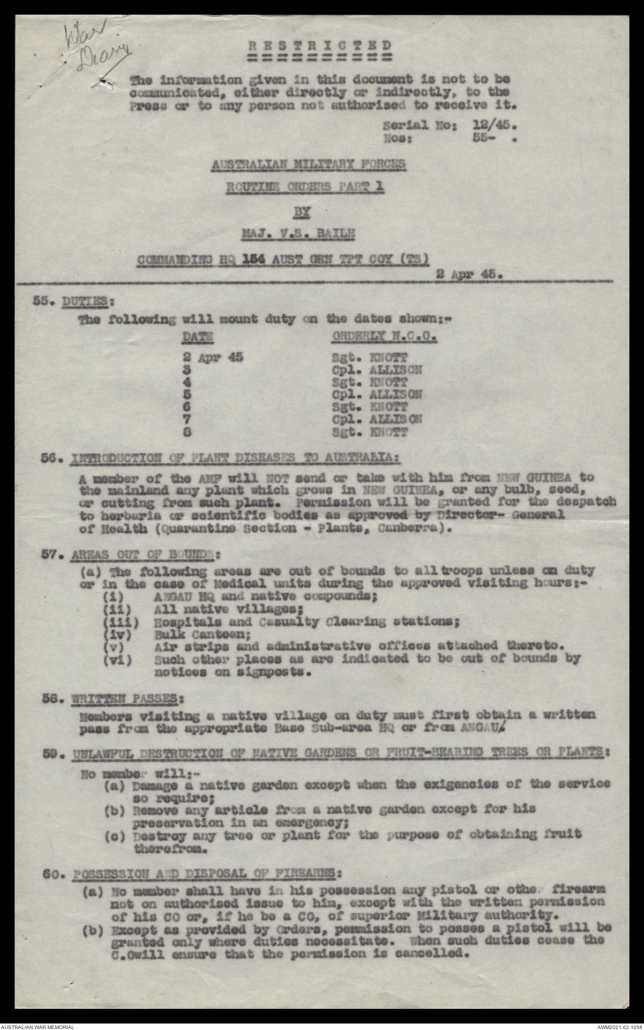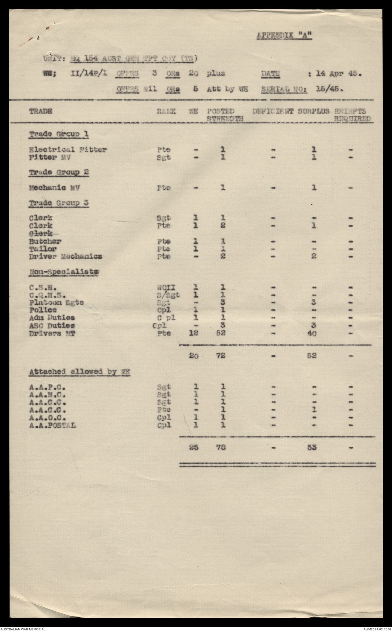AWM52 10/3/53/9 - [Unit War Diaries, 1939-45 War] 154 General Transport Company, January - April 1945