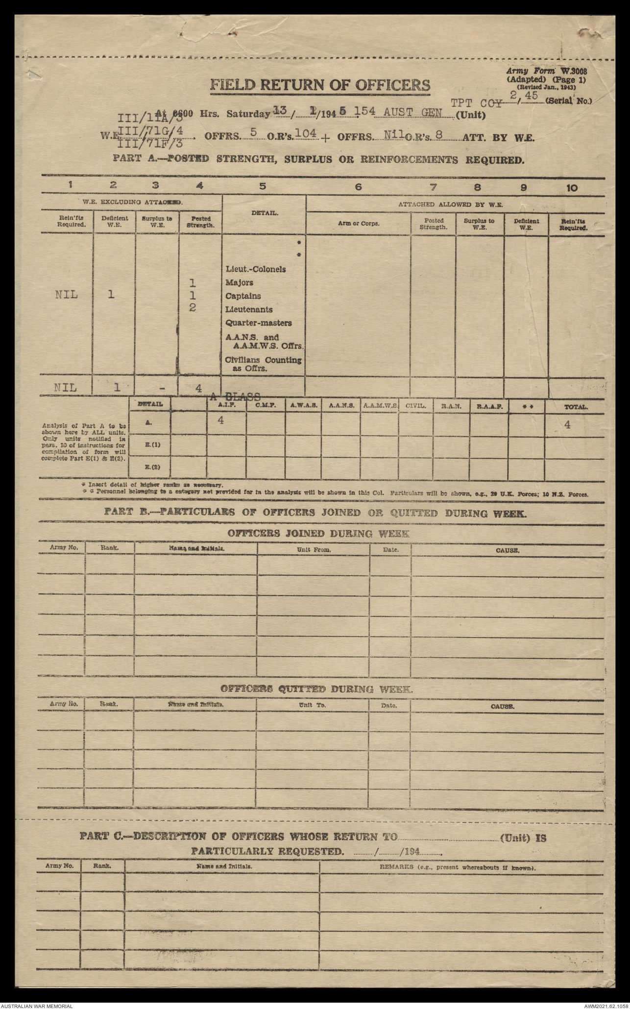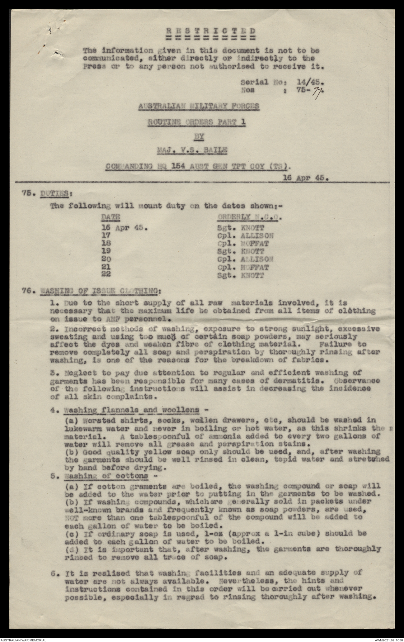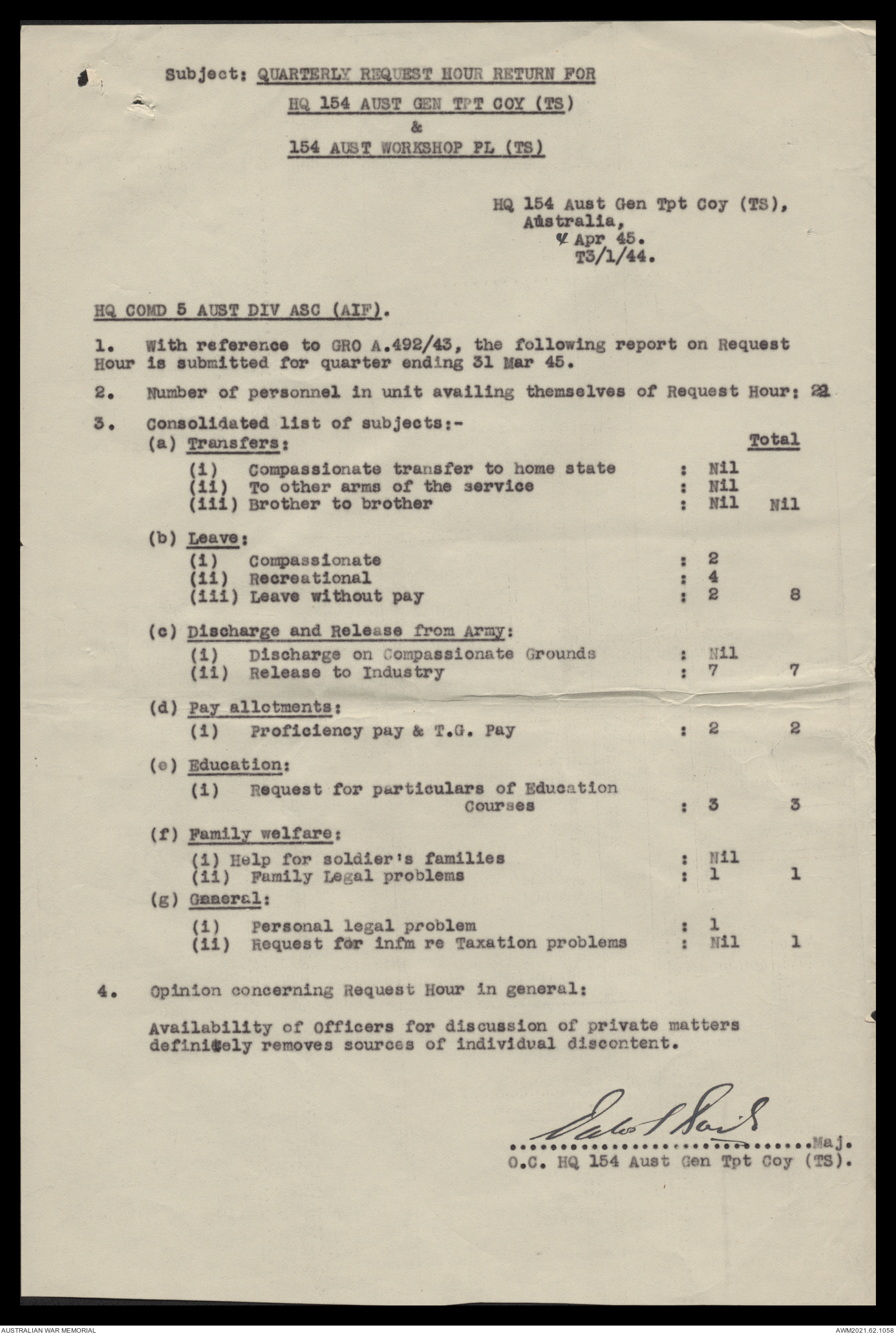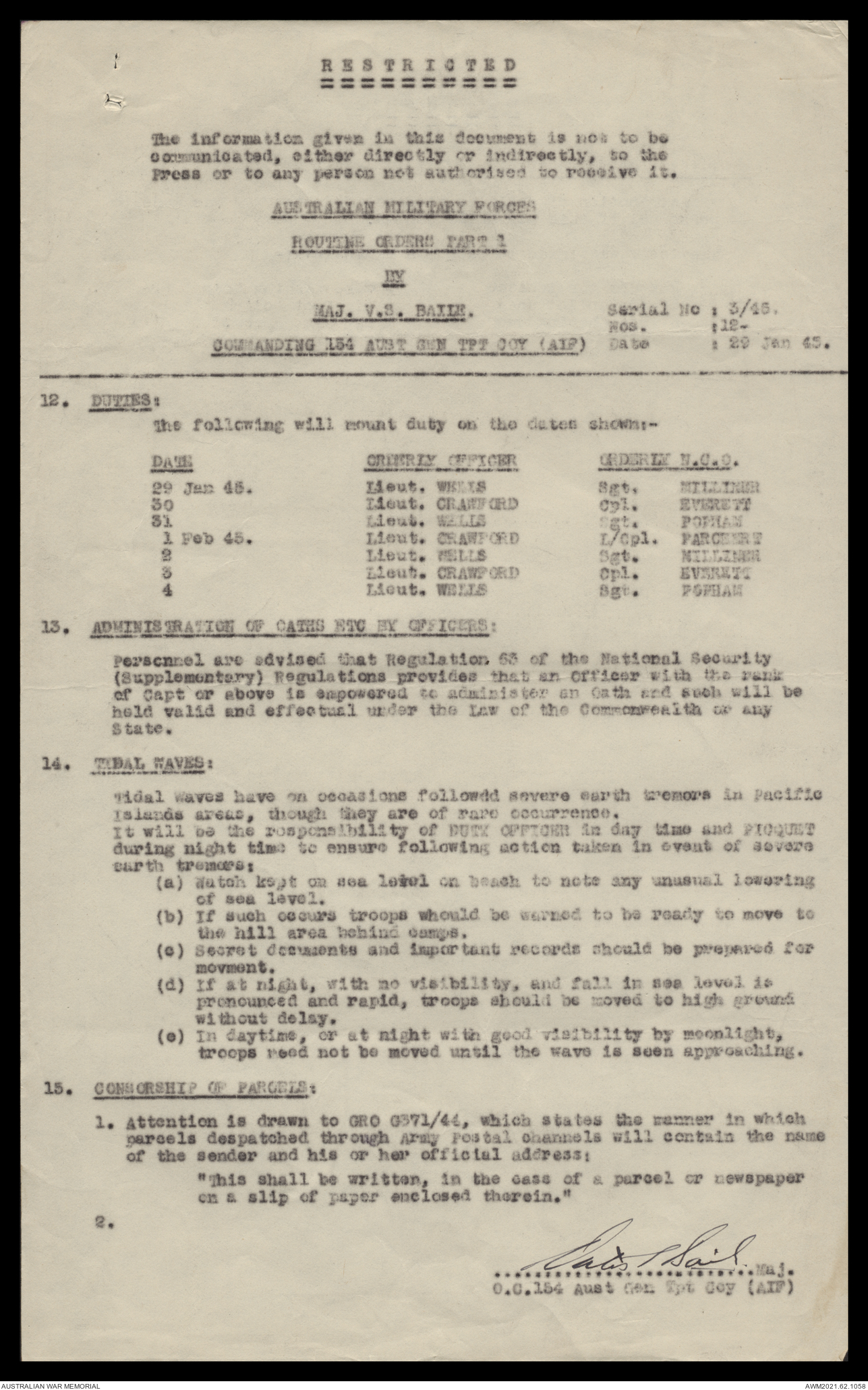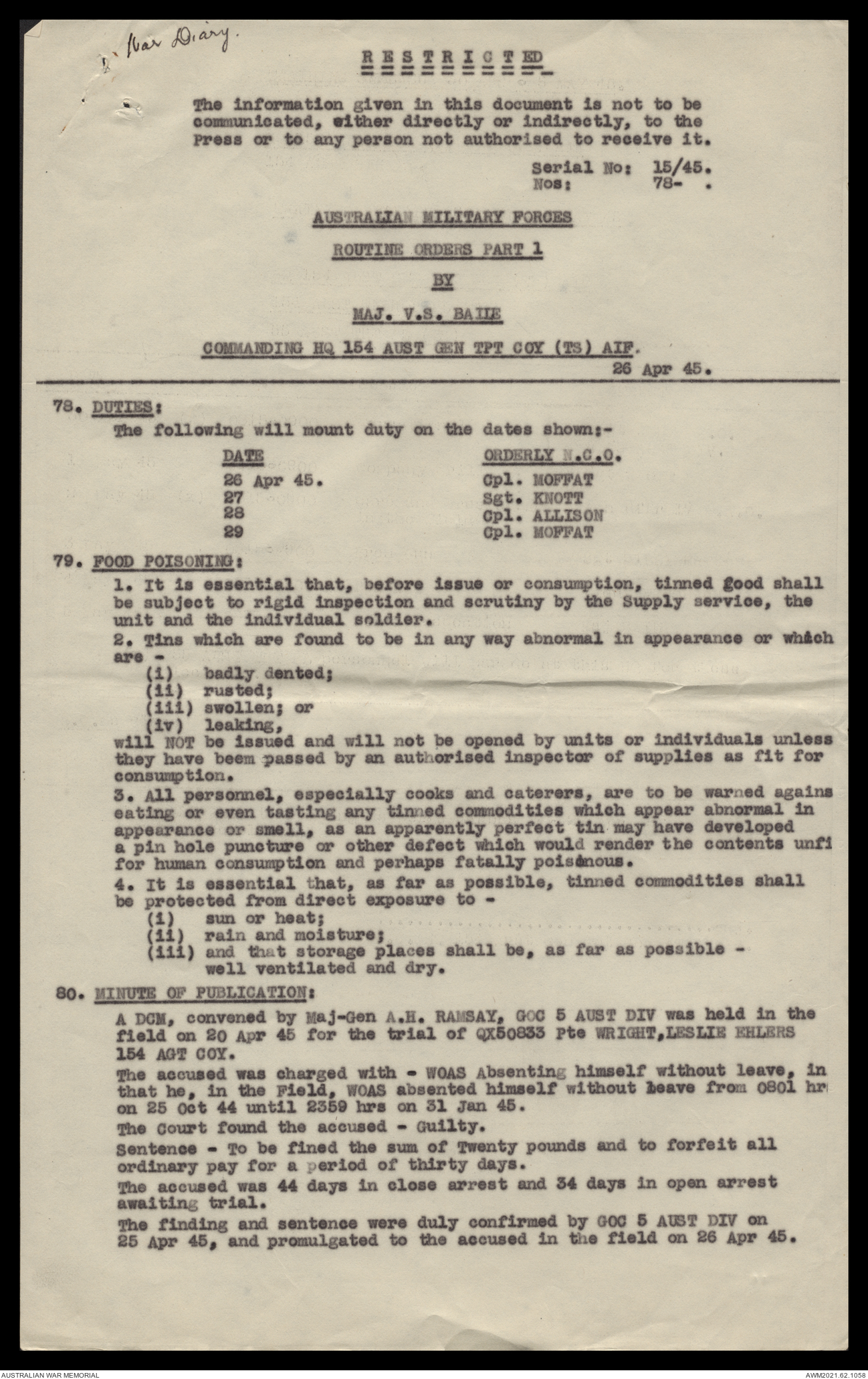 AWM52 10/3/53/9 - [Unit War Diaries, 1939-45 War] 154 General Transport Company, January - April 1945