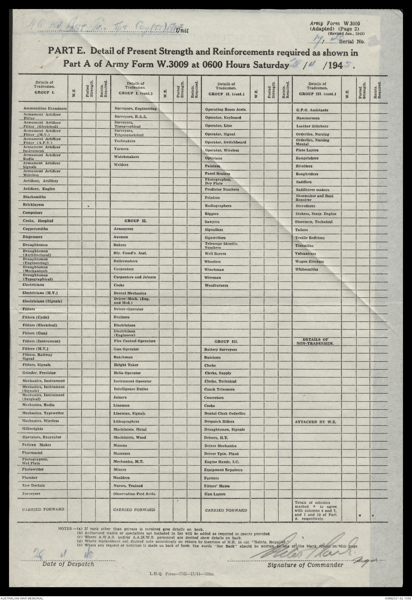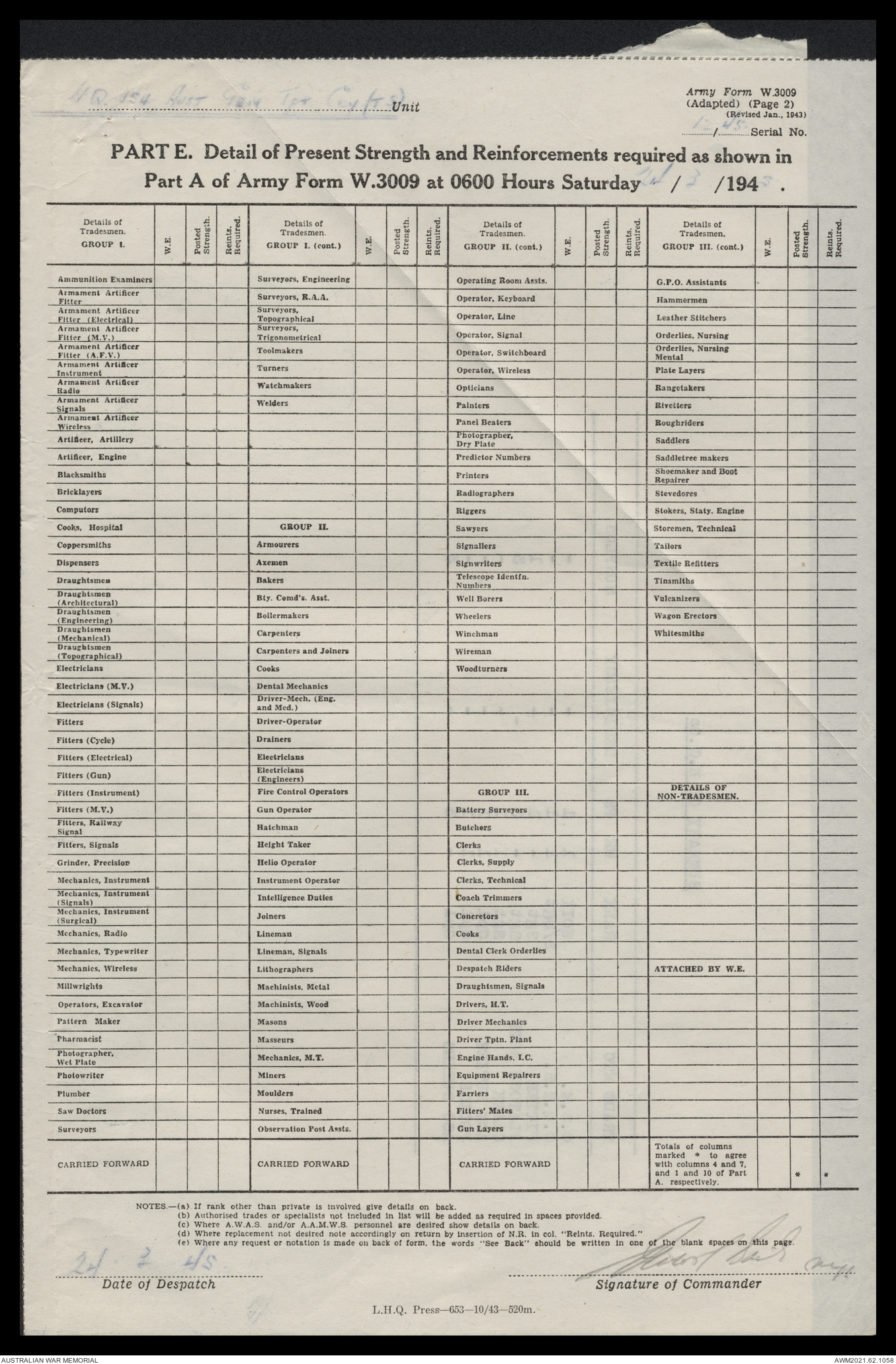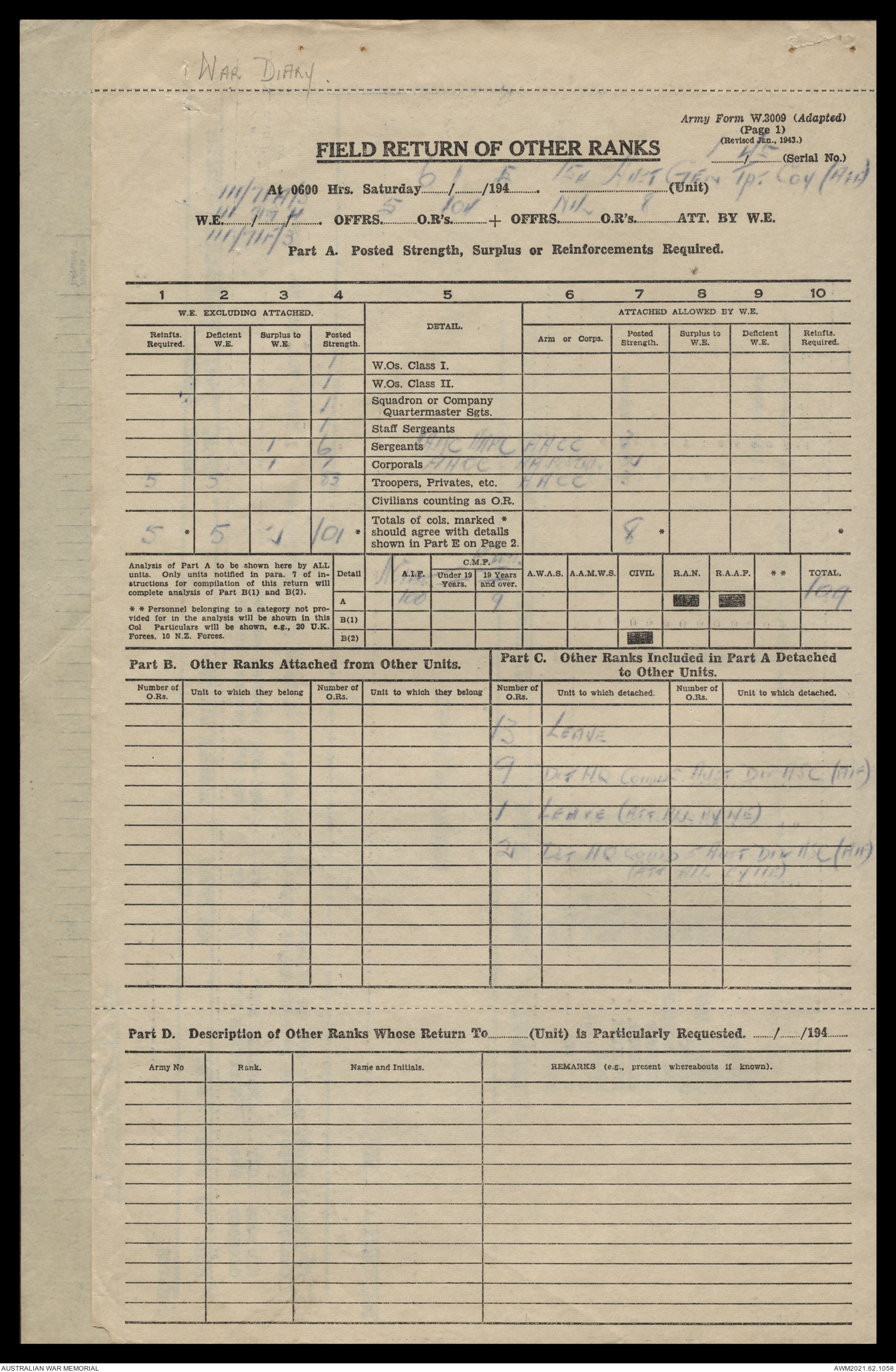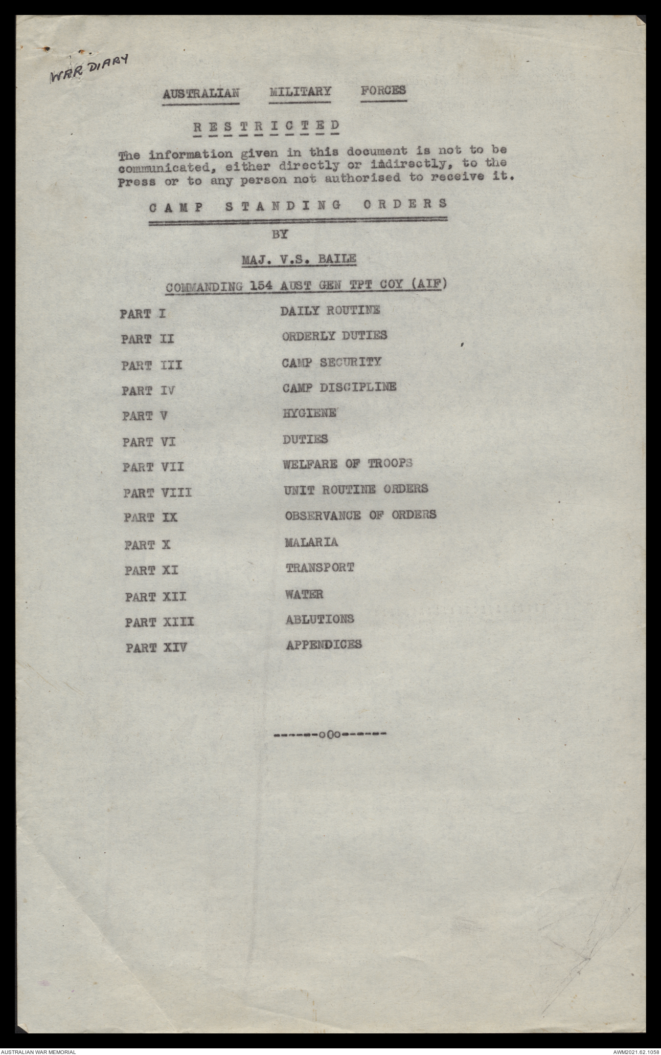2nd AIF (Australian Imperial Force) and CMF (Citizen Military Forces) unit war diaries, 1939-45 War