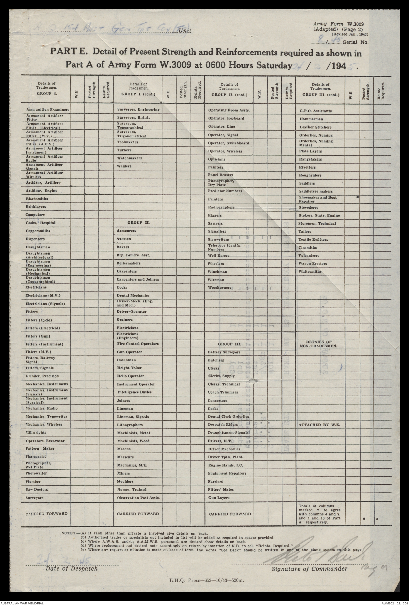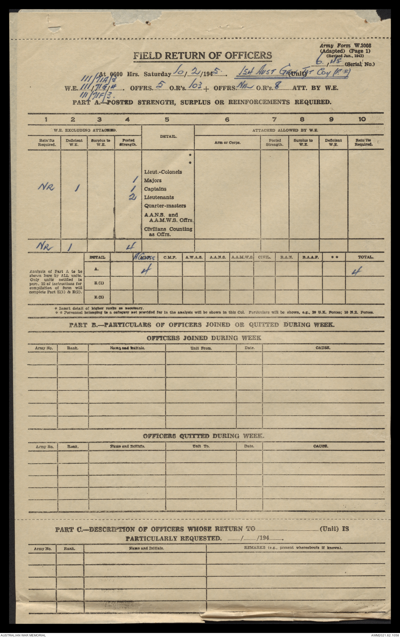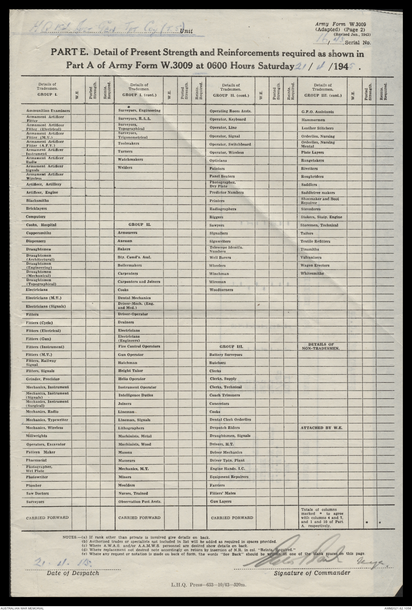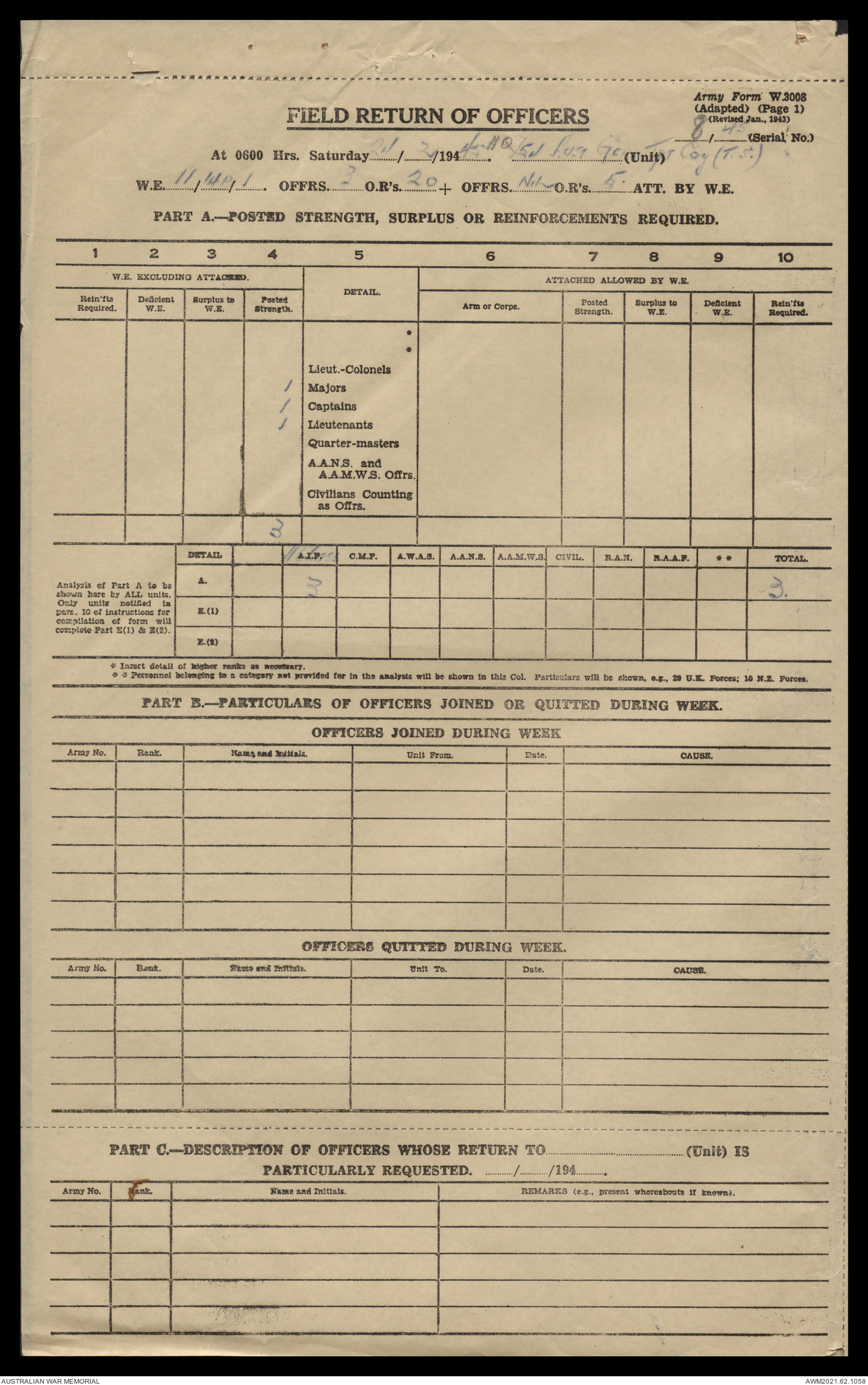 2nd AIF (Australian Imperial Force) and CMF (Citizen Military Forces) unit war diaries, 1939-45 War