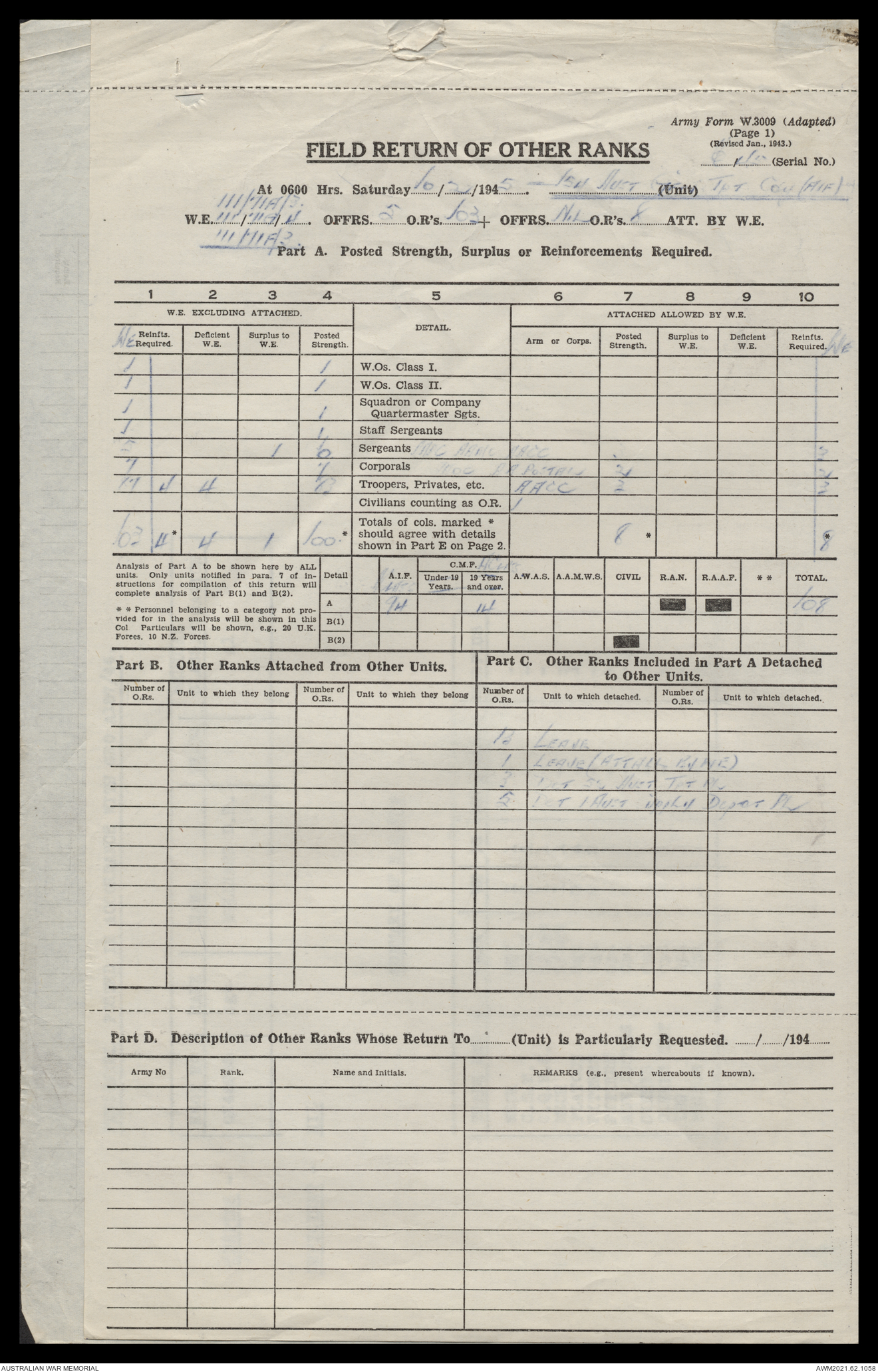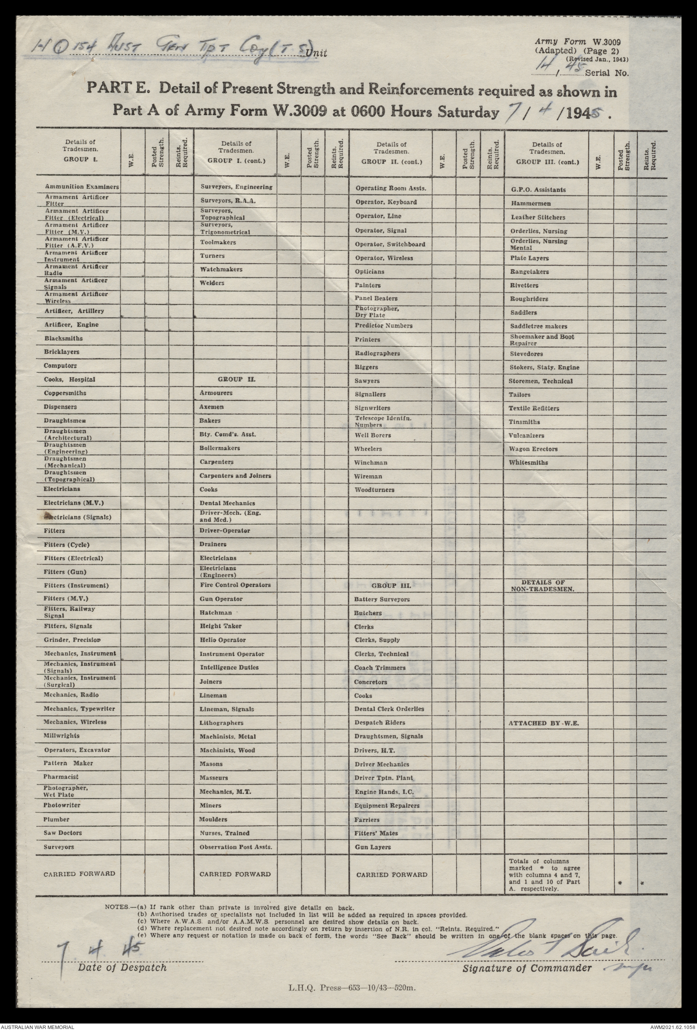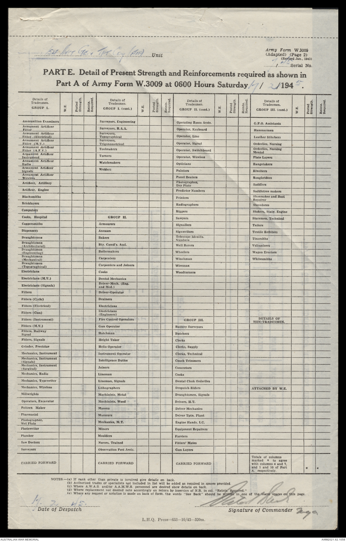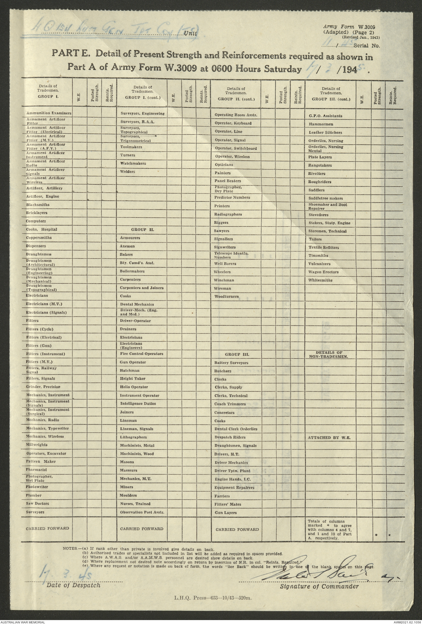 2nd AIF (Australian Imperial Force) and CMF (Citizen Military Forces) unit war diaries, 1939-45 War