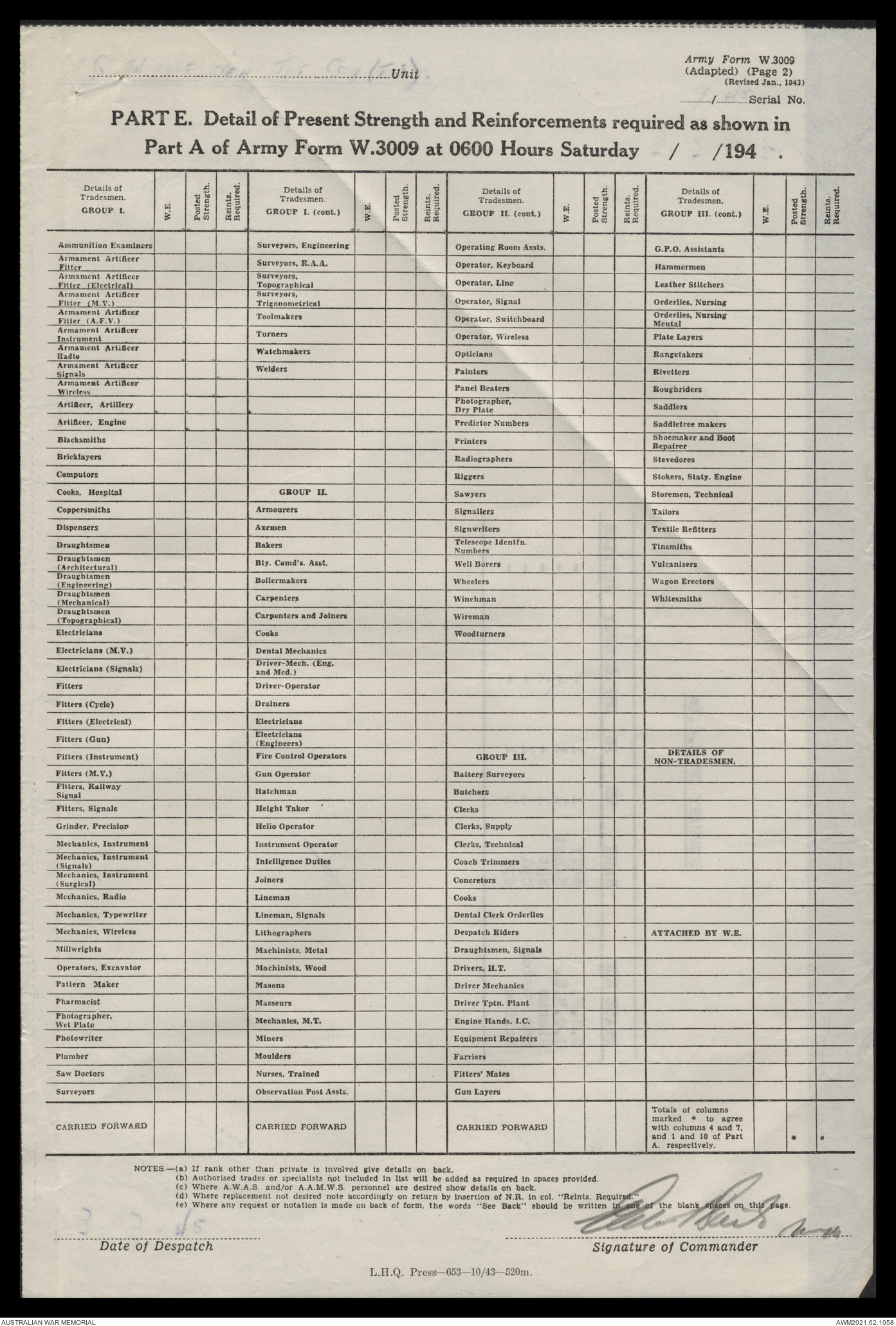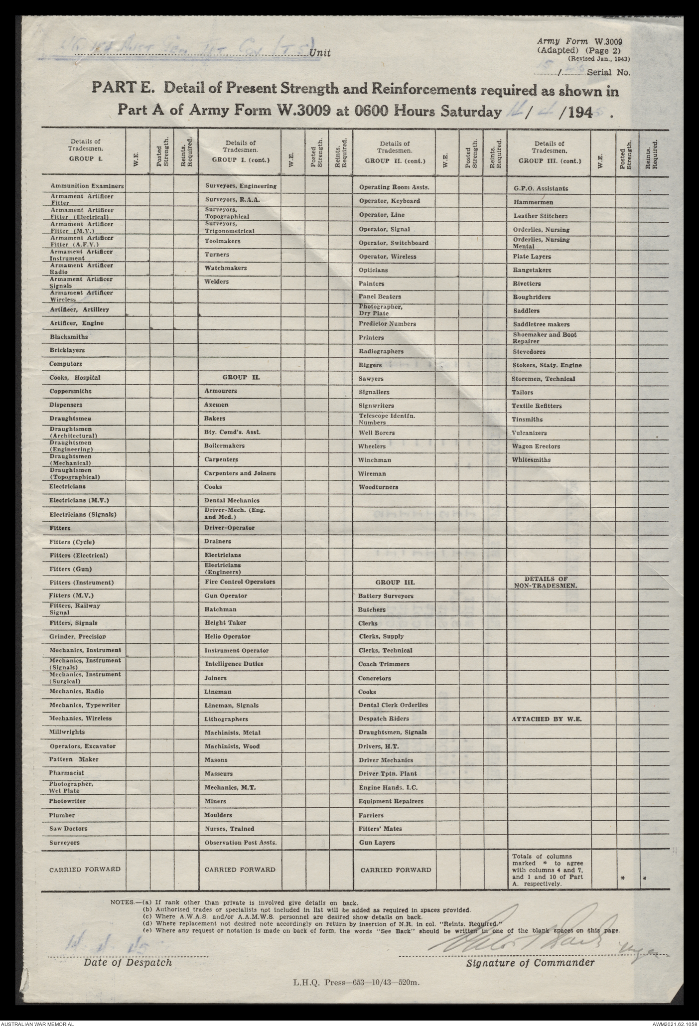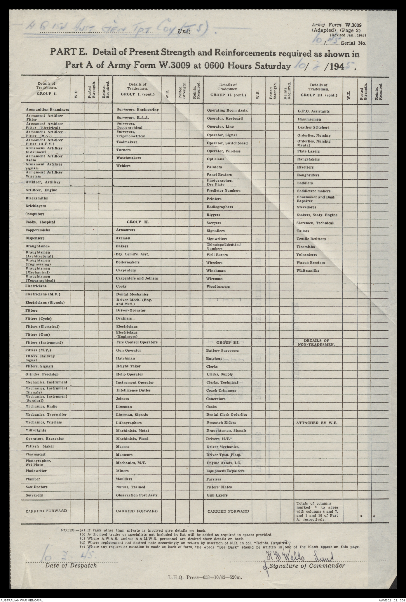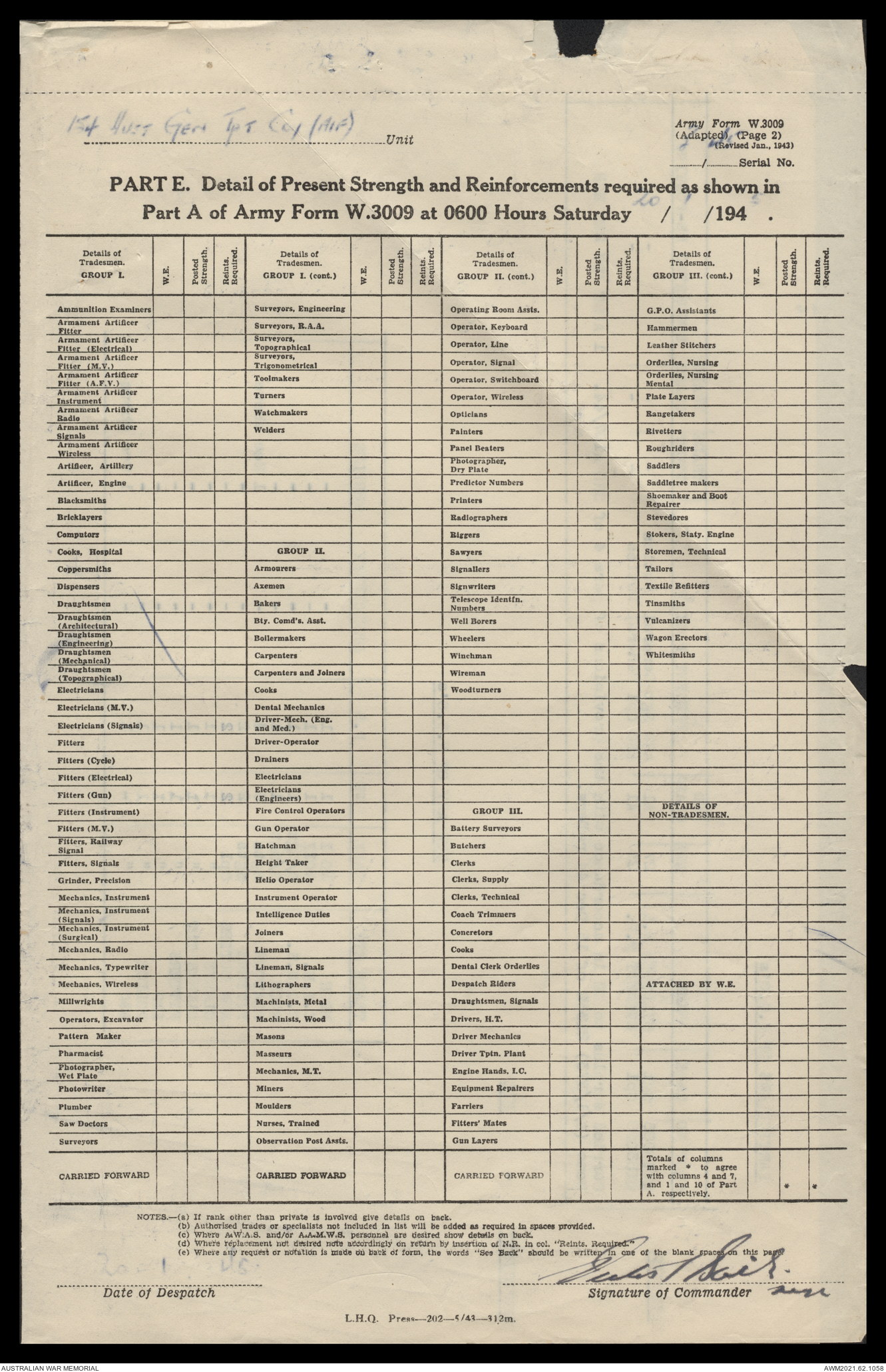 2nd AIF (Australian Imperial Force) and CMF (Citizen Military Forces) unit war diaries, 1939-45 War