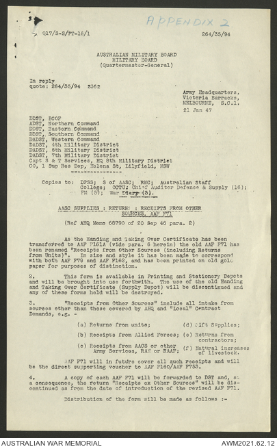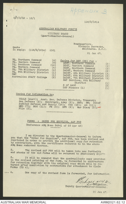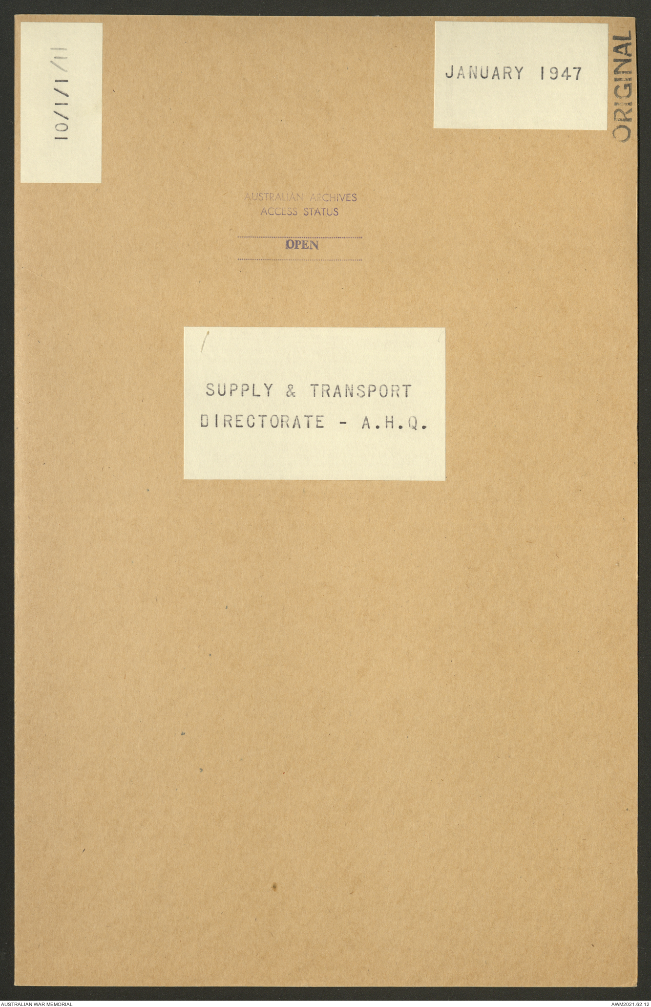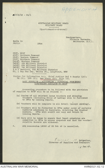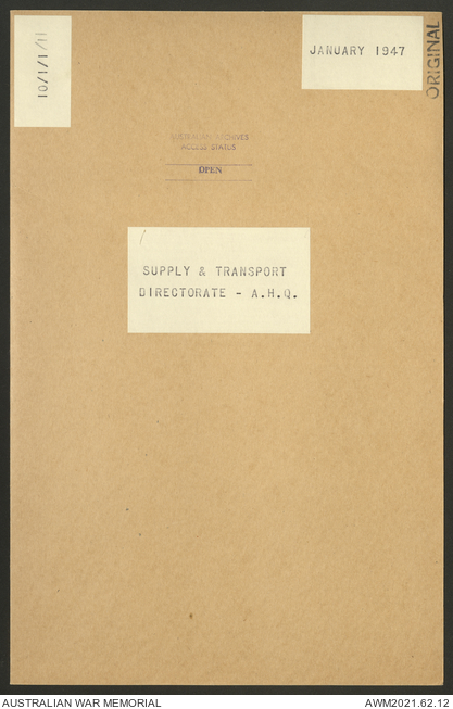 - AWM52 10/1/1 - Supply and Transport Directorate, Land Head Quarters