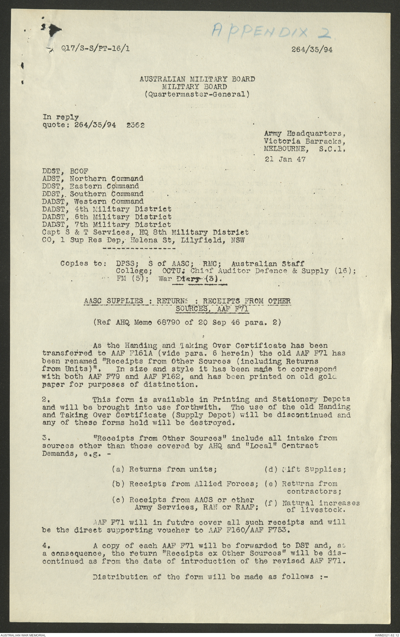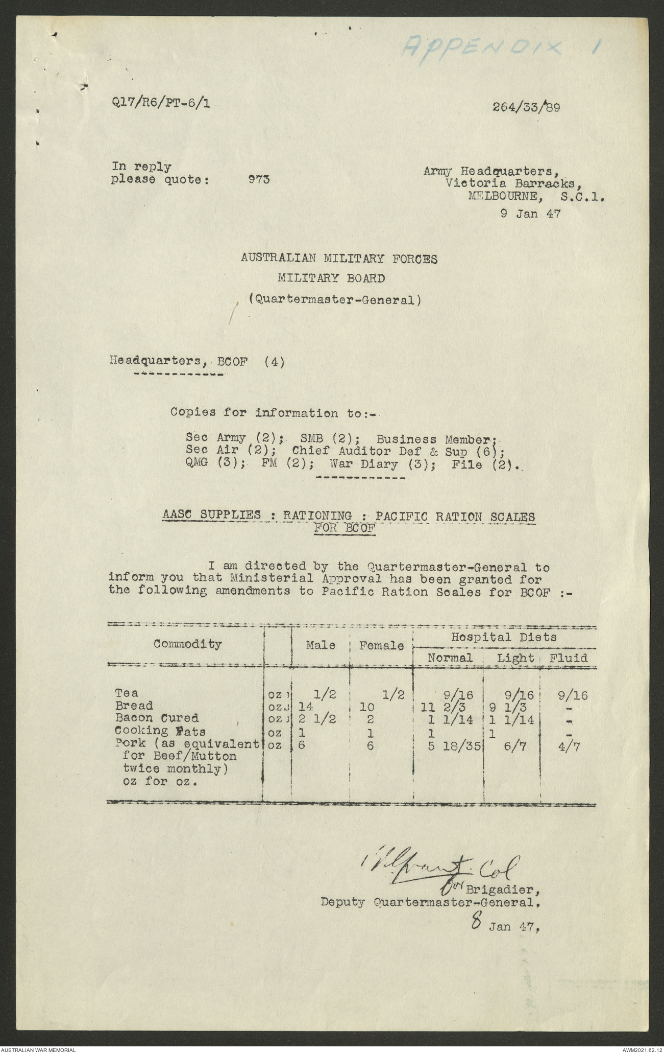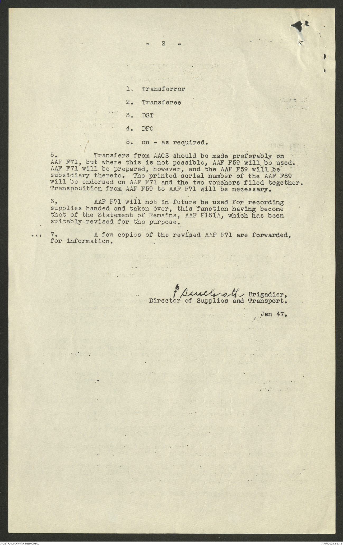 AWM52 10/1/1/11 - [Unit War Diaries, 1939-45 War] Supply and Transport Directorate AMF [Australian Military Force] January 1947