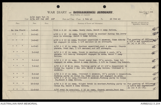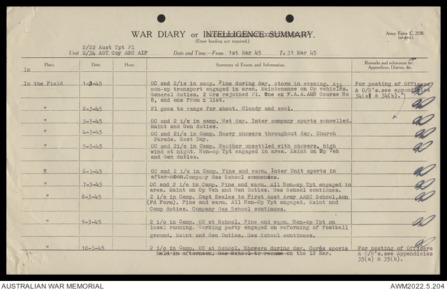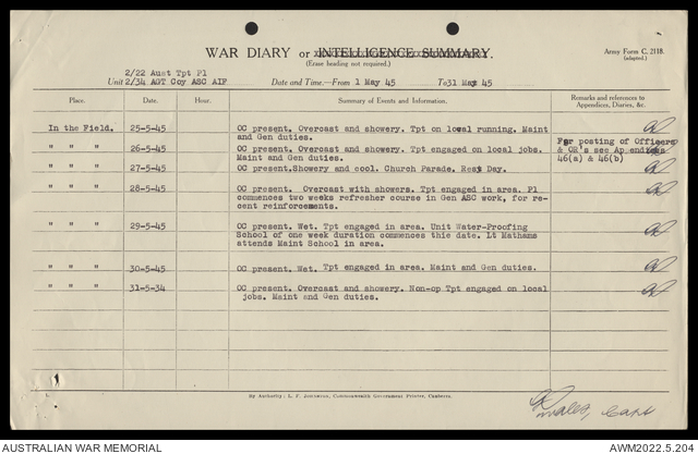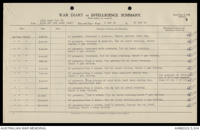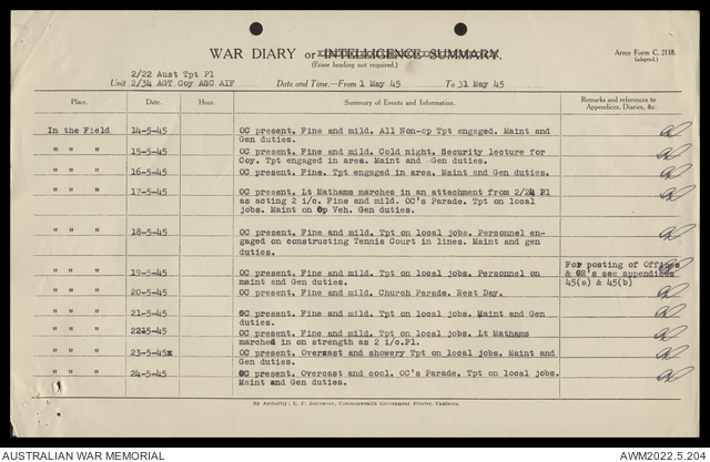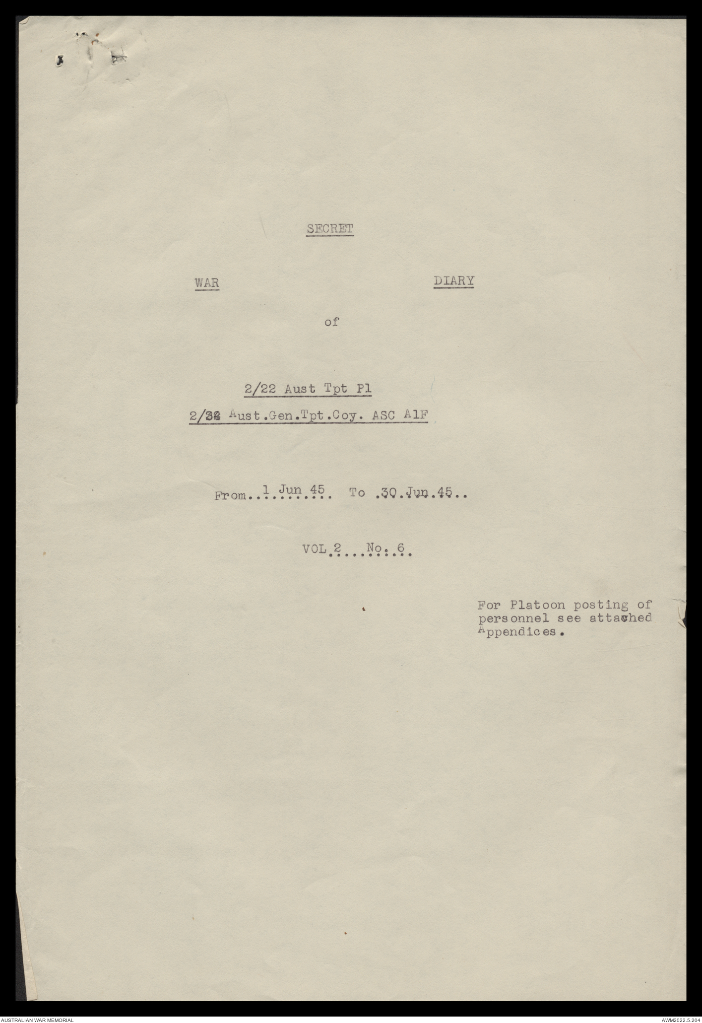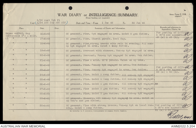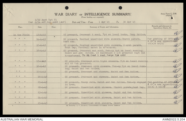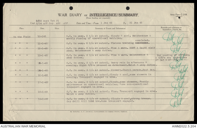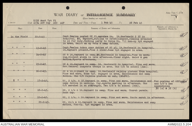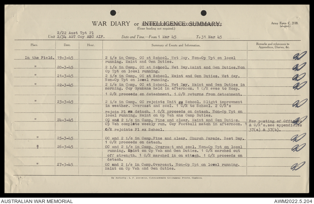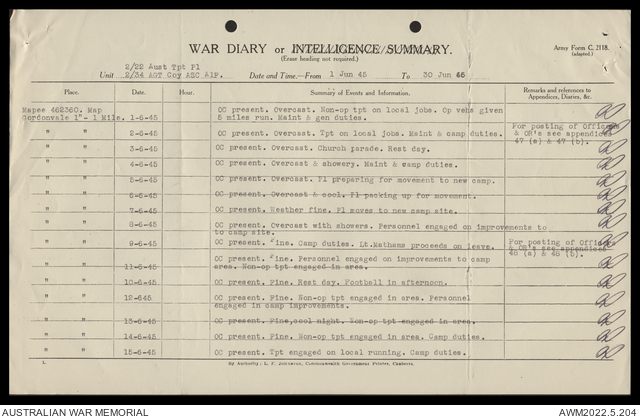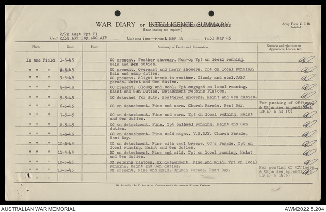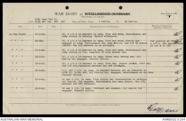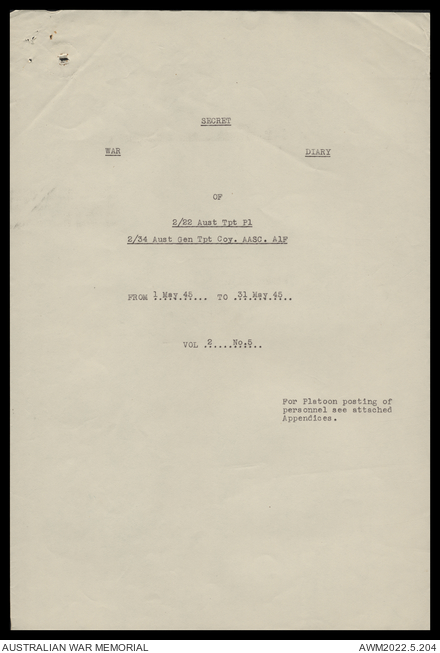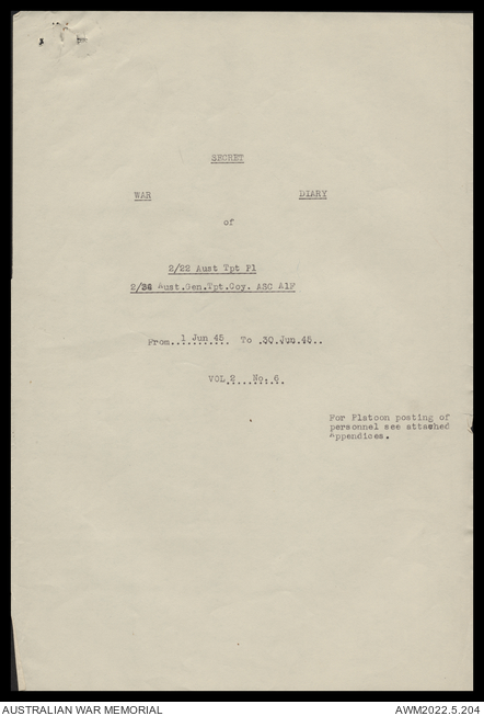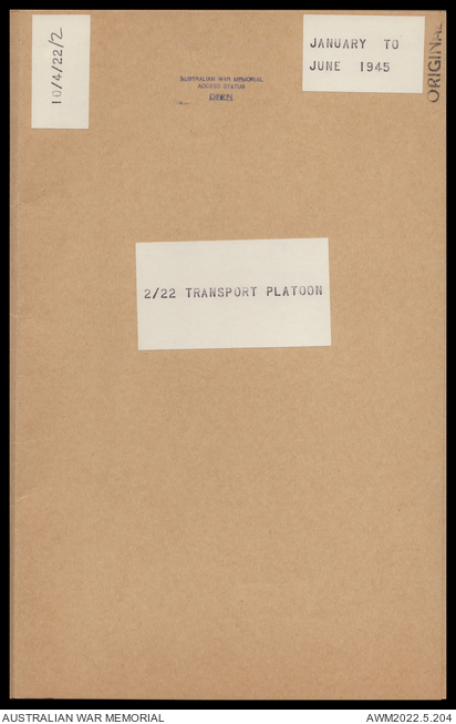 AWM52 10/4/22/2 - [Unit War Diaries, 1939-45 War] 2/22 Transport Platoon, January - June 1945
