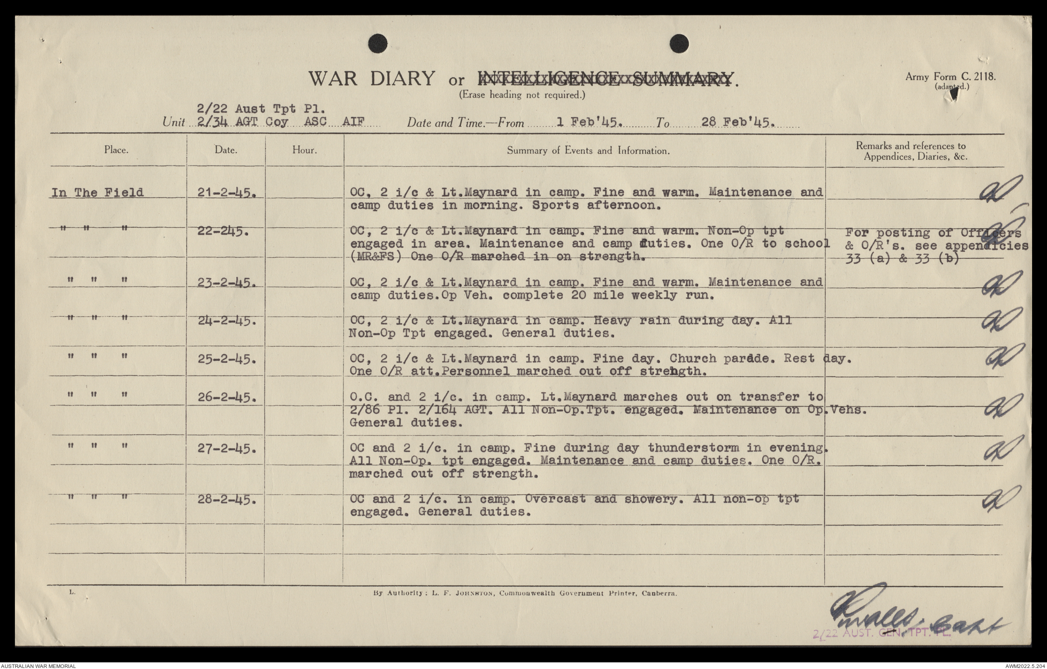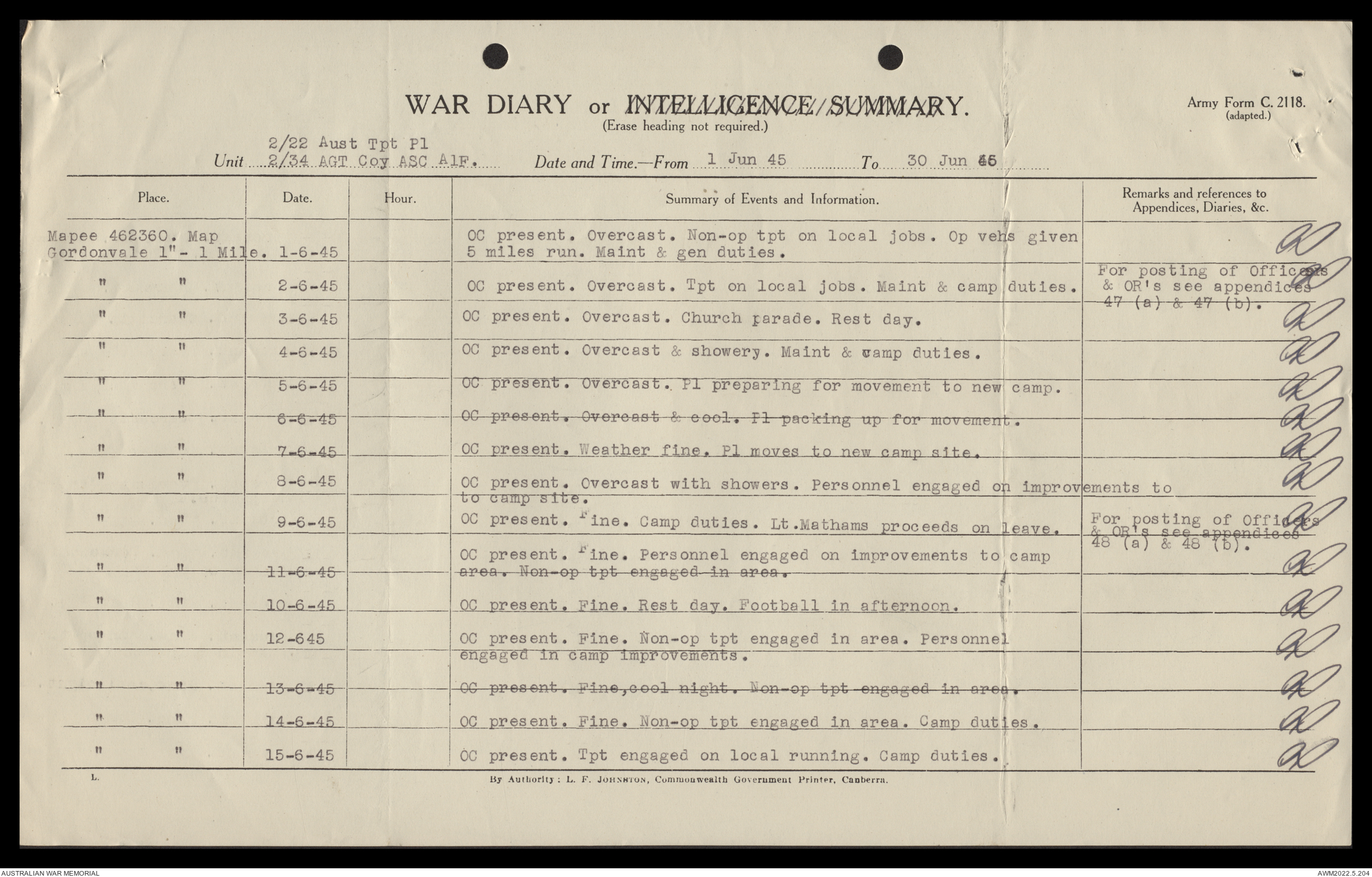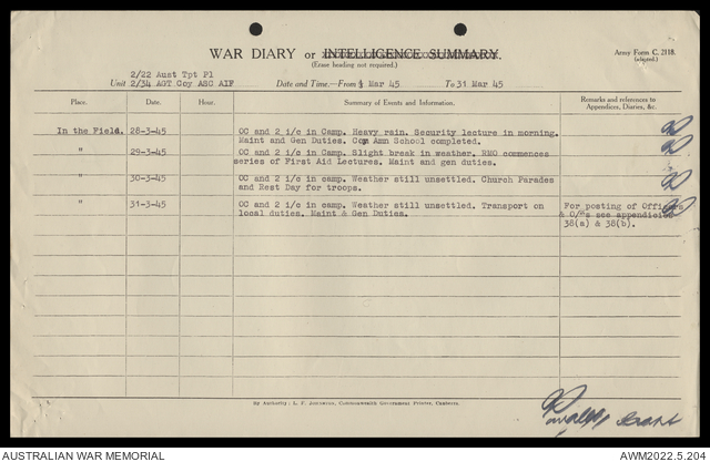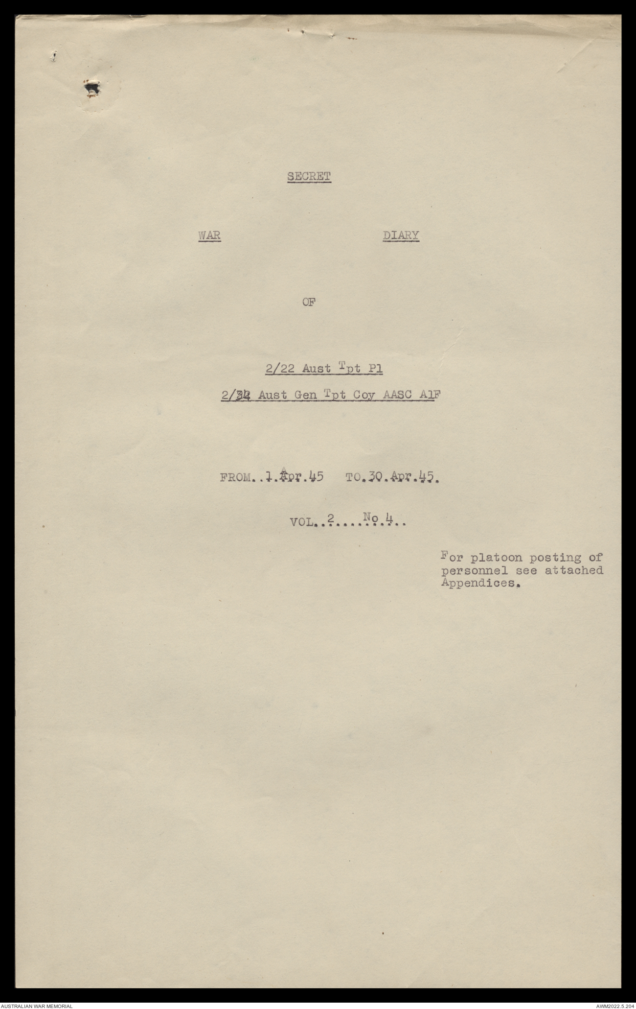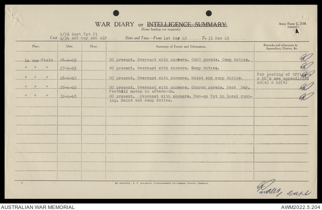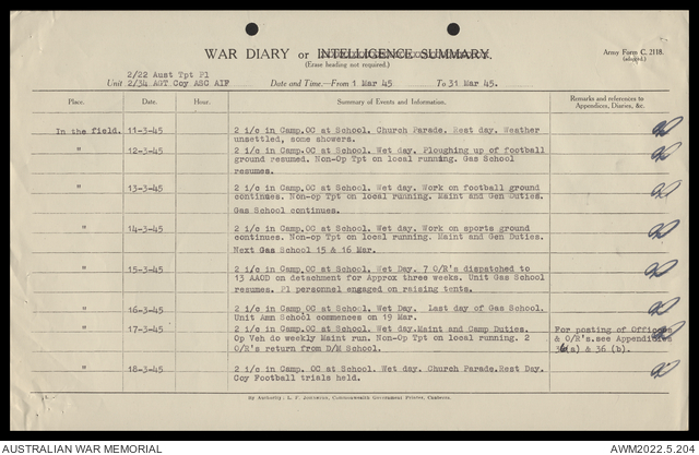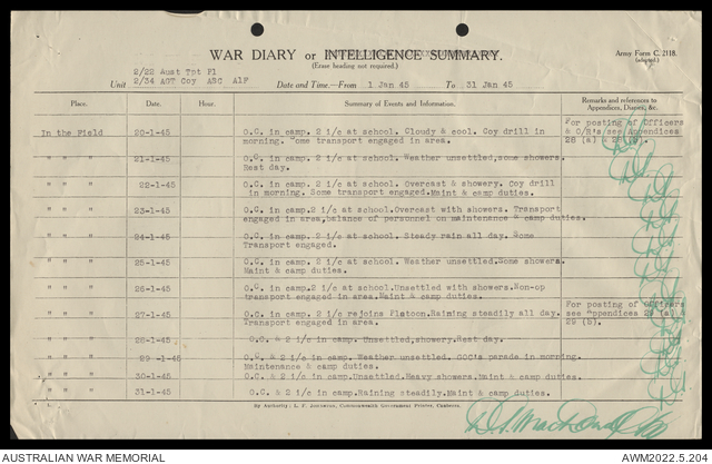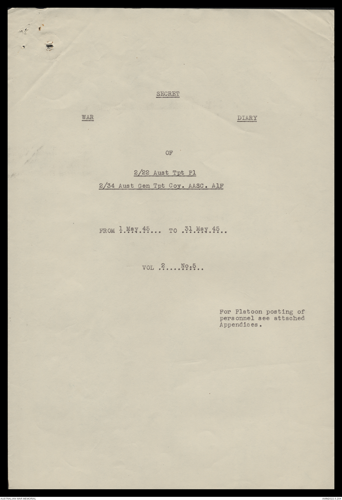 AWM52 10/4/22/2 - [Unit War Diaries, 1939-45 War] 2/22 Transport Platoon, January - June 1945
