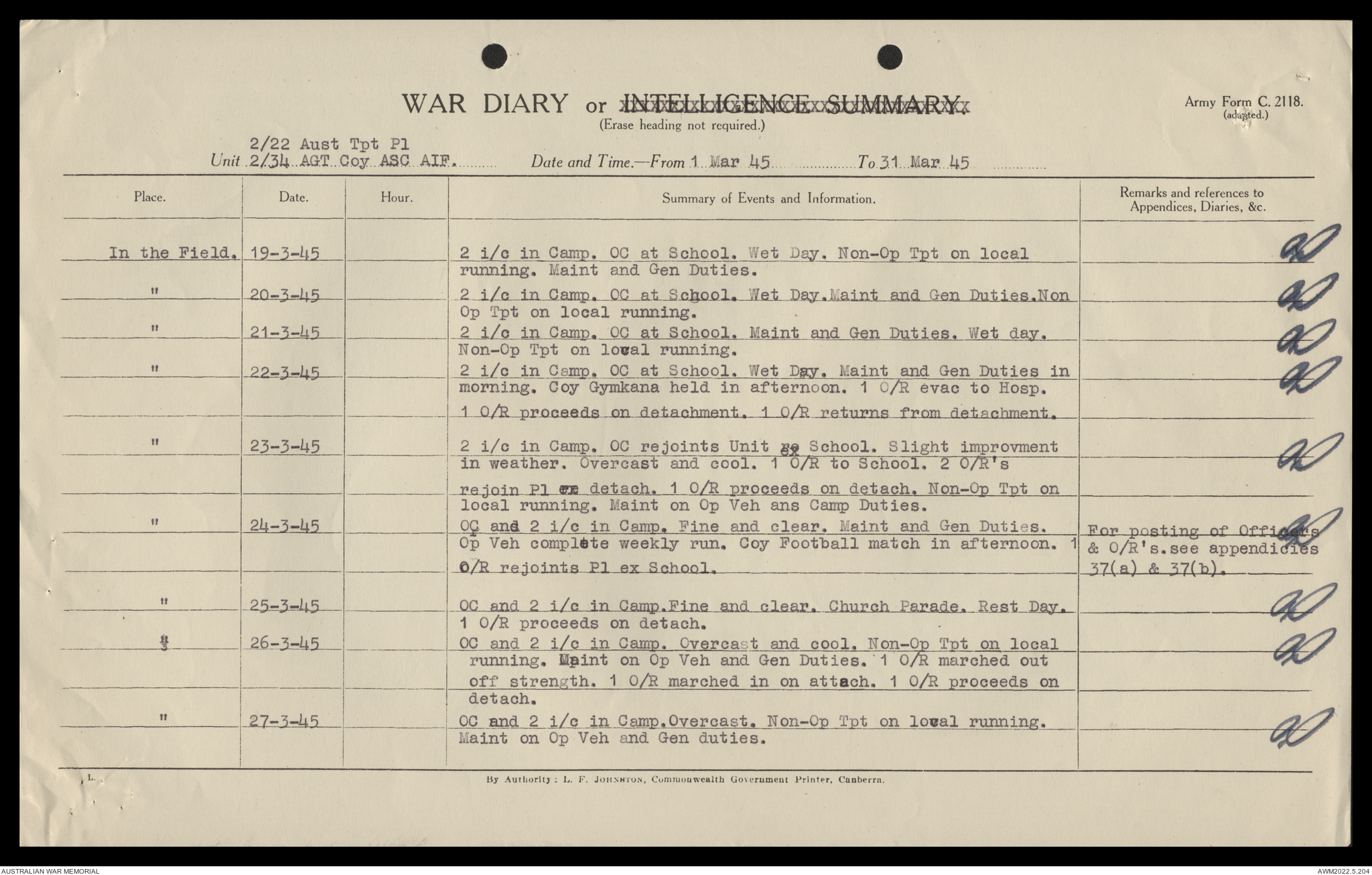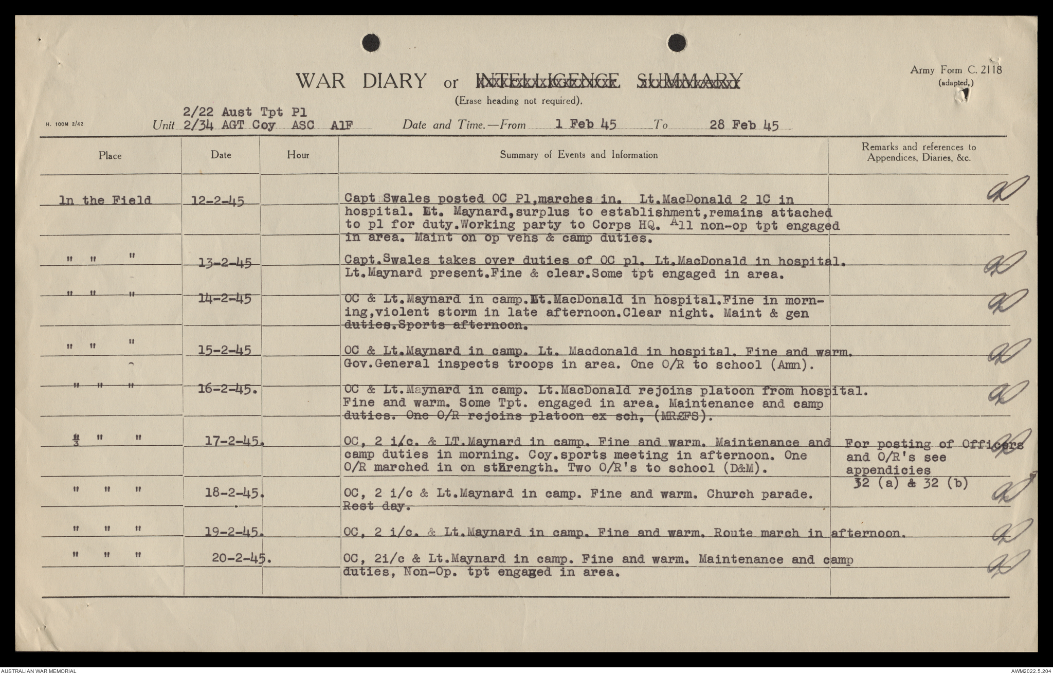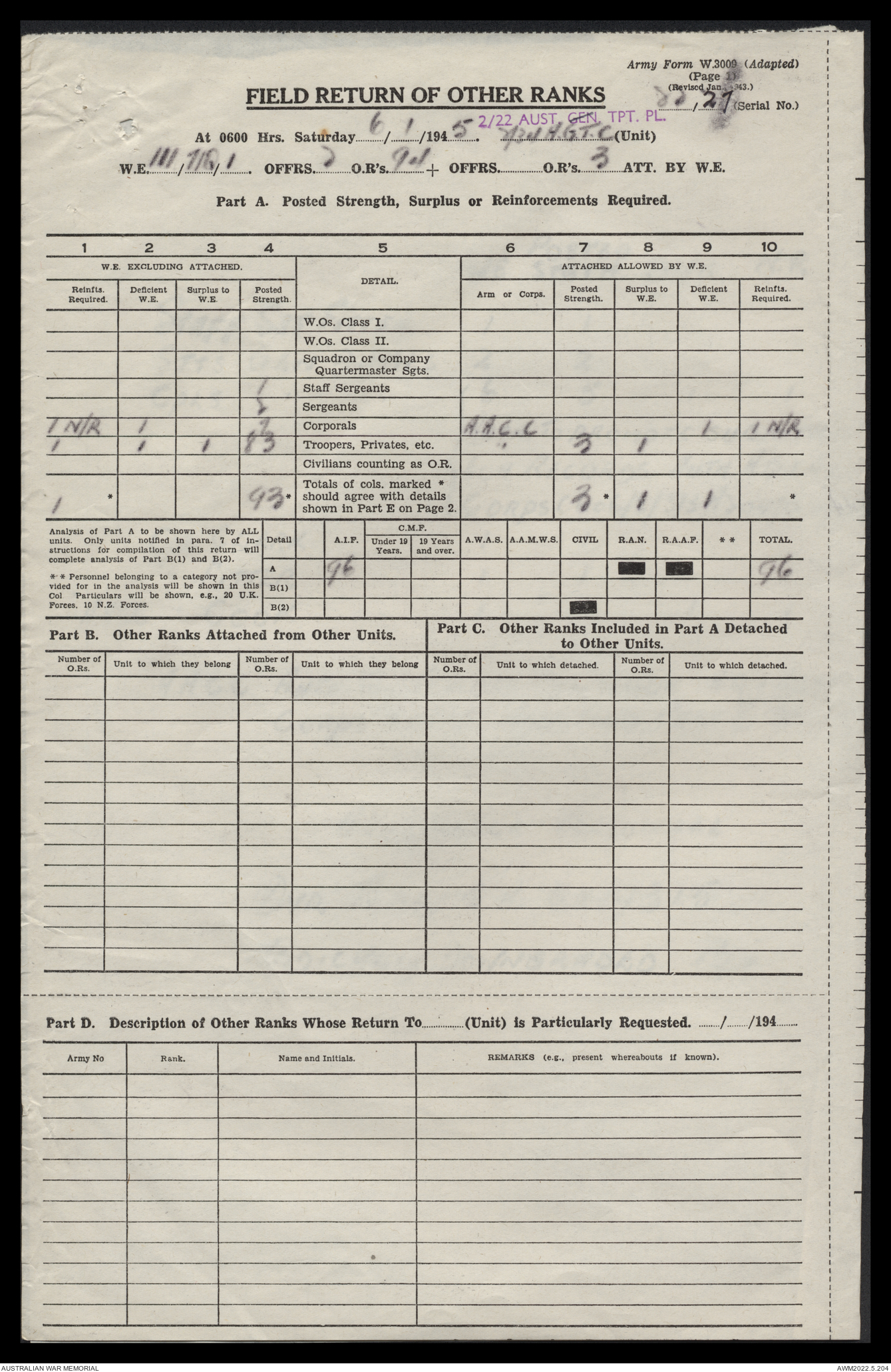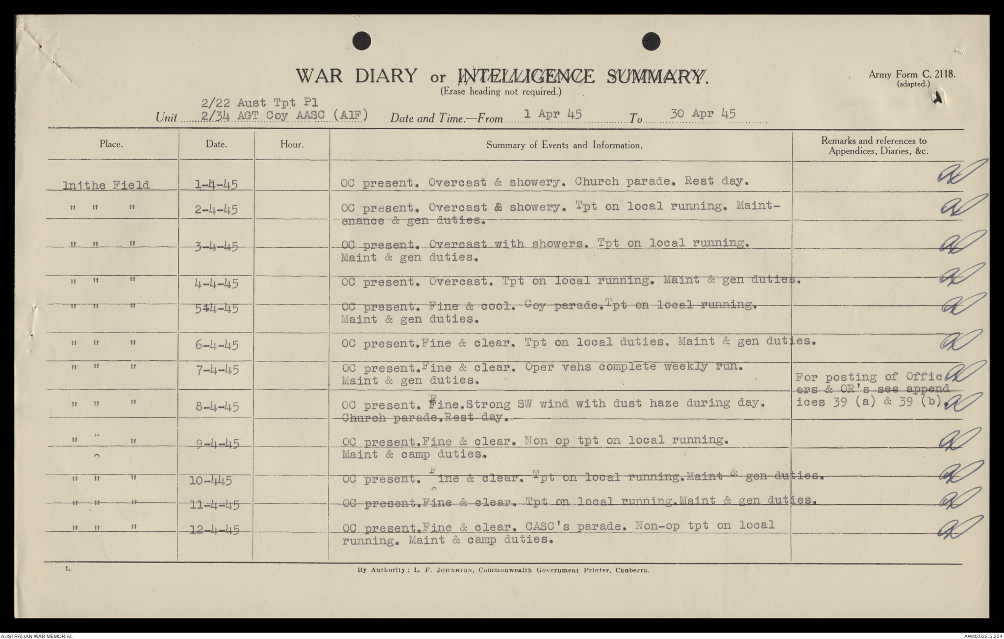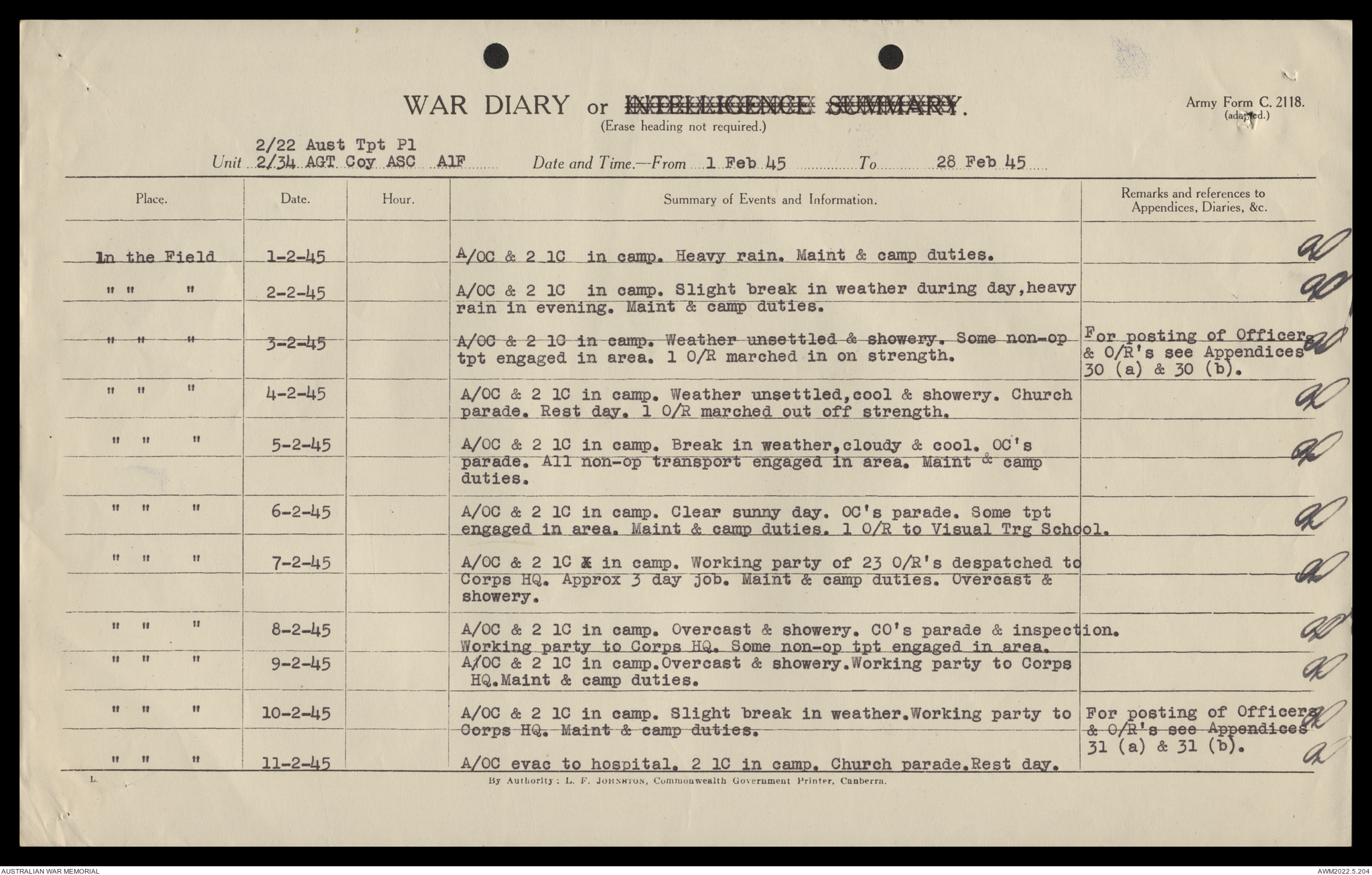 AWM52 10/4/22/2 - [Unit War Diaries, 1939-45 War] 2/22 Transport Platoon, January - June 1945
