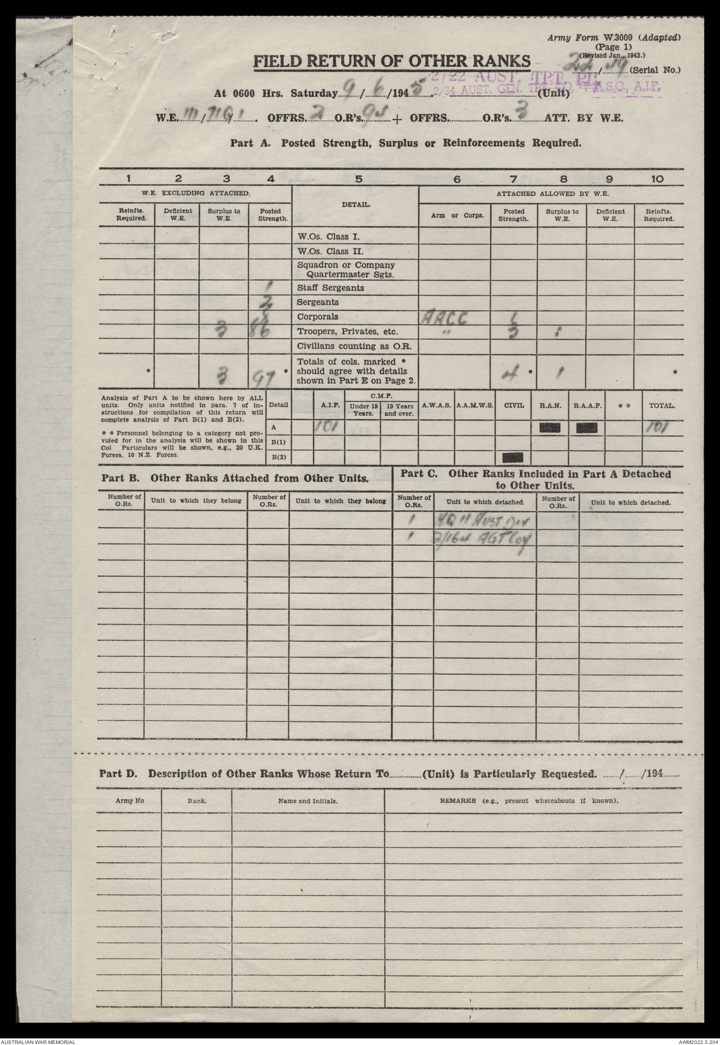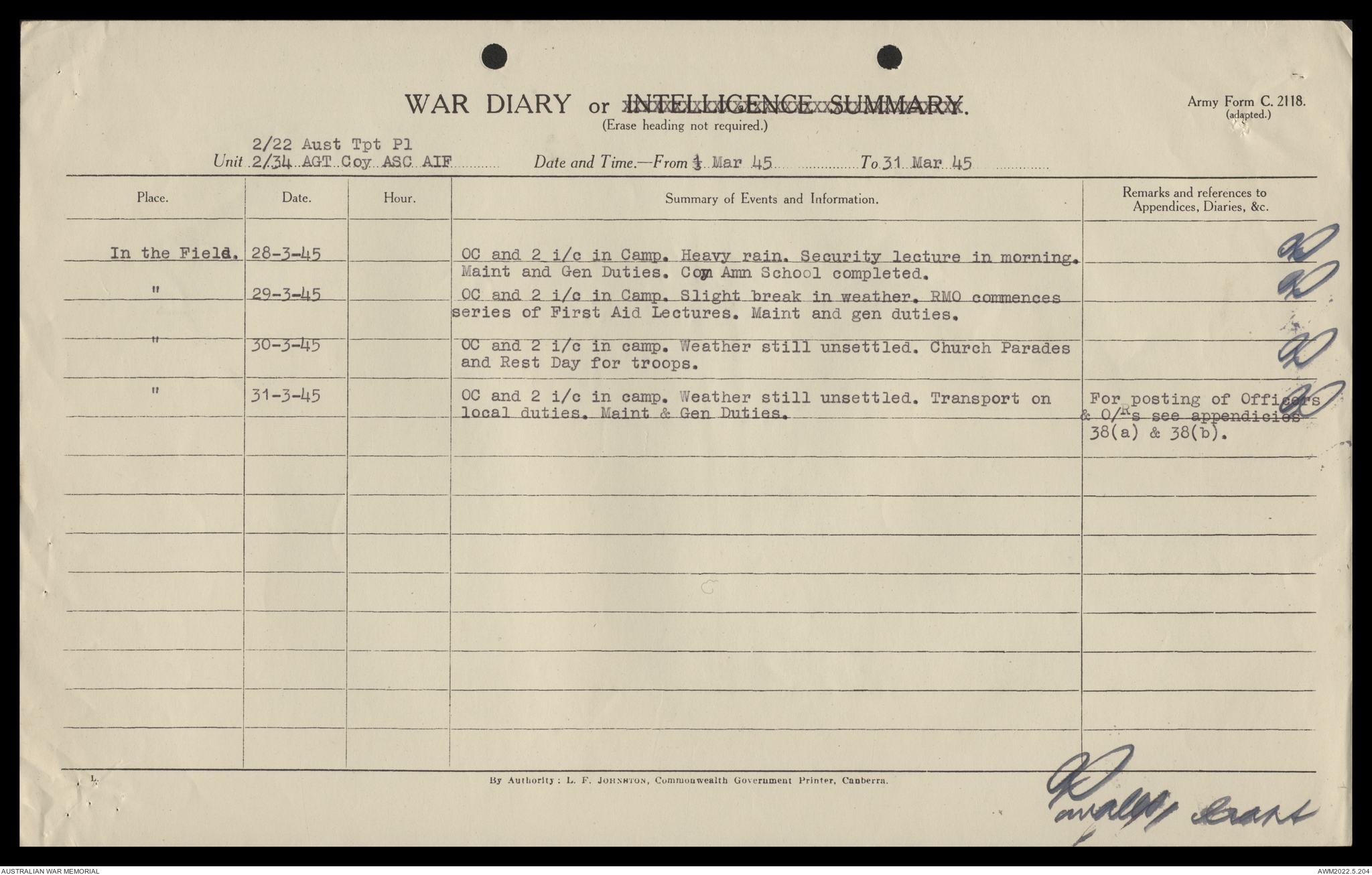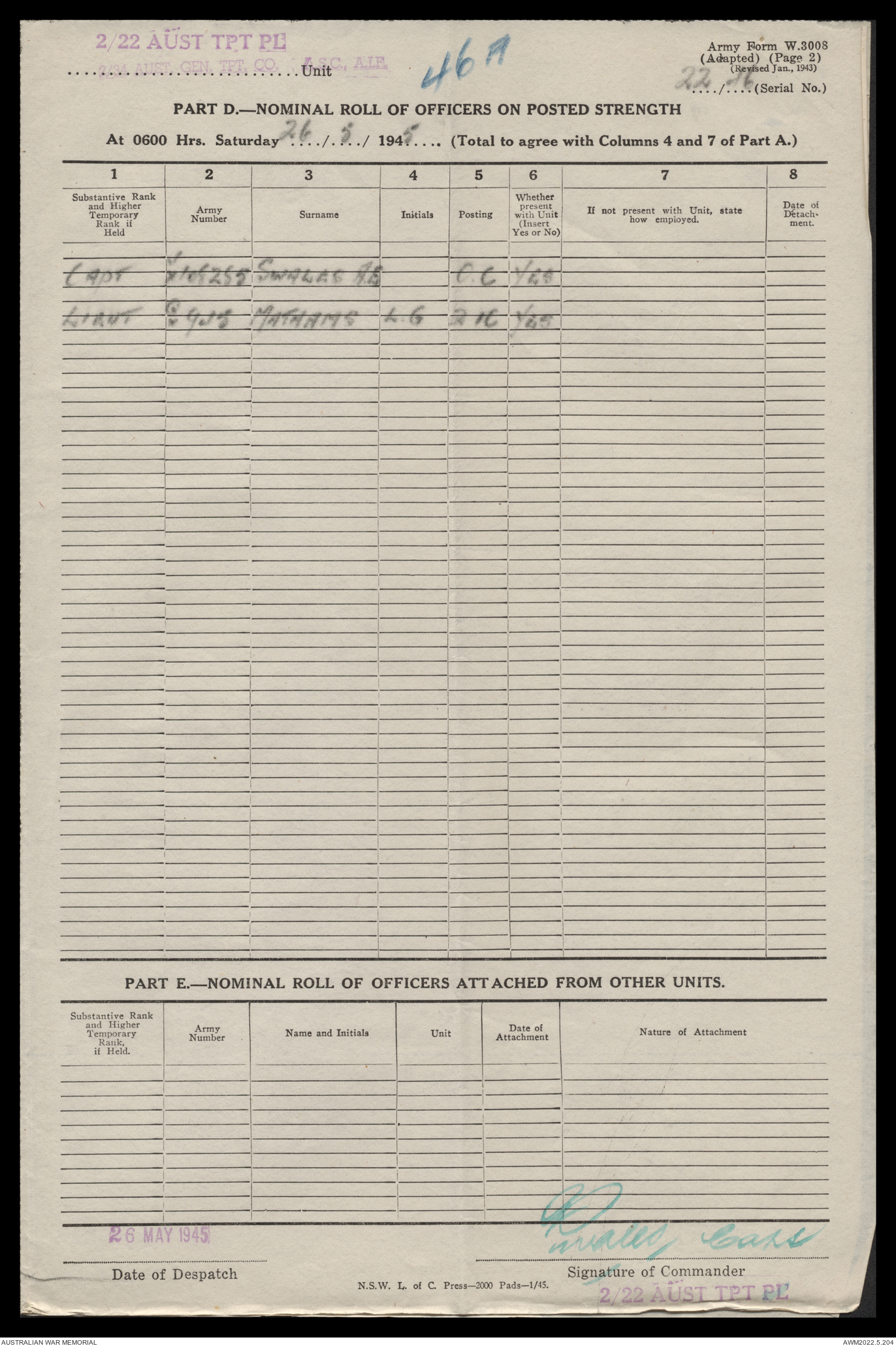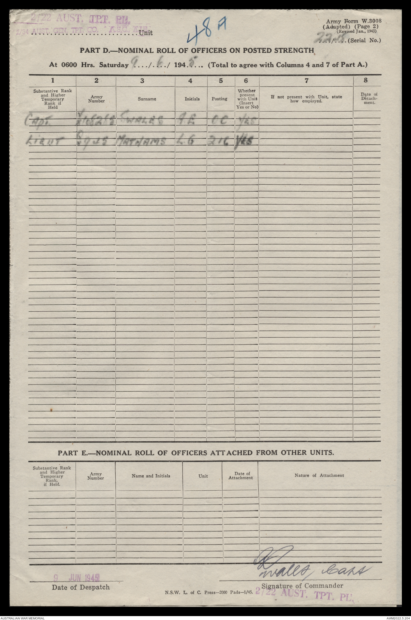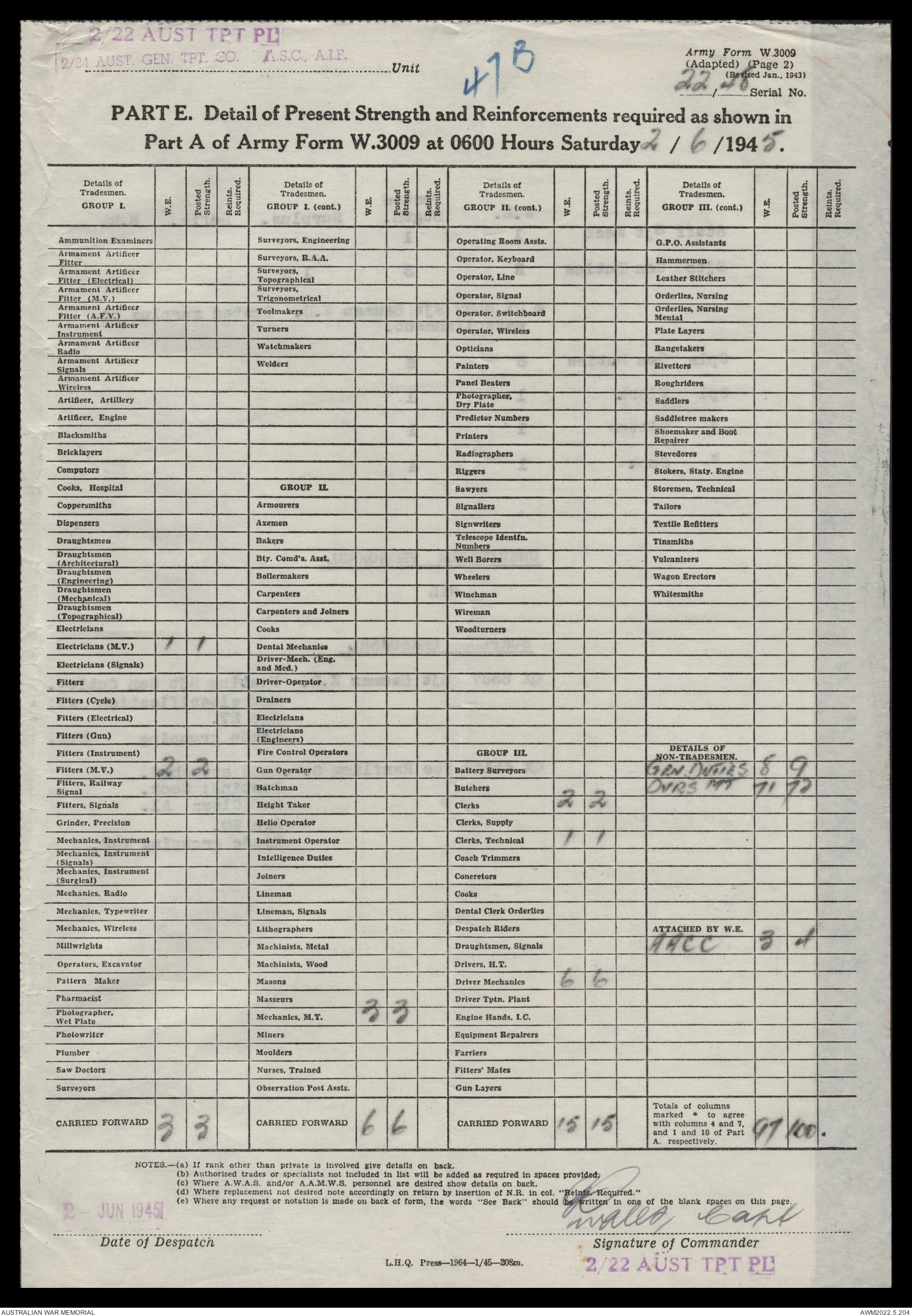 AWM52 10/4/22/2 - [Unit War Diaries, 1939-45 War] 2/22 Transport Platoon, January - June 1945