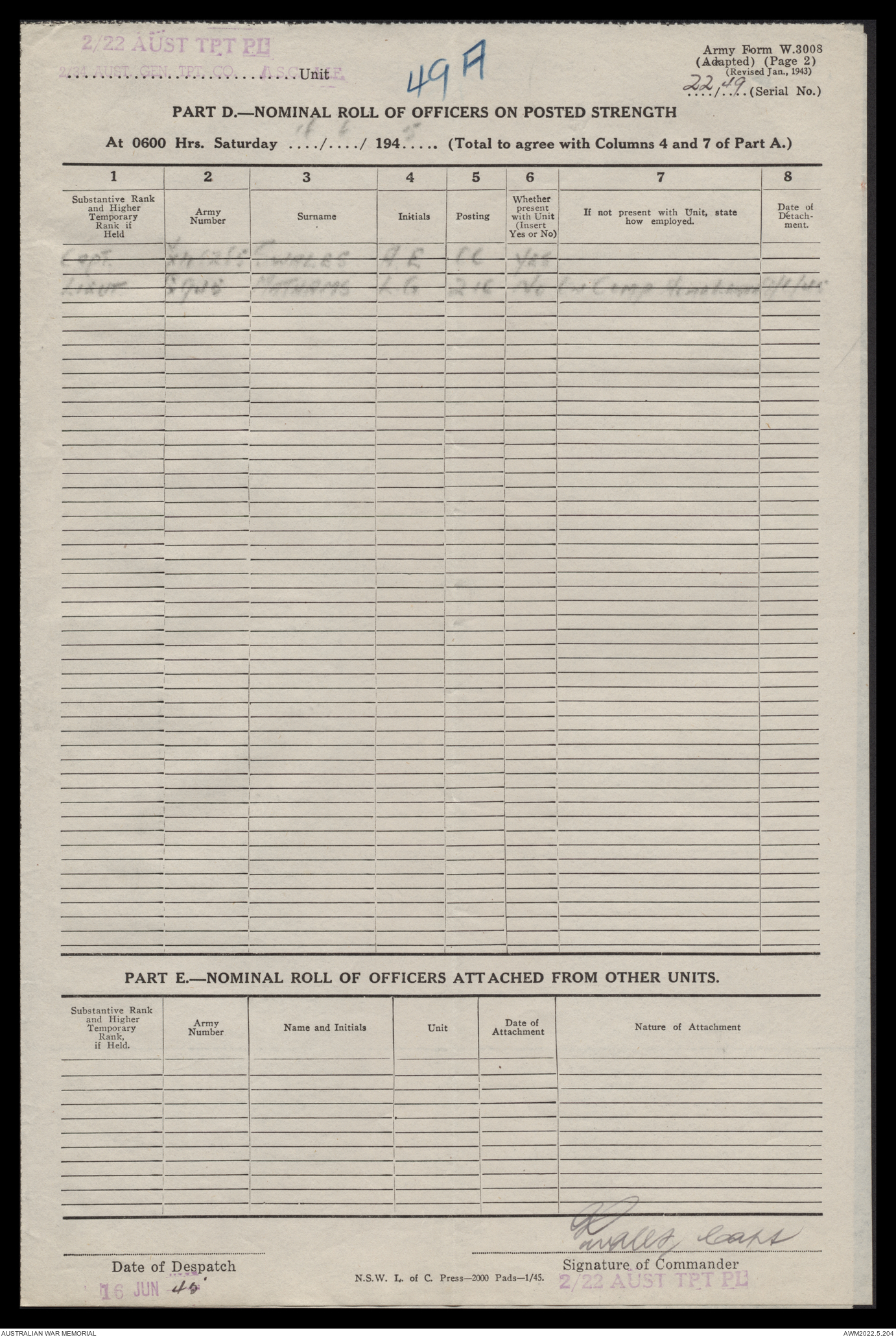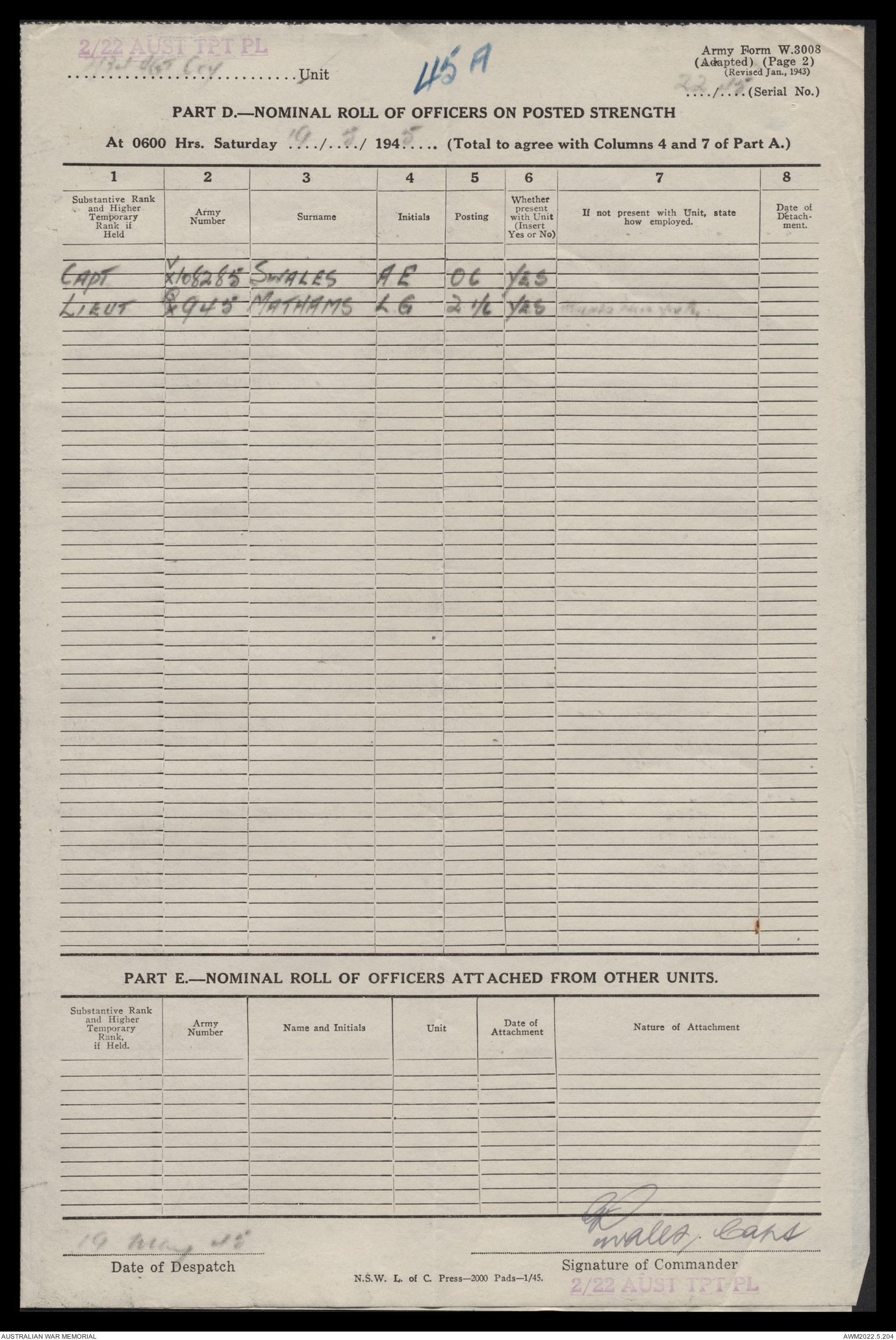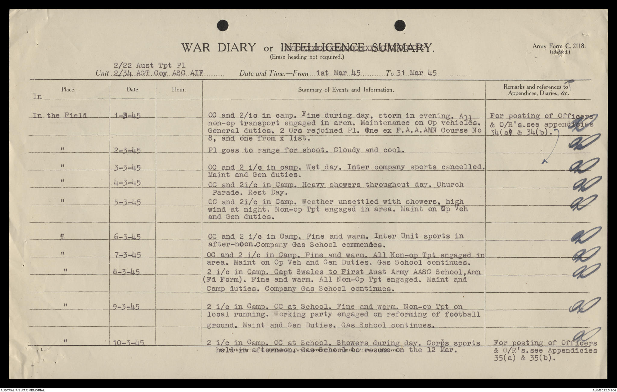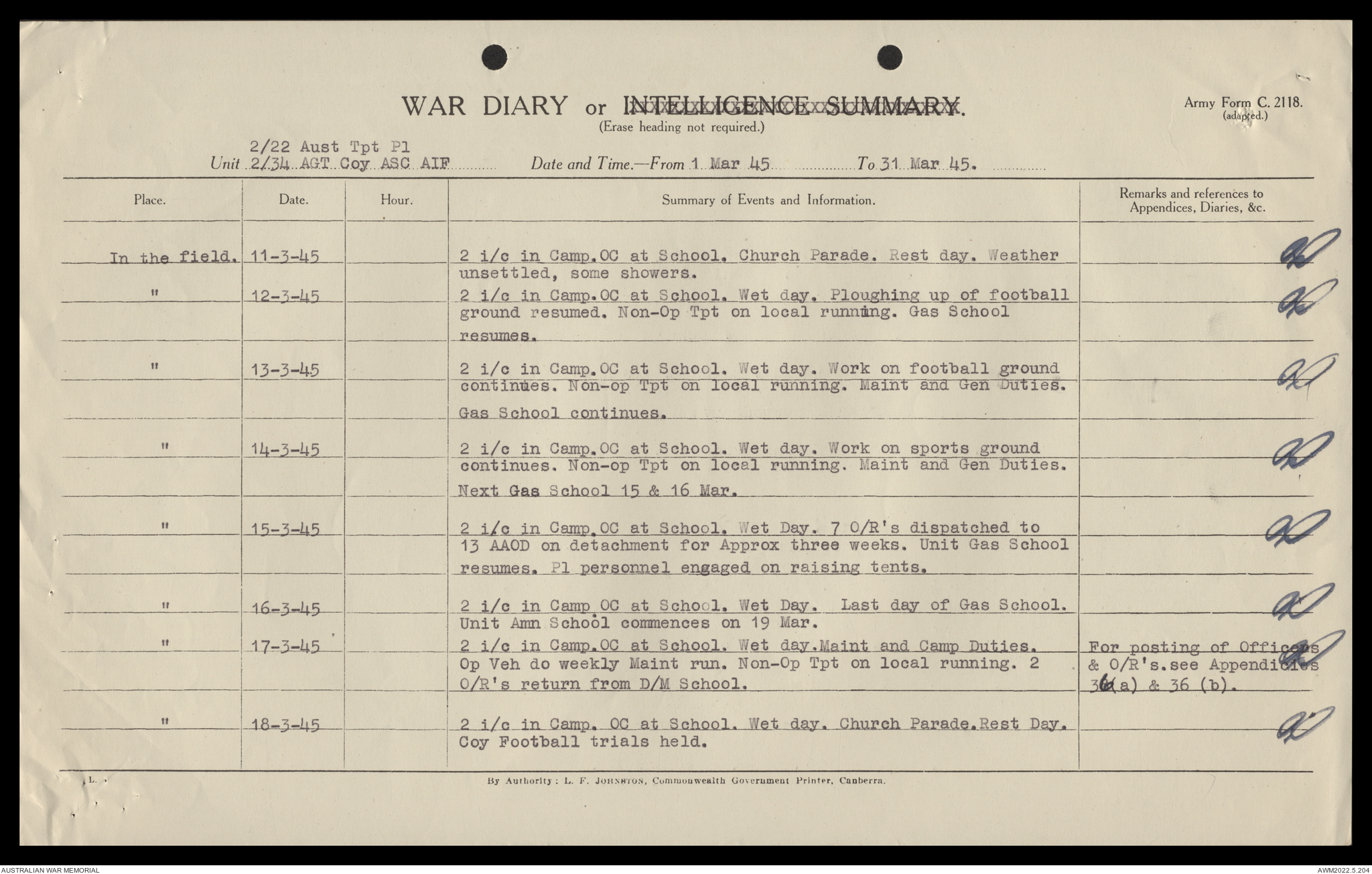 AWM52 10/4/22/2 - [Unit War Diaries, 1939-45 War] 2/22 Transport Platoon, January - June 1945