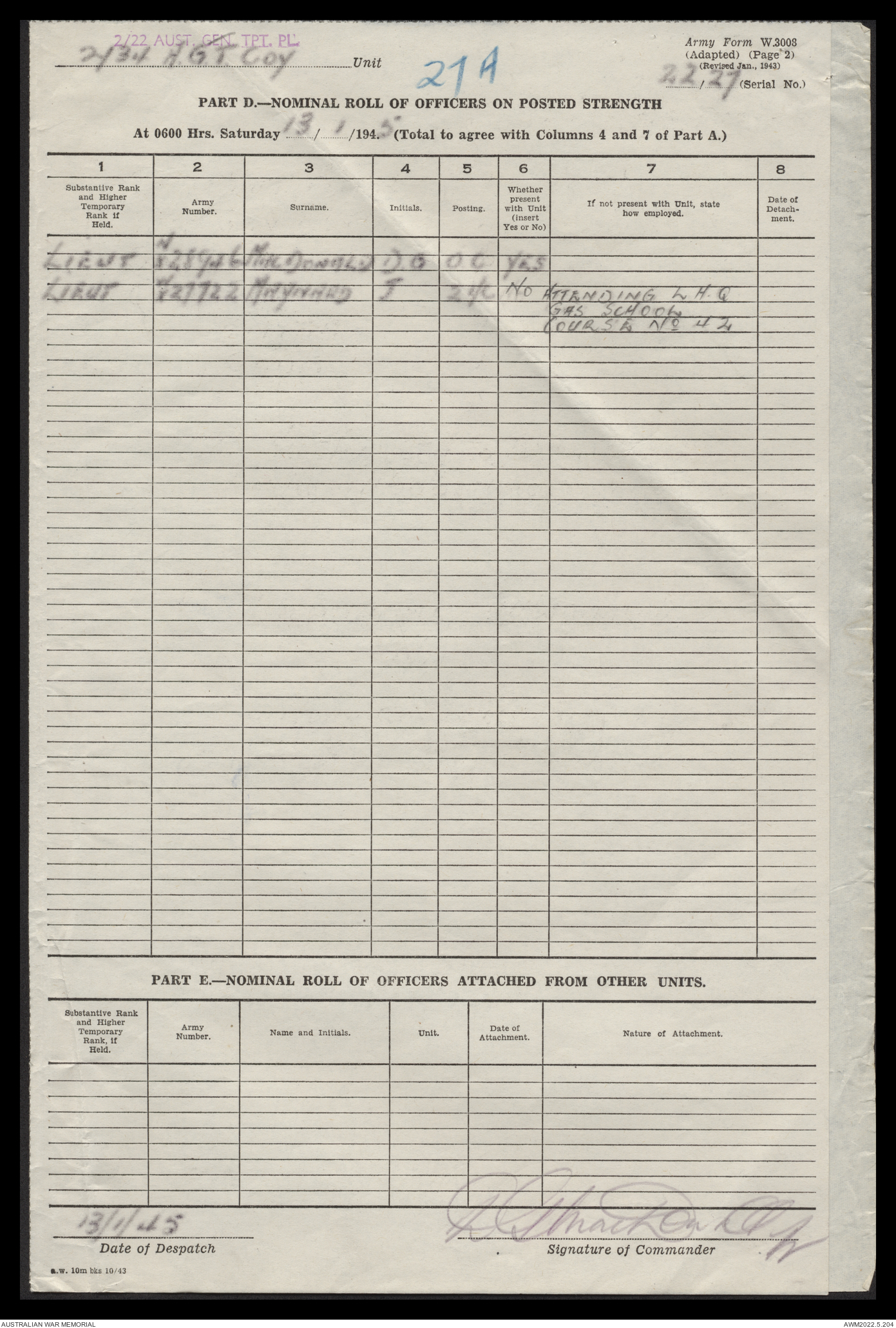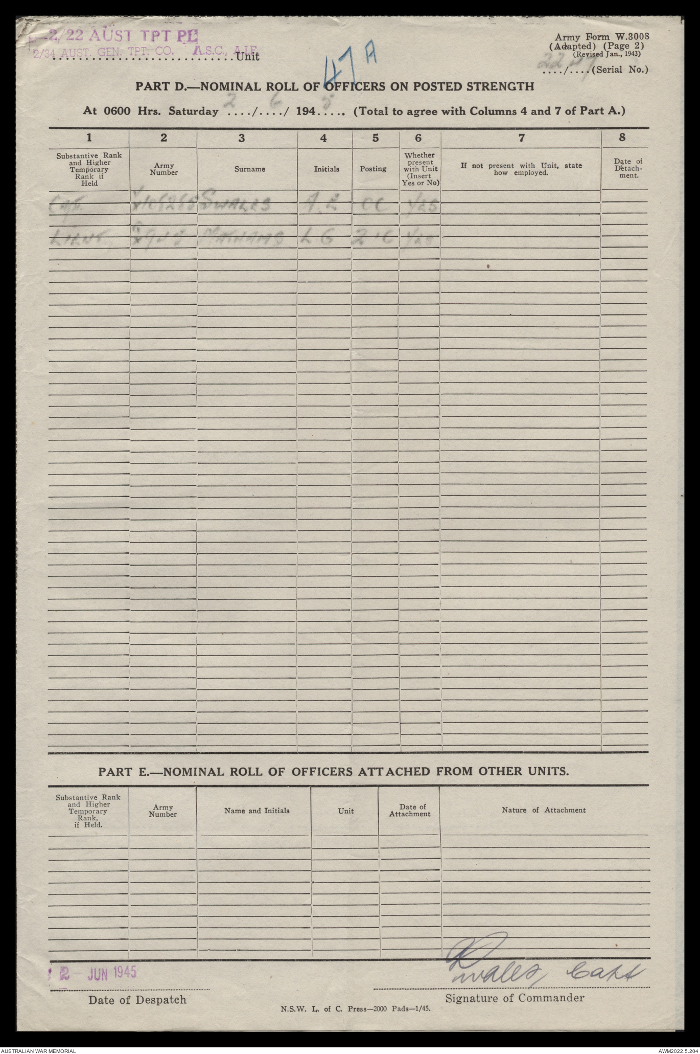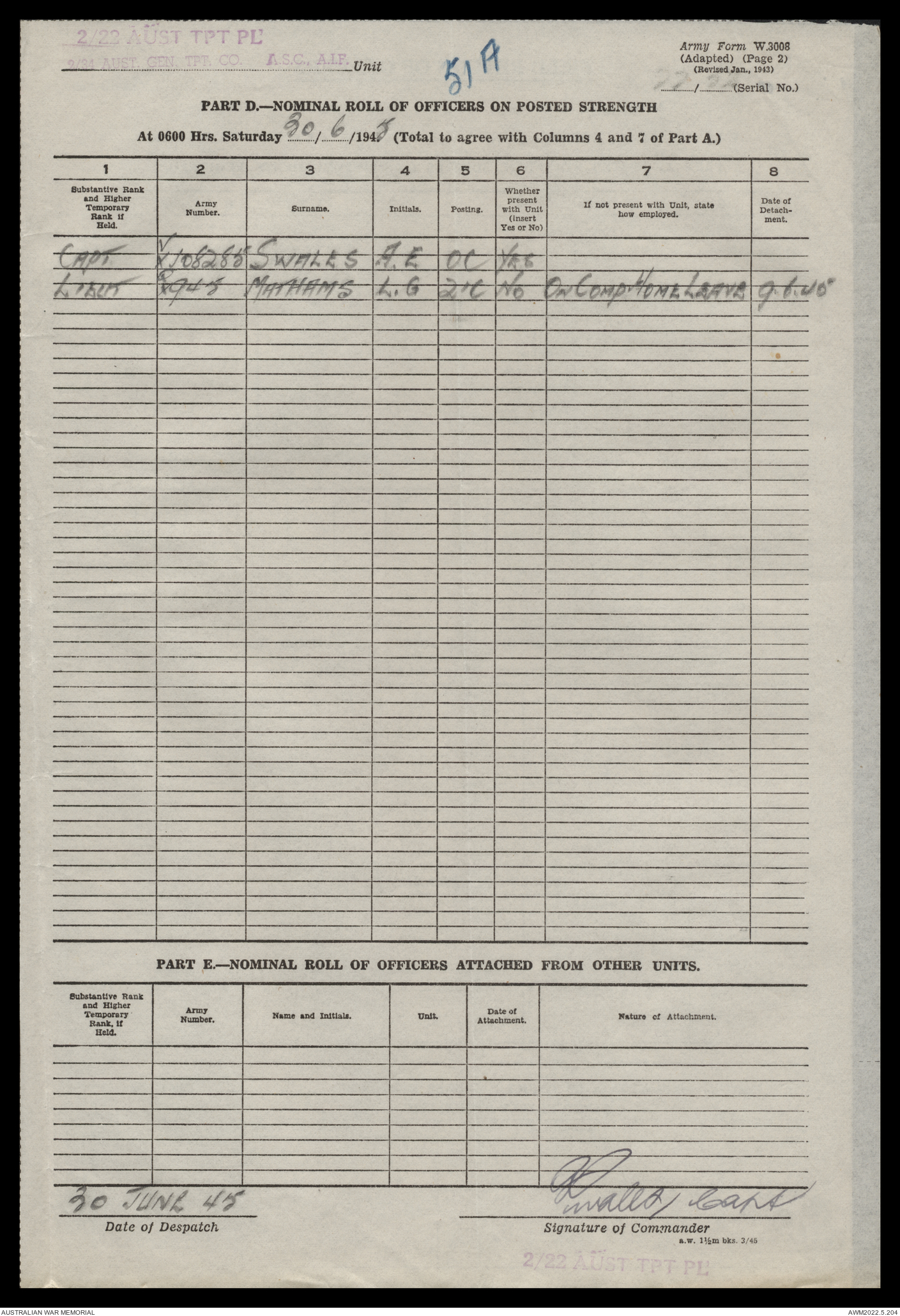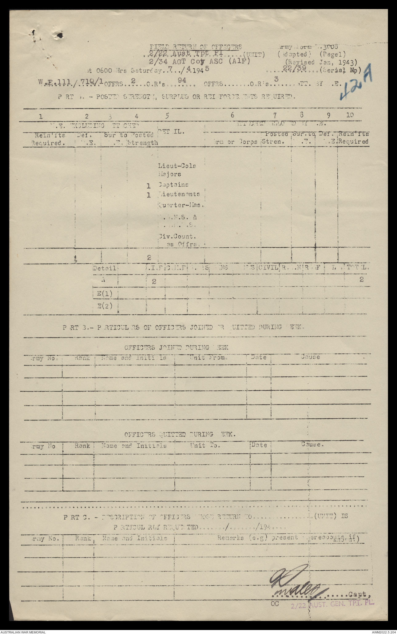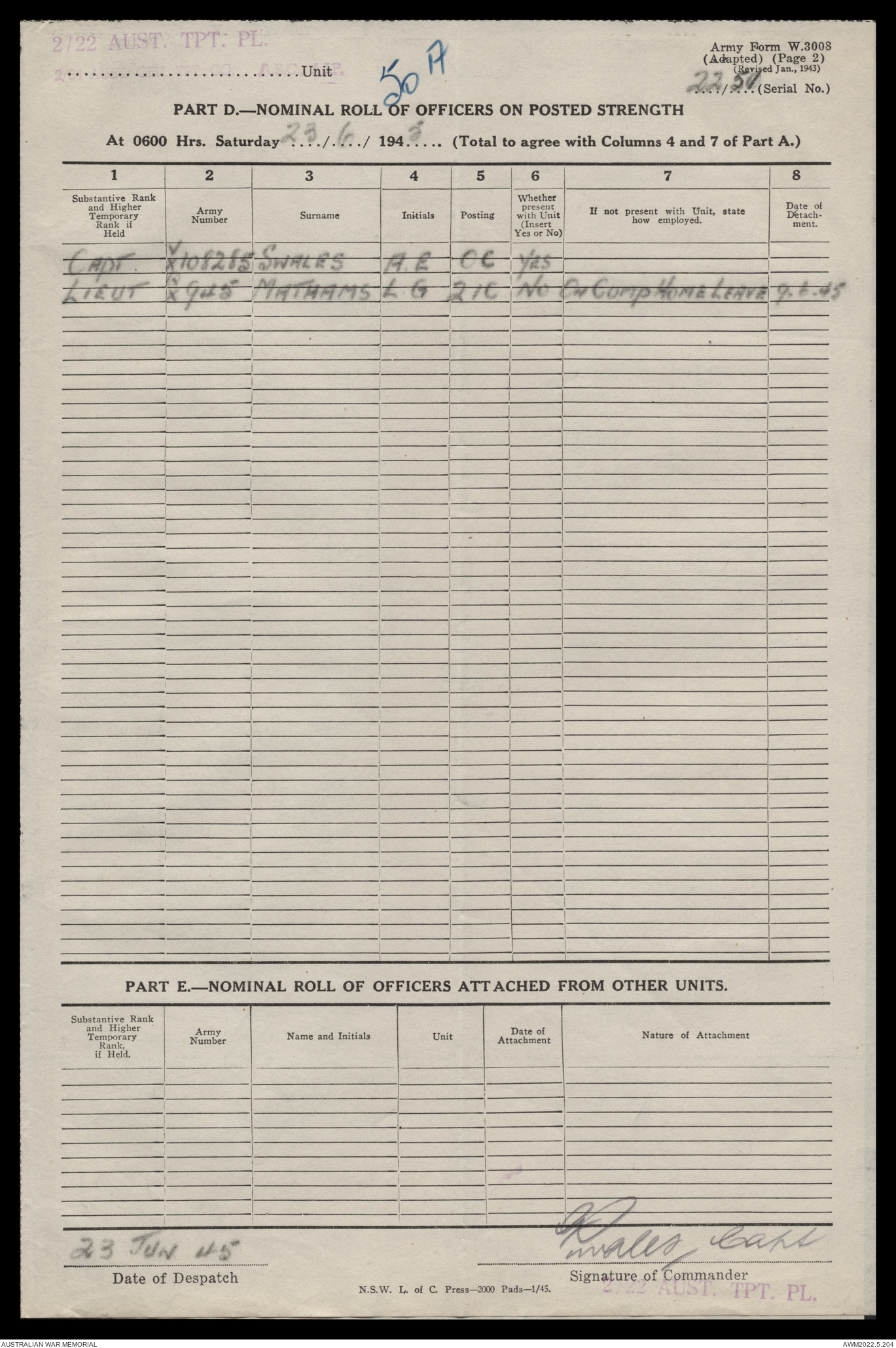AWM52 10/4/22/2 - [Unit War Diaries, 1939-45 War] 2/22 Transport Platoon, January - June 1945